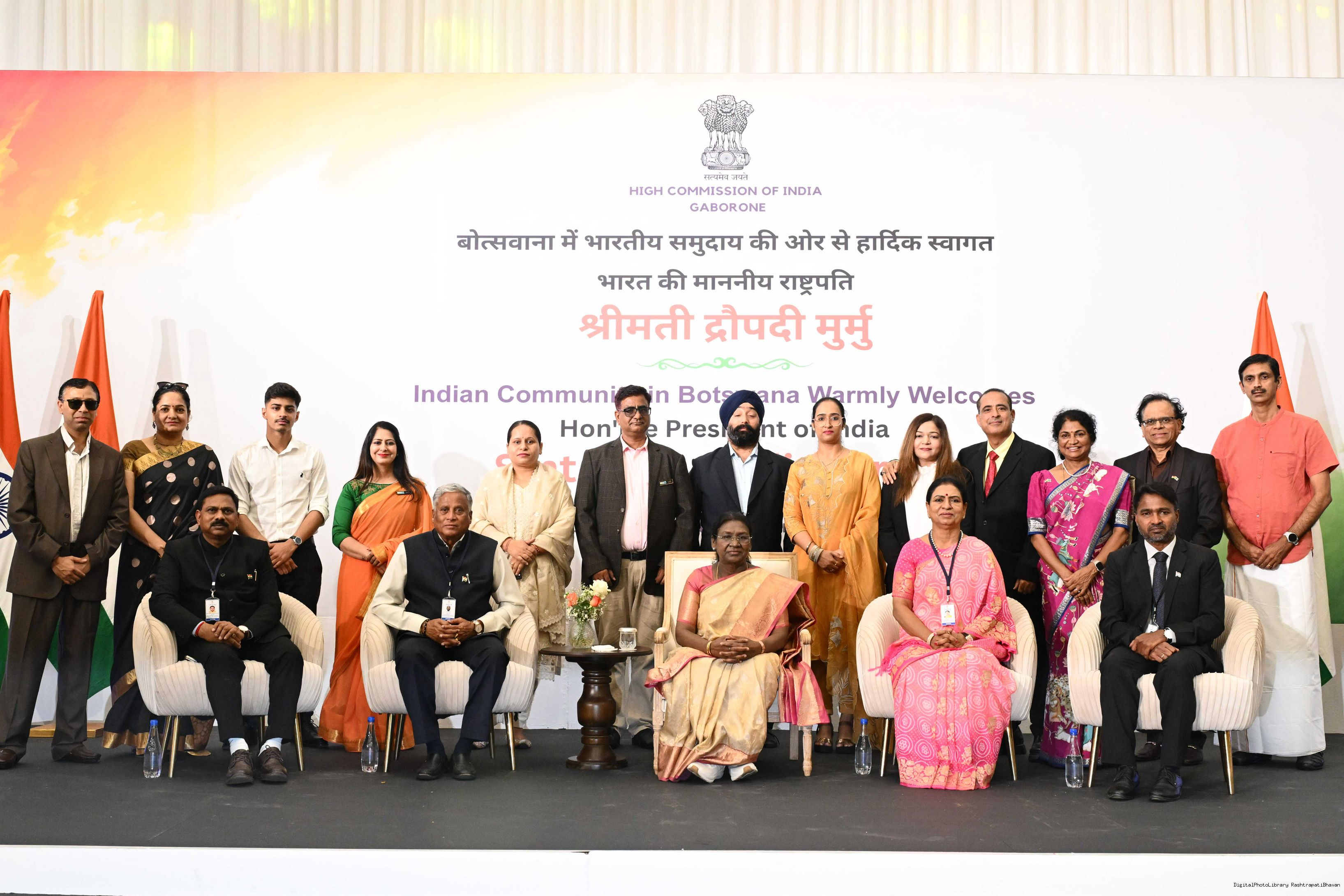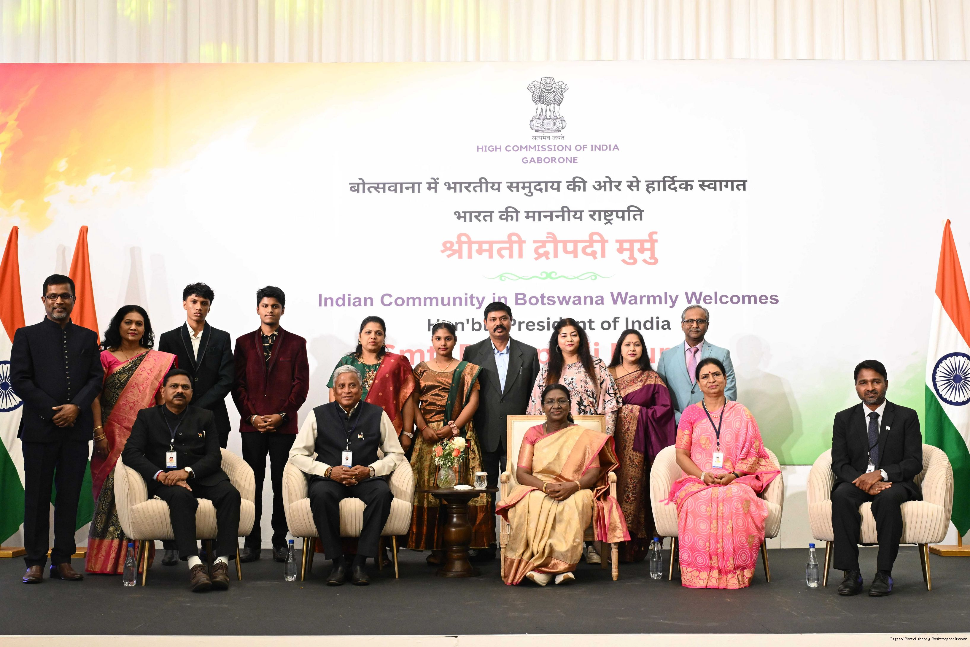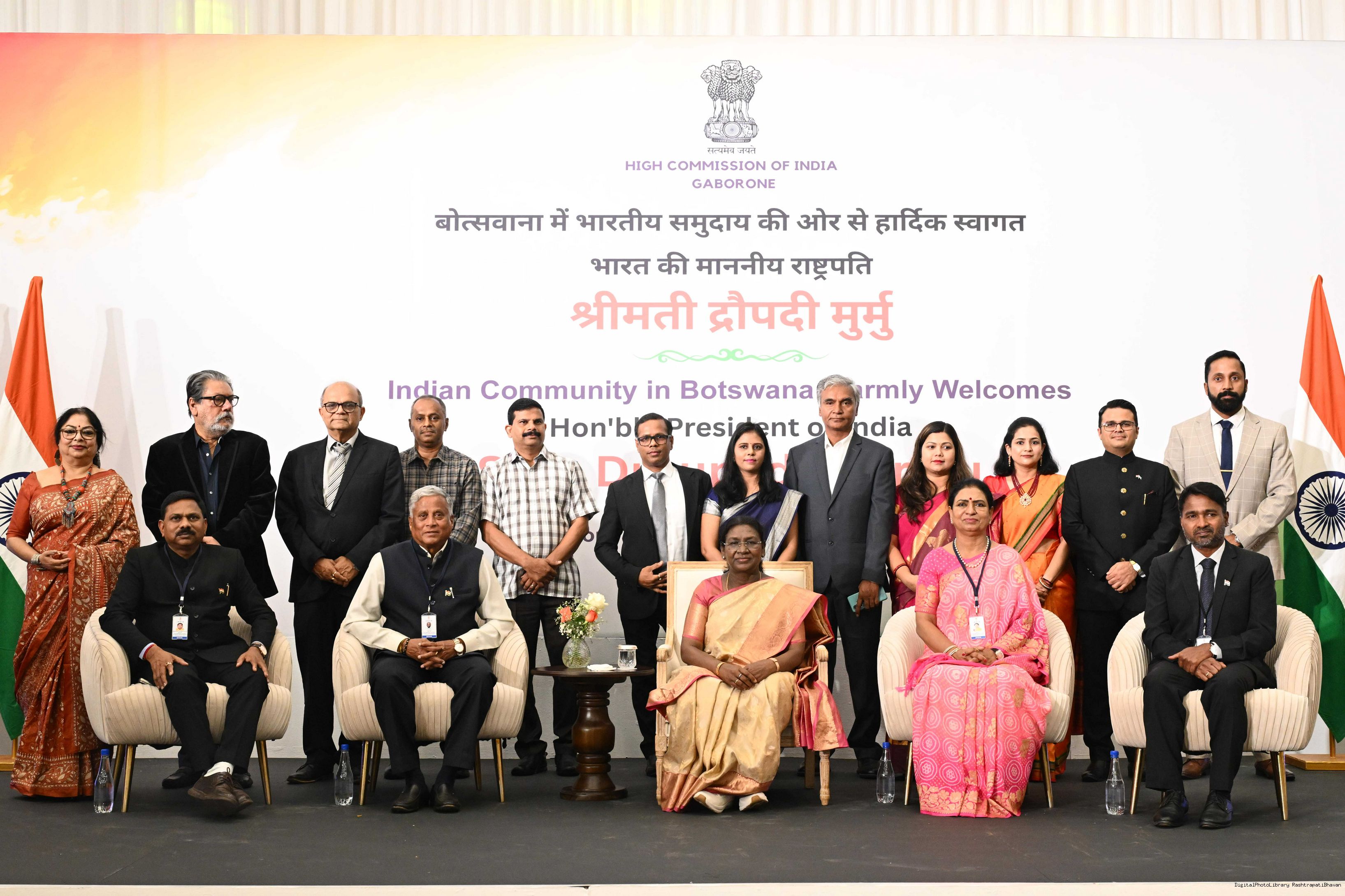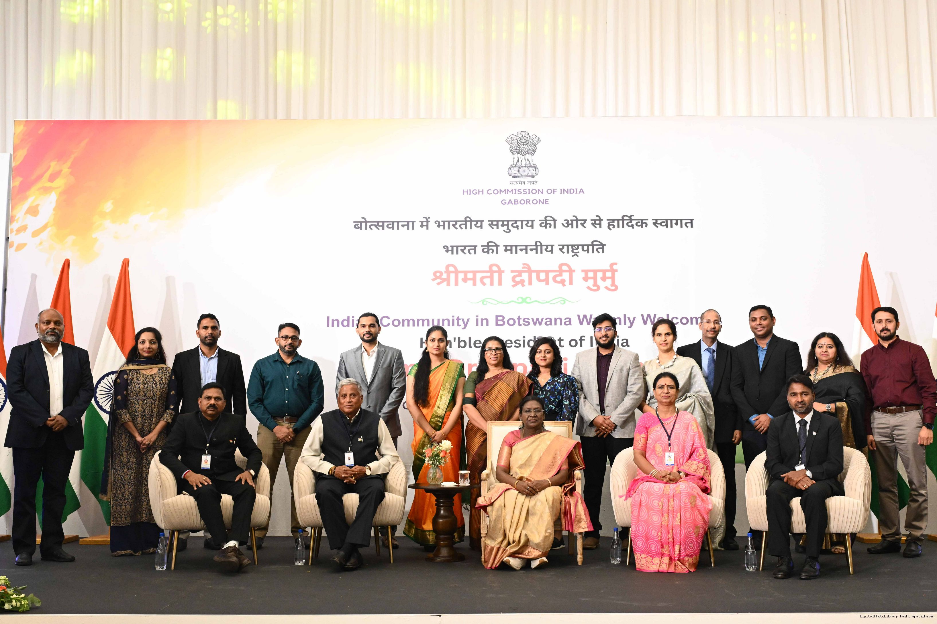 | Caption: | The President of India, Smt Droupadi Murmu addressed the members of Indian Community at a Reception hosted by the High Commissioner of India to Botswana at Gaborone on November 13, 2025. |