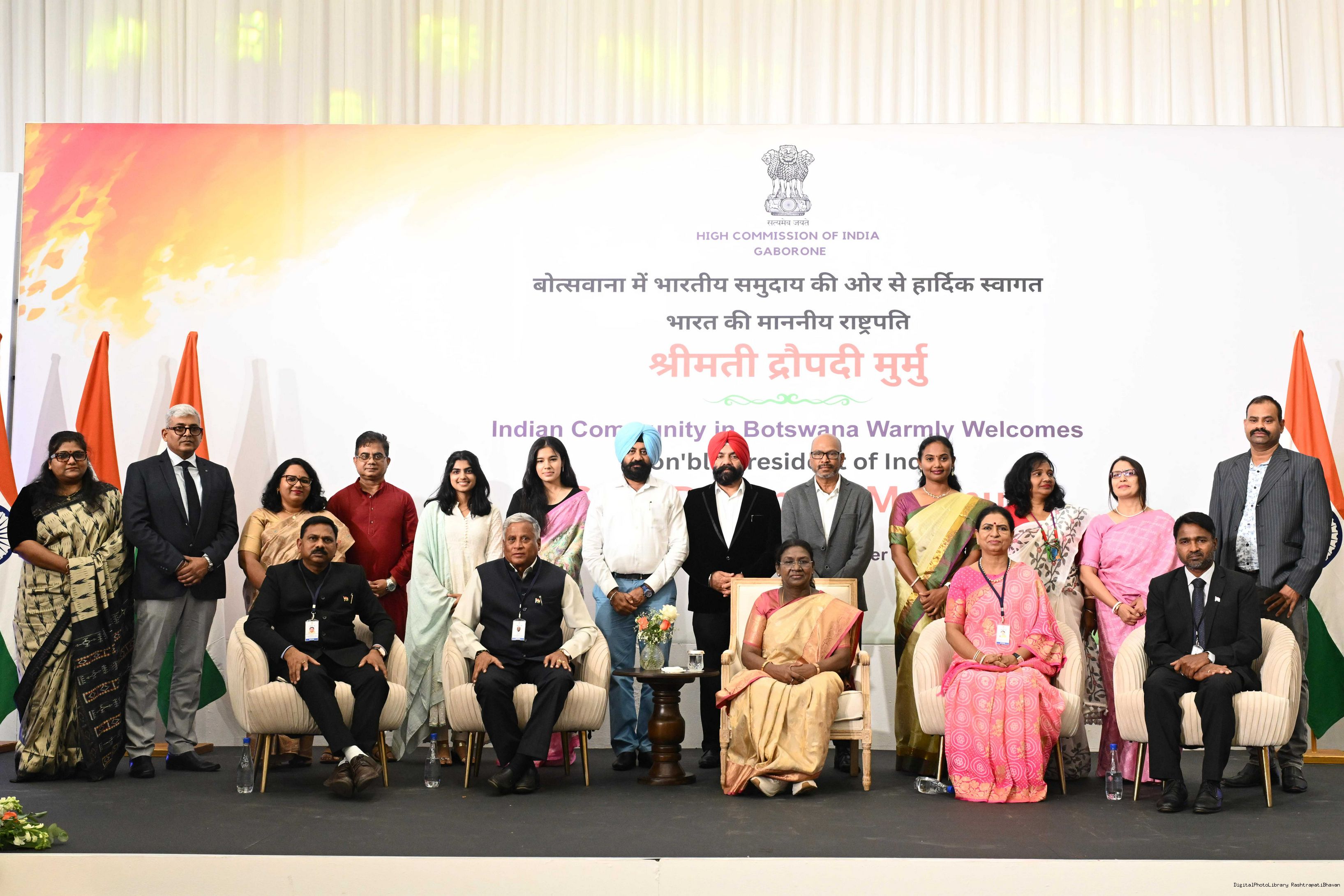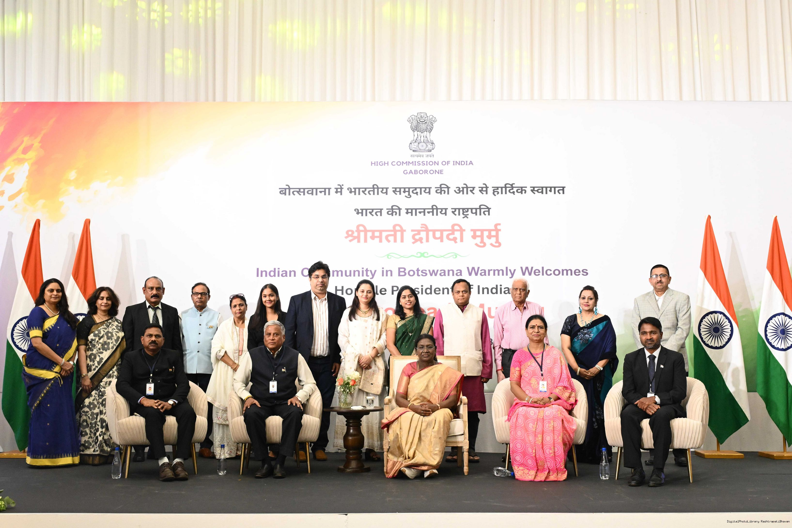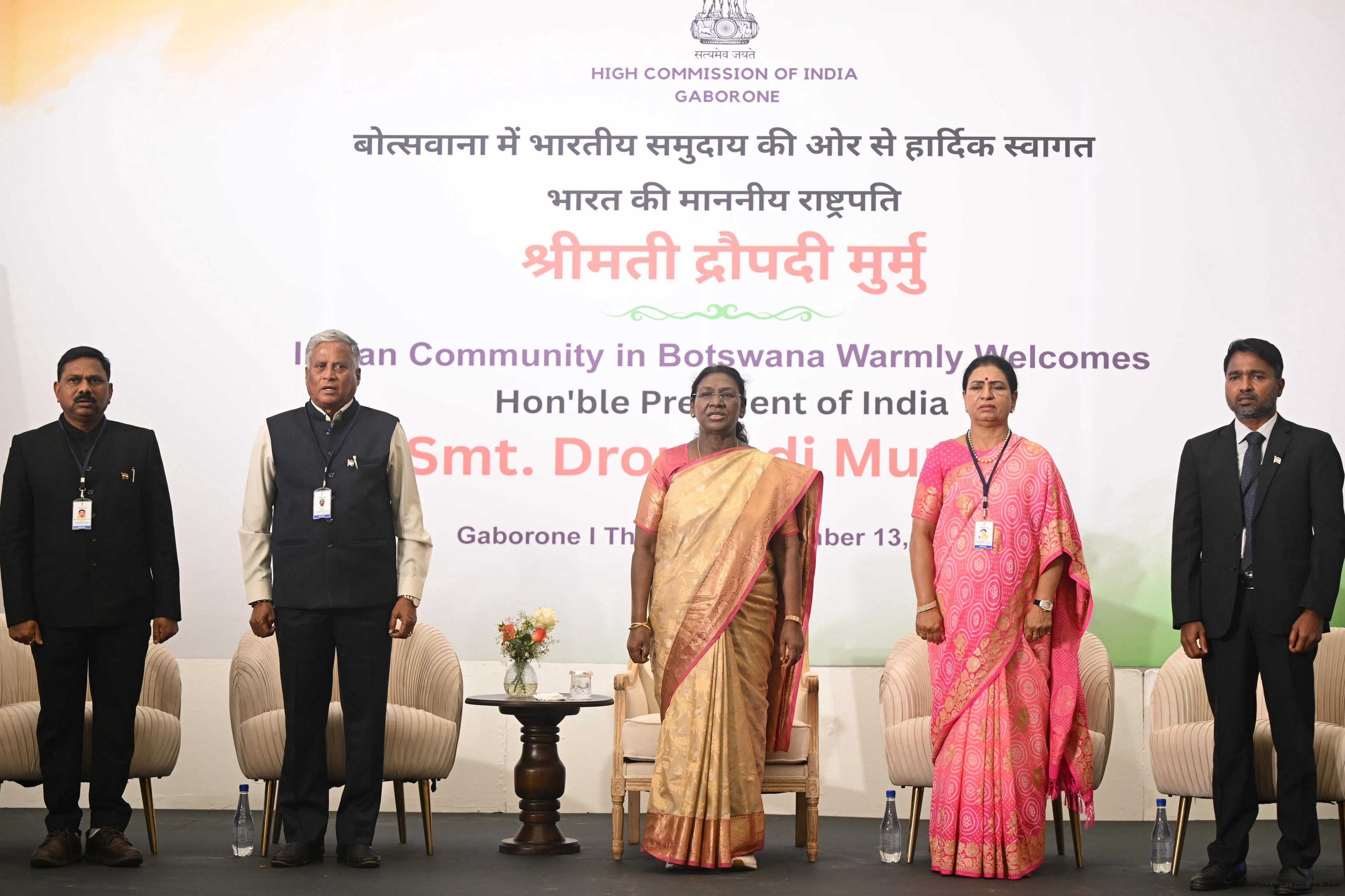 | Caption: | The President of India, Smt Droupadi Murmu addressed the members of Indian Community at a Reception hosted by the High Commissioner of India to Botswana at Gaborone on November 13, 2025. |