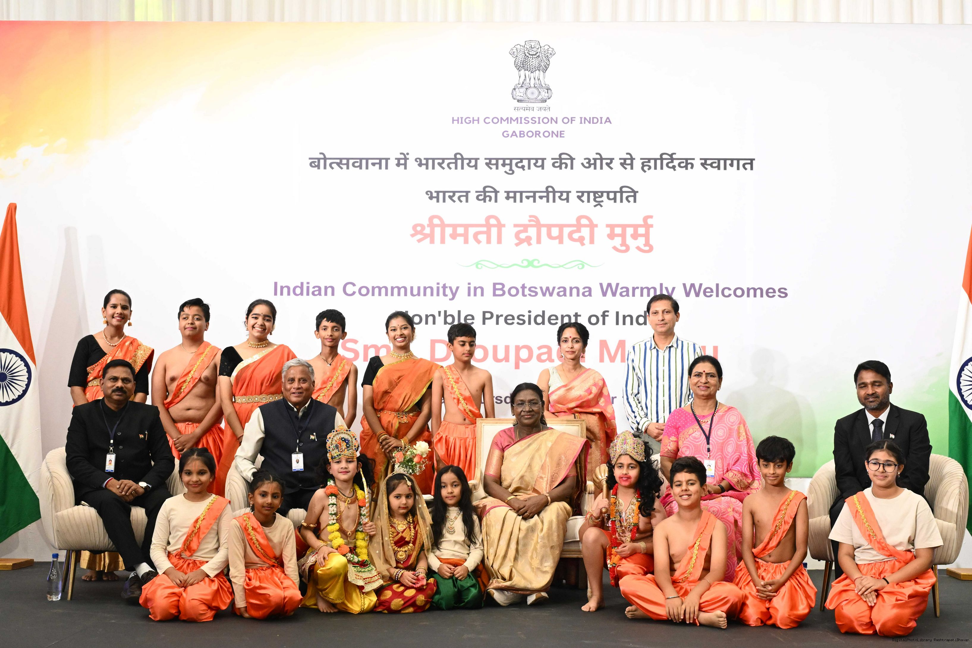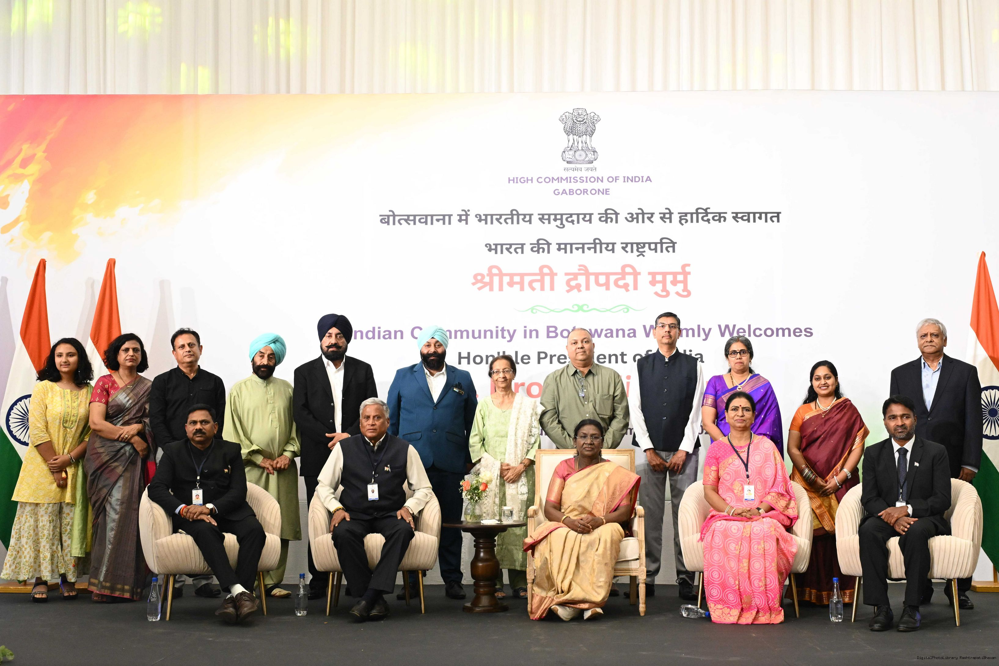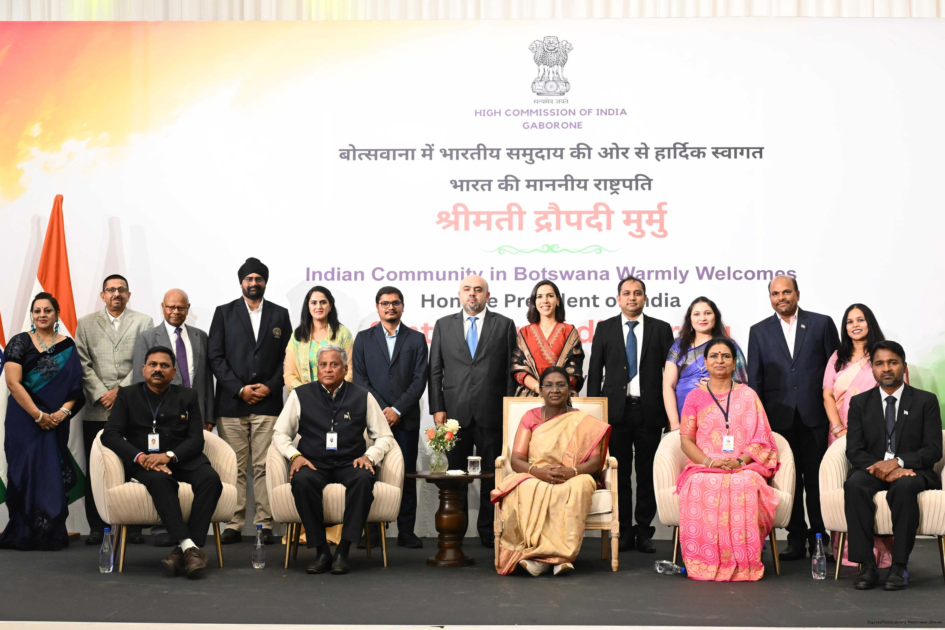| Caption: | The President of India, Smt Droupadi Murmu addressed the members of Indian Community at a Reception hosted by the High Commissioner of India to Botswana at Gaborone on November 13, 2025. |
