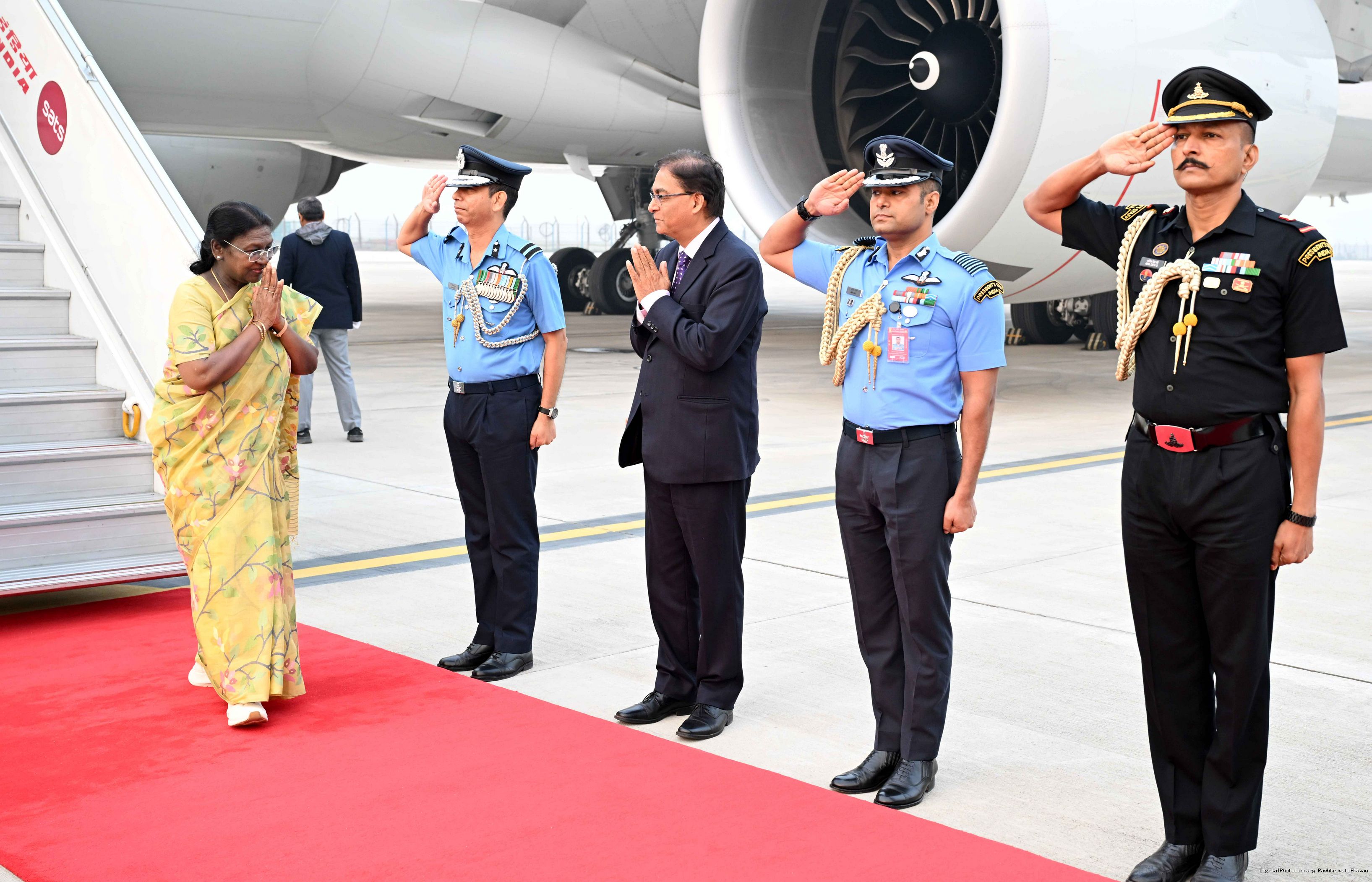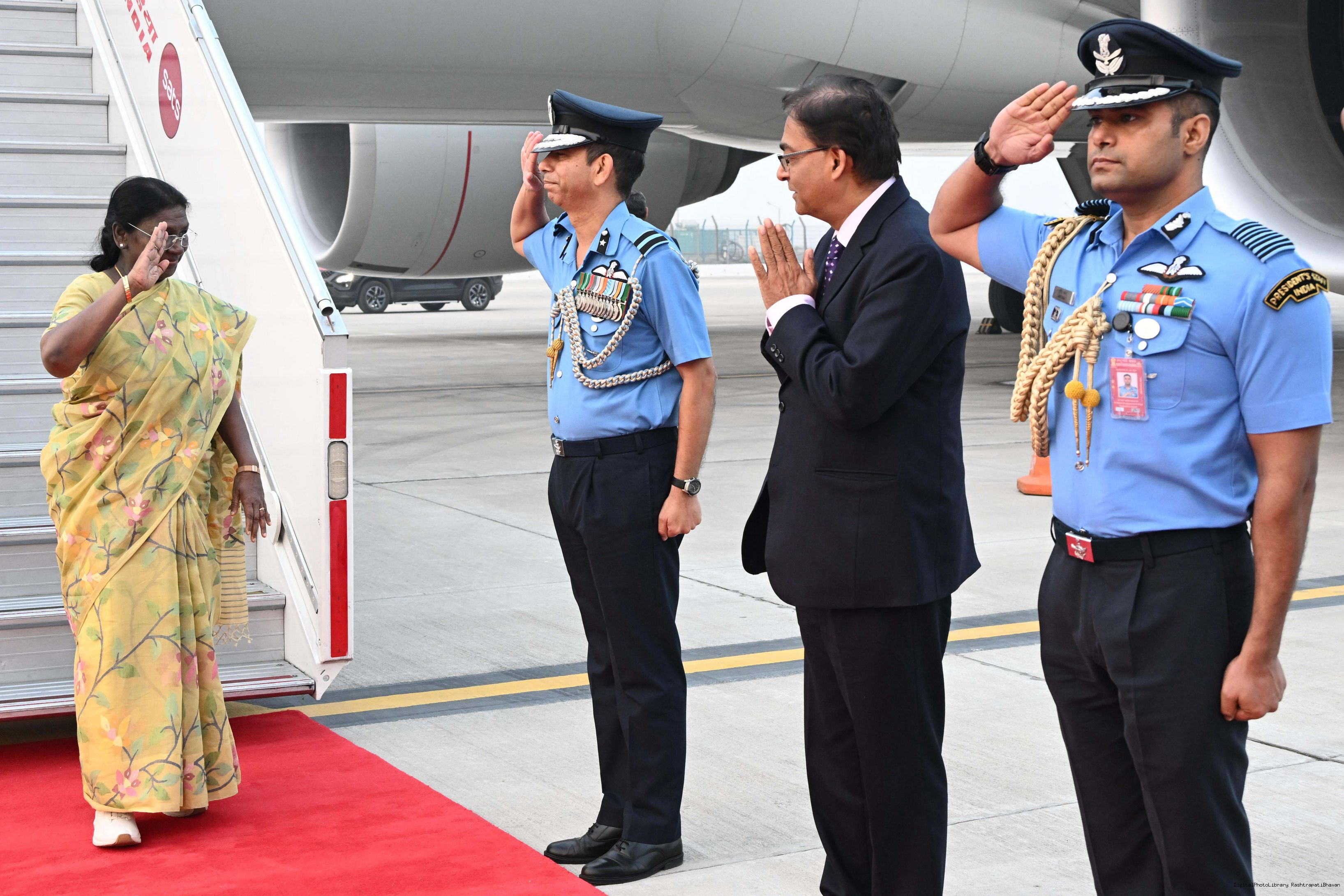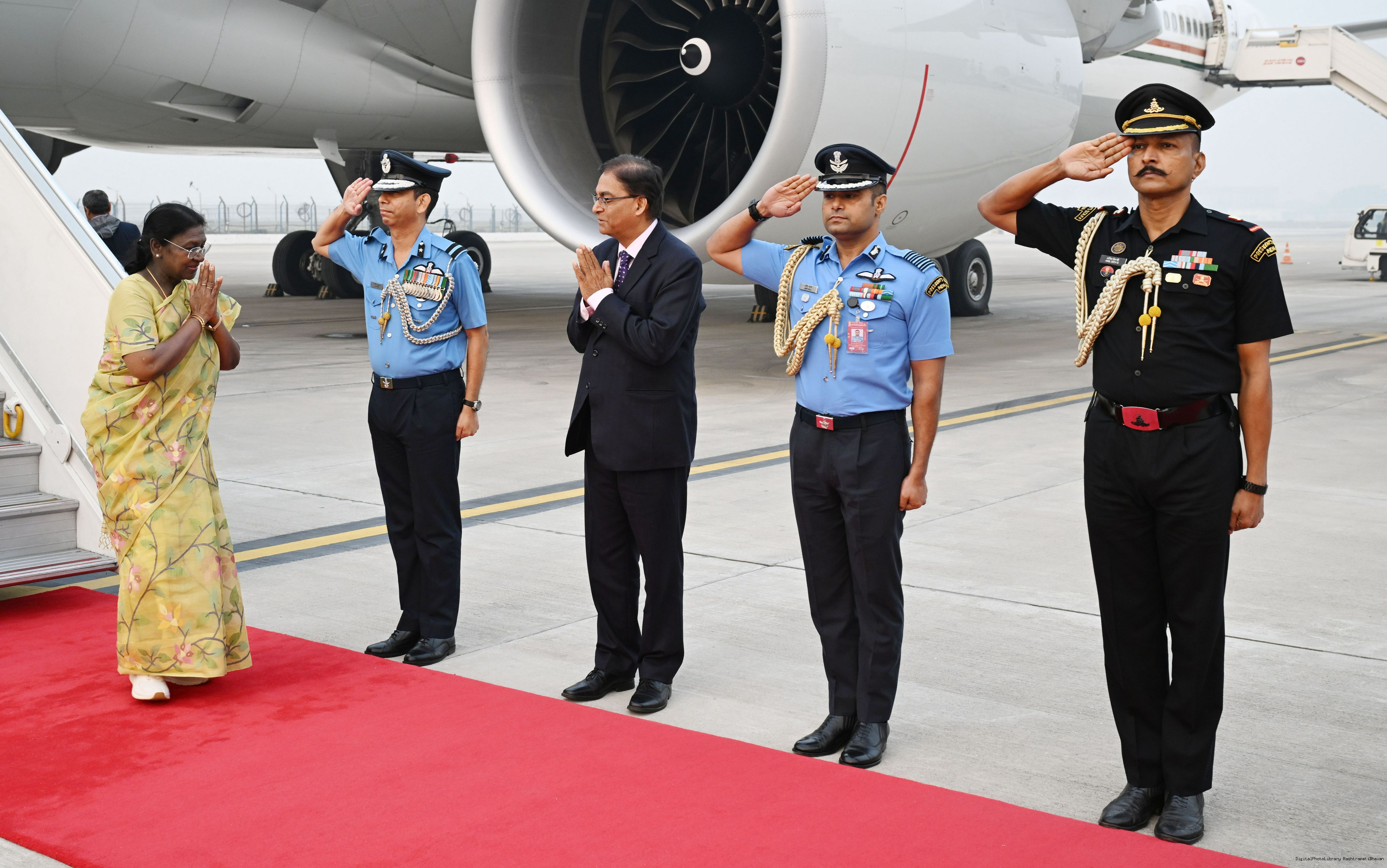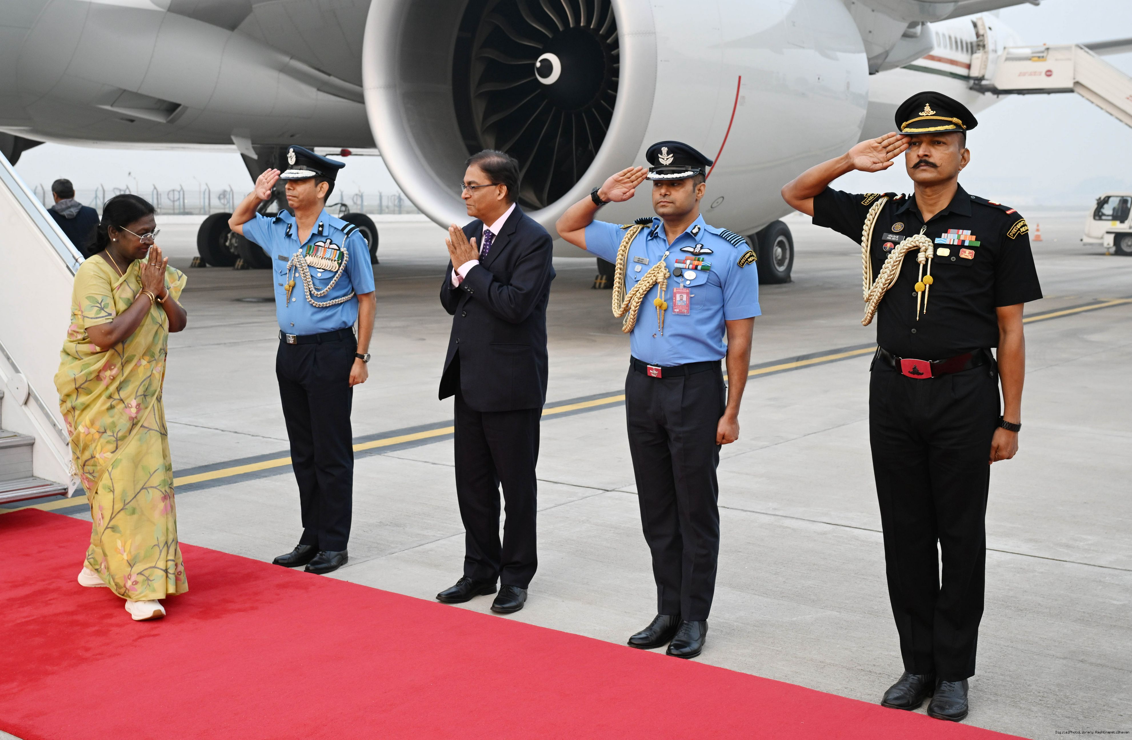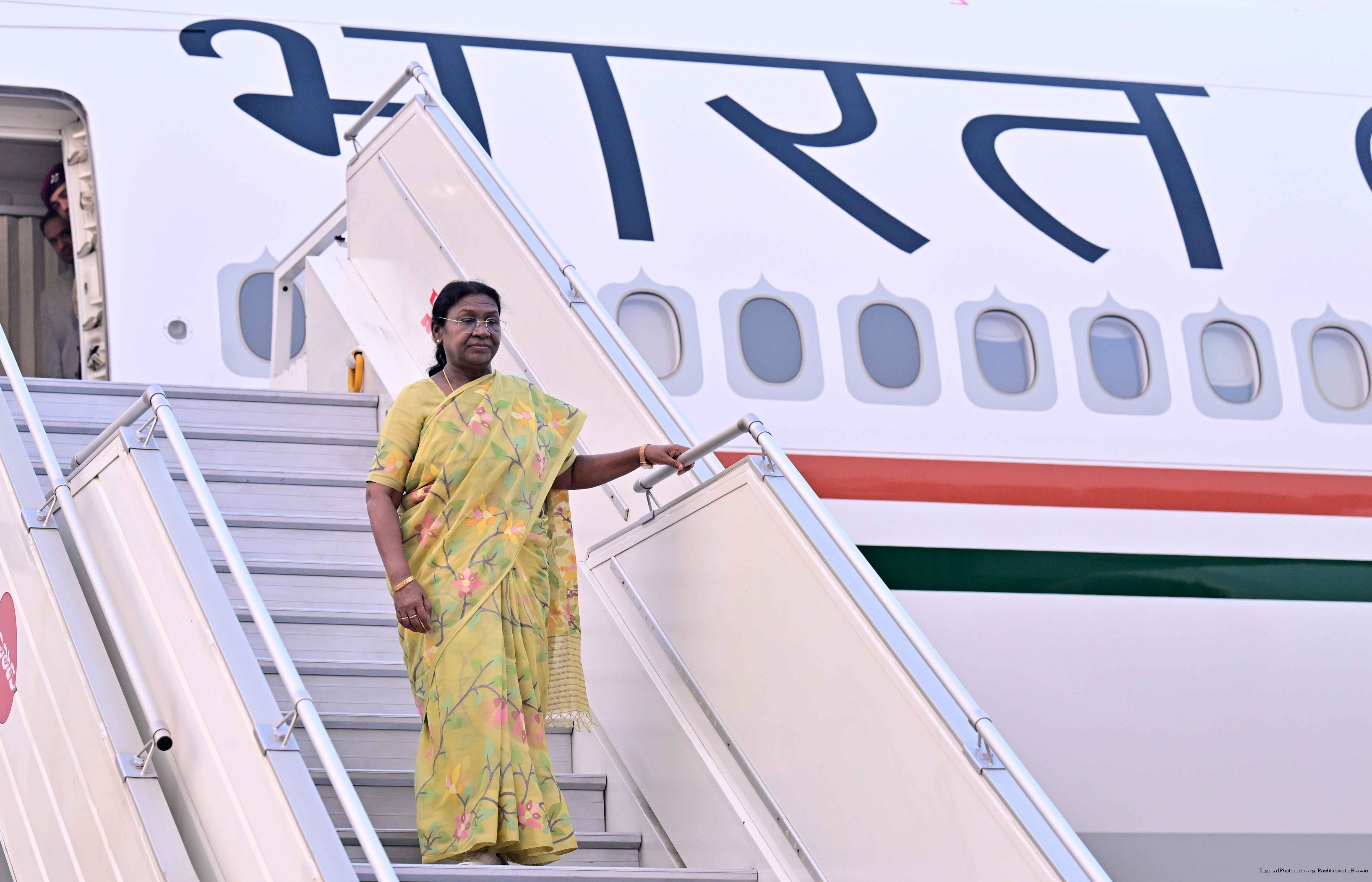 | Caption: | The President of India, Smt Droupadi Murmu arrived in Delhi after completing her State visit to Angola and Botswan on November 14, 2025. |