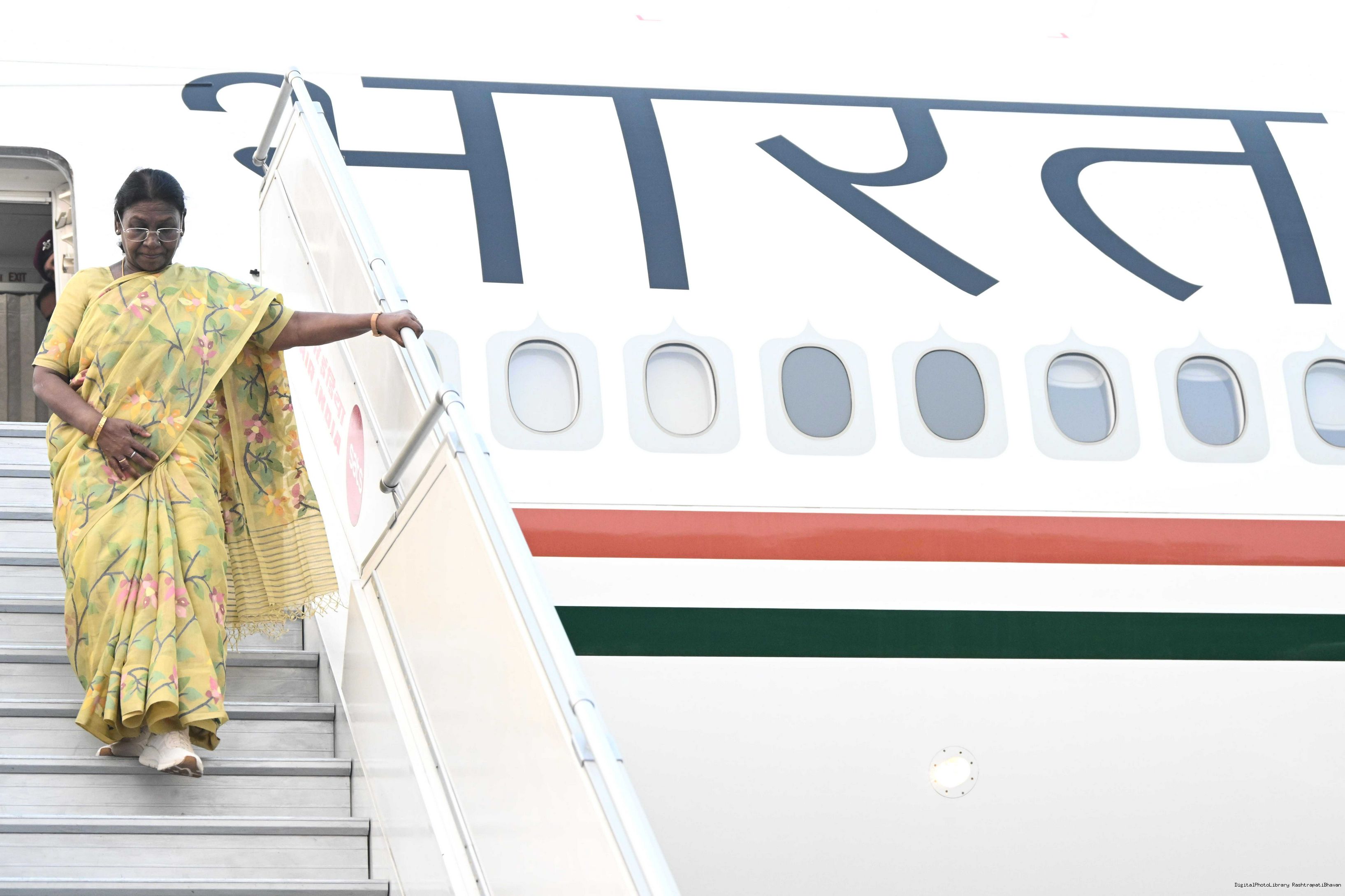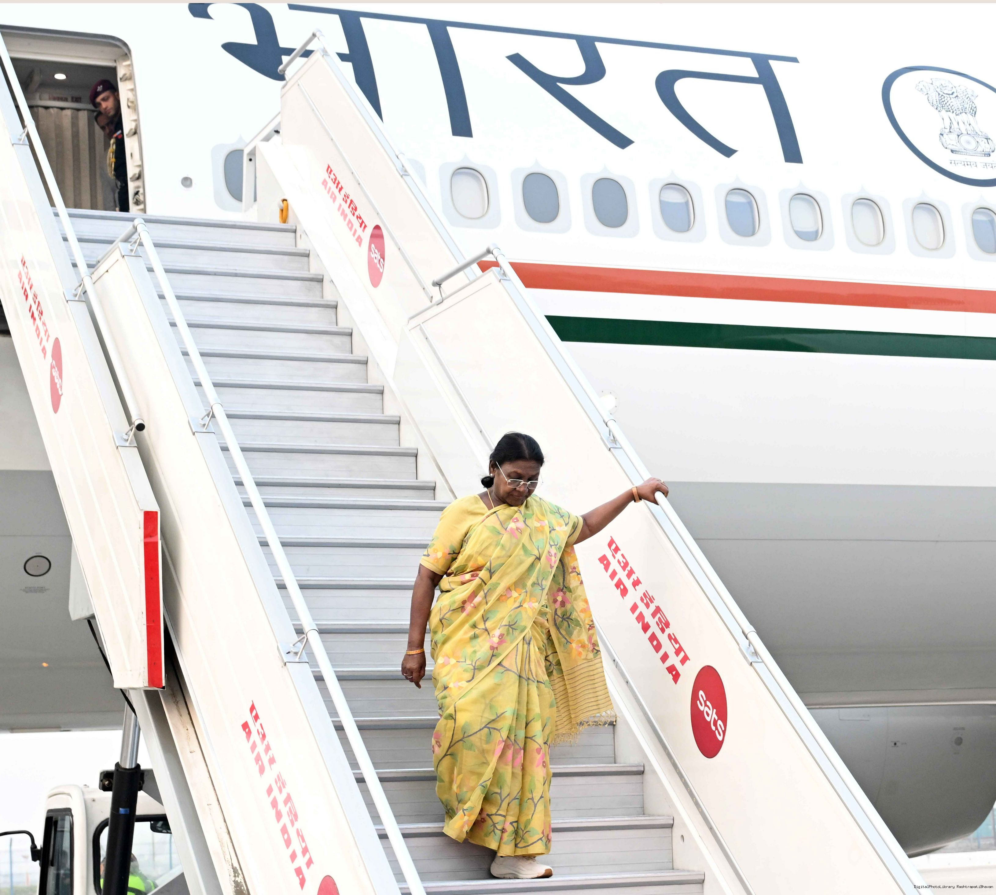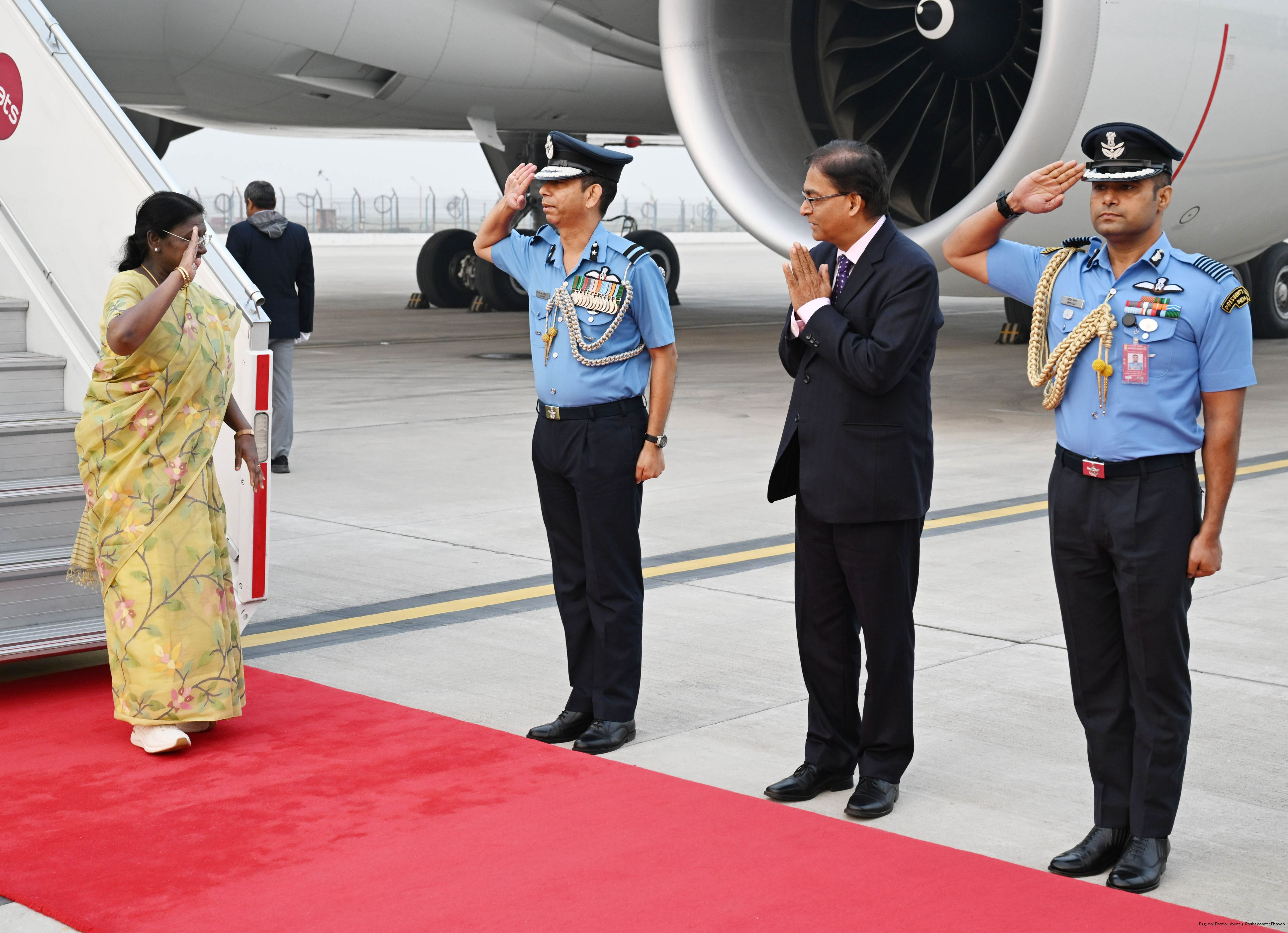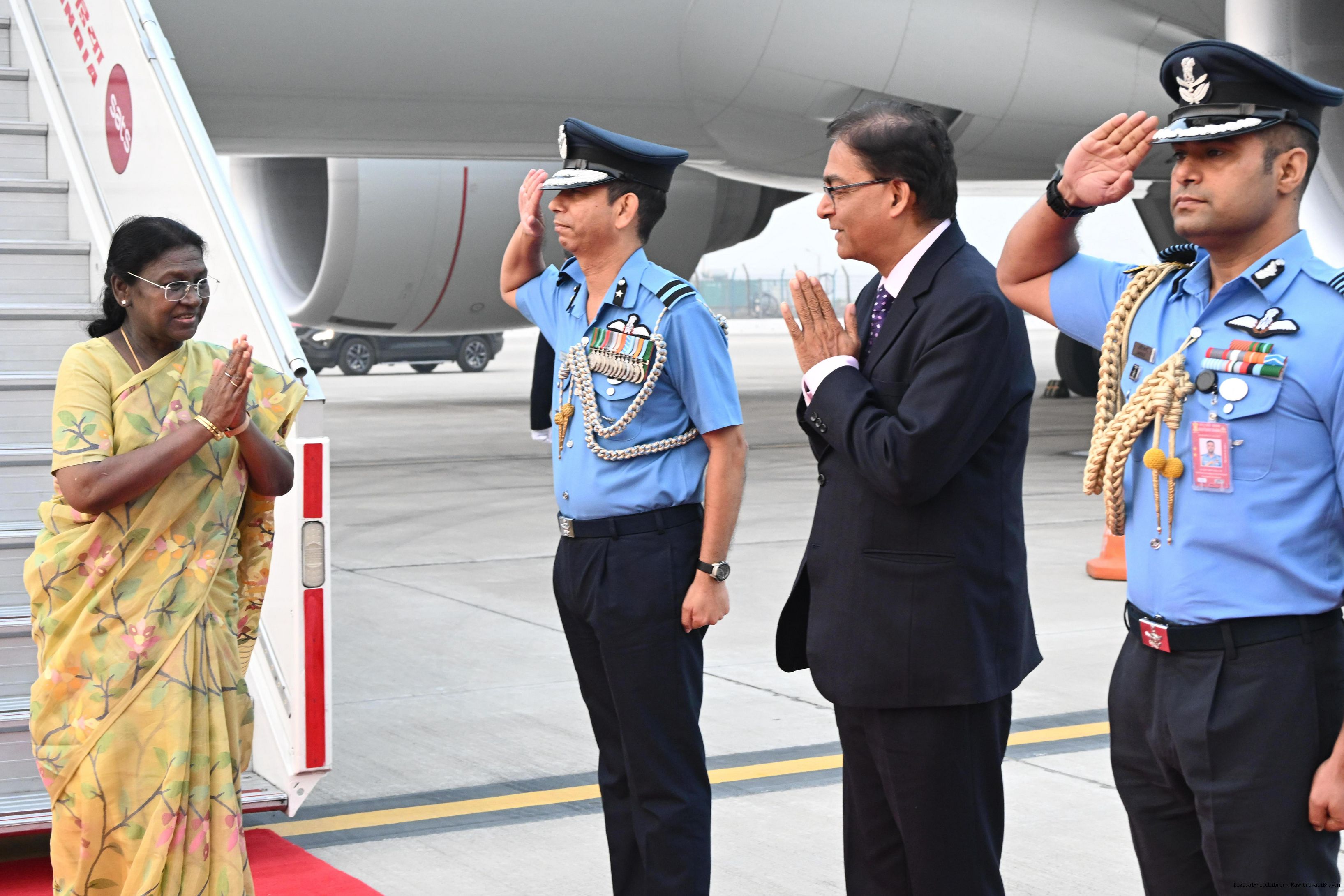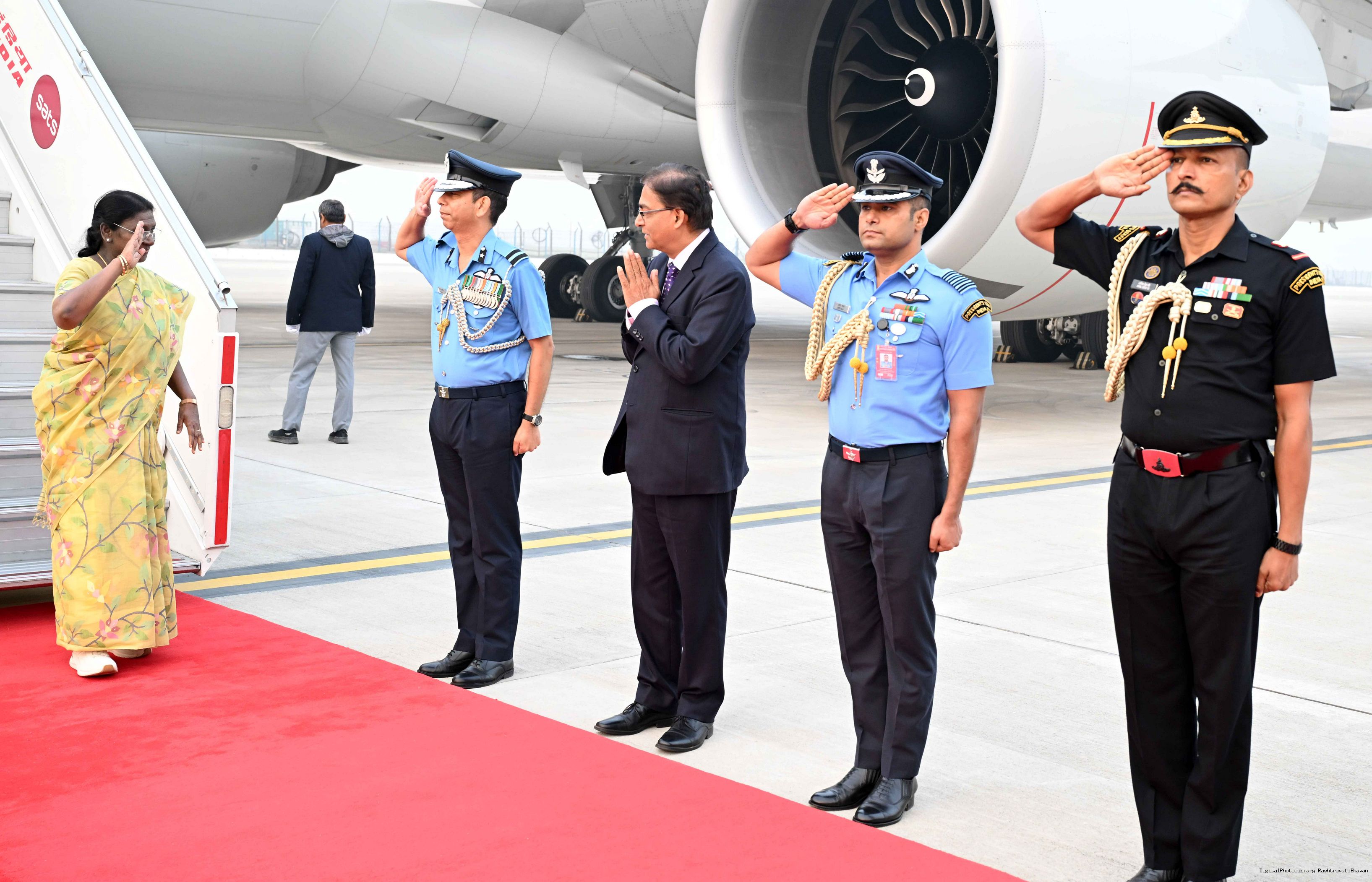 | Caption: | The President of India, Smt Droupadi Murmu arrived in Delhi after completing her State visit to Angola and Botswan on November 14, 2025. |