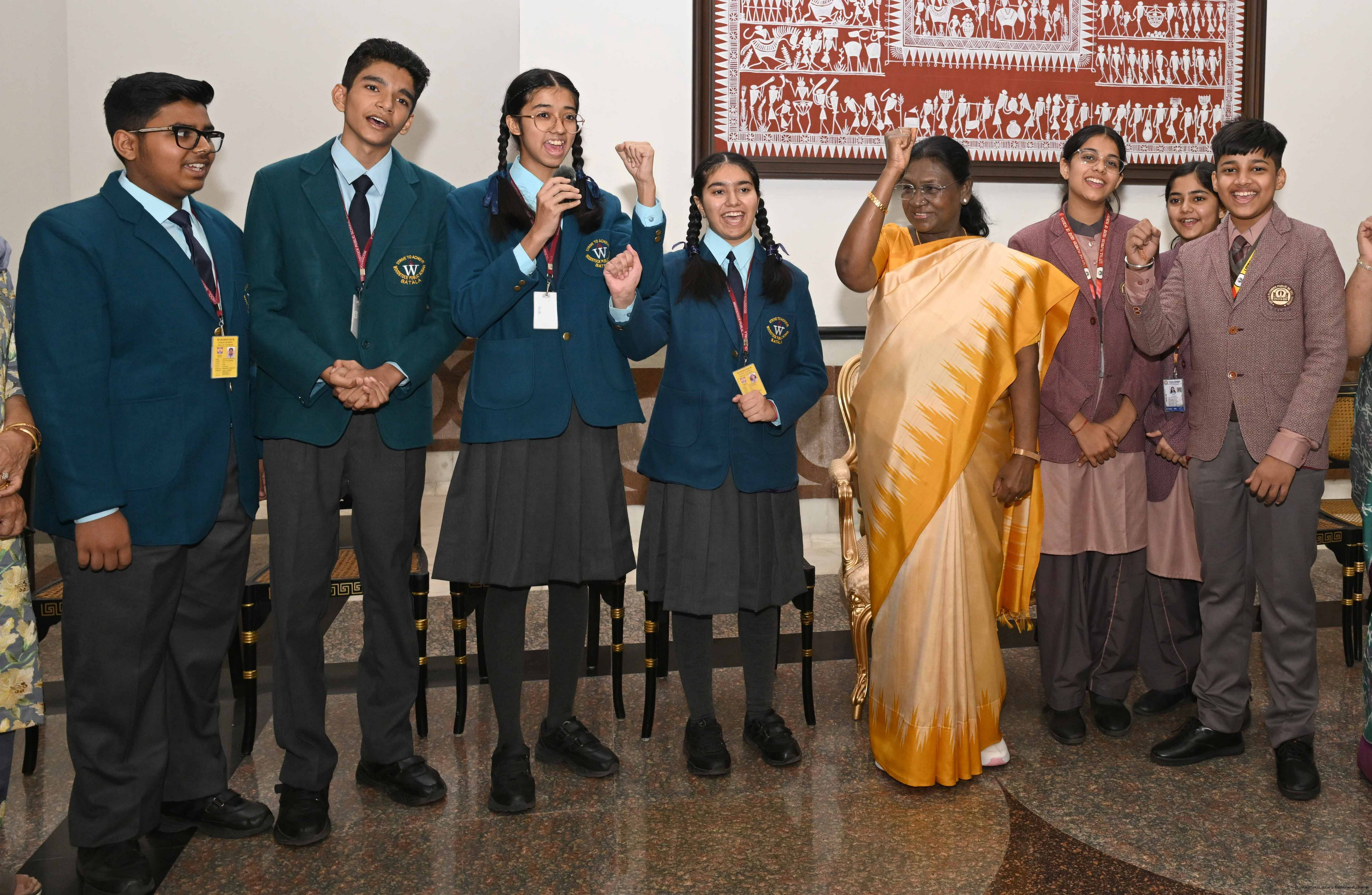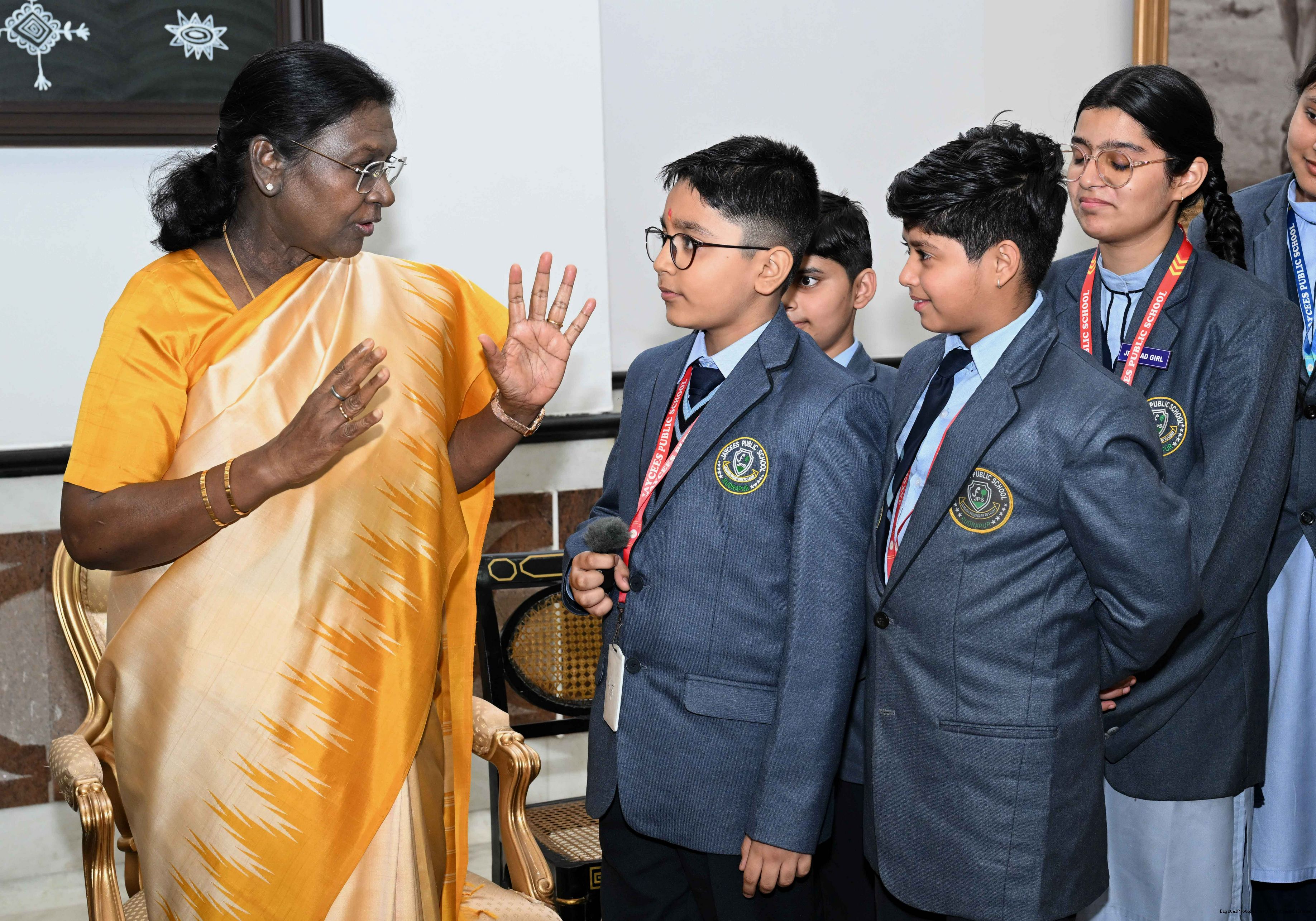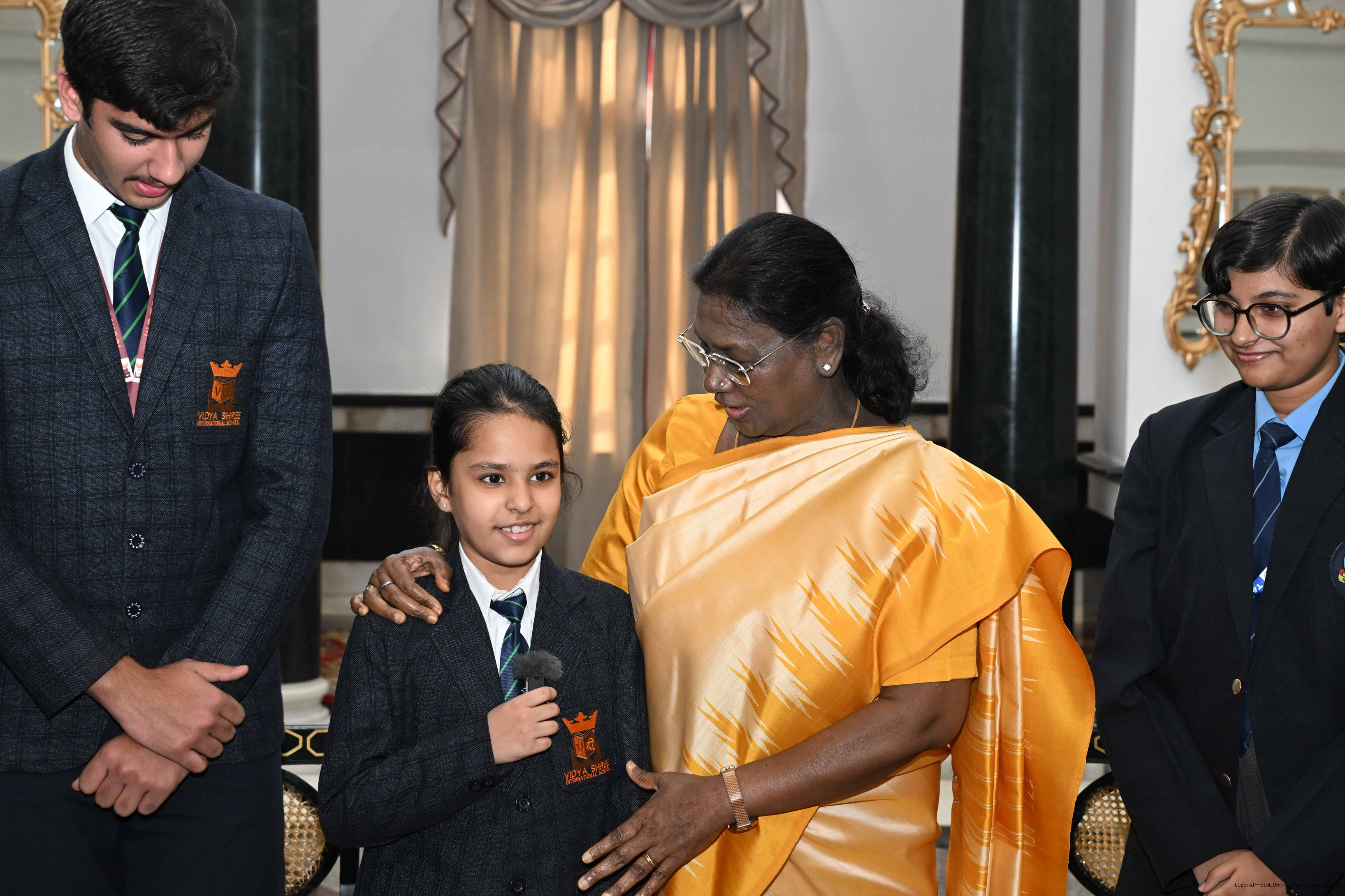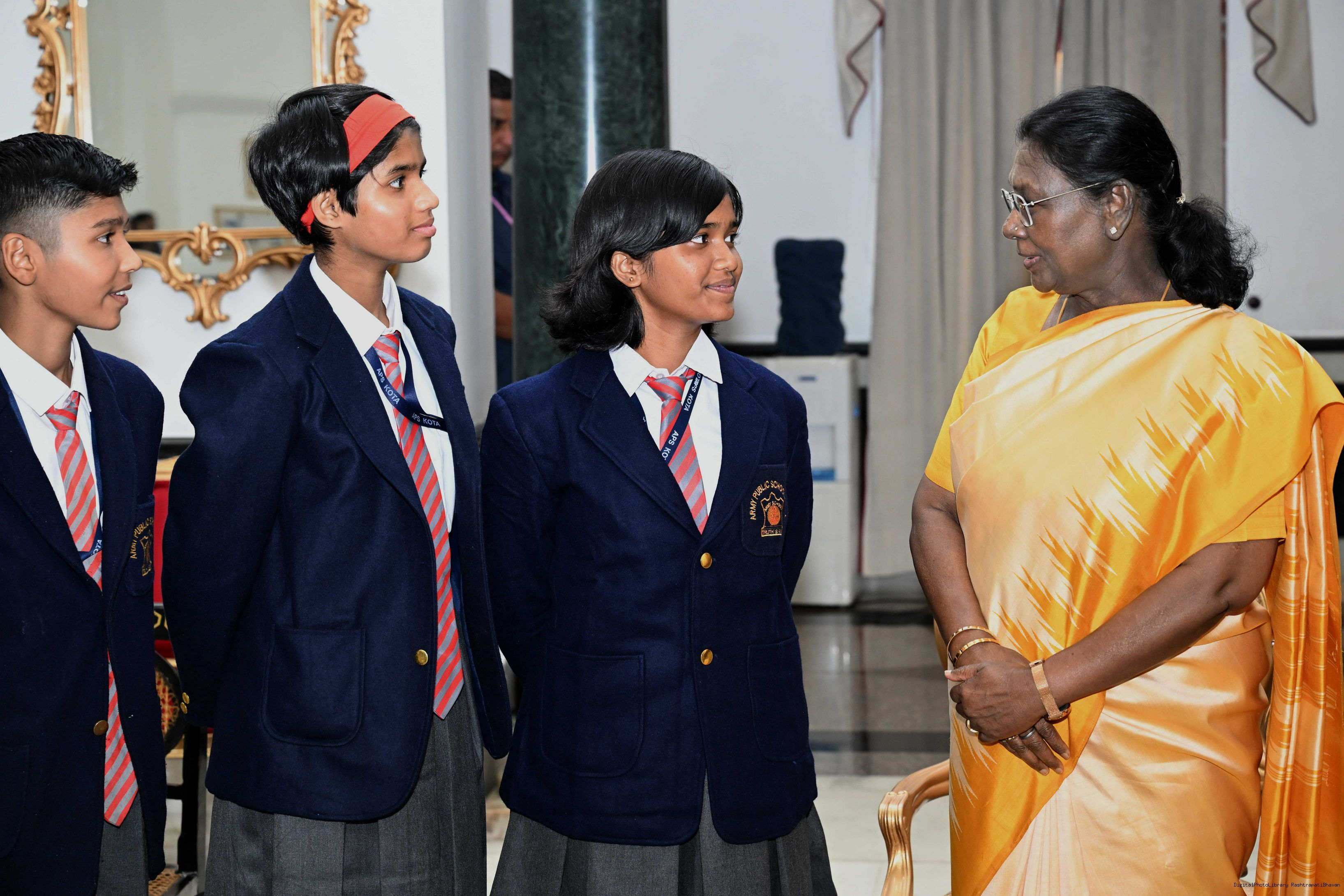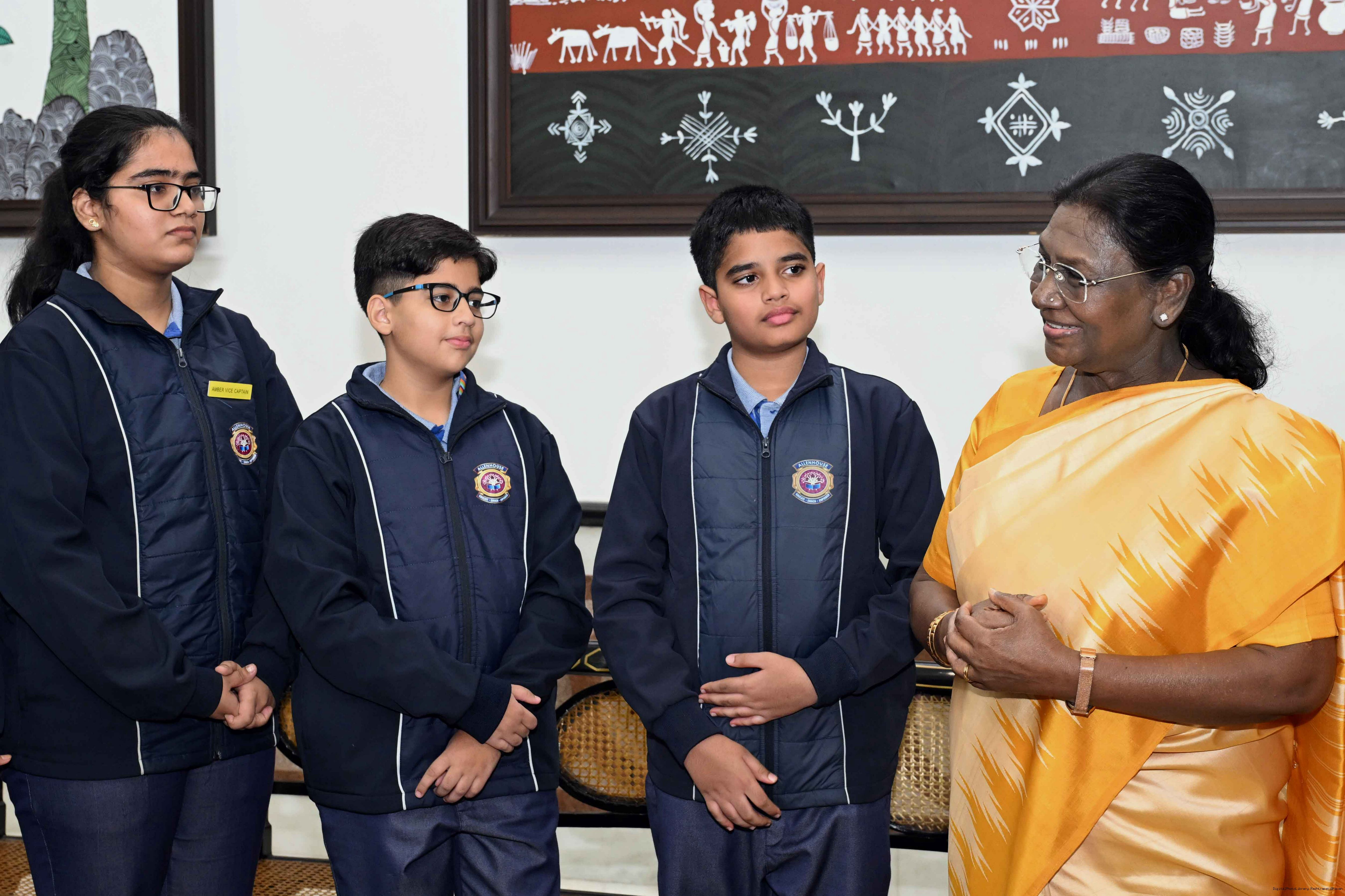 | Caption: | On the occasion of Children's Day, The President of India, Smt Droupadi Murmu interacted with children from various schools and organisations at Rashtrapati Bhavan Cultural Centre on November 14, 2025. |