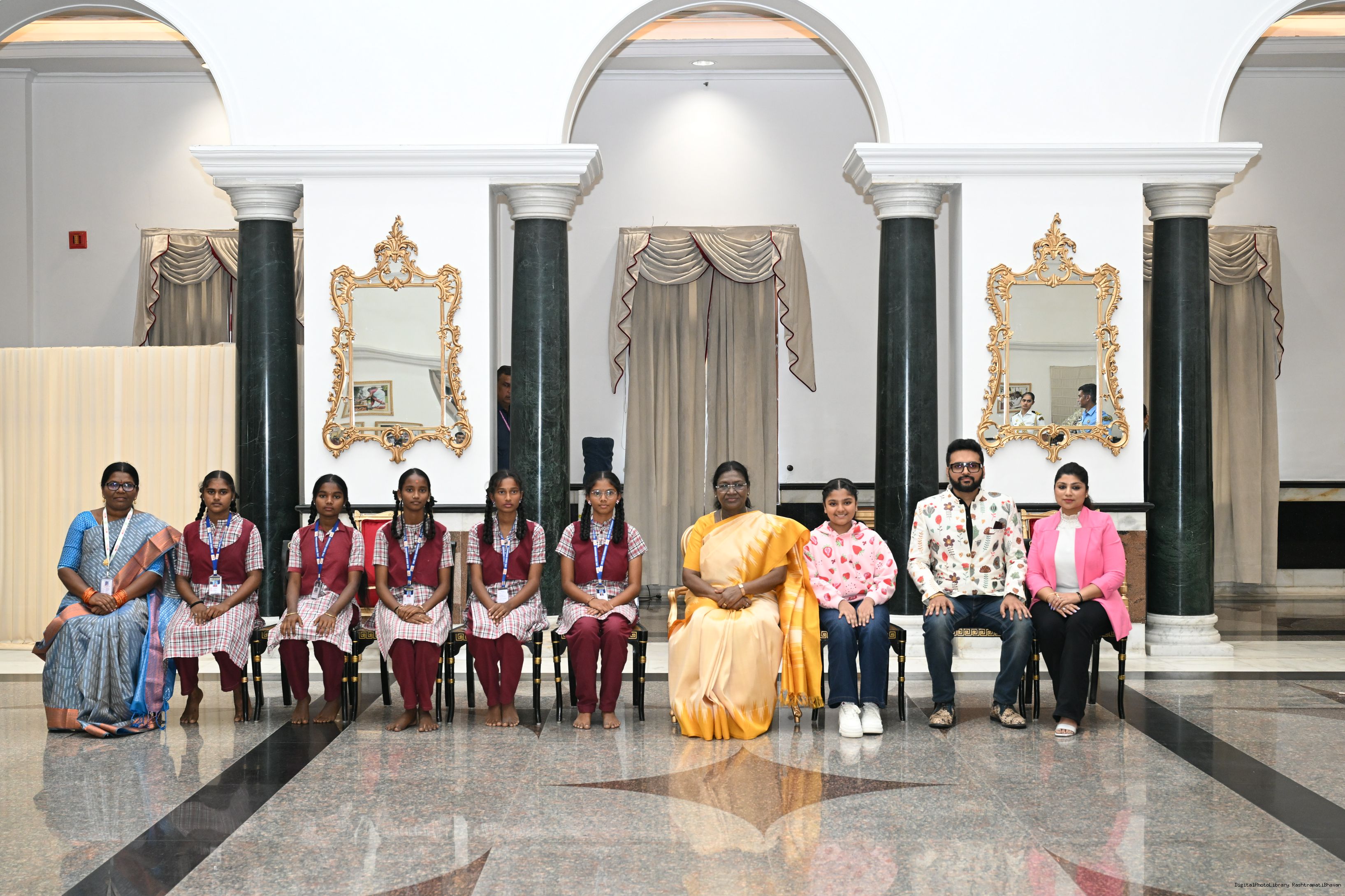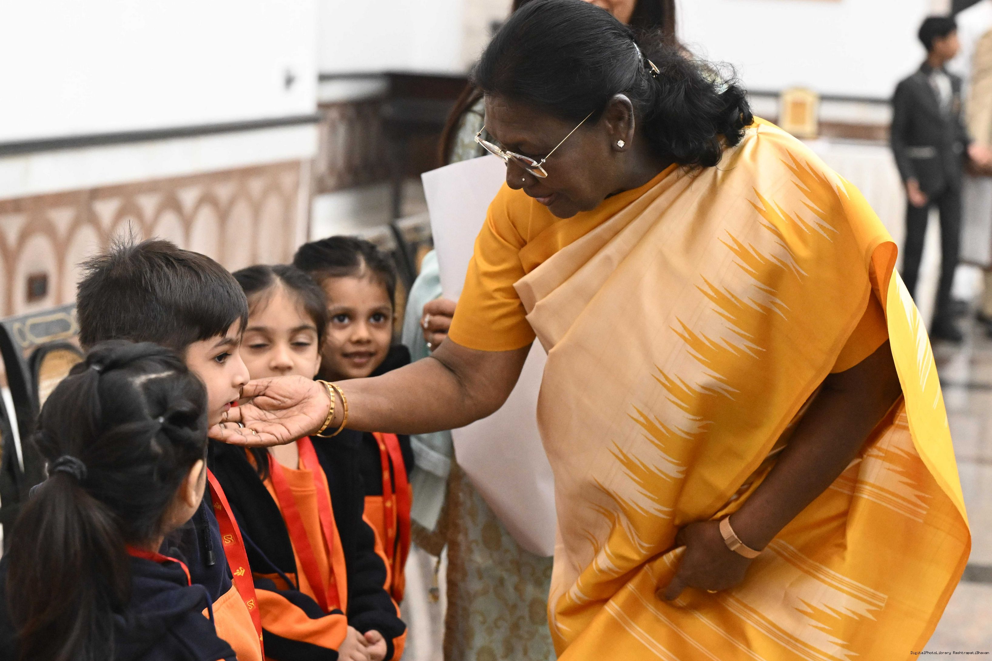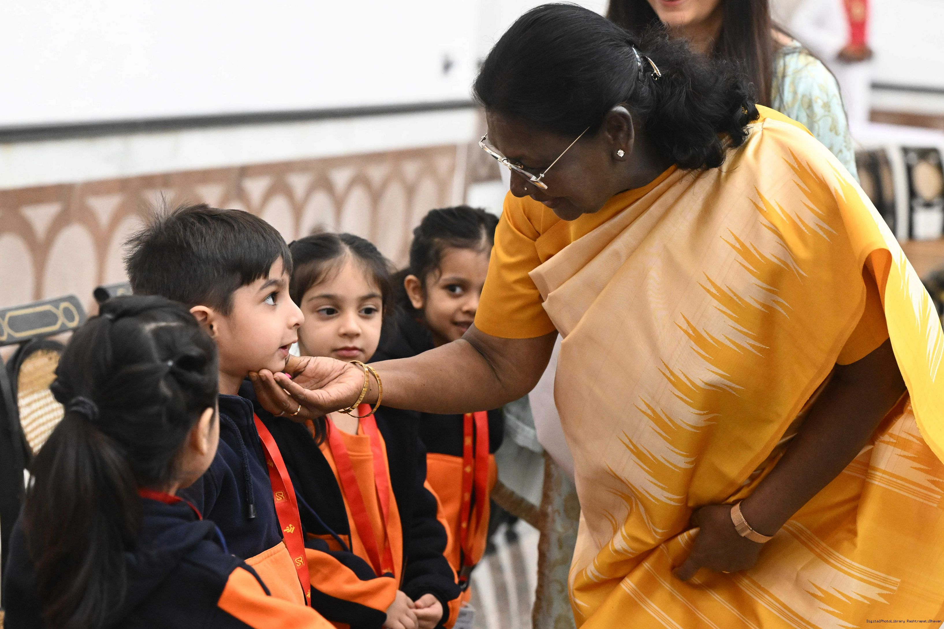 | Caption: | On the occasion of Children's Day, The President of India, Smt Droupadi Murmu interacted with children from various schools and organisations at Rashtrapati Bhavan Cultural Centre on November 14, 2025. |