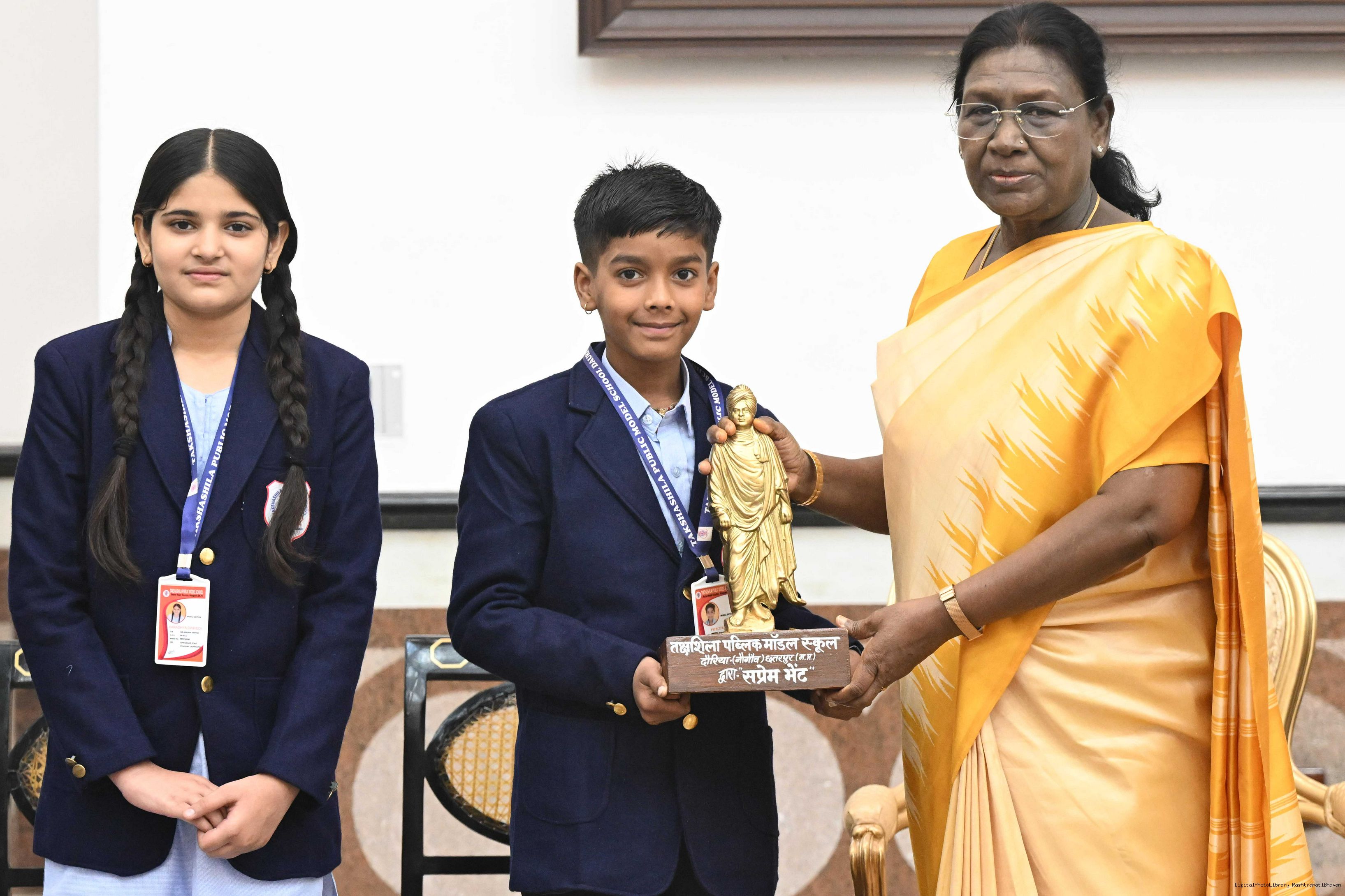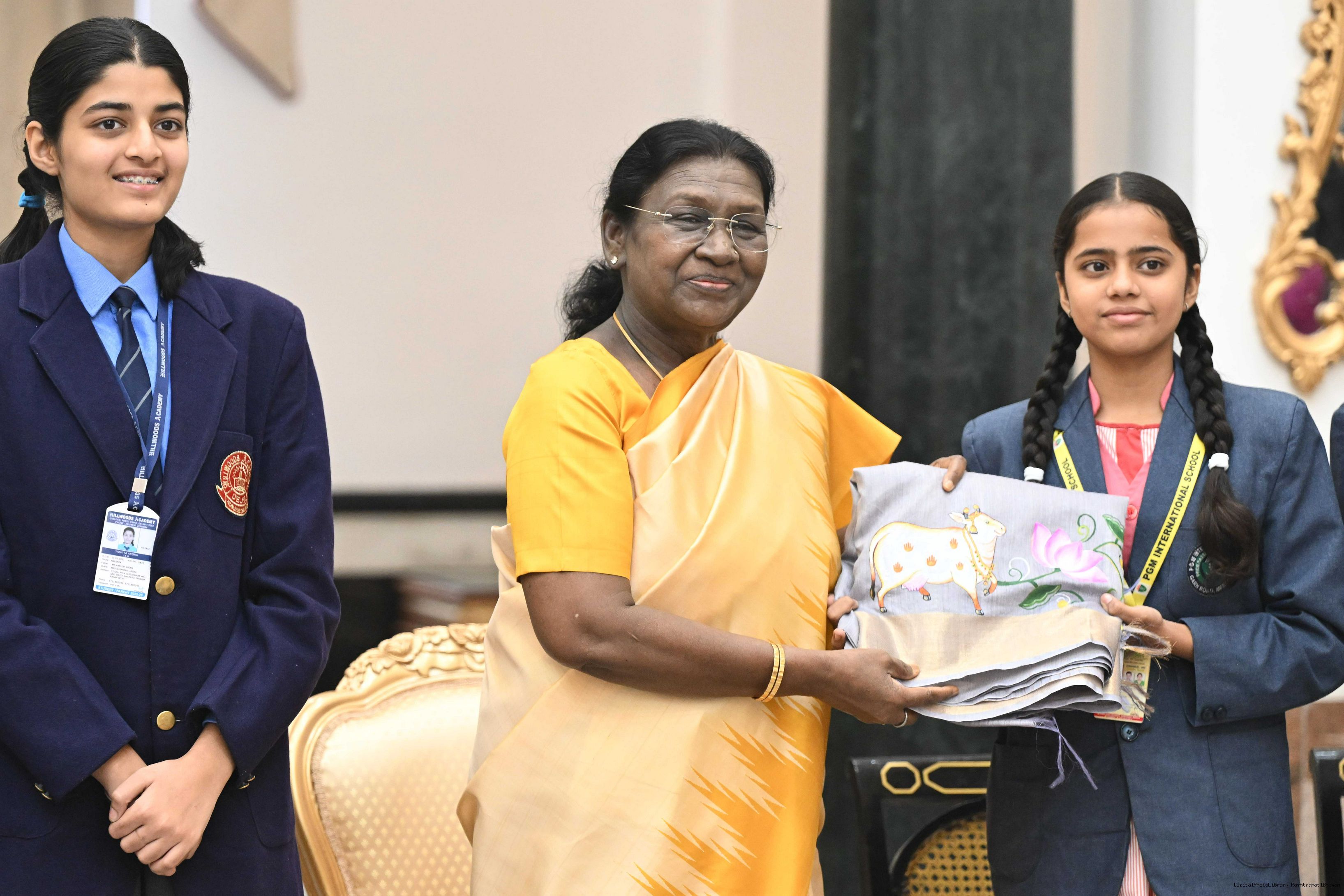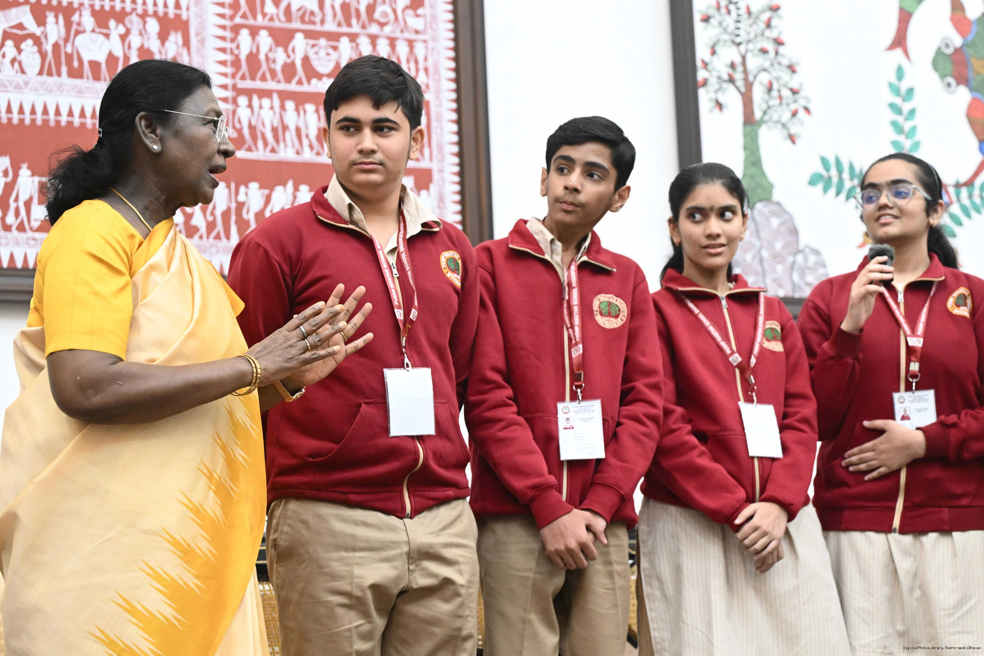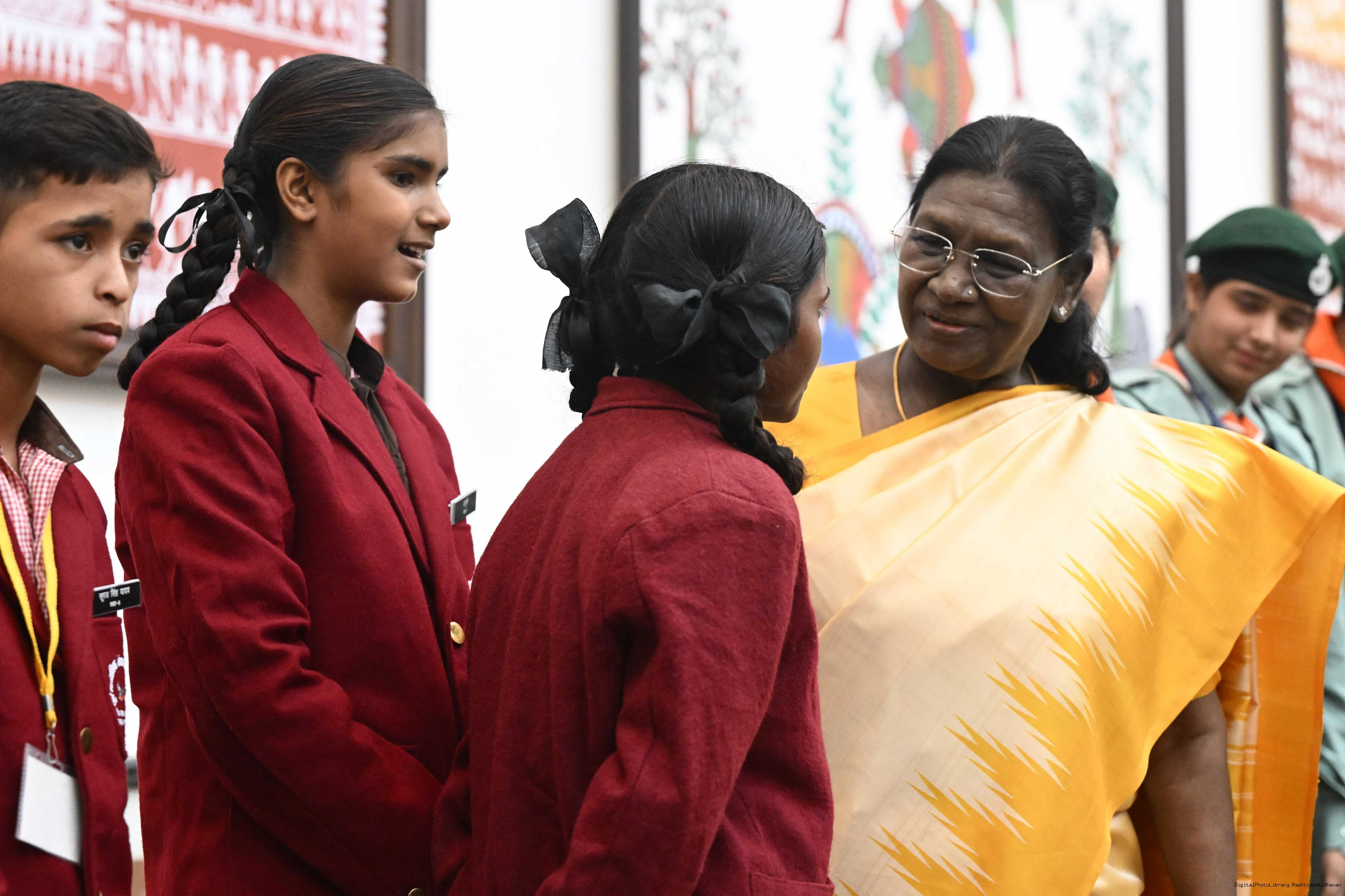 | Caption: | On the occasion of Children's Day, The President of India, Smt Droupadi Murmu interacted with children from various schools and organisations at Rashtrapati Bhavan Cultural Centre on November 14, 2025. |