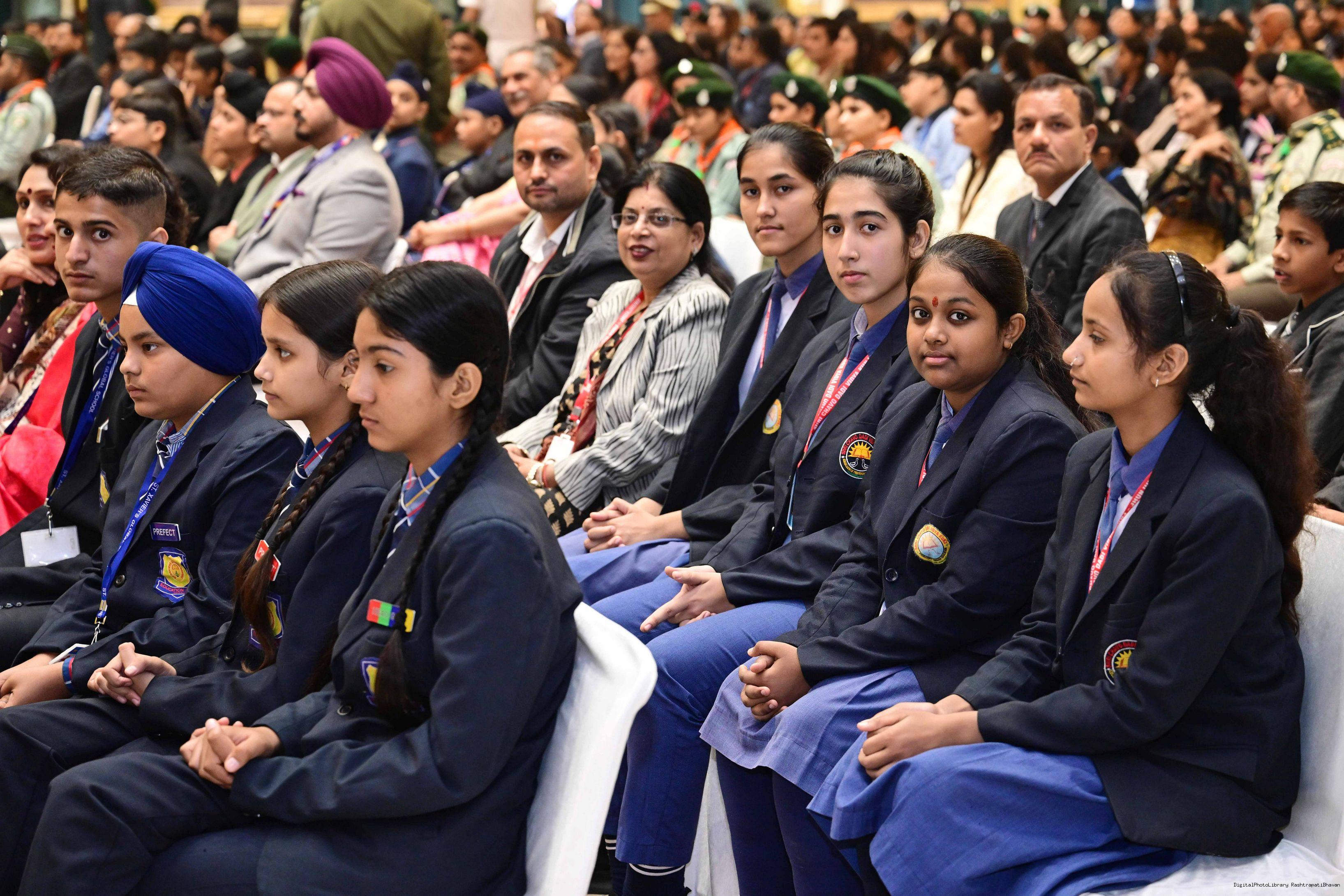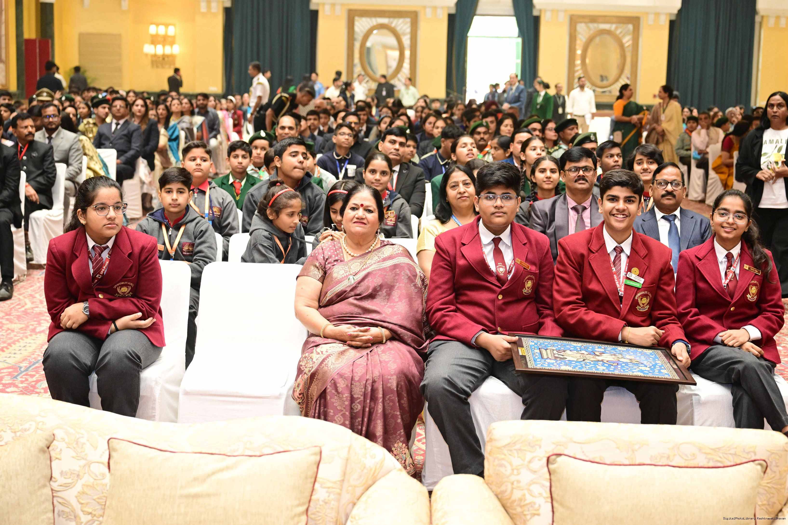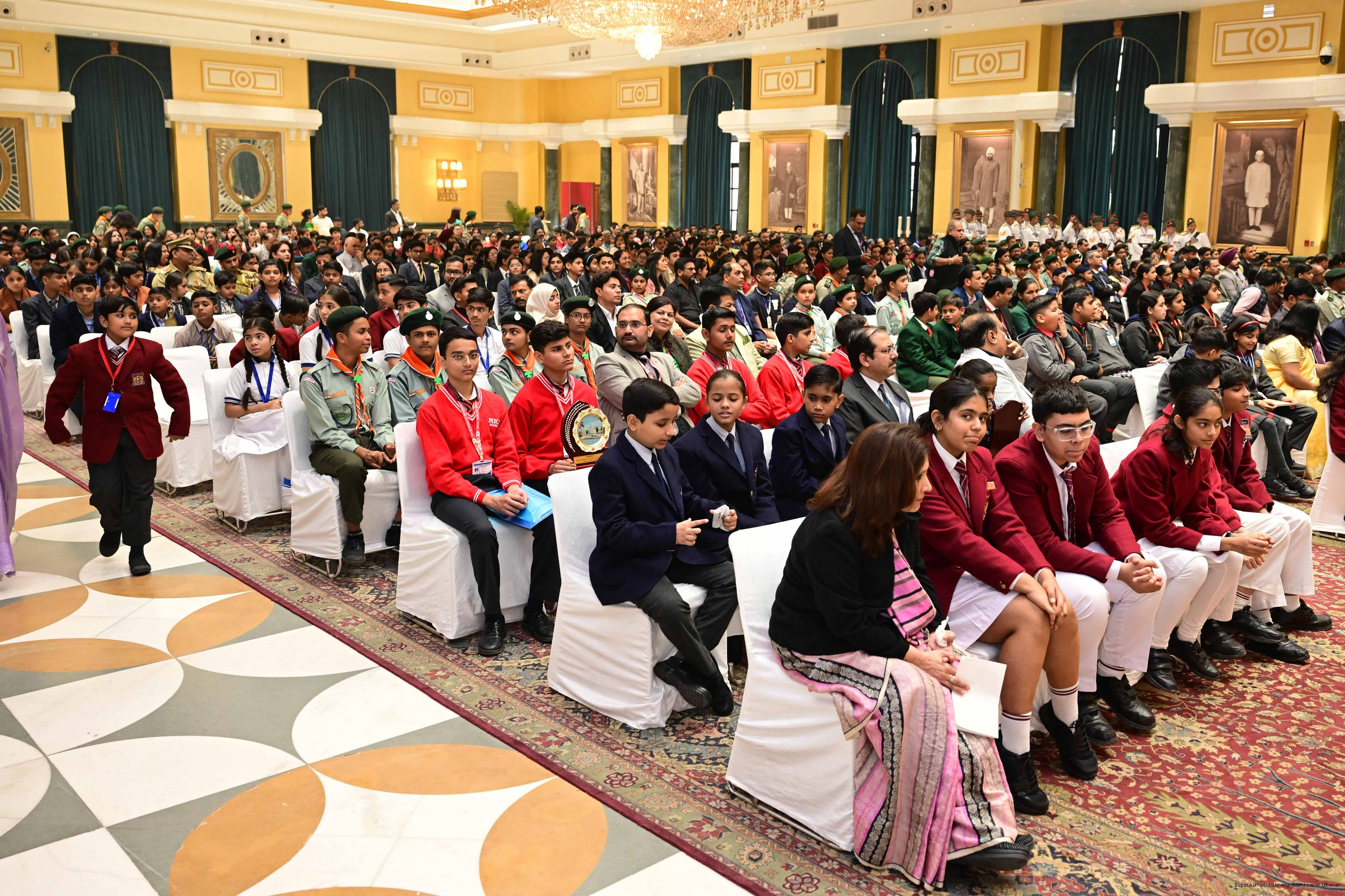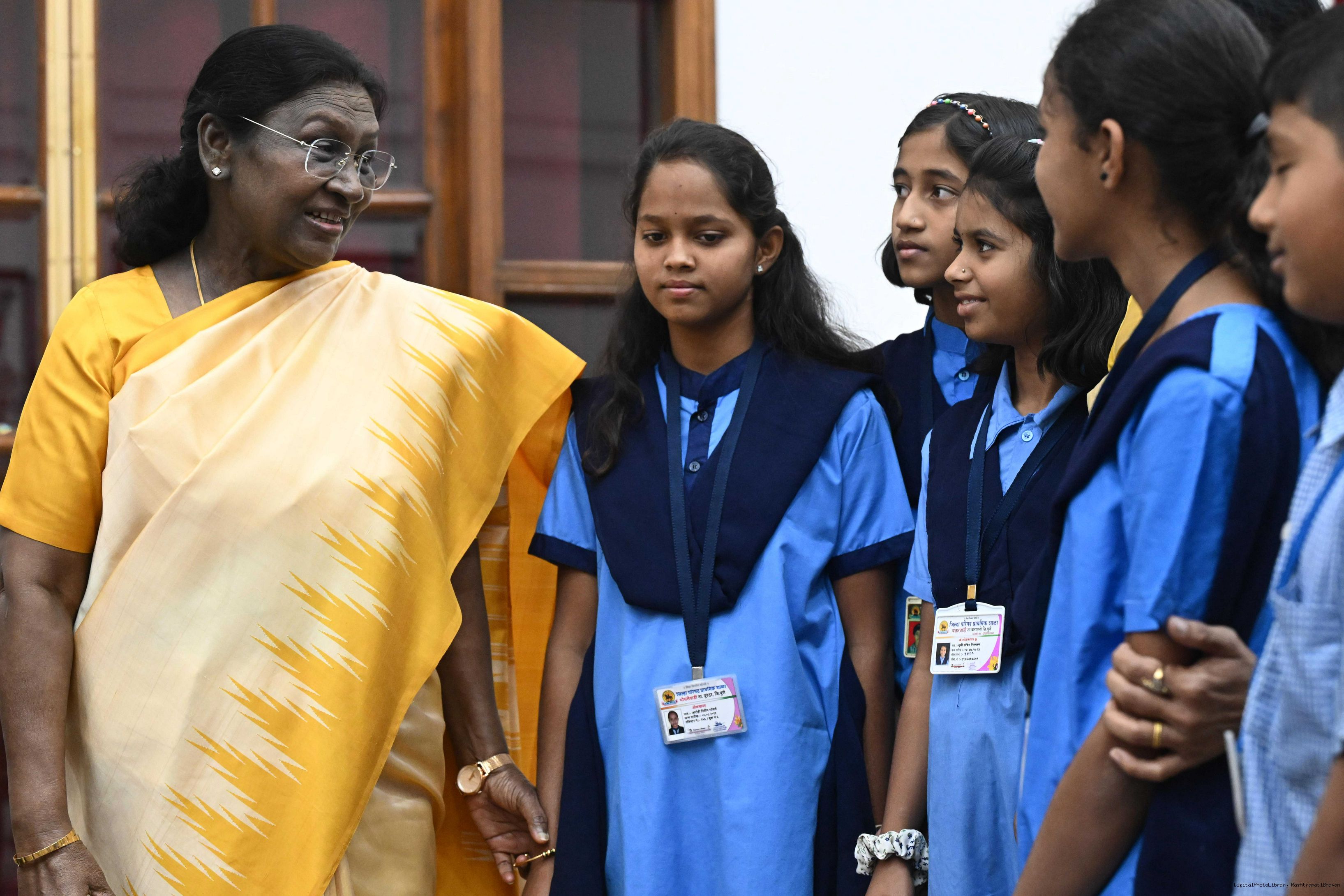 | Caption: | On the occasion of Children's Day, The President of India, Smt Droupadi Murmu interacted with children from various schools and organisations at Rashtrapati Bhavan Cultural Centre on November 14, 2025. |