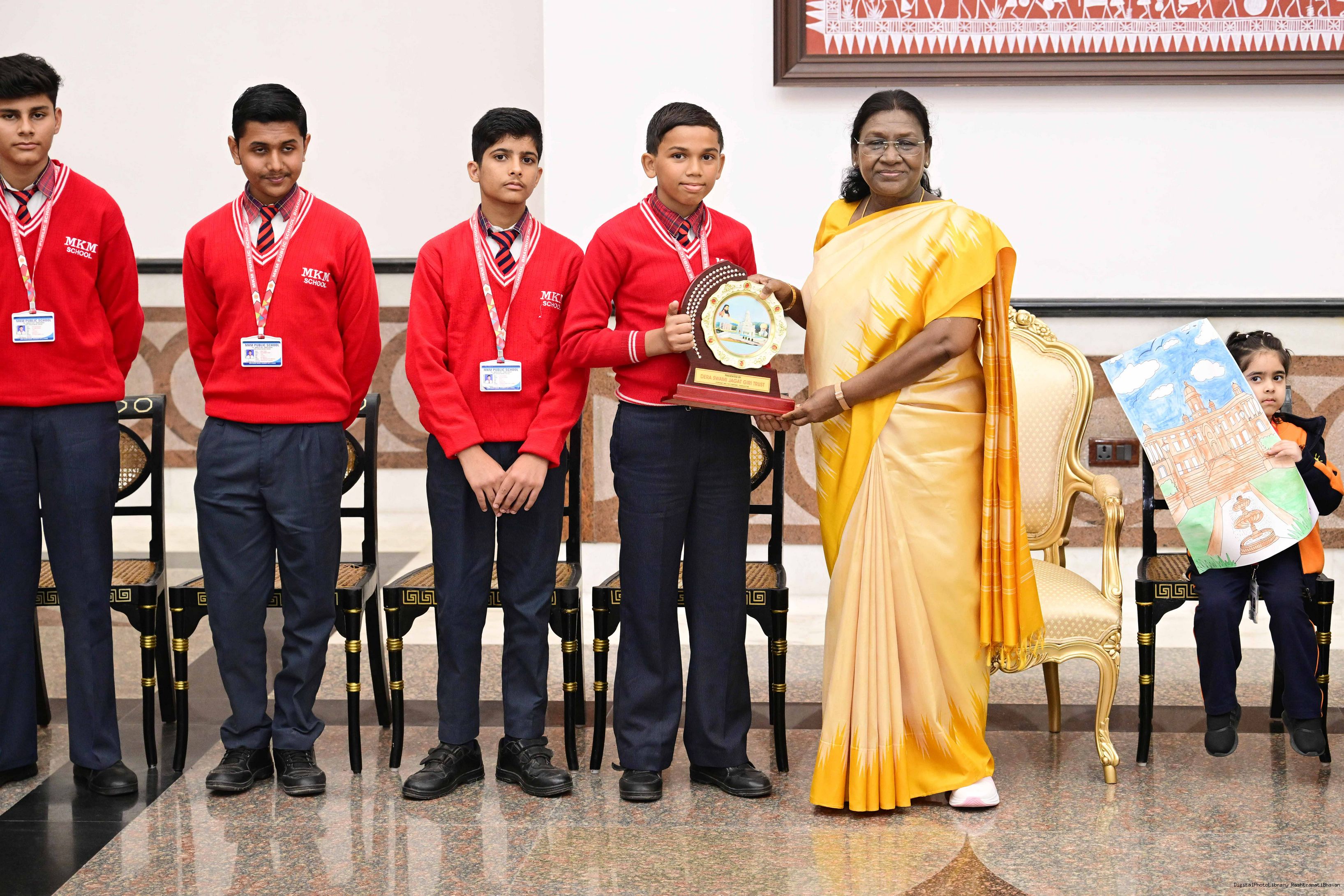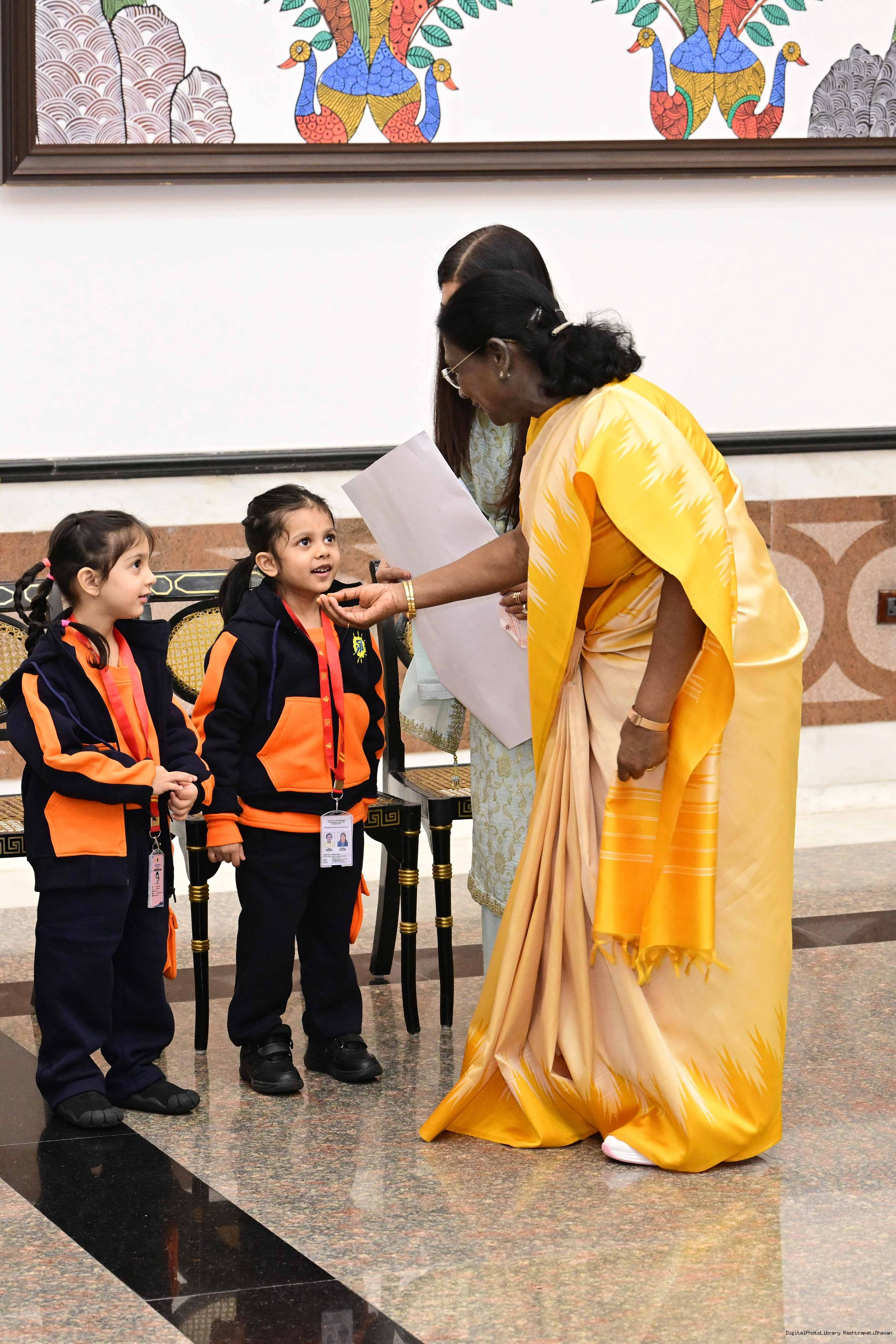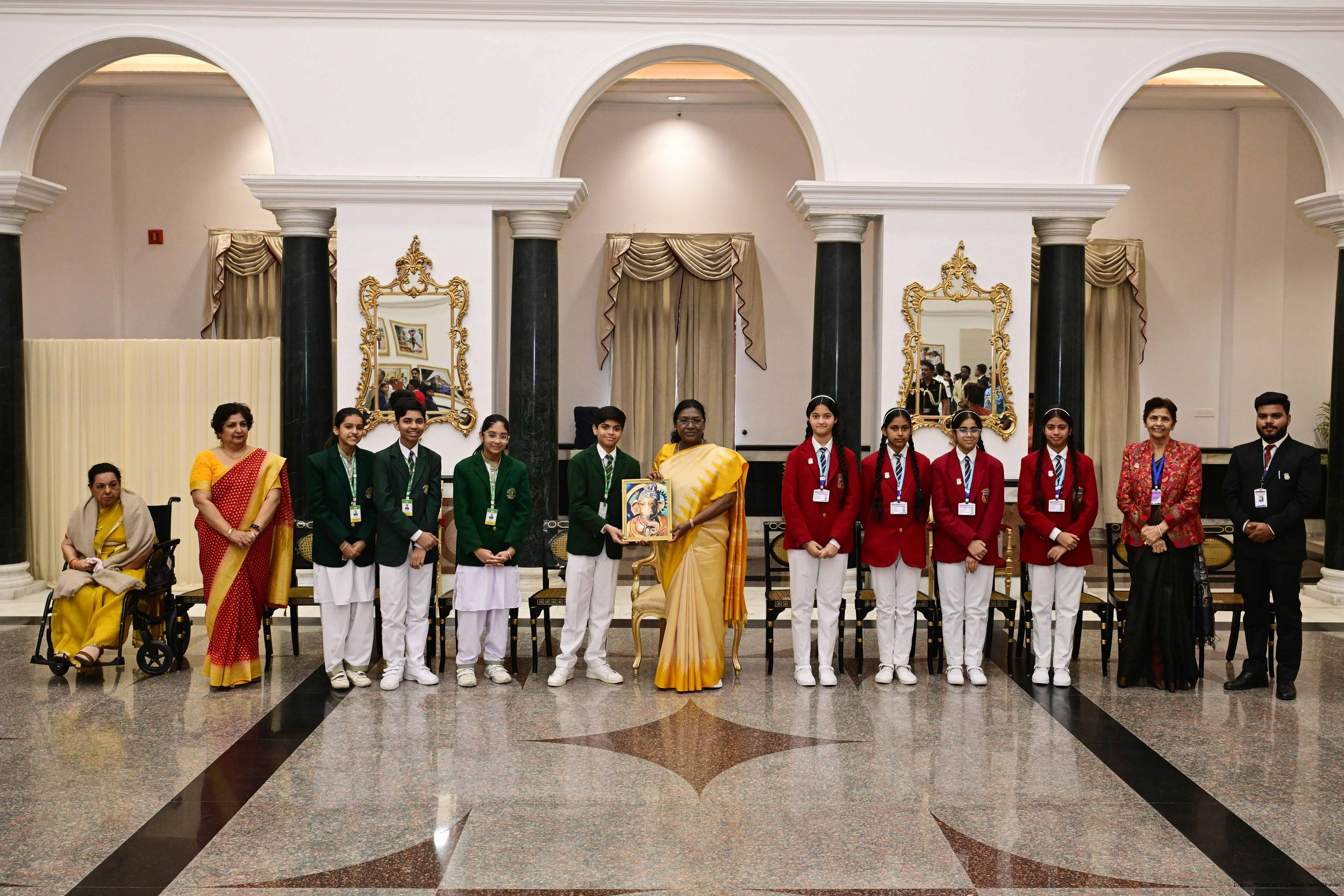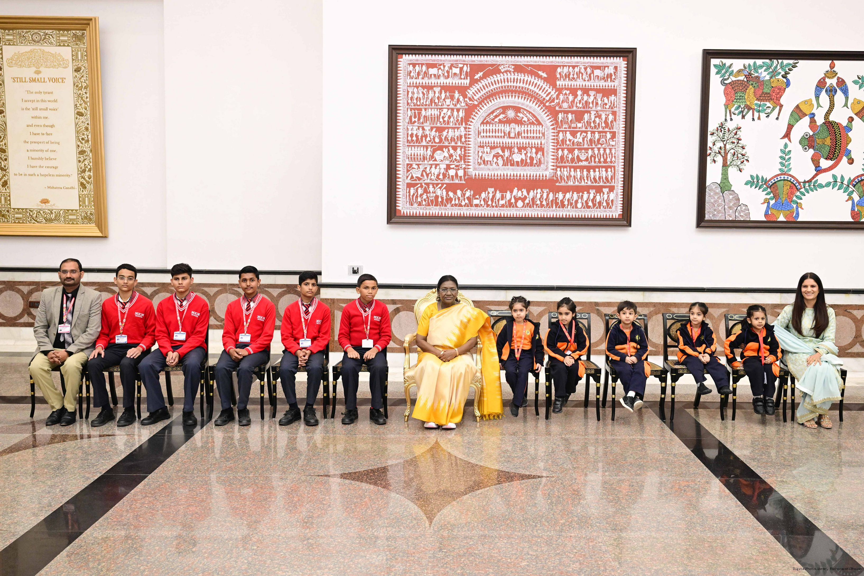| Caption: | On the occasion of Children's Day, The President of India, Smt Droupadi Murmu interacted with children from various schools and organisations at Rashtrapati Bhavan Cultural Centre on November 14, 2025. |