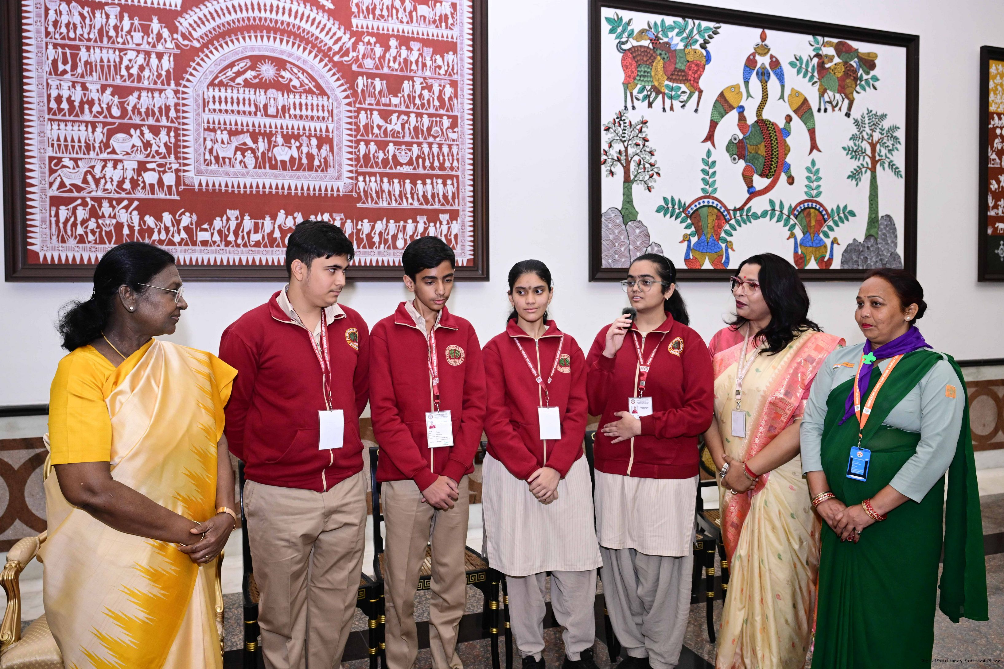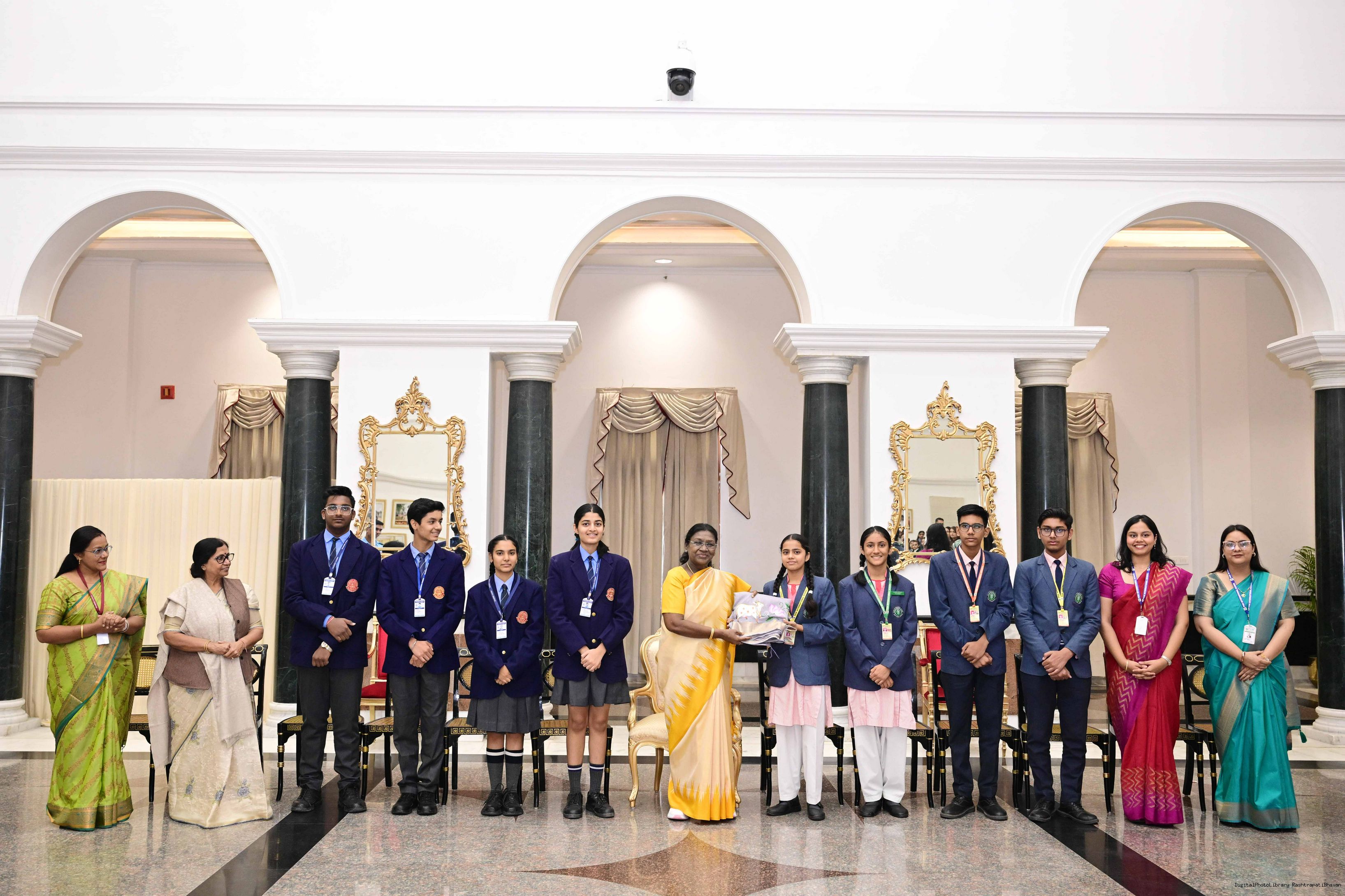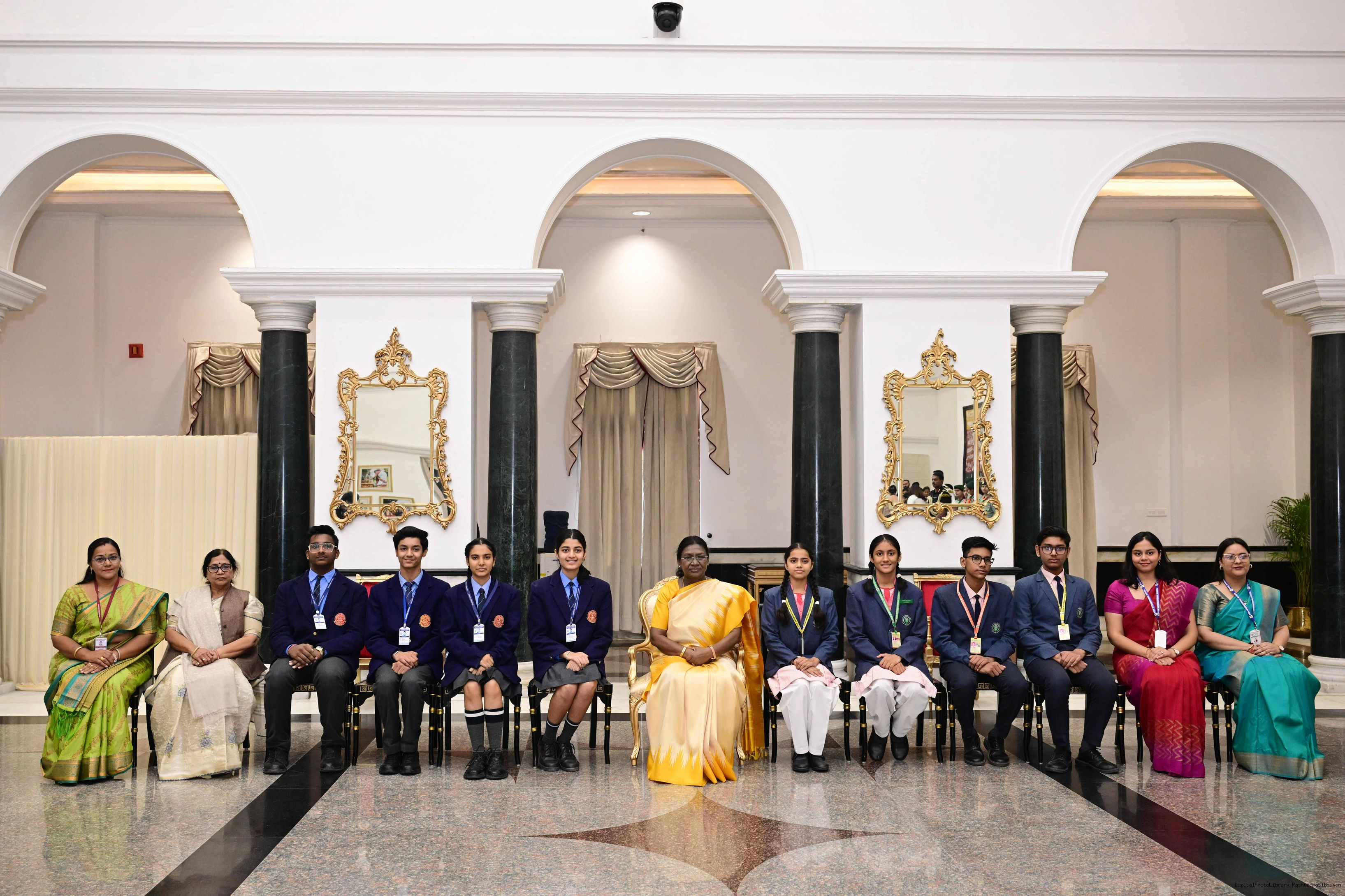 | Caption: | On the occasion of Children's Day, The President of India, Smt Droupadi Murmu interacted with children from various schools and organisations at Rashtrapati Bhavan Cultural Centre on November 14, 2025. |