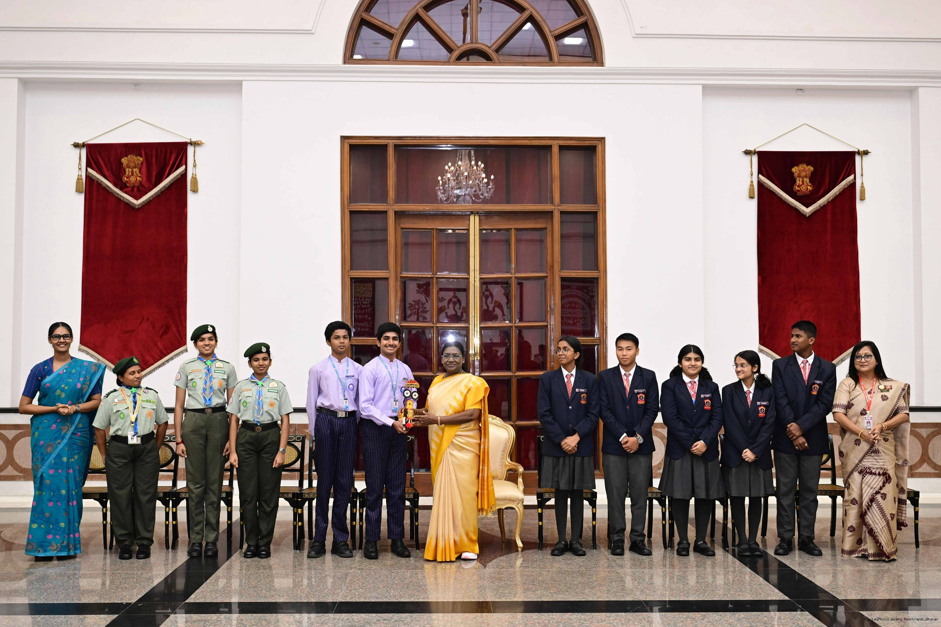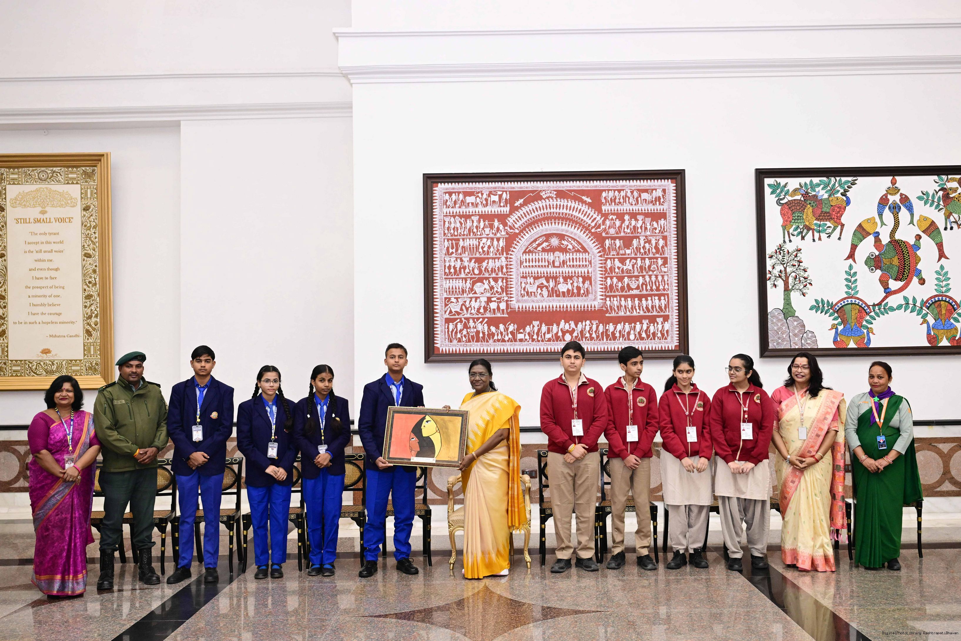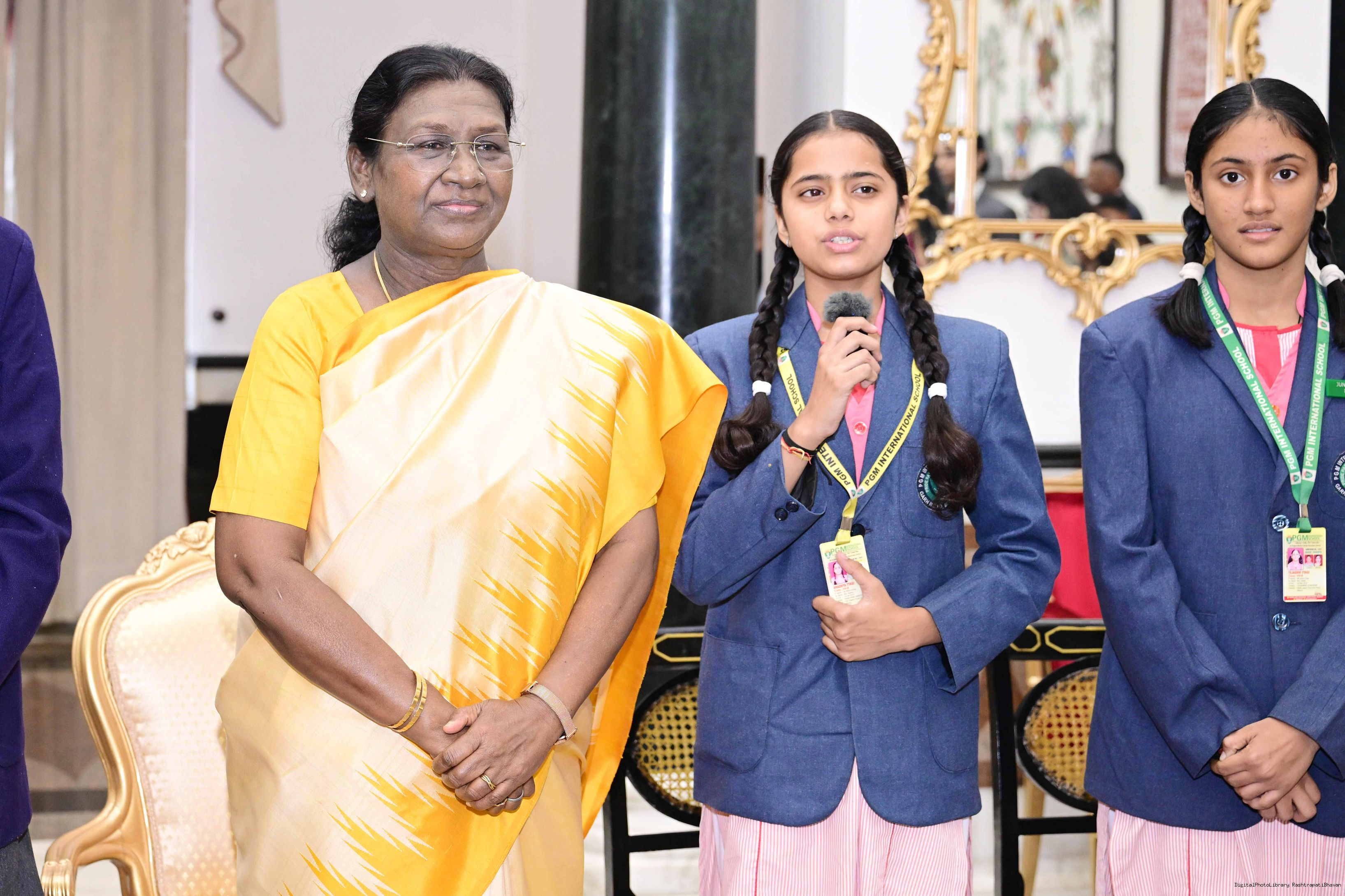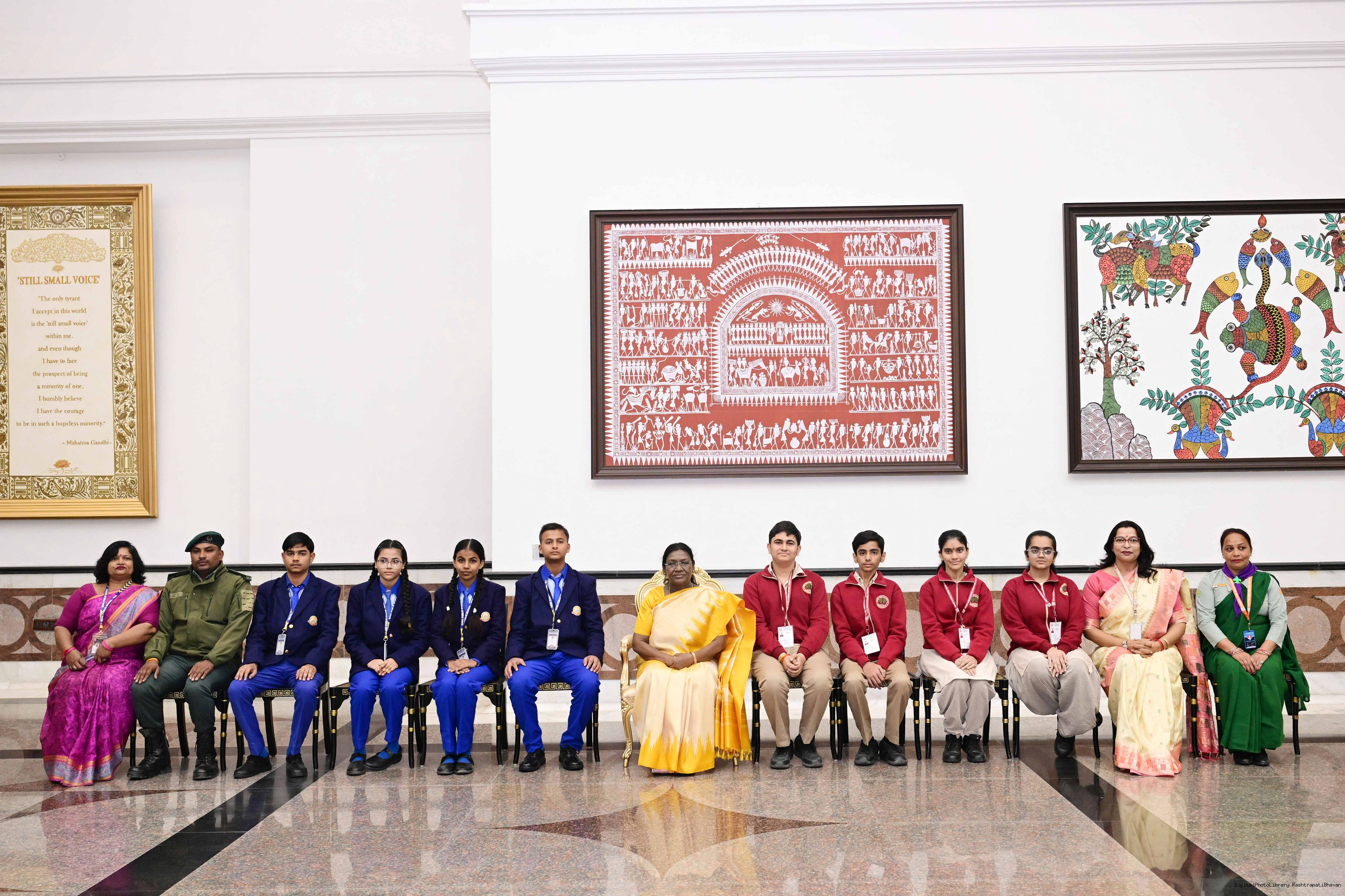 | Caption: | On the occasion of Children's Day, The President of India, Smt Droupadi Murmu interacted with children from various schools and organisations at Rashtrapati Bhavan Cultural Centre on November 14, 2025. |