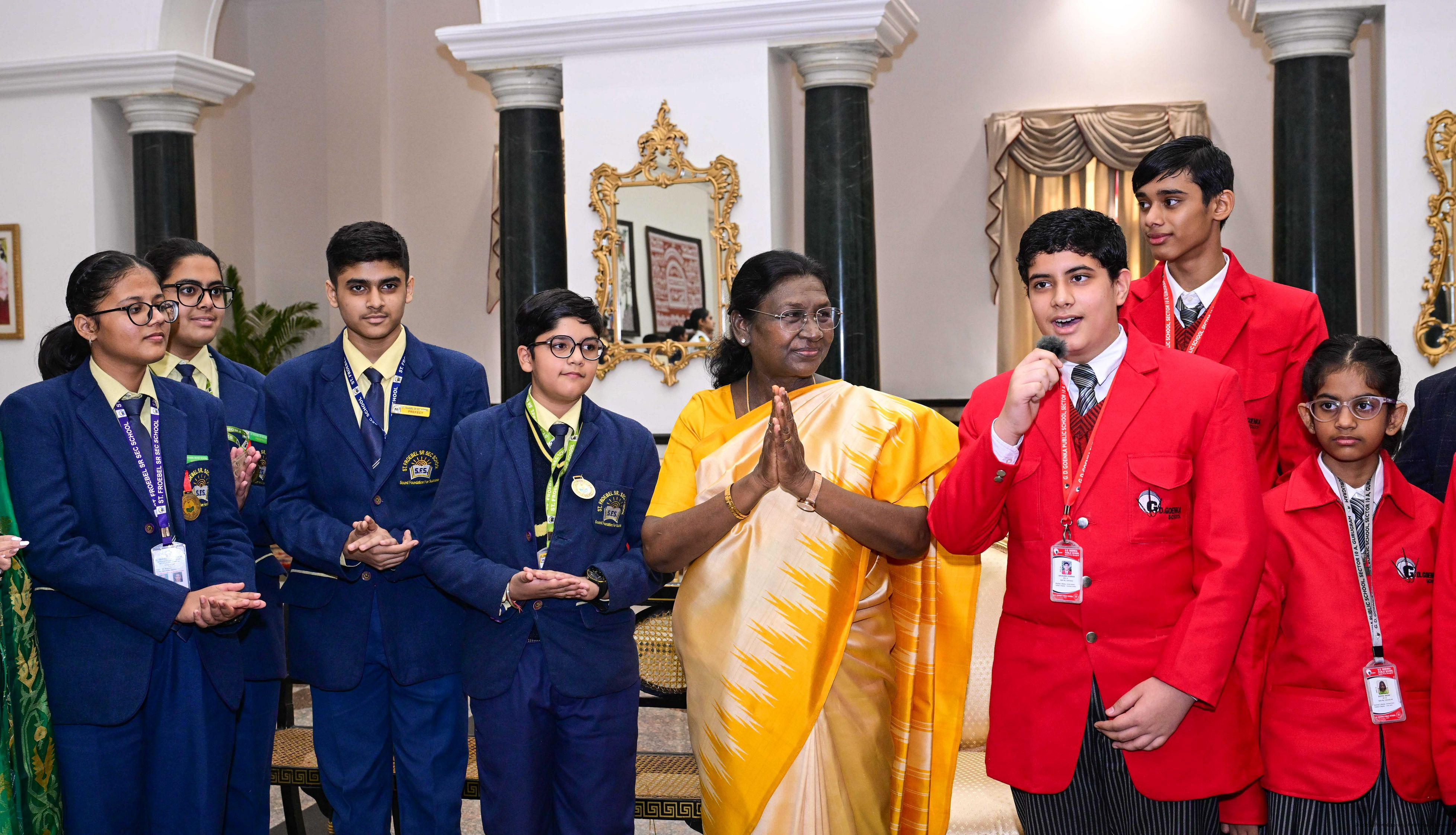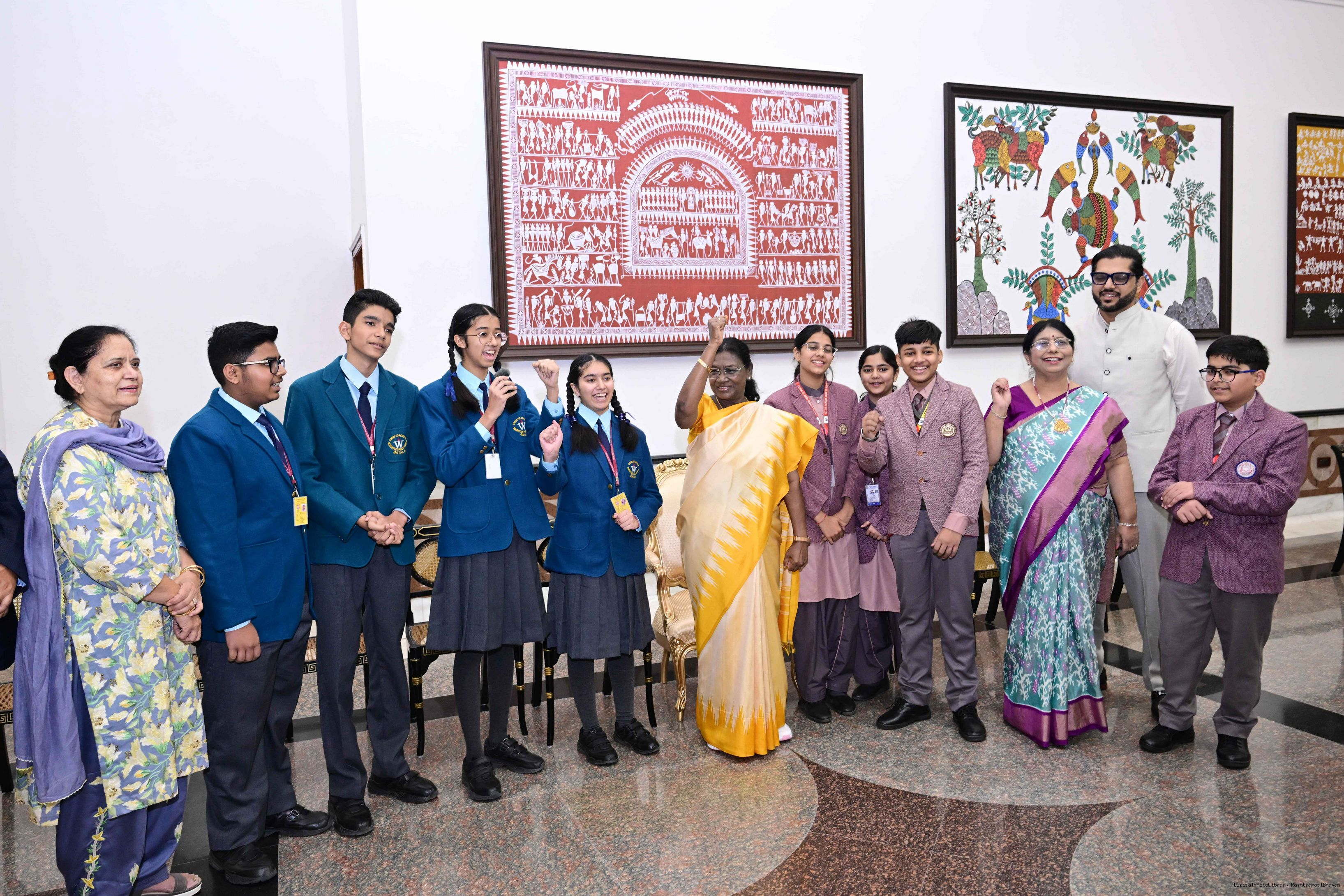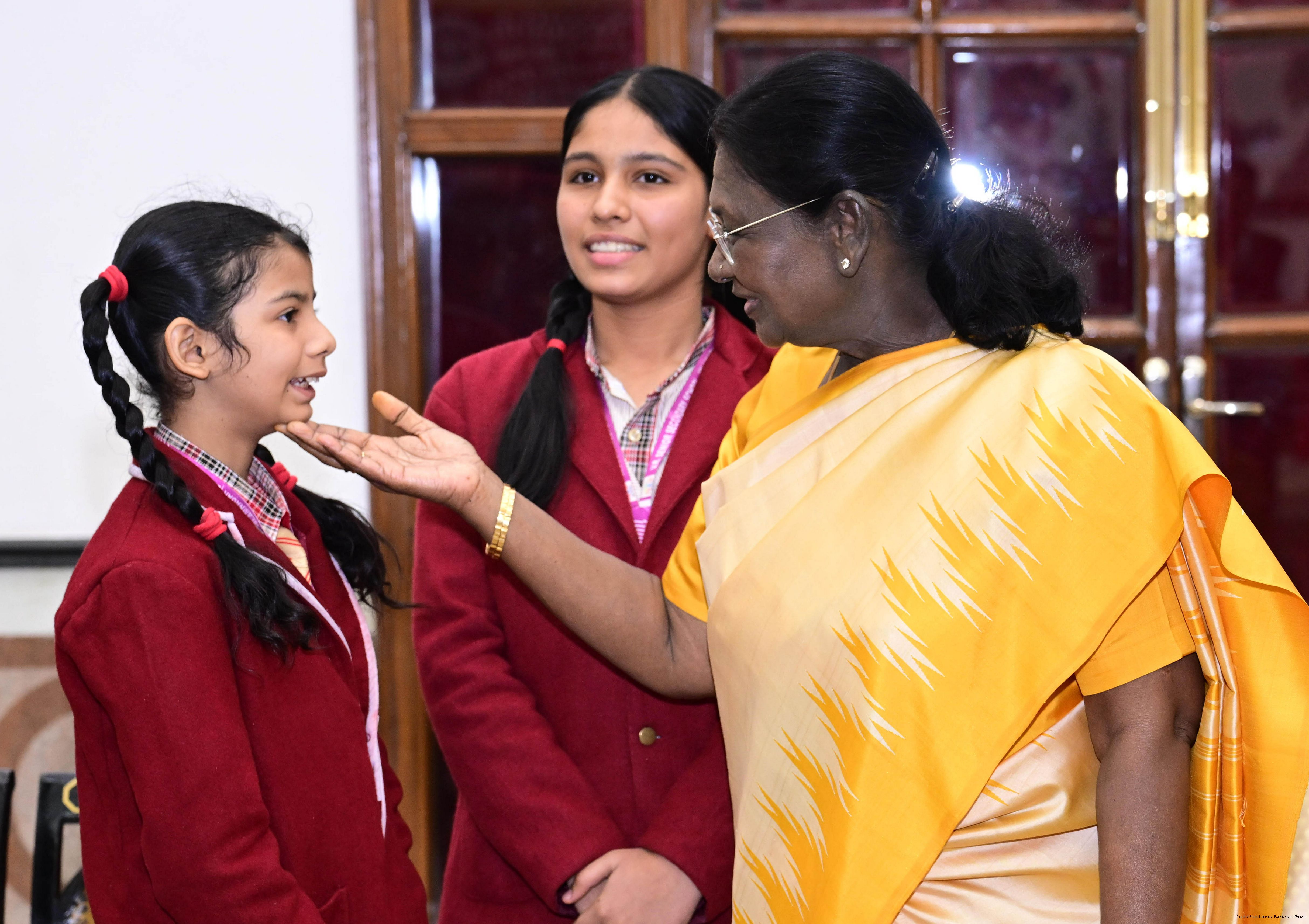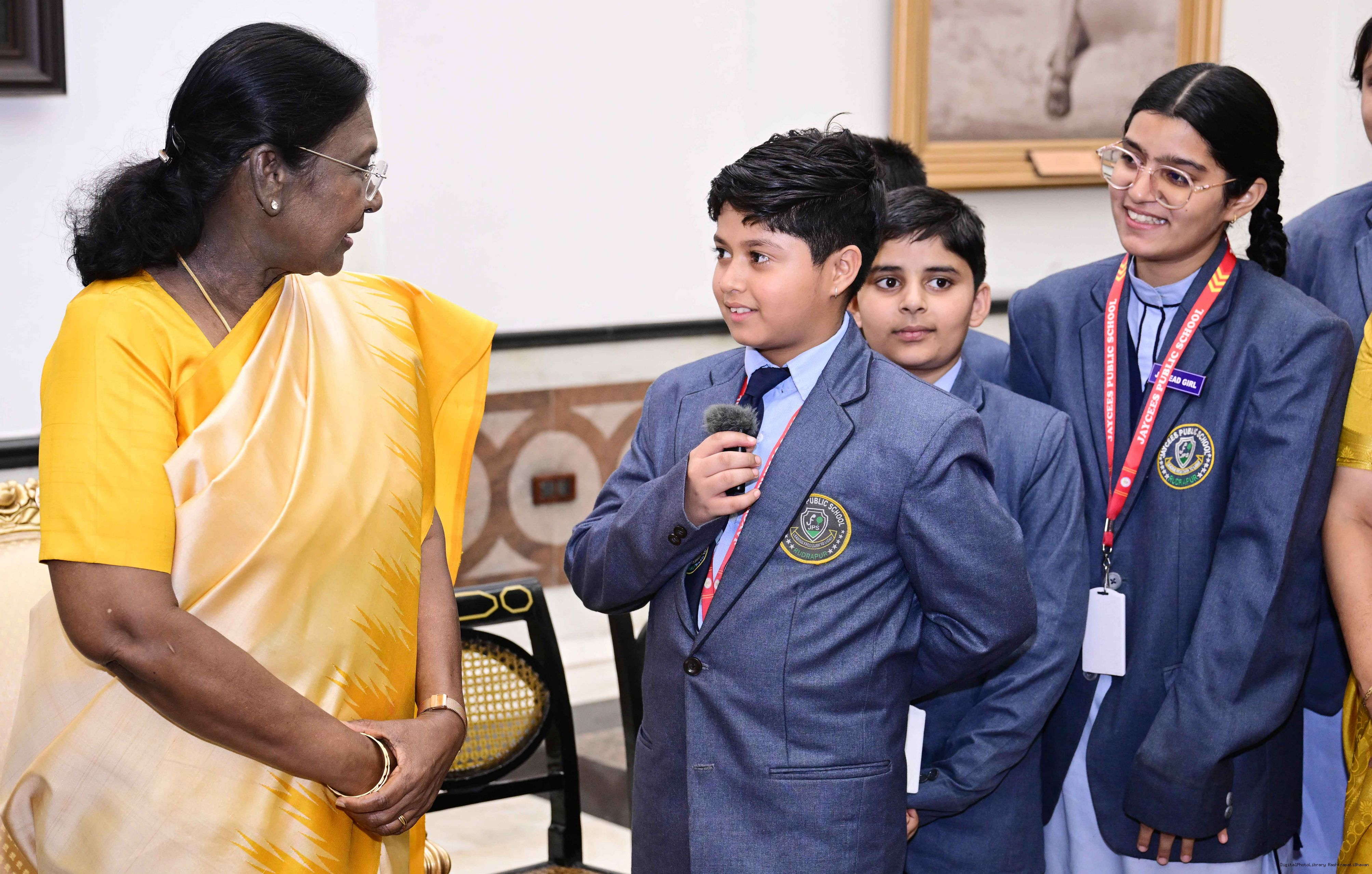 | Caption: | On the occasion of Children's Day, The President of India, Smt Droupadi Murmu interacted with children from various schools and organisations at Rashtrapati Bhavan Cultural Centre on November 14, 2025. |