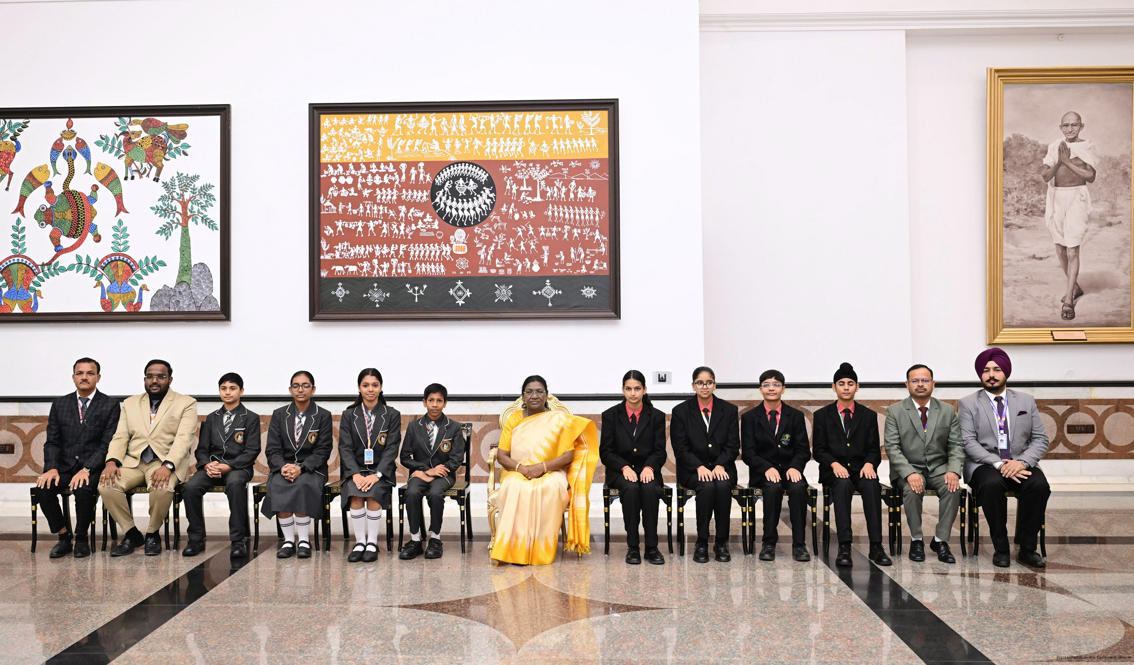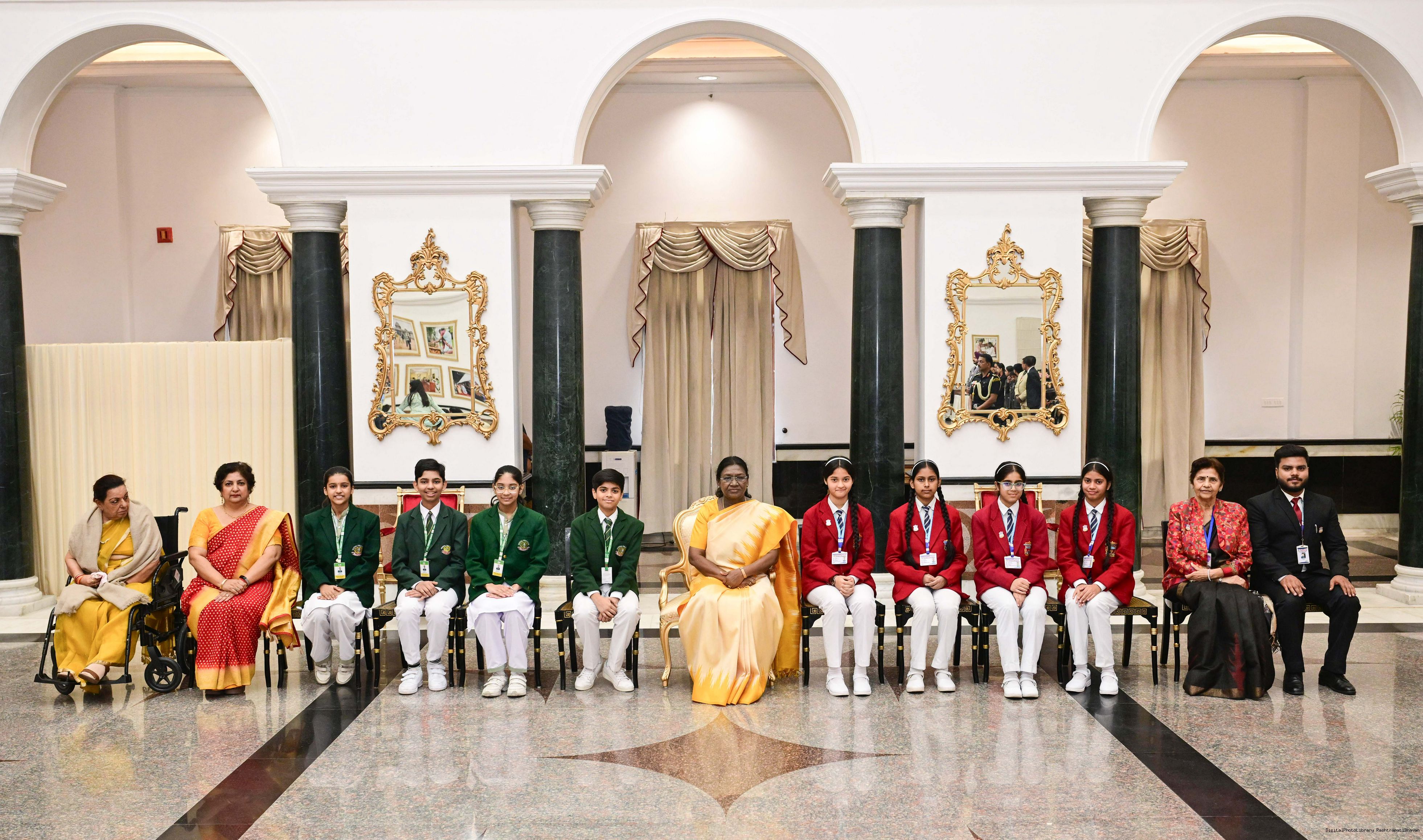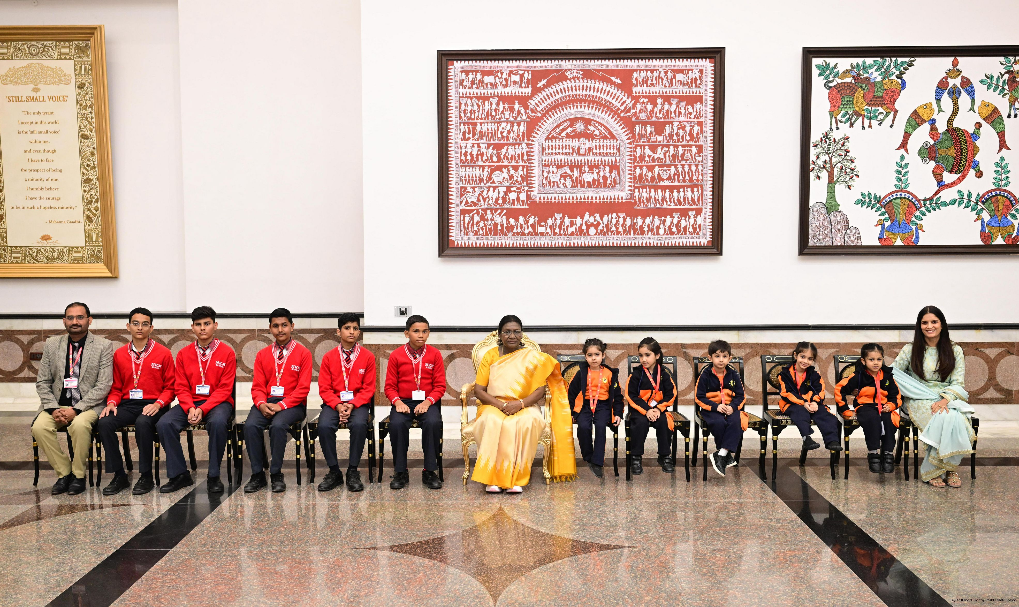 | Caption: | On the occasion of Children's Day, The President of India, Smt Droupadi Murmu interacted with children from various schools and organisations at Rashtrapati Bhavan Cultural Centre on November 14, 2025. |