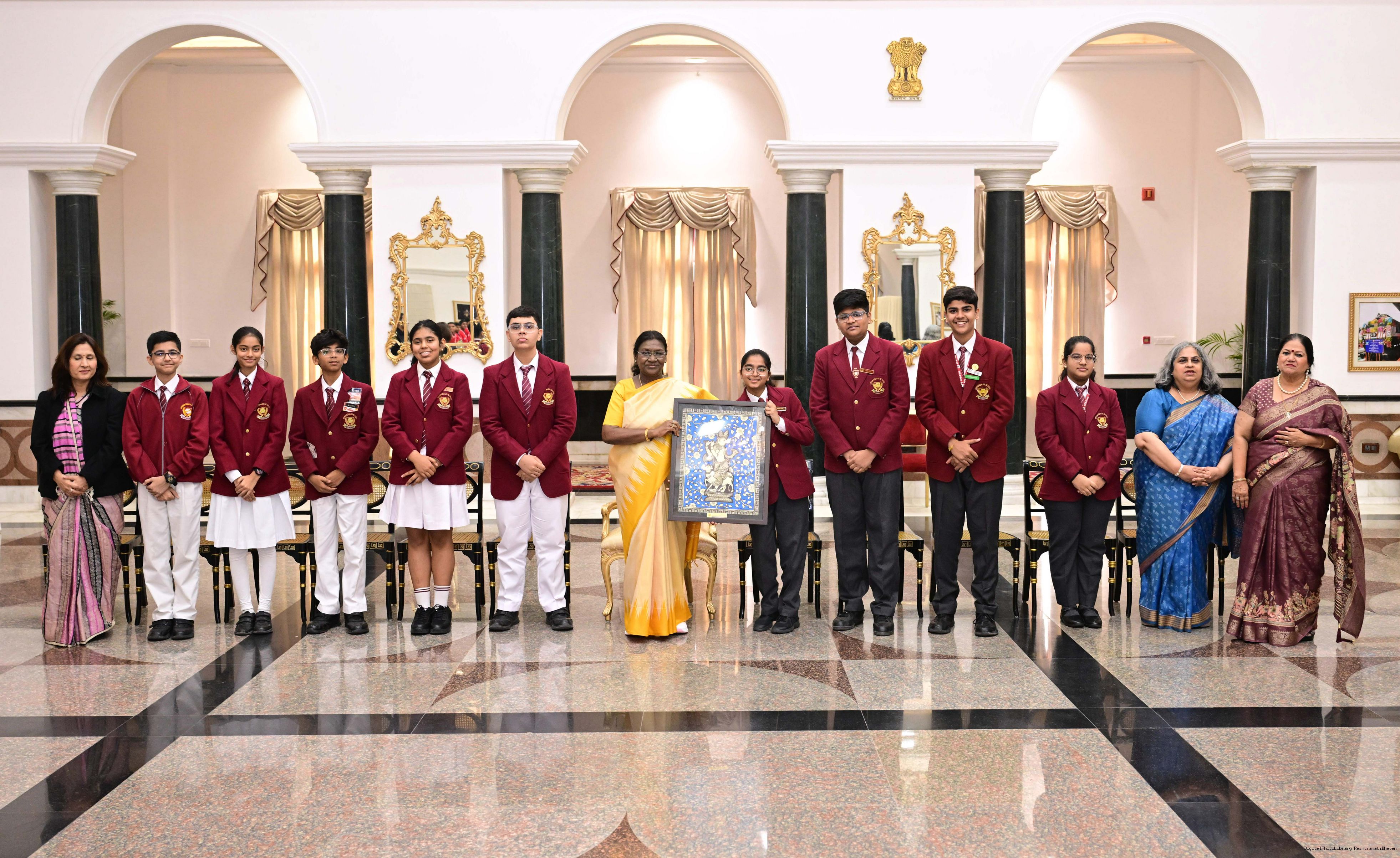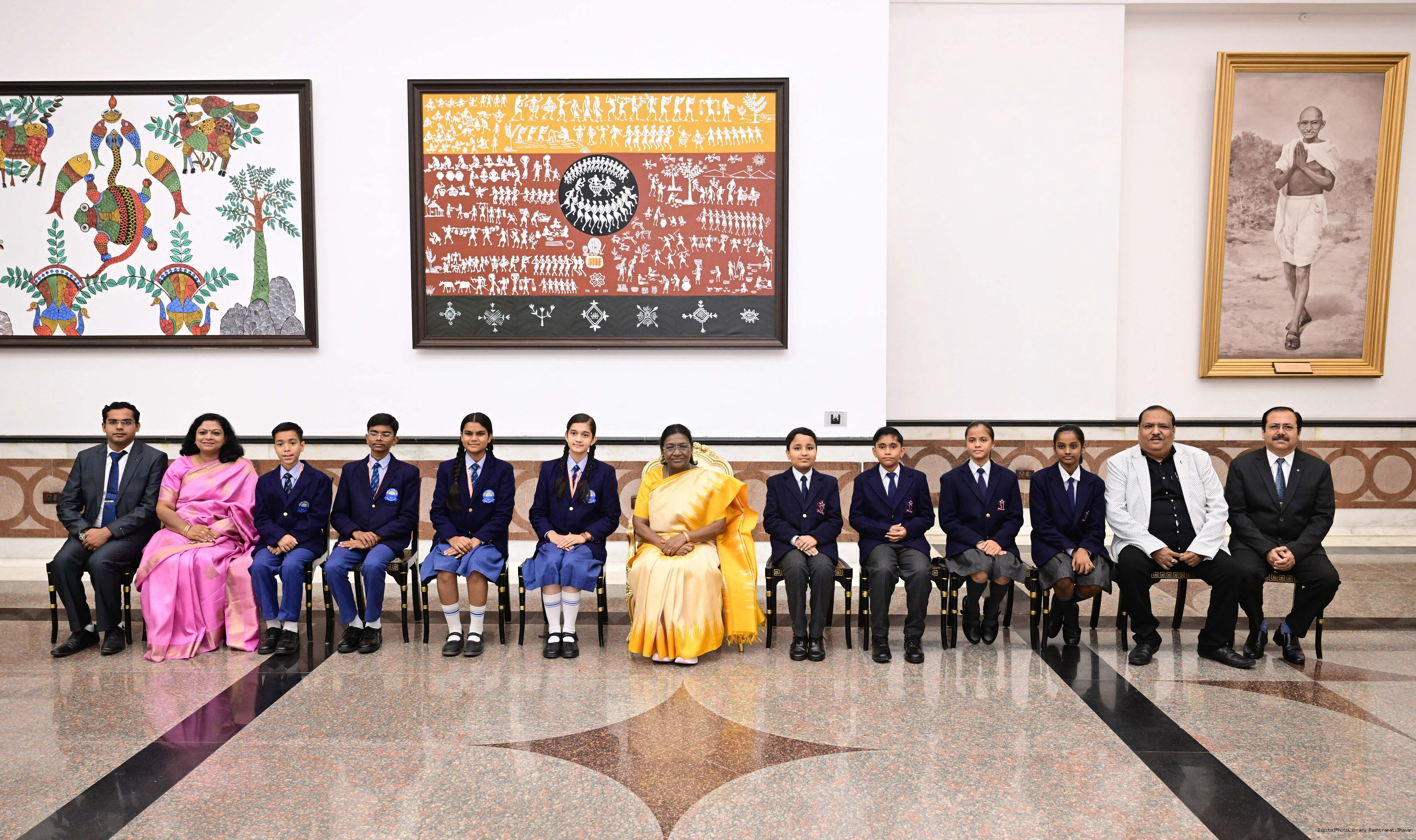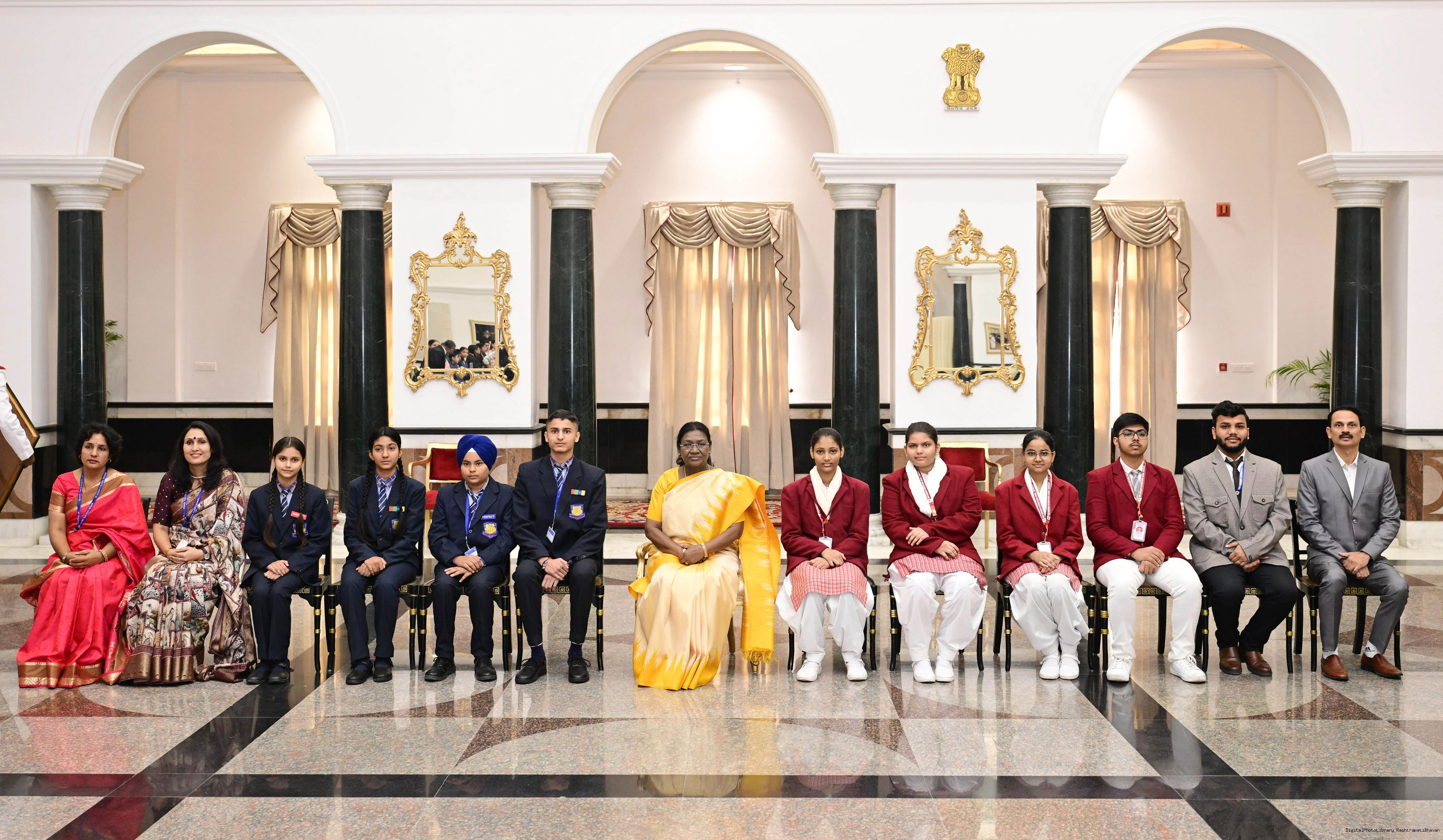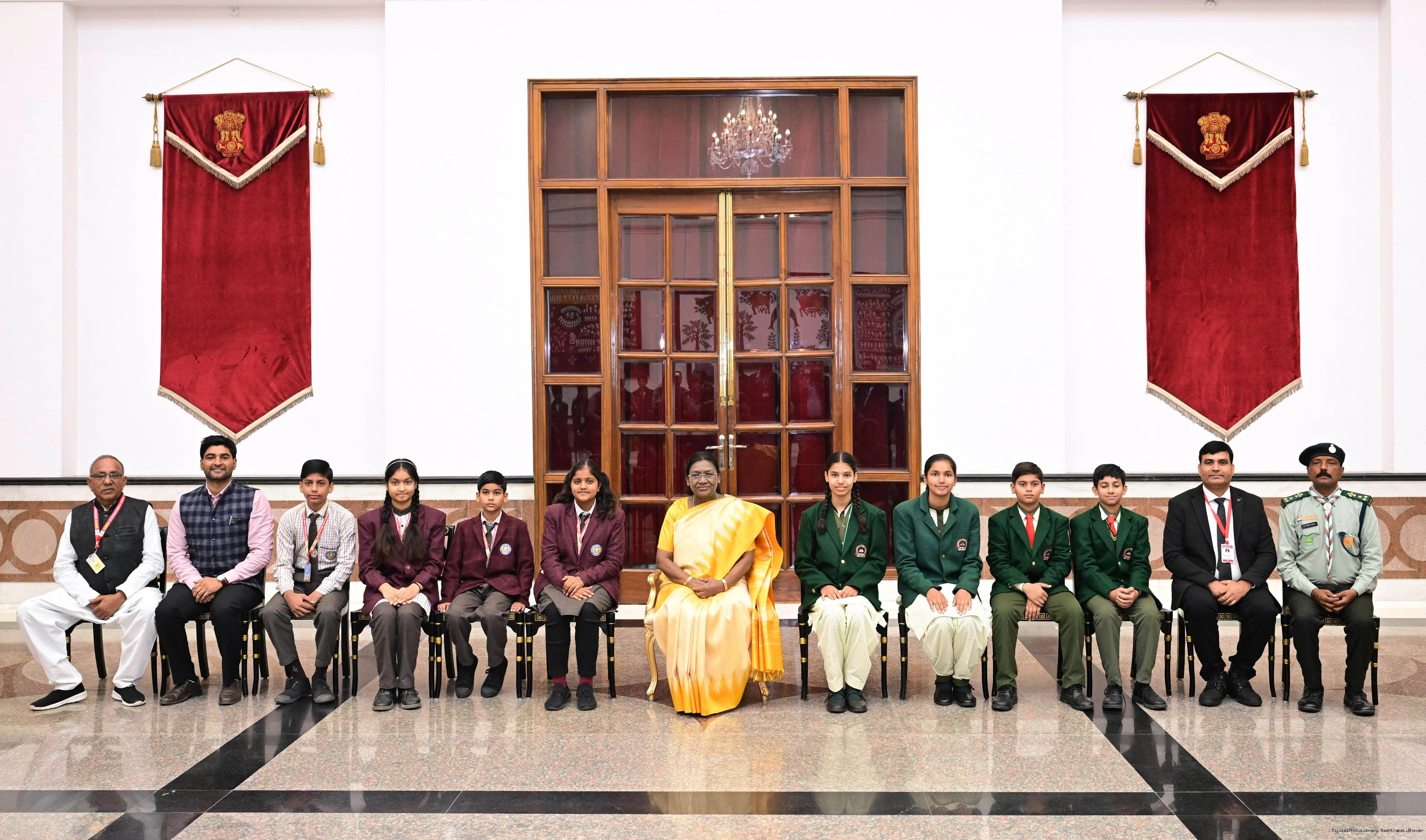 | Caption: | On the occasion of Children's Day, The President of India, Smt Droupadi Murmu interacted with children from various schools and organisations at Rashtrapati Bhavan Cultural Centre on November 14, 2025. |