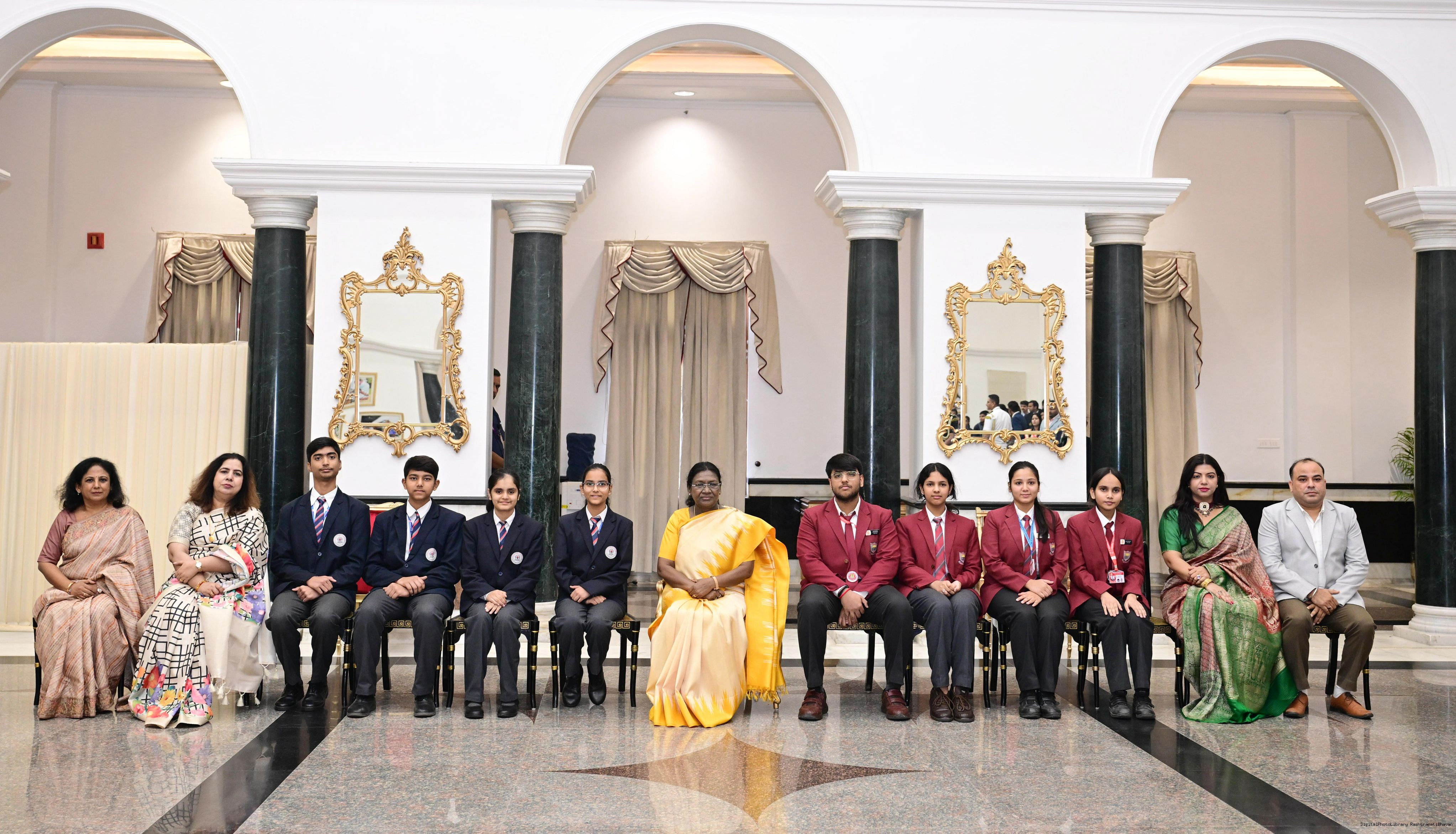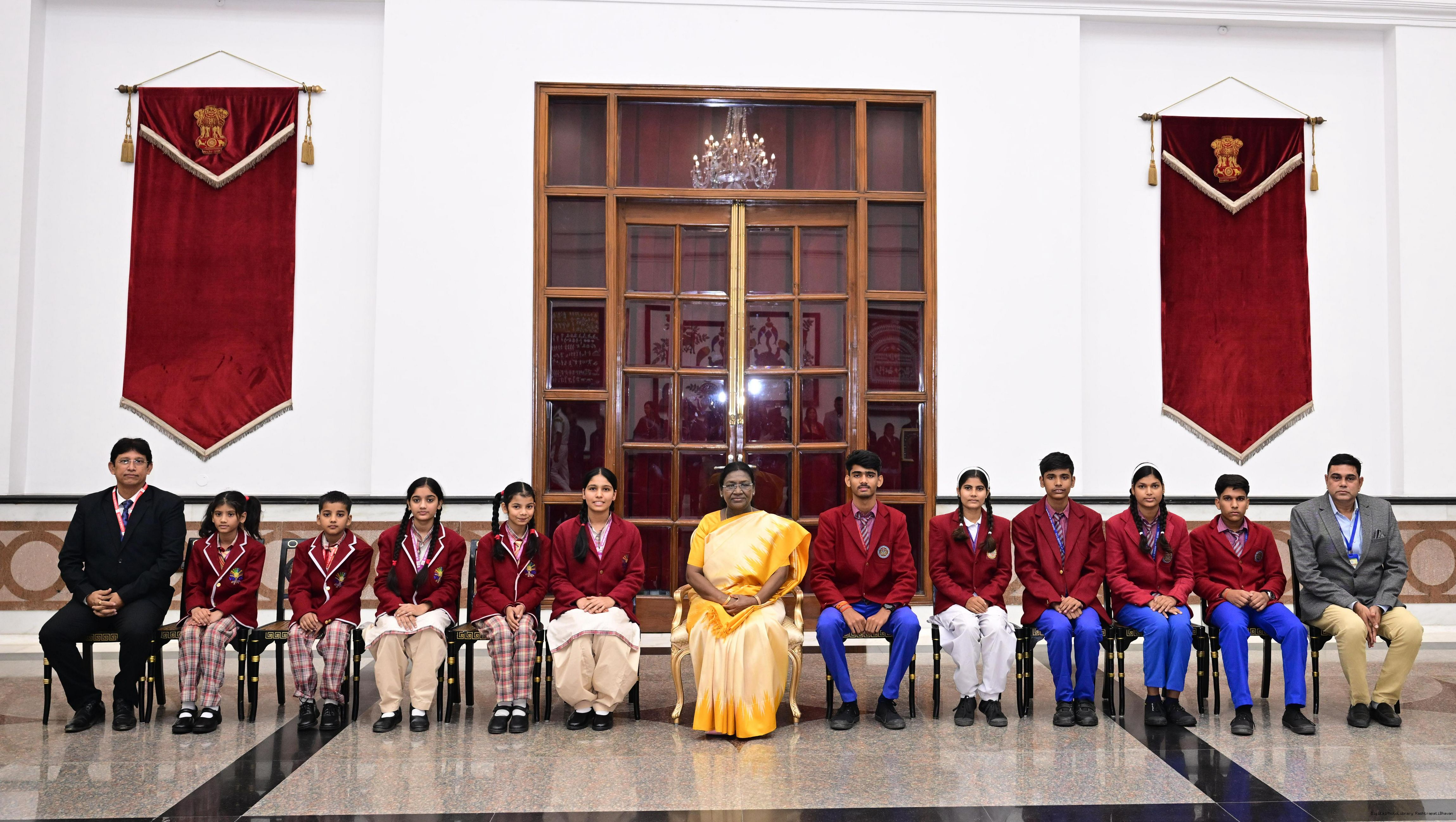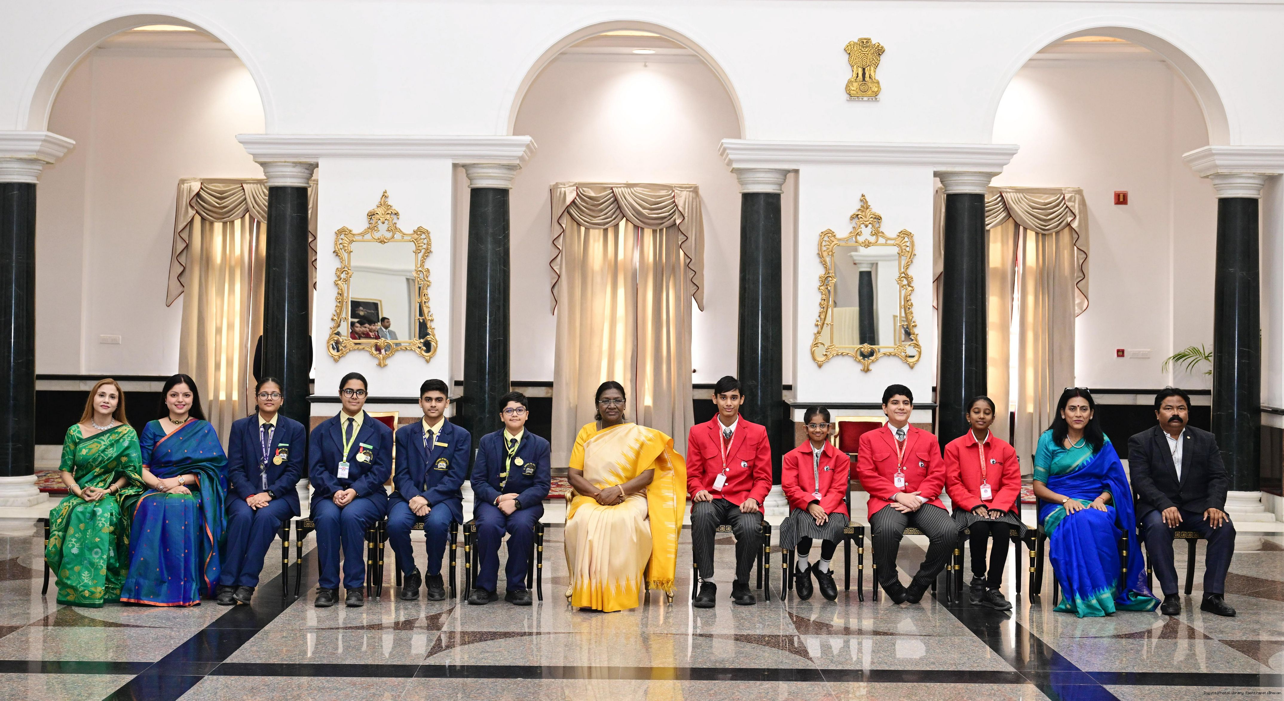 | Caption: | On the occasion of Children's Day, The President of India, Smt Droupadi Murmu interacted with children from various schools and organisations at Rashtrapati Bhavan Cultural Centre on November 14, 2025. |