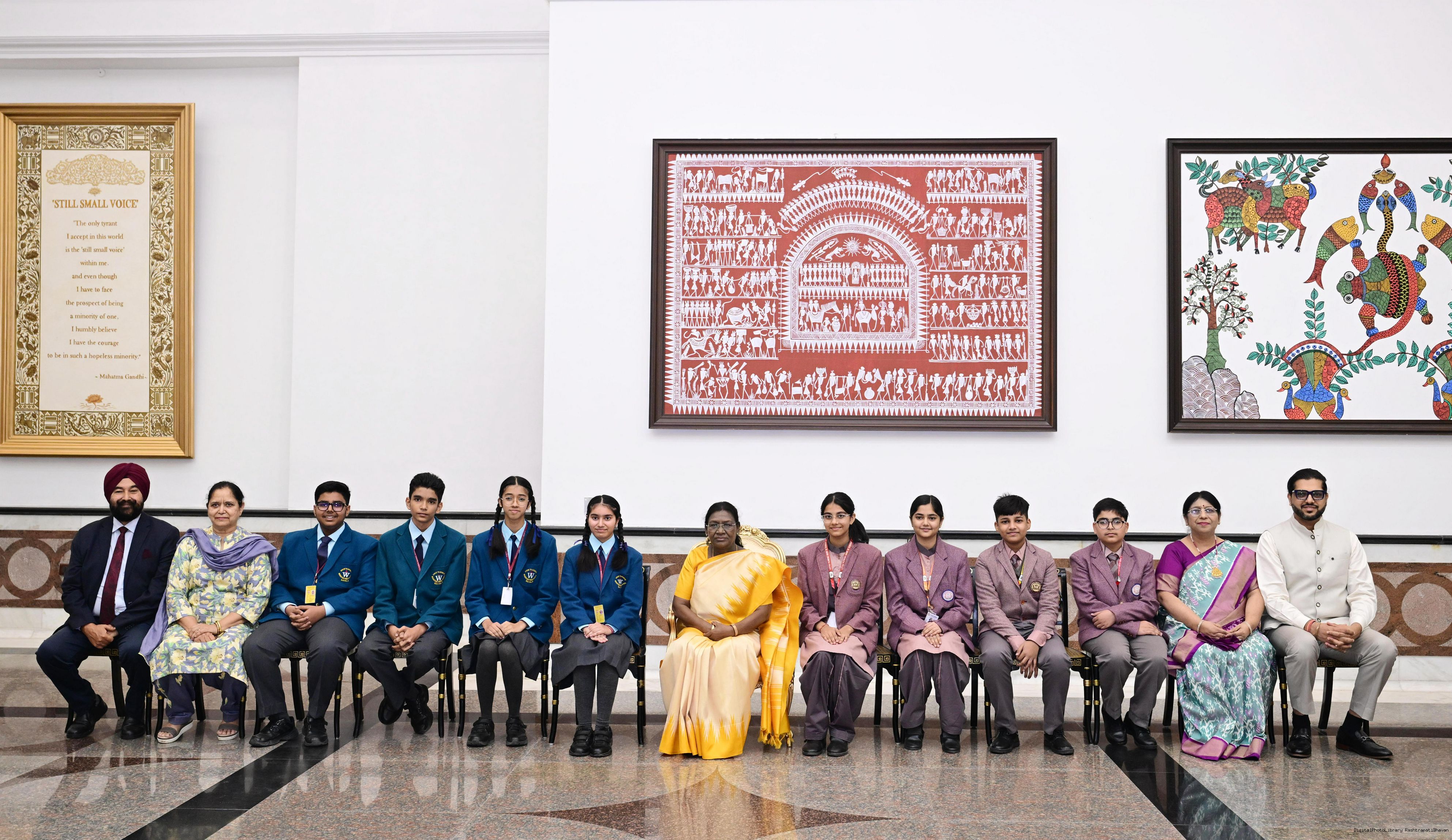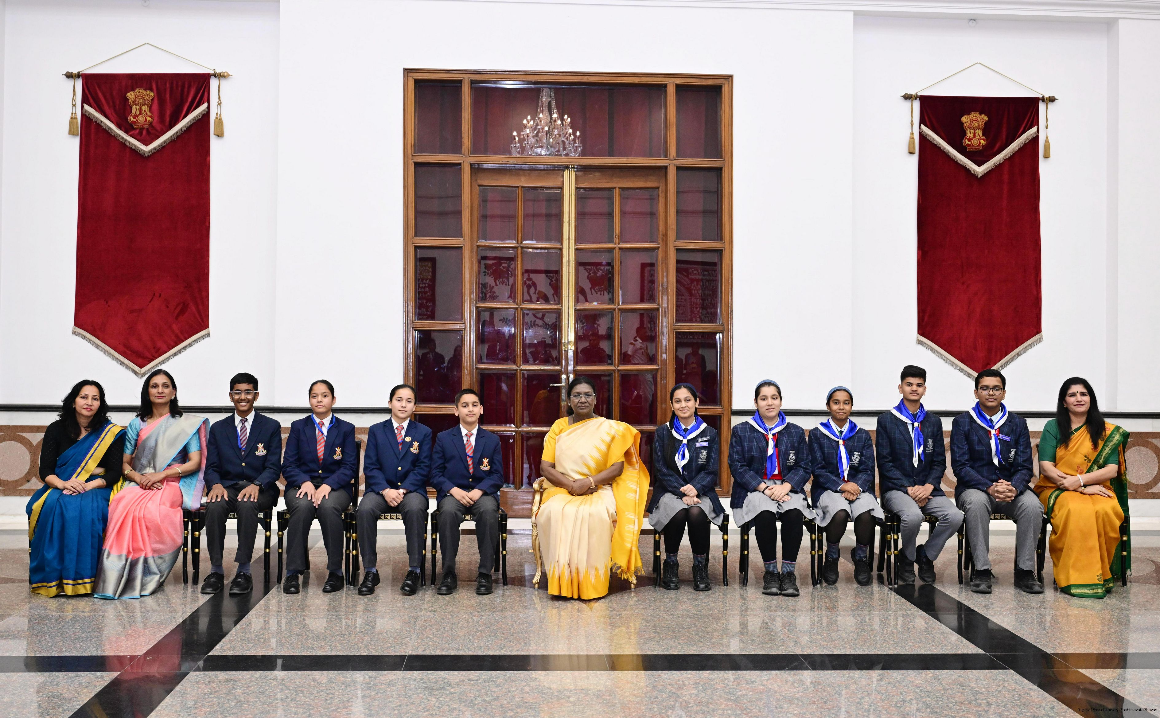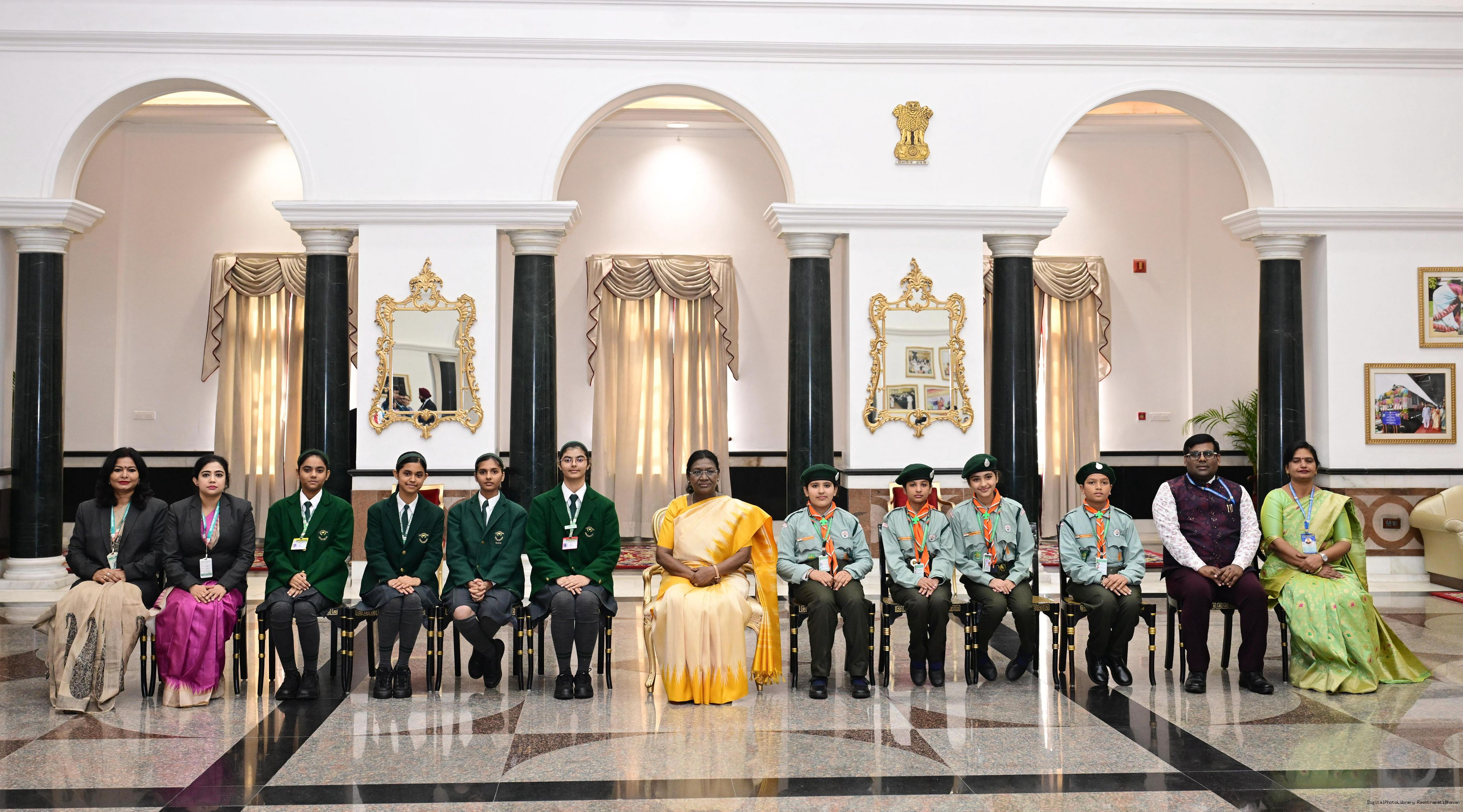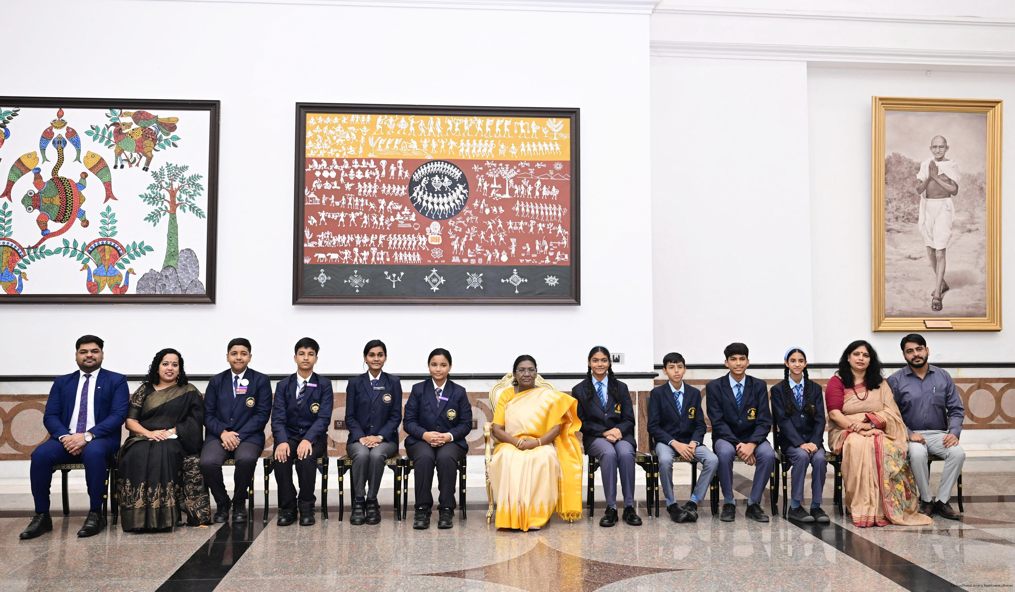 | Caption: | On the occasion of Children's Day, The President of India, Smt Droupadi Murmu interacted with children from various schools and organisations at Rashtrapati Bhavan Cultural Centre on November 14, 2025. |