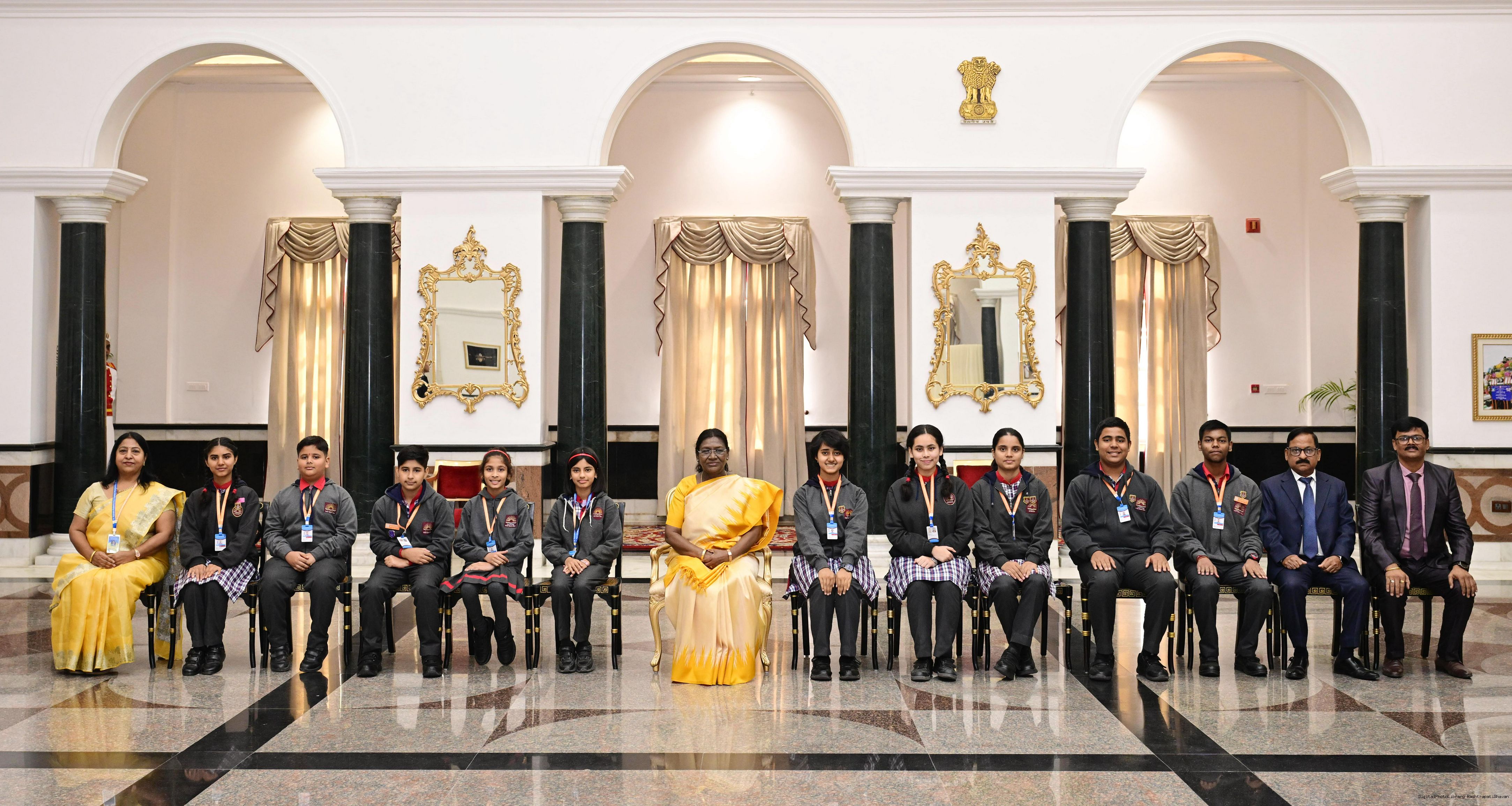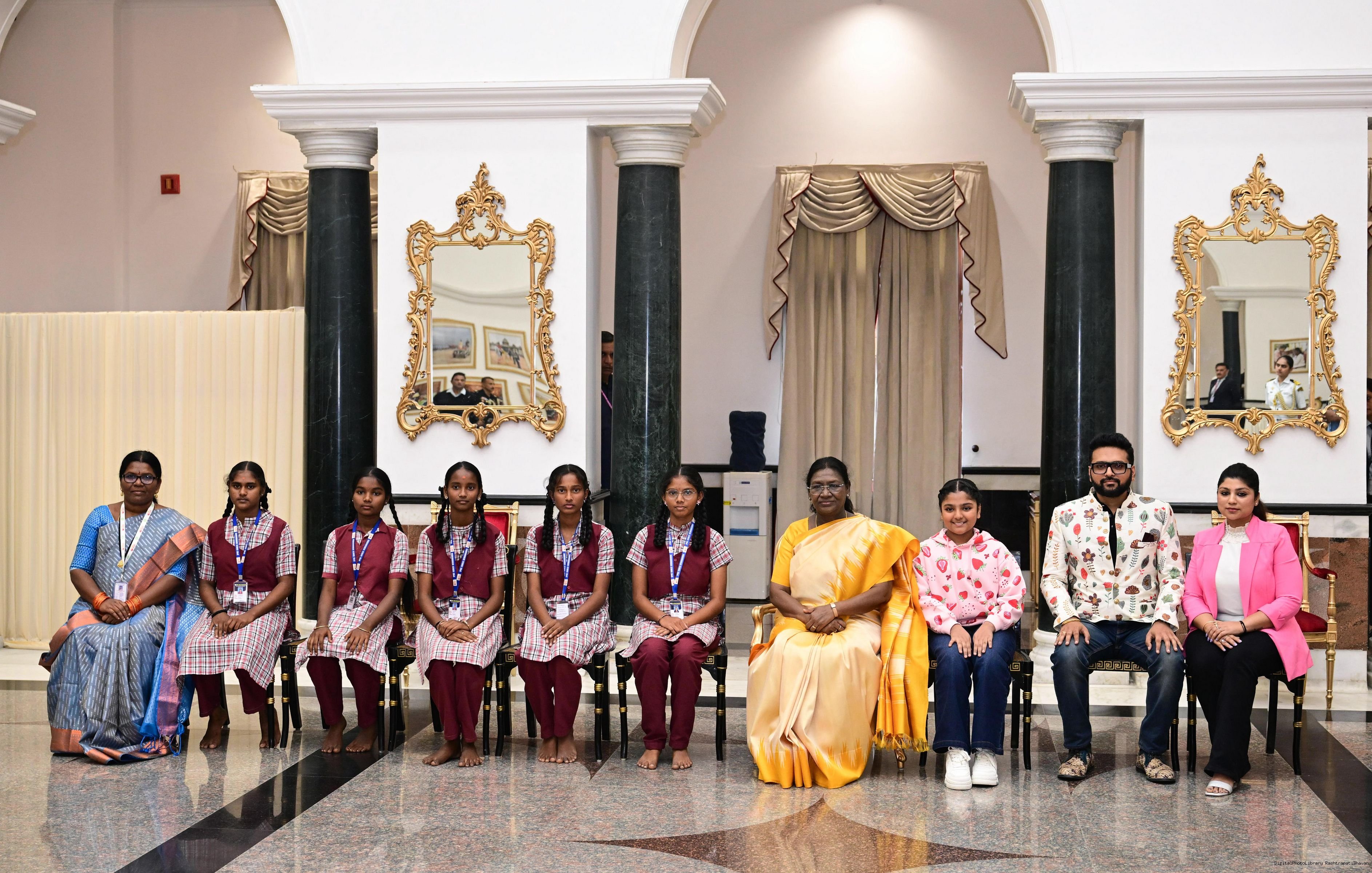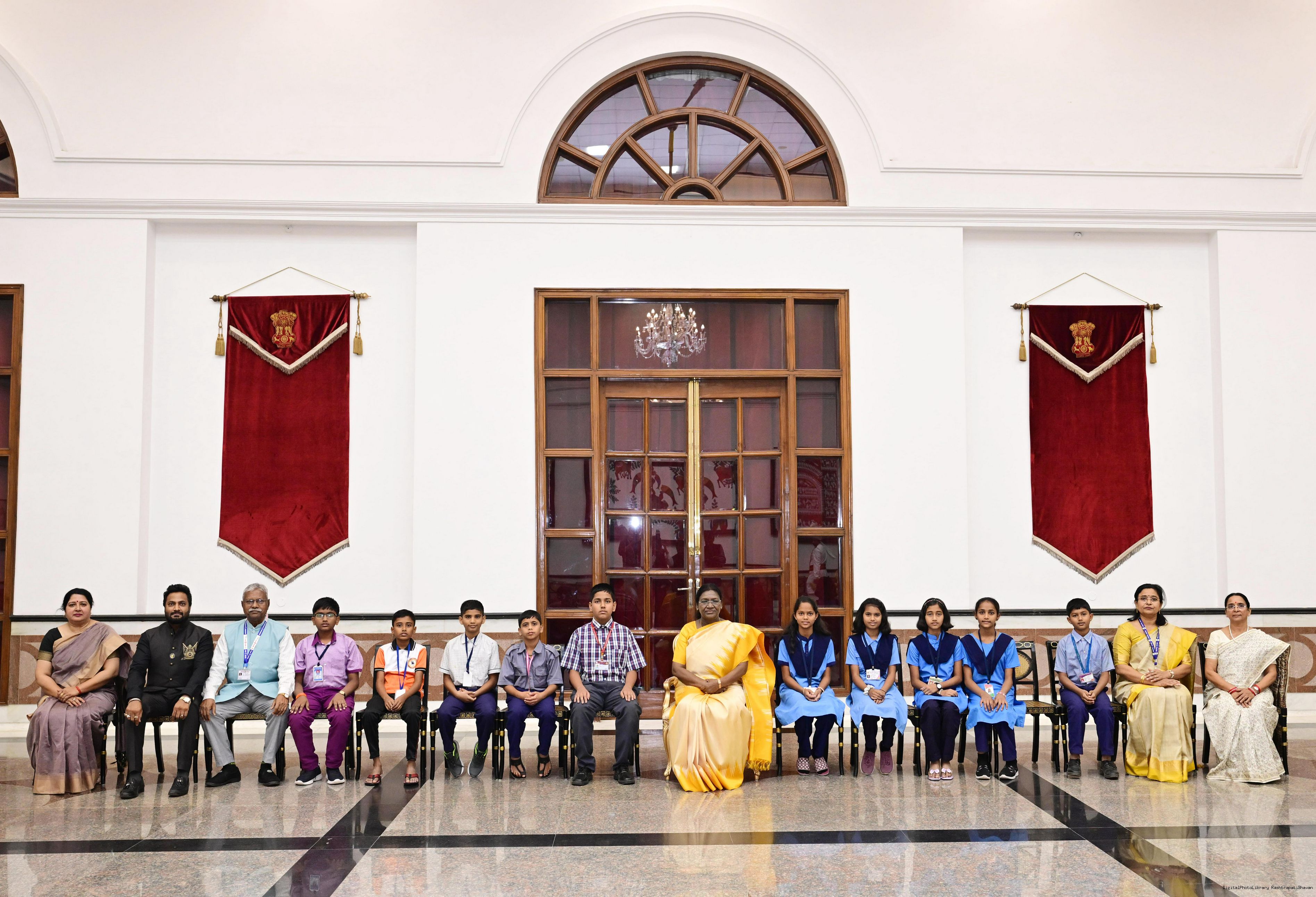 | Caption: | On the occasion of Children's Day, The President of India, Smt Droupadi Murmu interacted with children from various schools and organisations at Rashtrapati Bhavan Cultural Centre on November 14, 2025. |