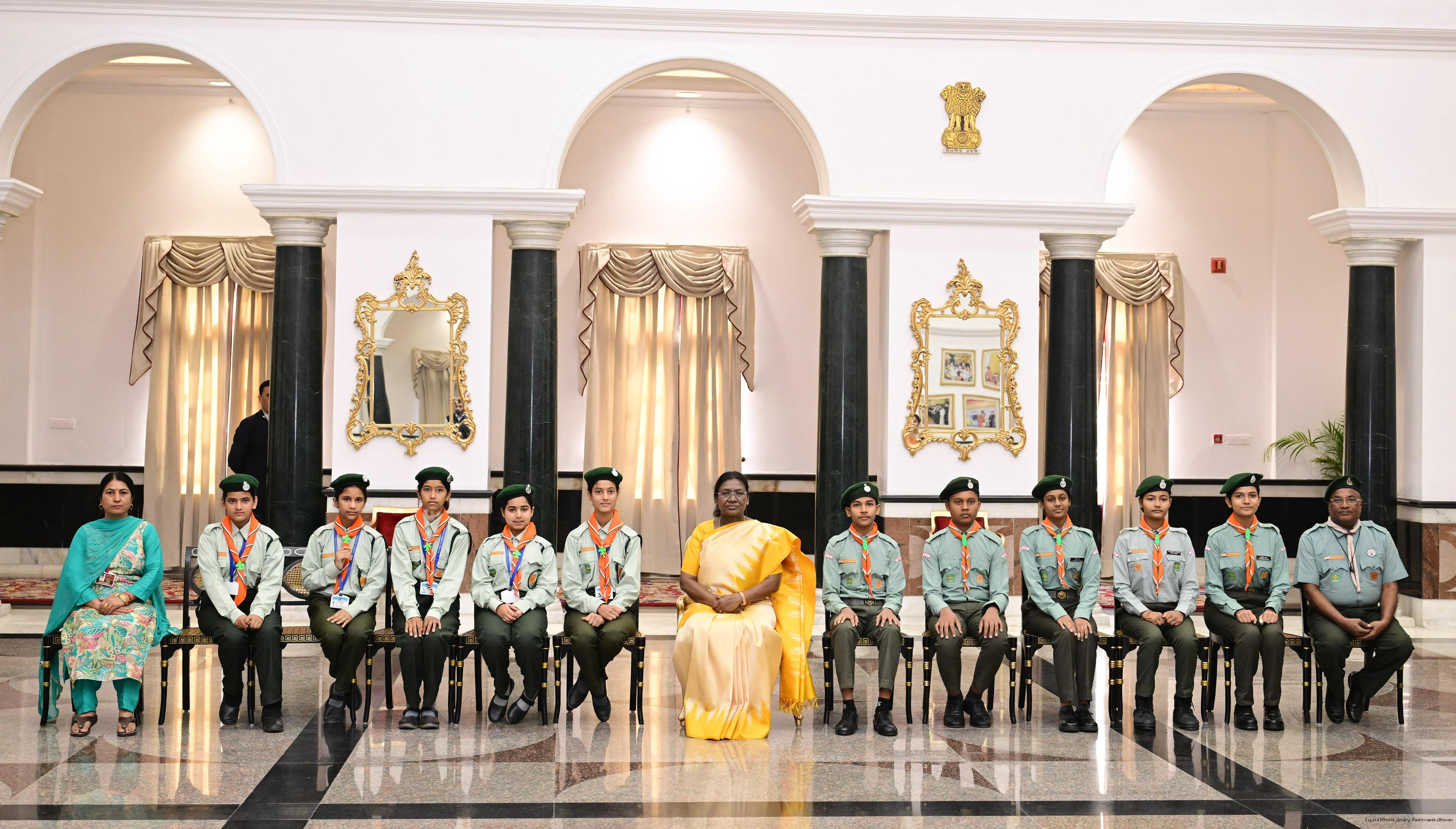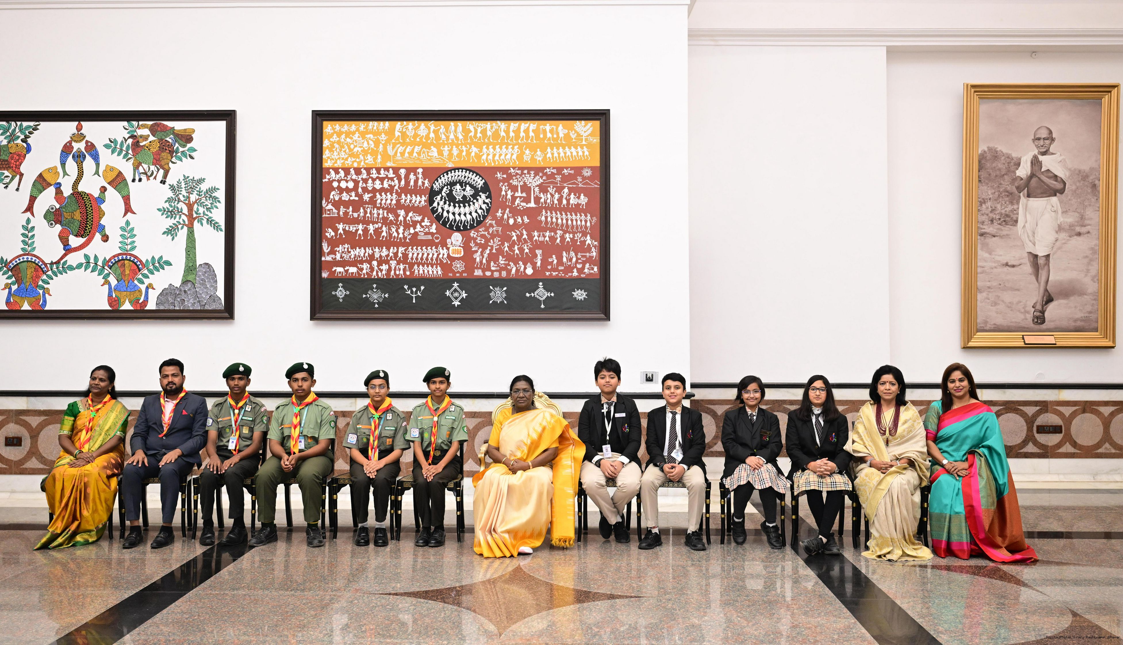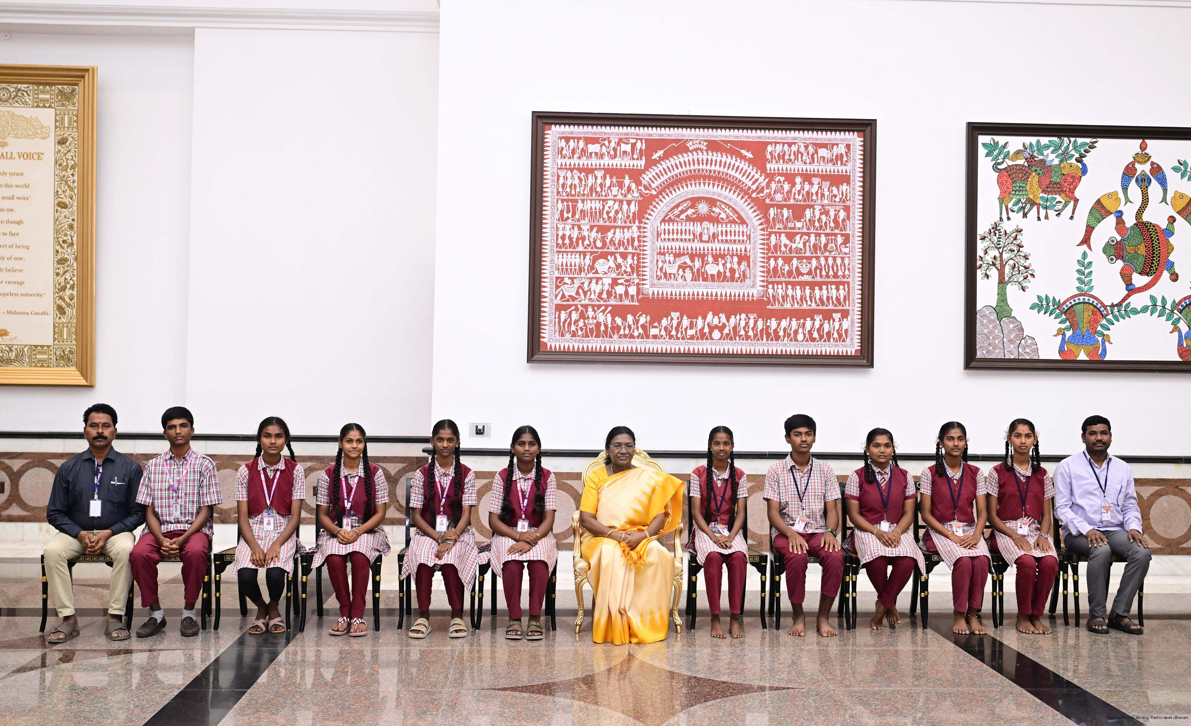| Caption: | On the occasion of Children's Day, The President of India, Smt Droupadi Murmu interacted with children from various schools and organisations at Rashtrapati Bhavan Cultural Centre on November 14, 2025. |