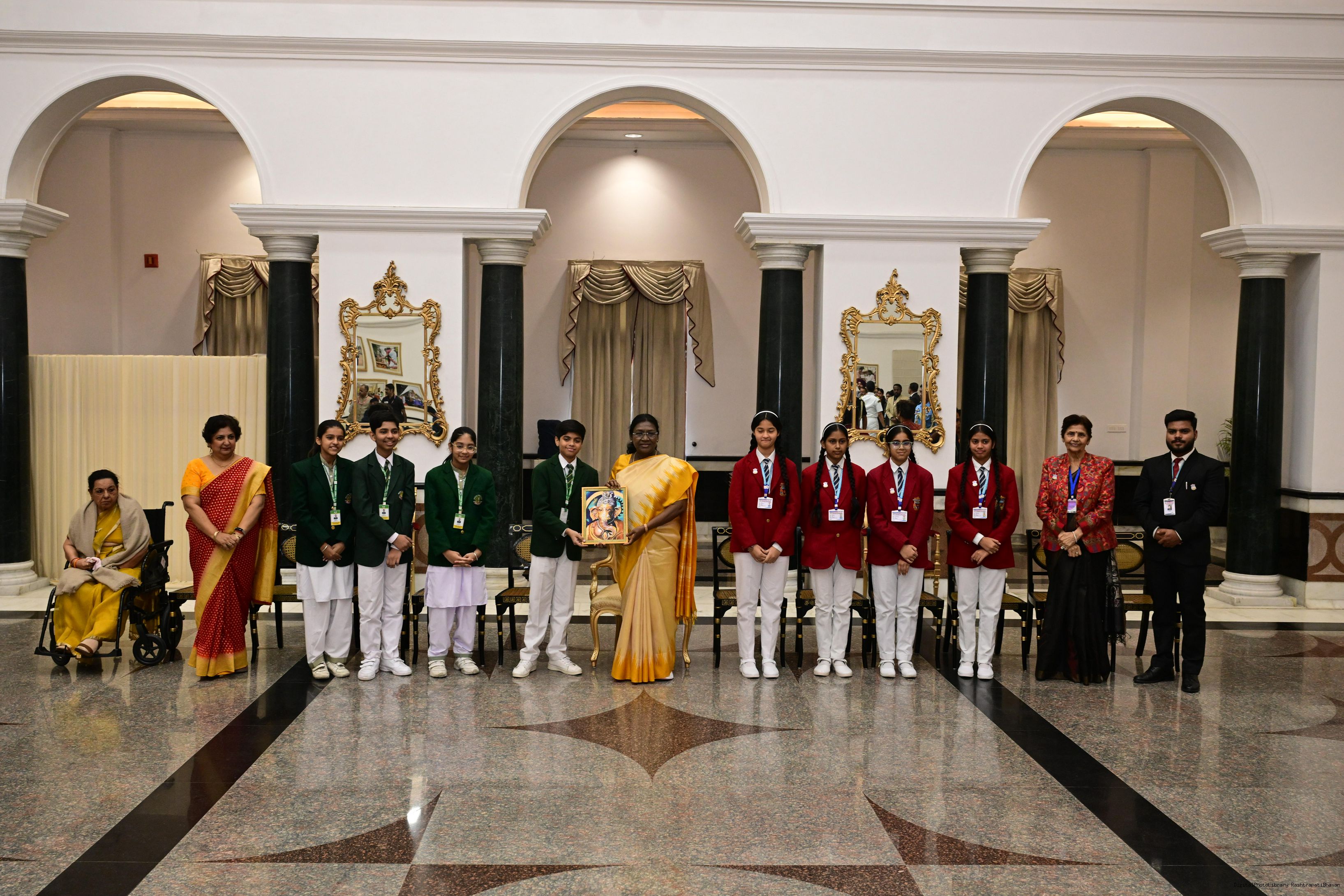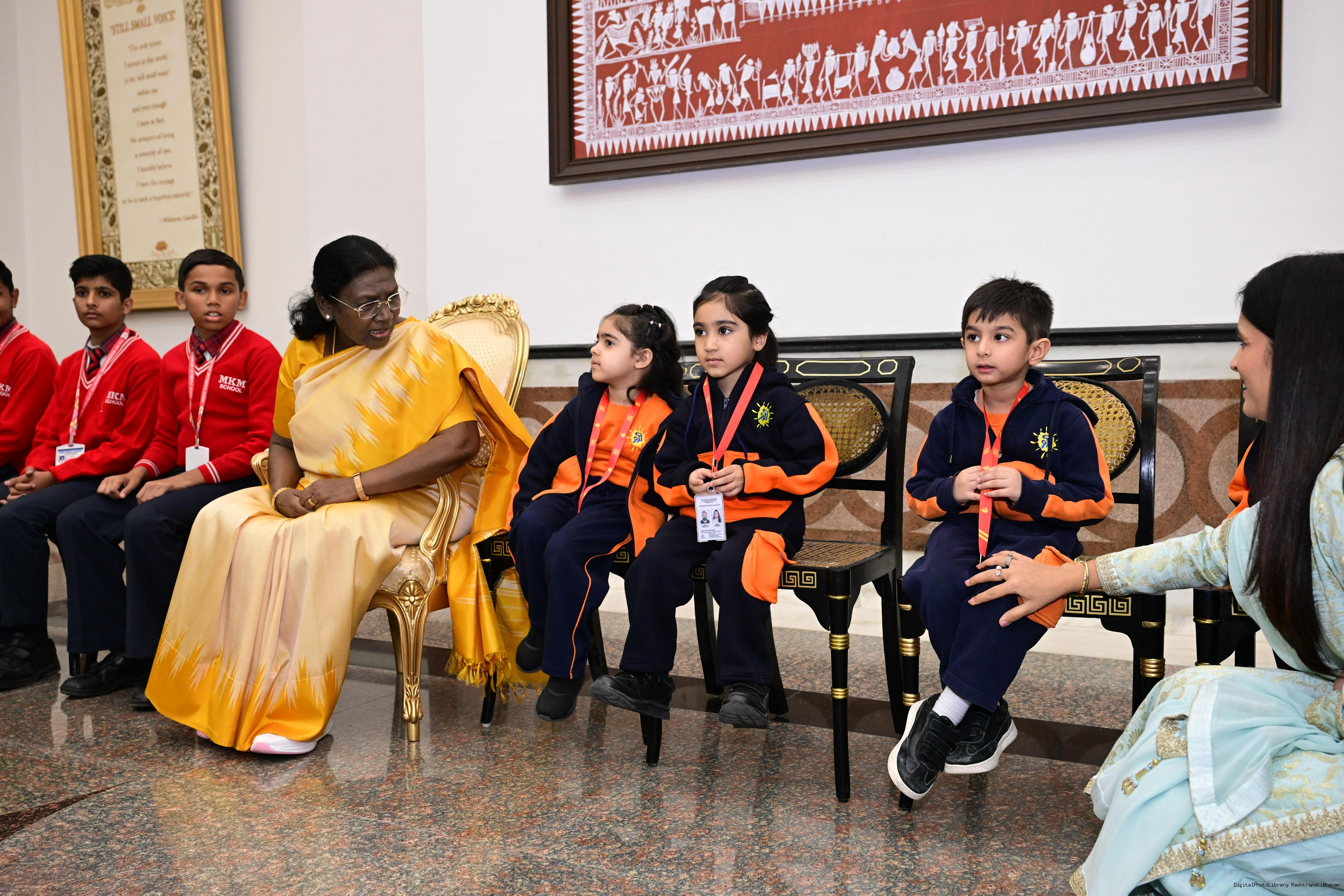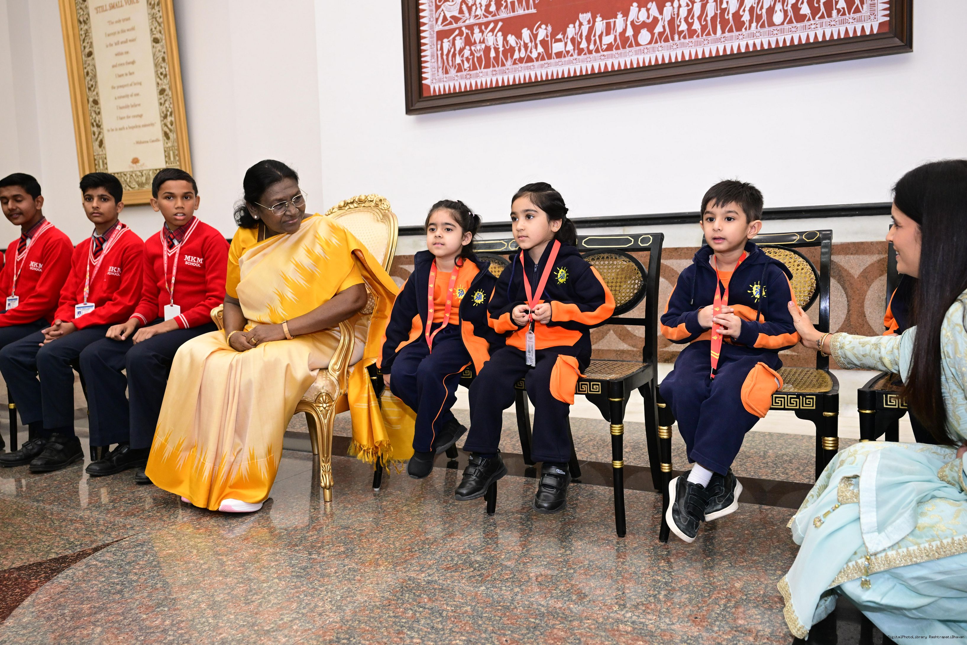 | Caption: | On the occasion of Children's Day, The President of India, Smt Droupadi Murmu interacted with children from various schools and organisations at Rashtrapati Bhavan Cultural Centre on November 14, 2025. |