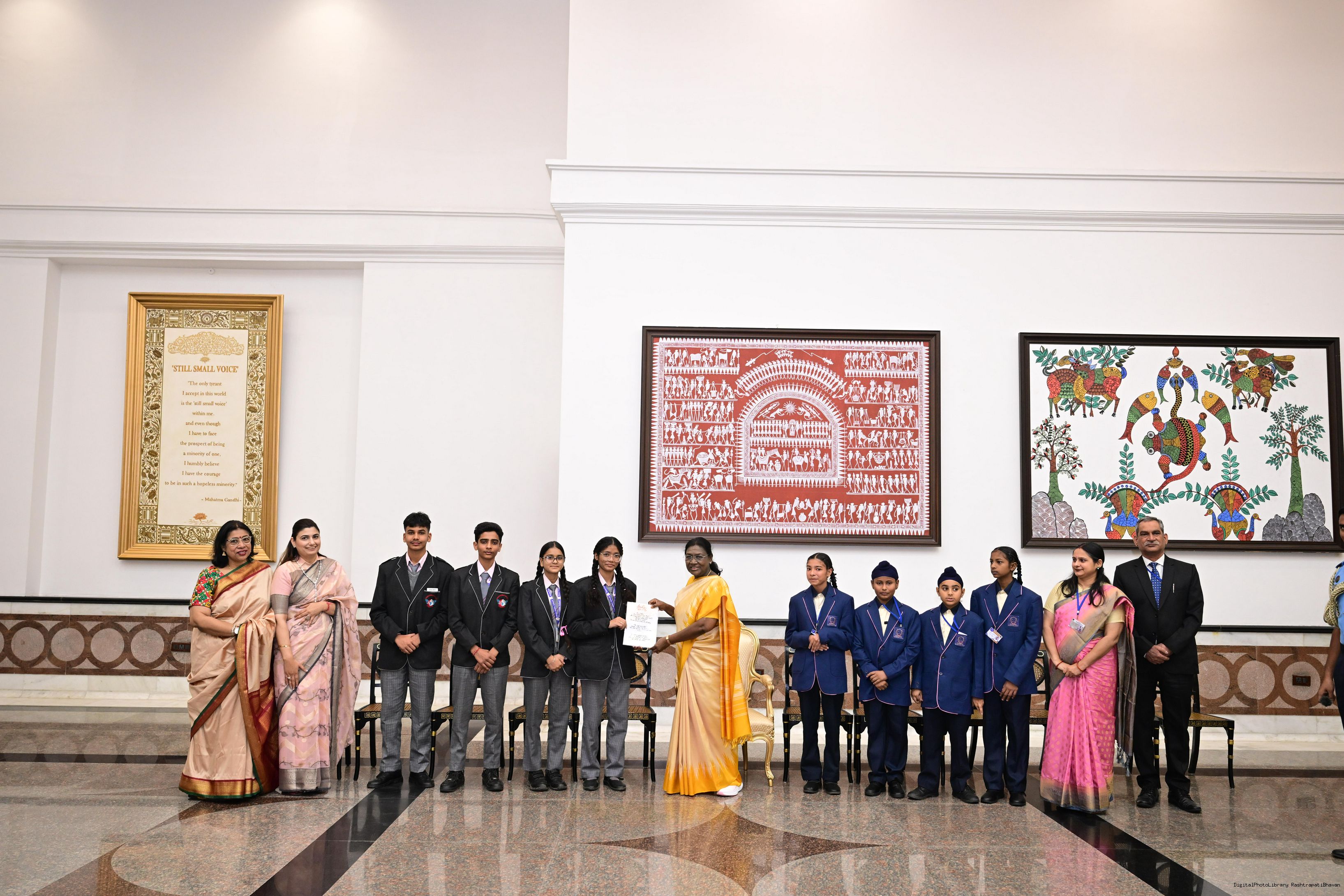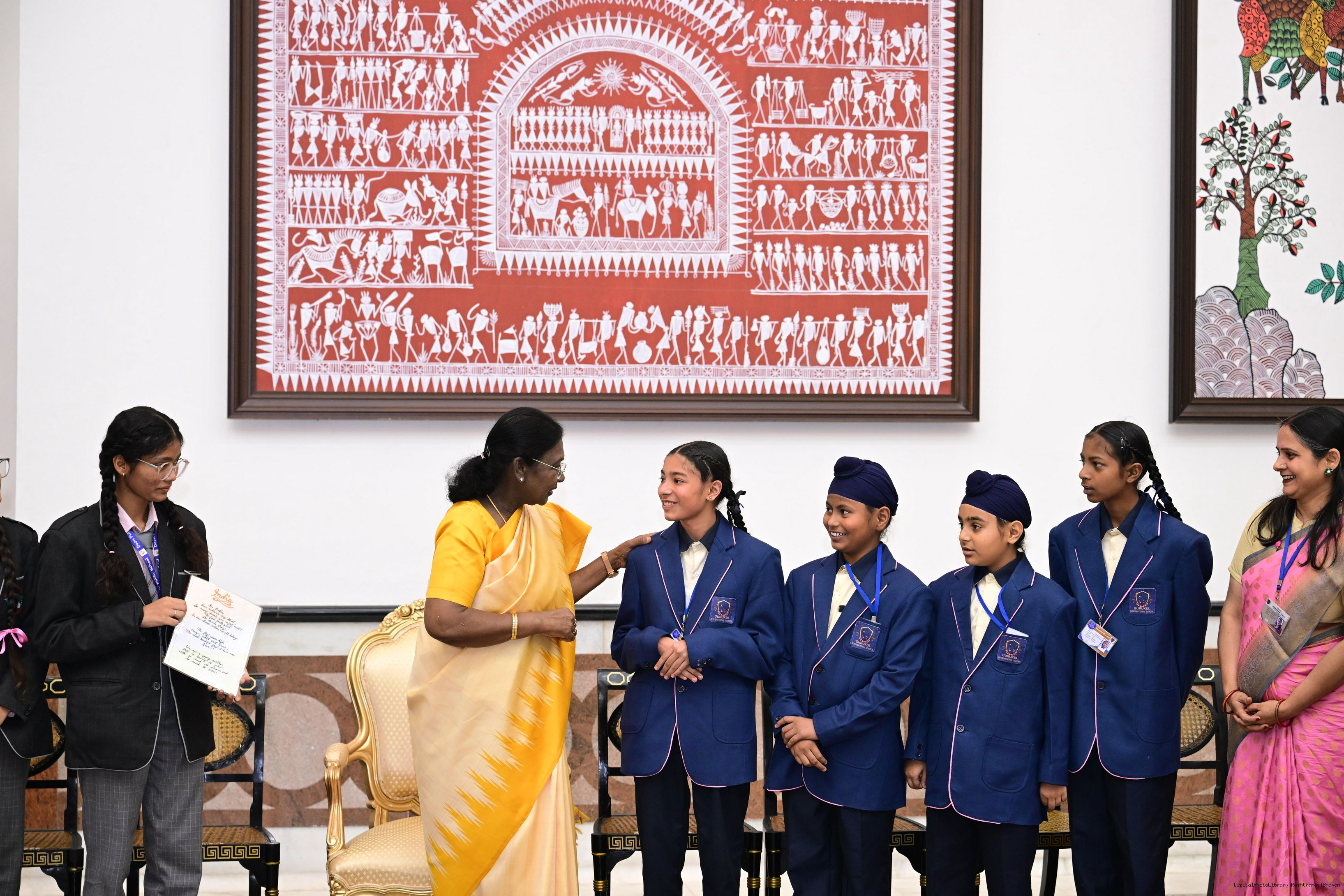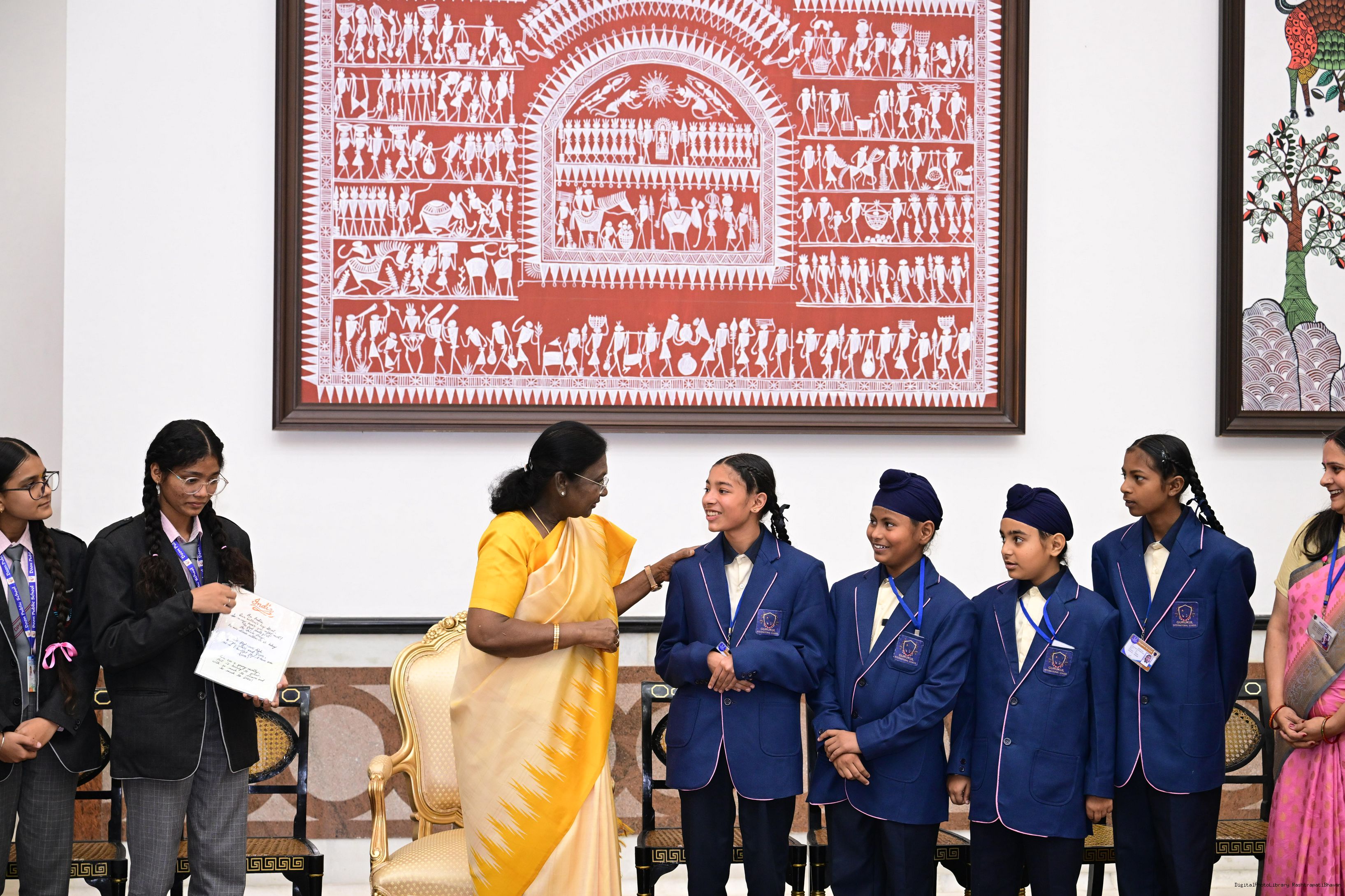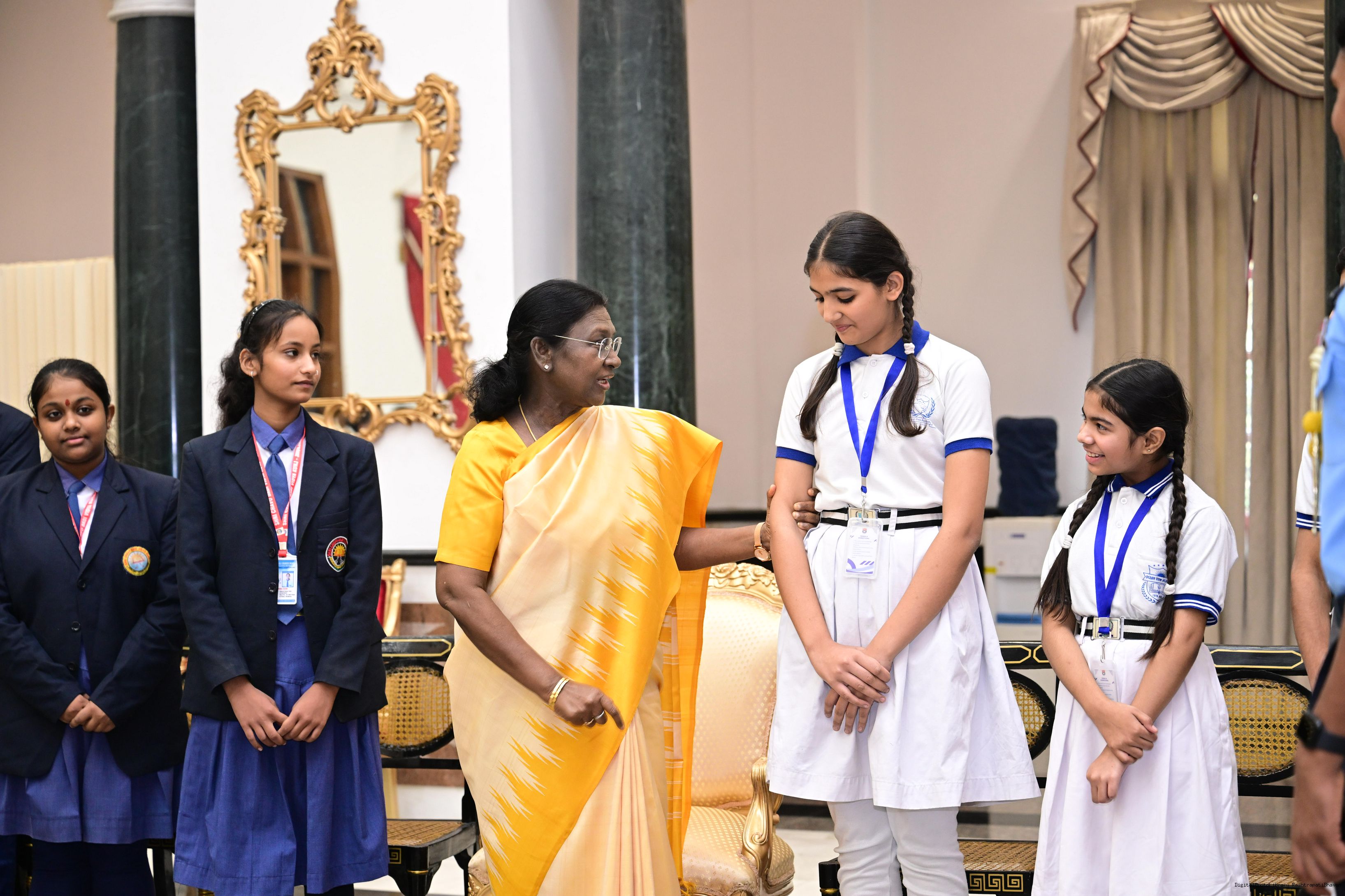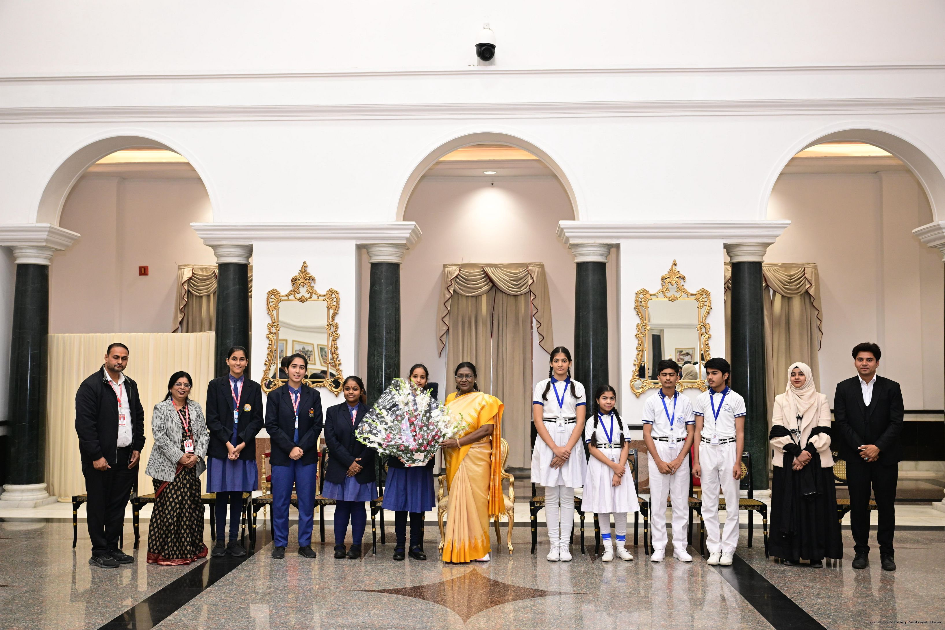 | Caption: | On the occasion of Children's Day, The President of India, Smt Droupadi Murmu interacted with children from various schools and organisations at Rashtrapati Bhavan Cultural Centre on November 14, 2025. |