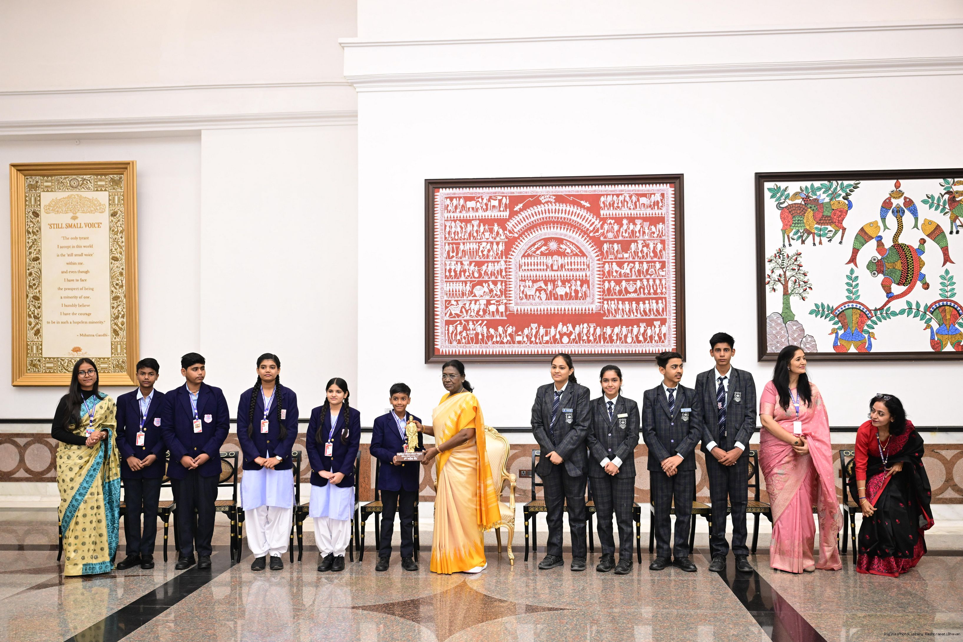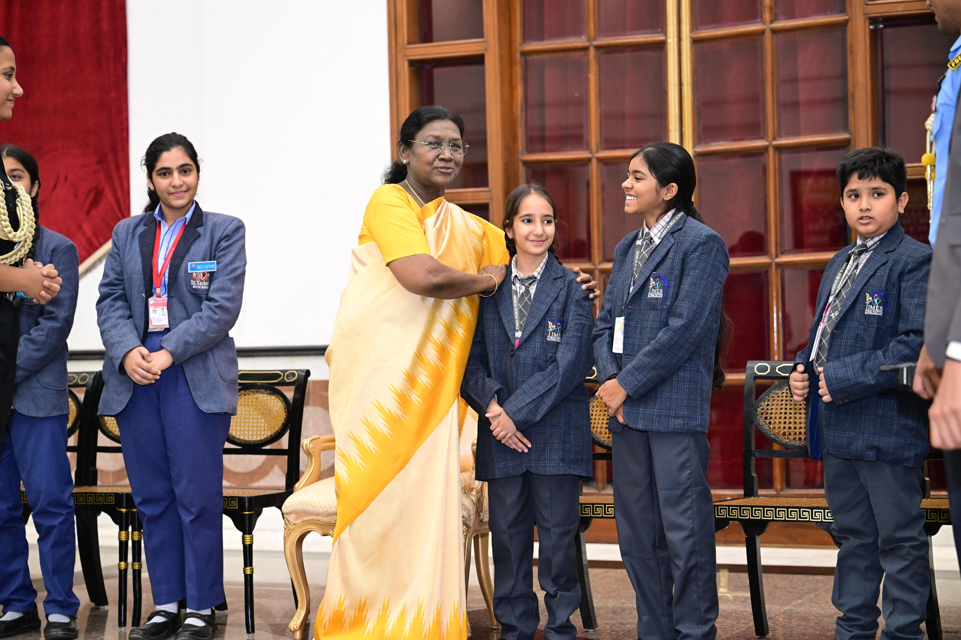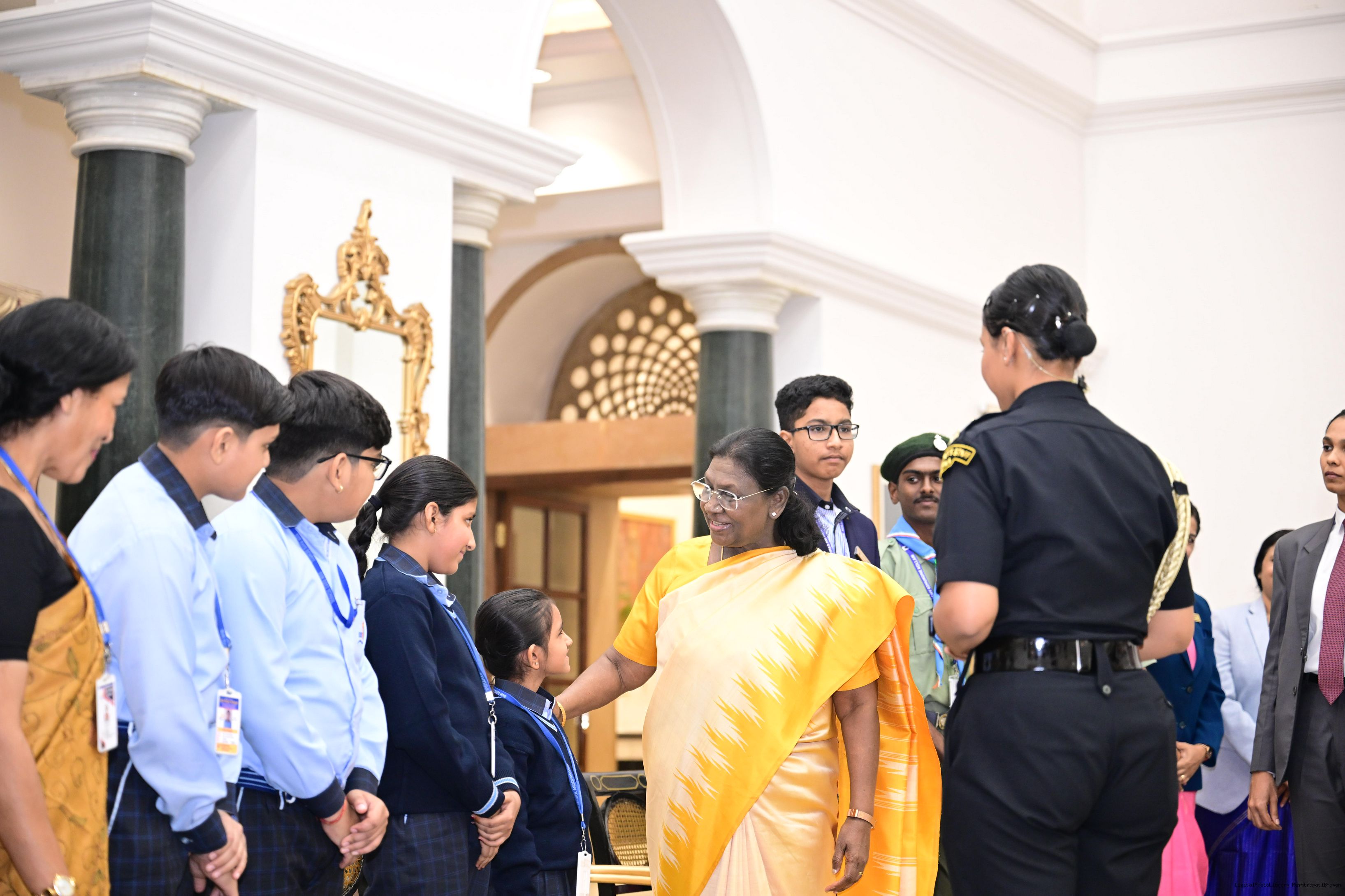 | Caption: | On the occasion of Children's Day, The President of India, Smt Droupadi Murmu interacted with children from various schools and organisations at Rashtrapati Bhavan Cultural Centre on November 14, 2025. |