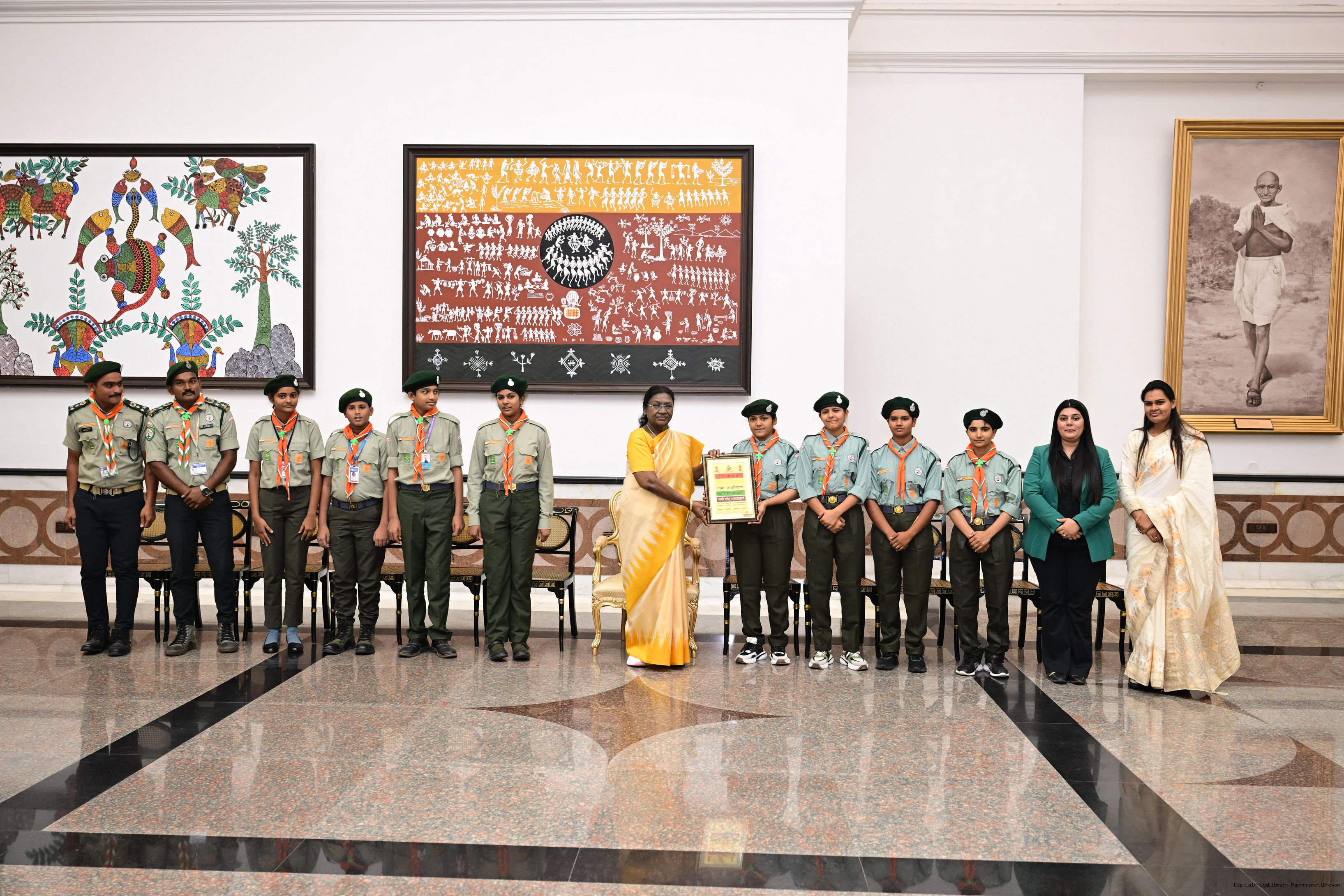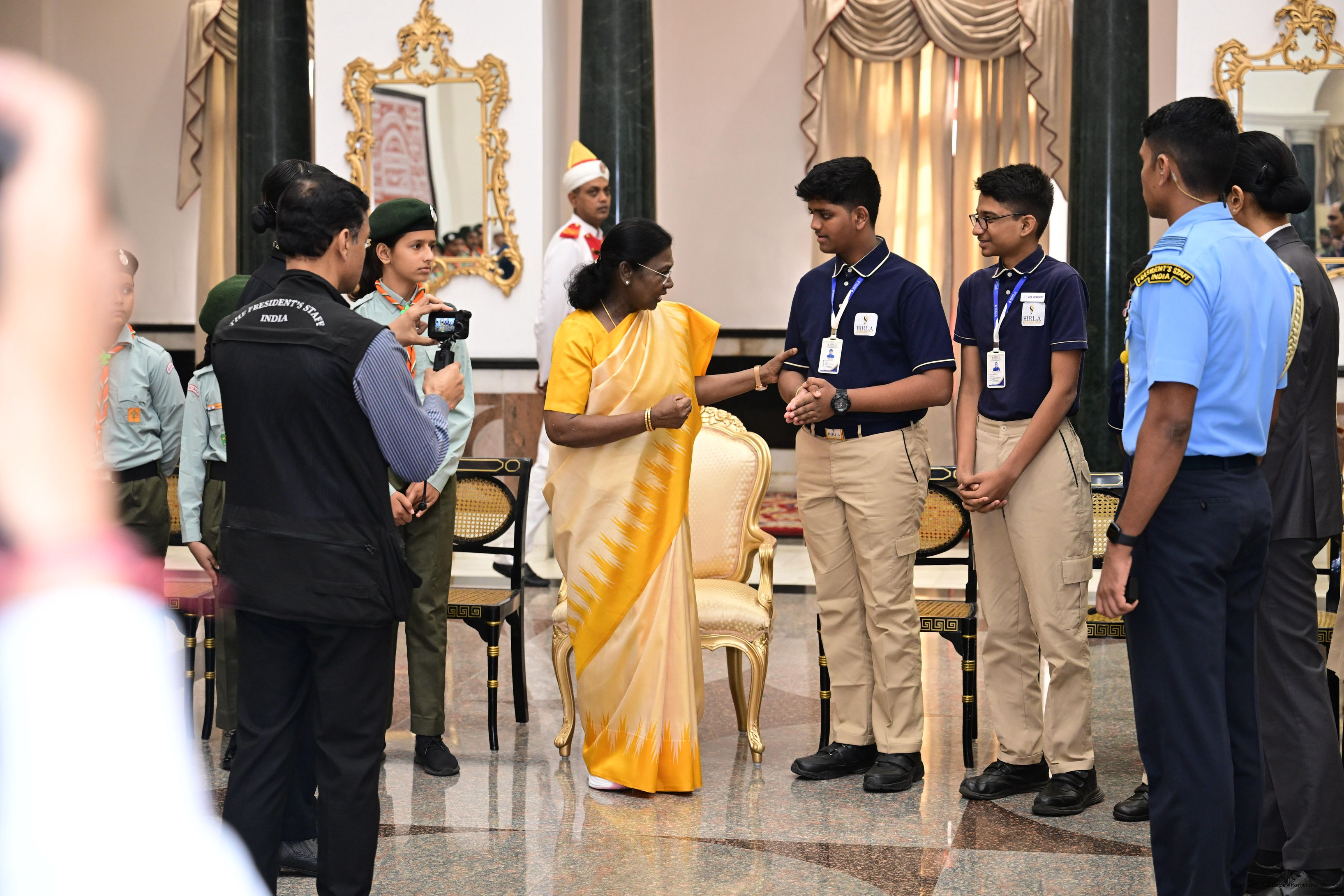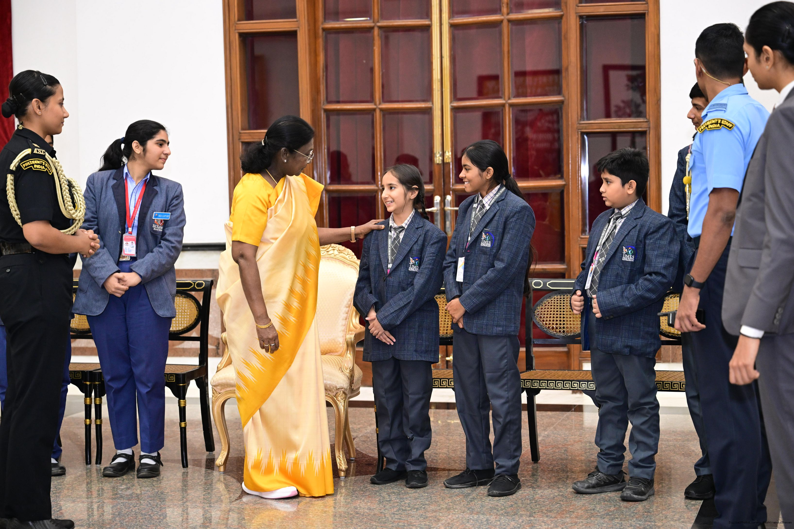 | Caption: | On the occasion of Children's Day, The President of India, Smt Droupadi Murmu interacted with children from various schools and organisations at Rashtrapati Bhavan Cultural Centre on November 14, 2025. |