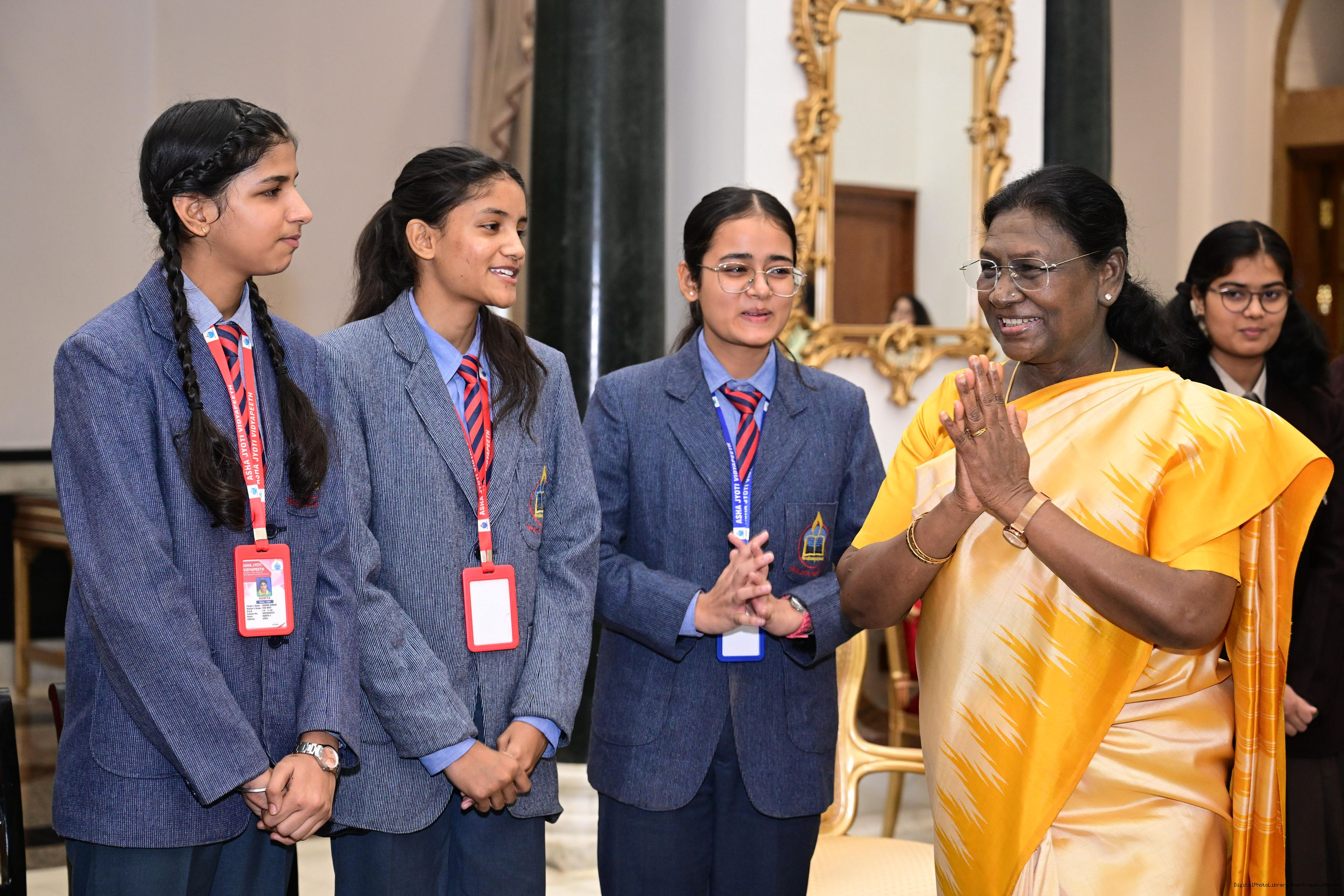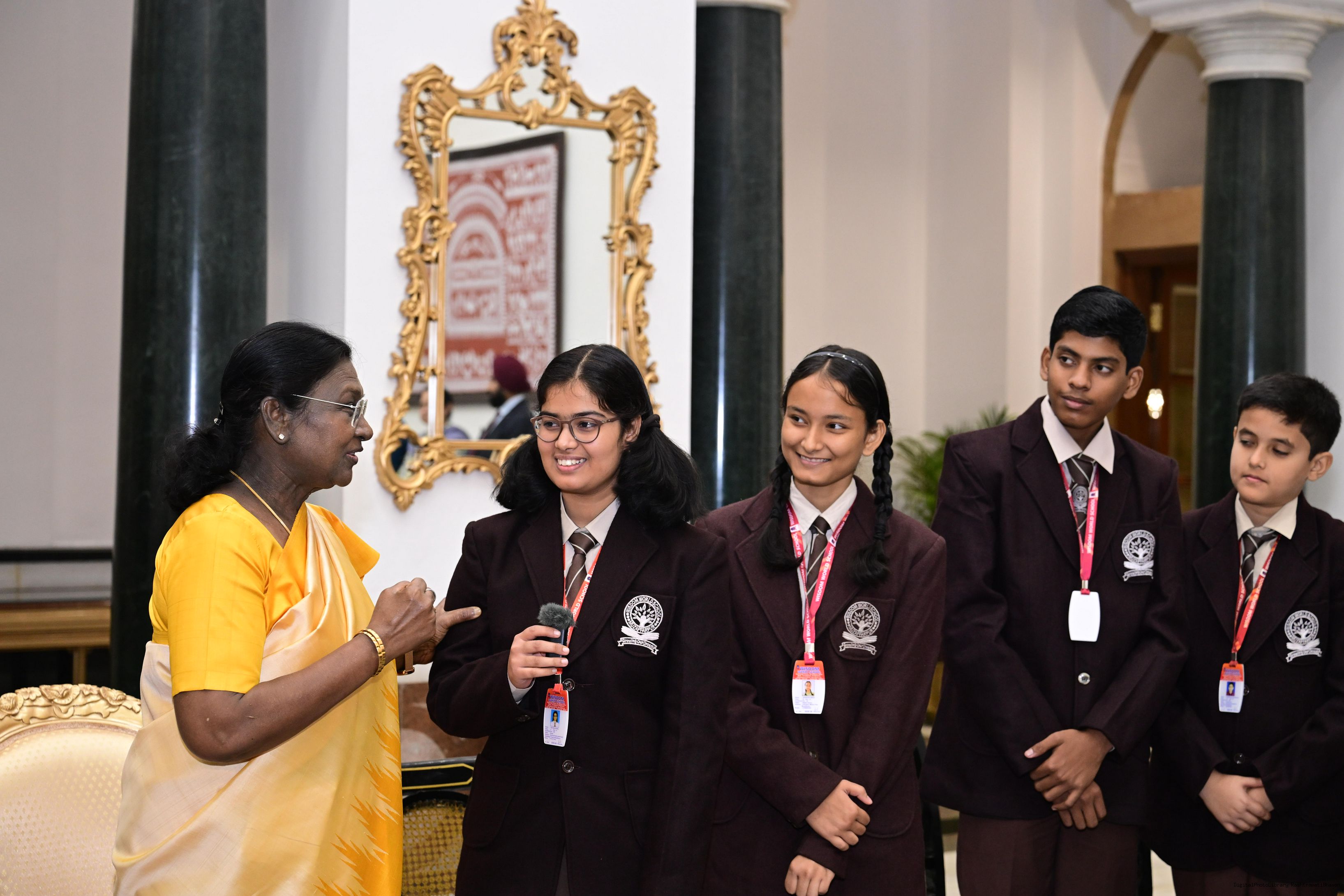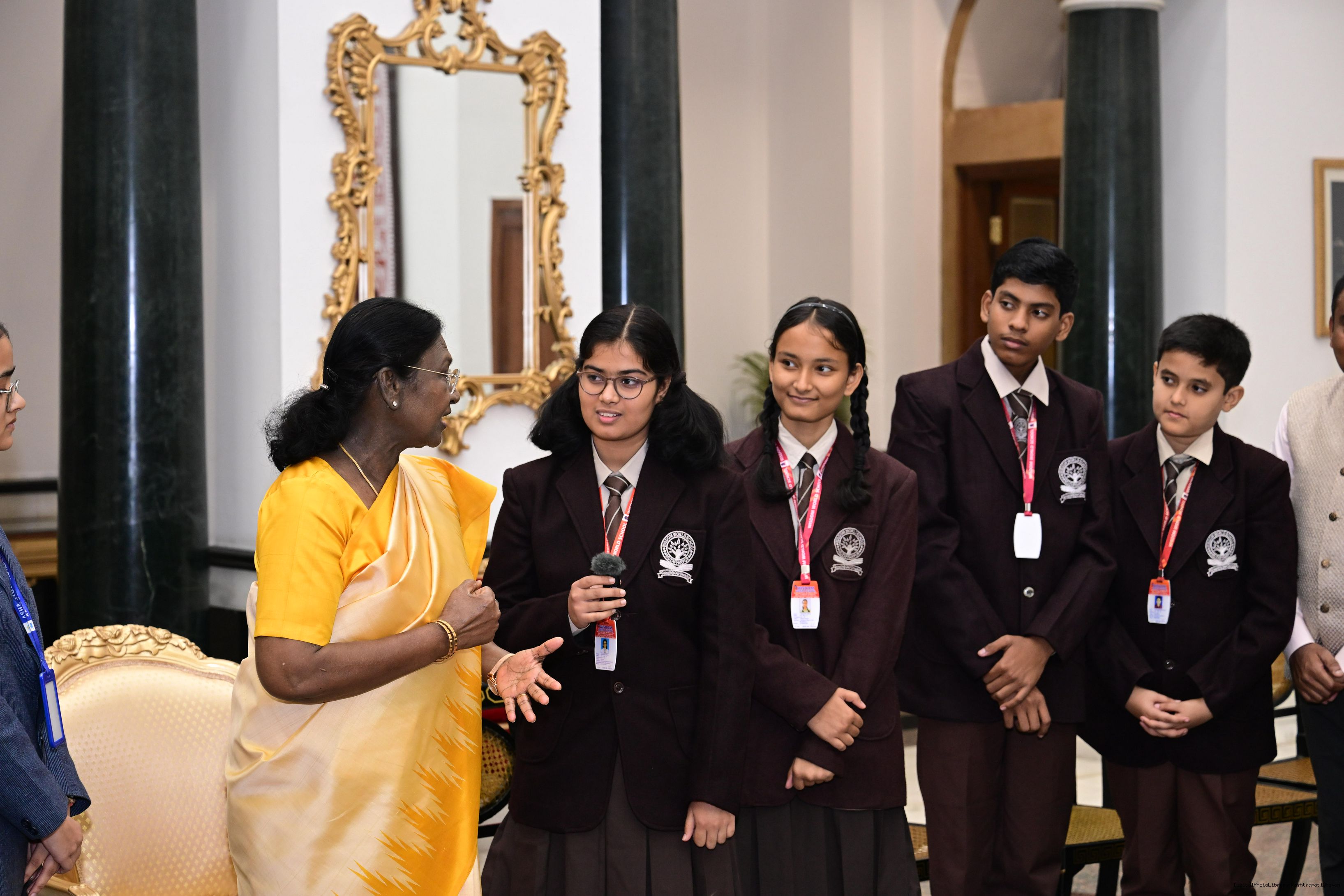 | Caption: | On the occasion of Children's Day, The President of India, Smt Droupadi Murmu interacted with children from various schools and organisations at Rashtrapati Bhavan Cultural Centre on November 14, 2025. |