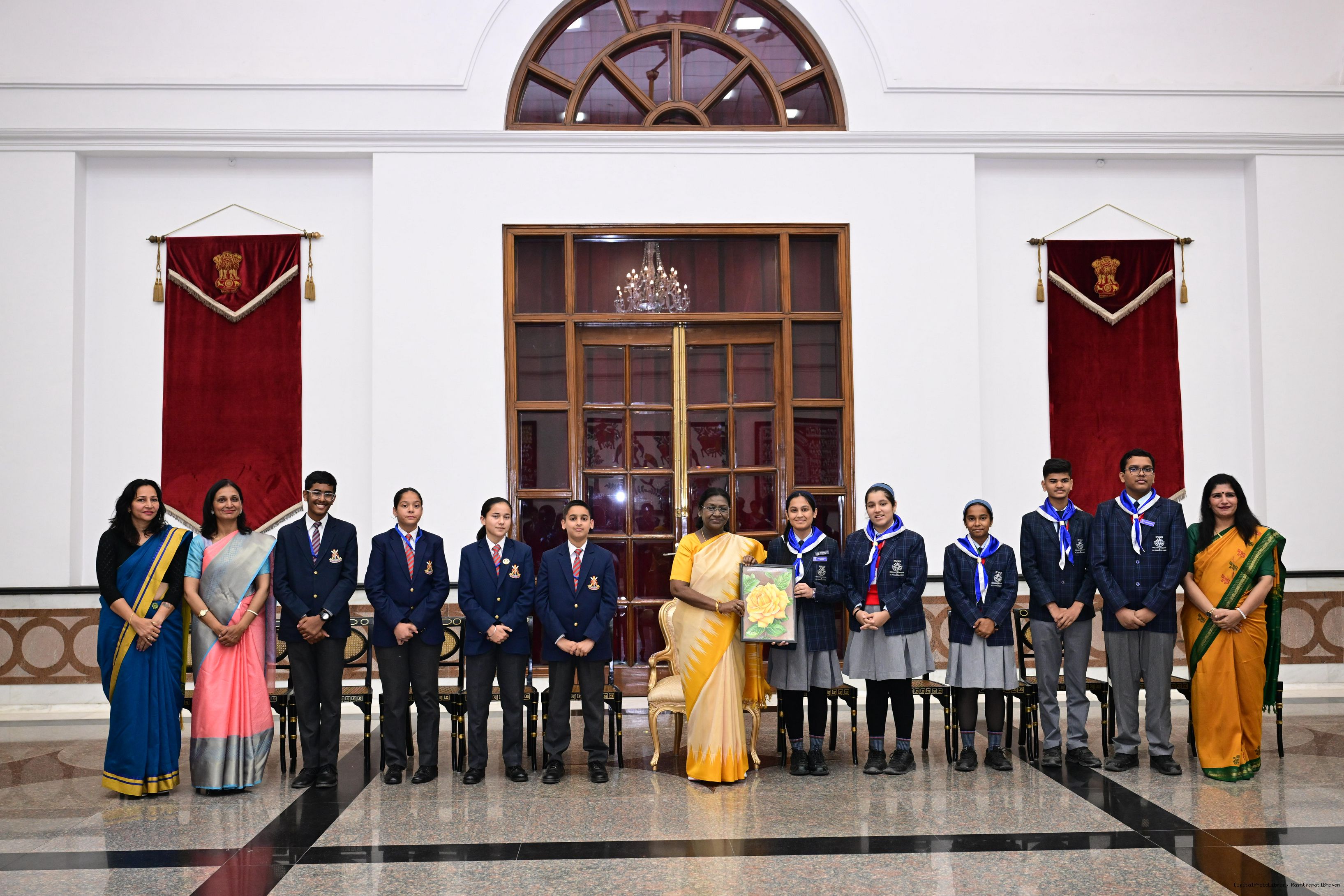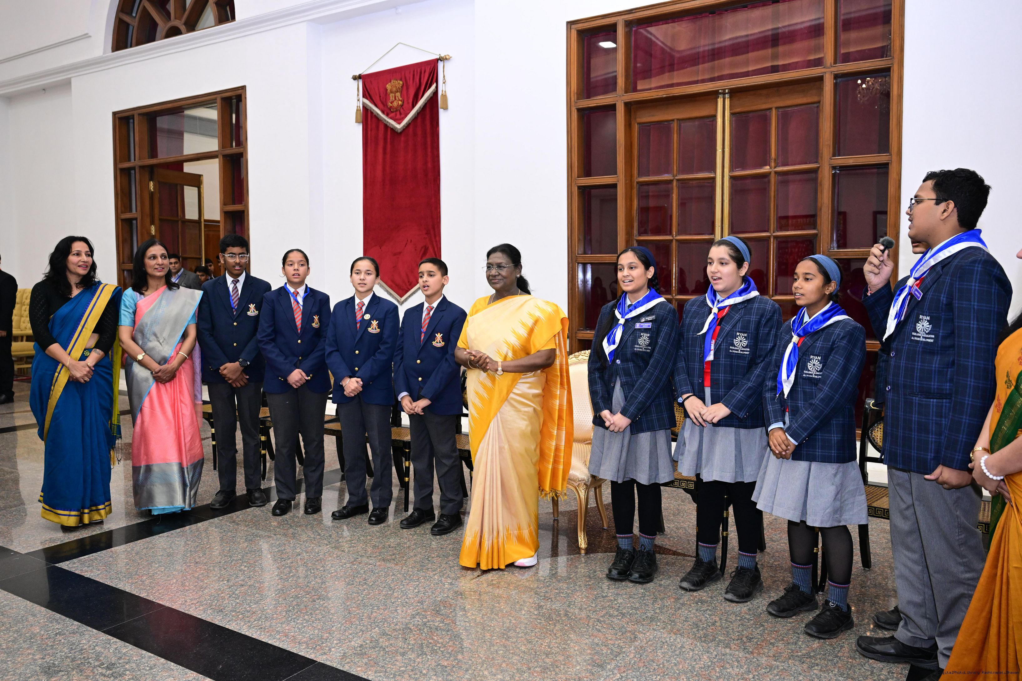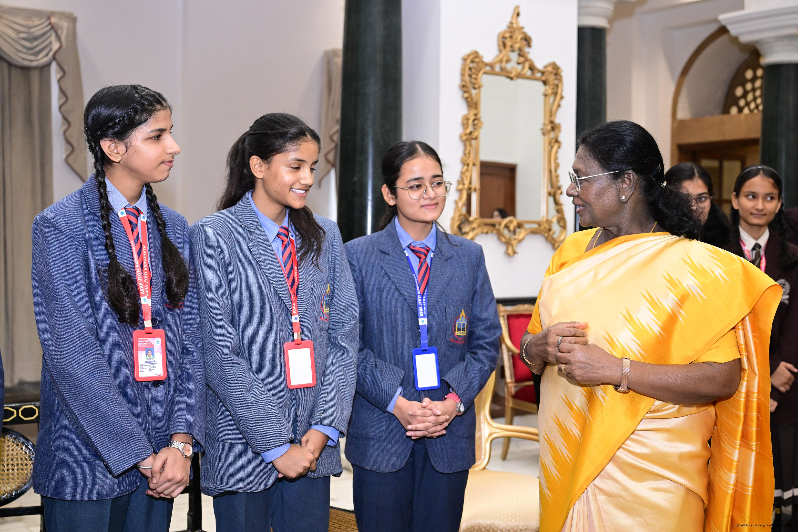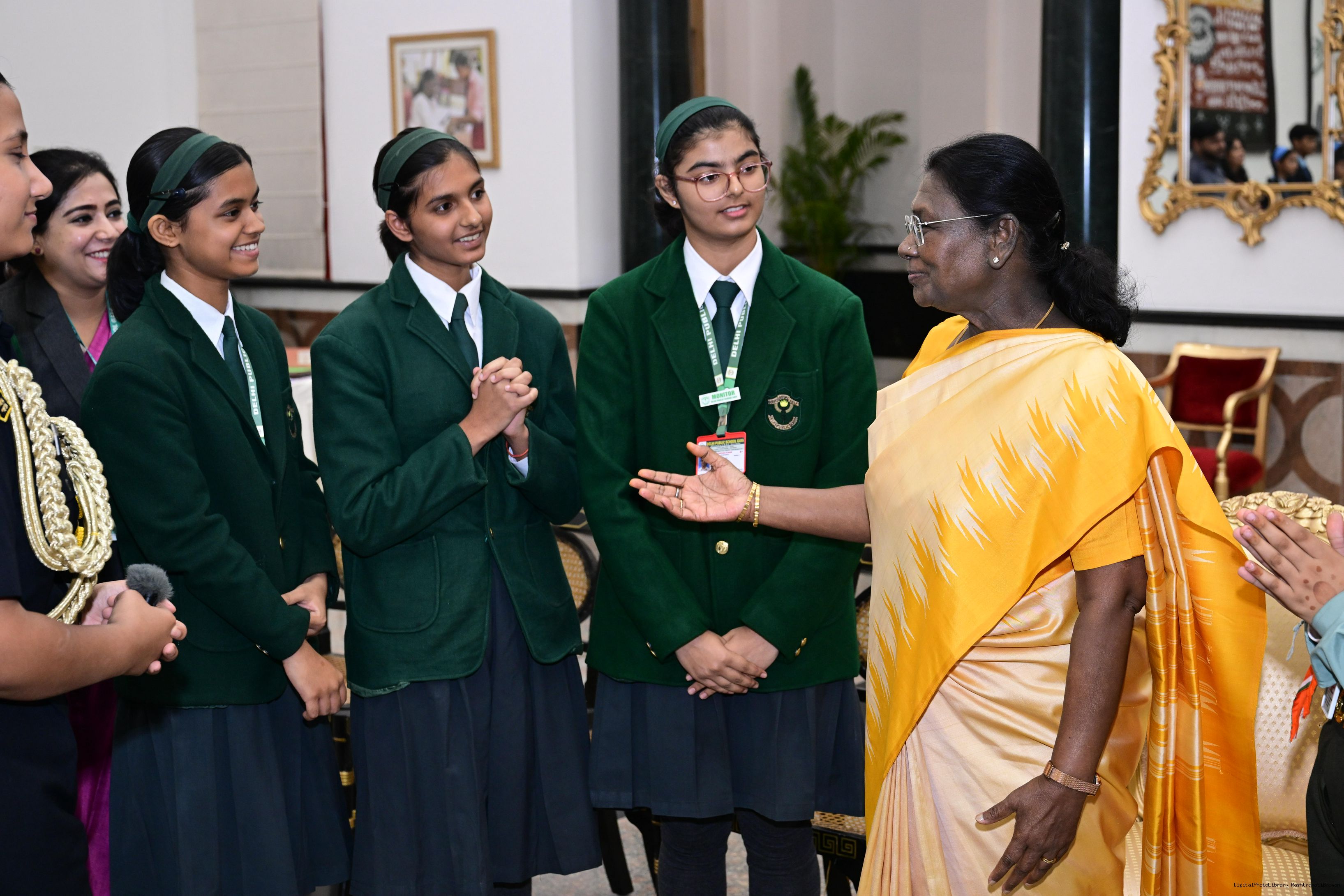 | Caption: | On the occasion of Children's Day, The President of India, Smt Droupadi Murmu interacted with children from various schools and organisations at Rashtrapati Bhavan Cultural Centre on November 14, 2025. |