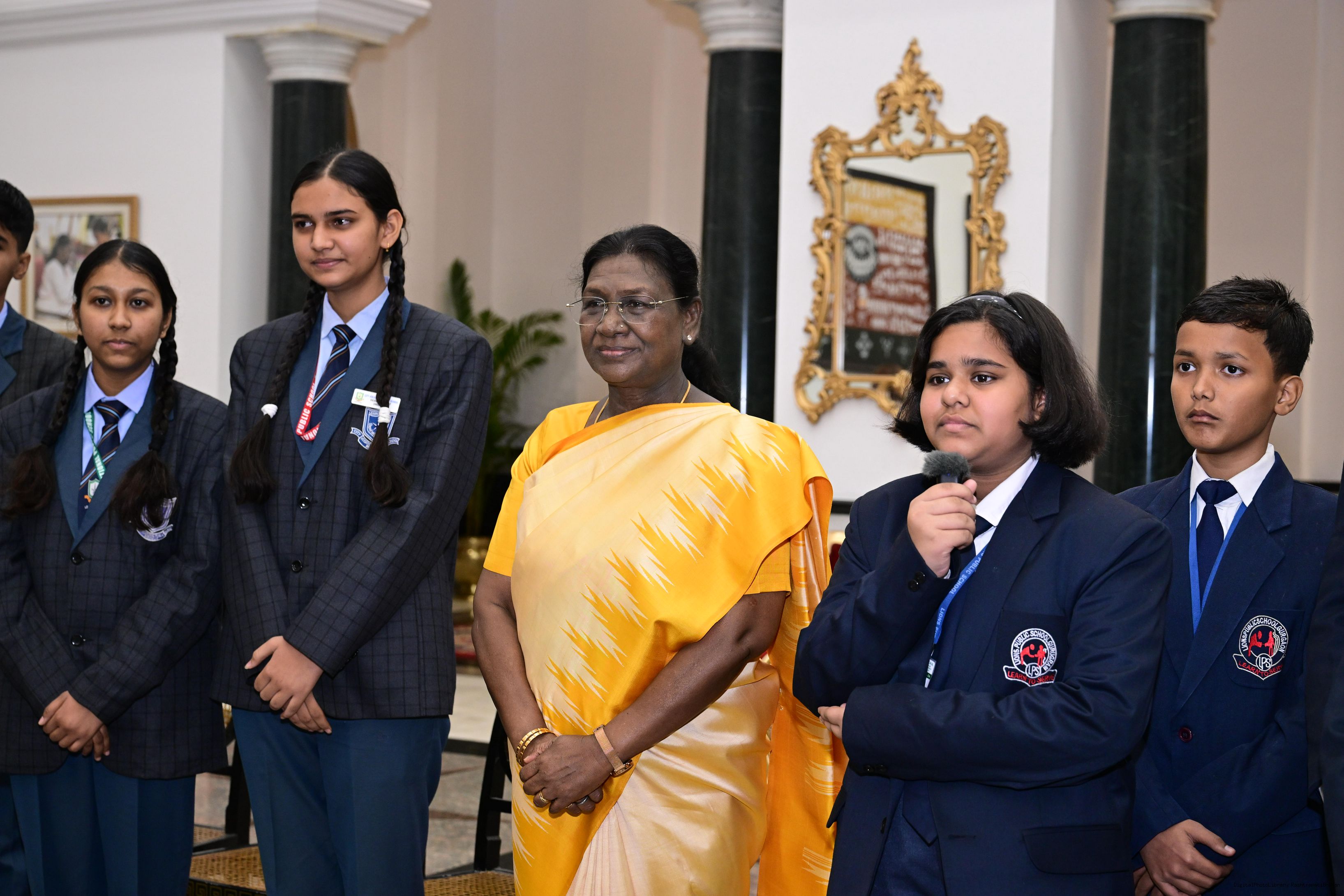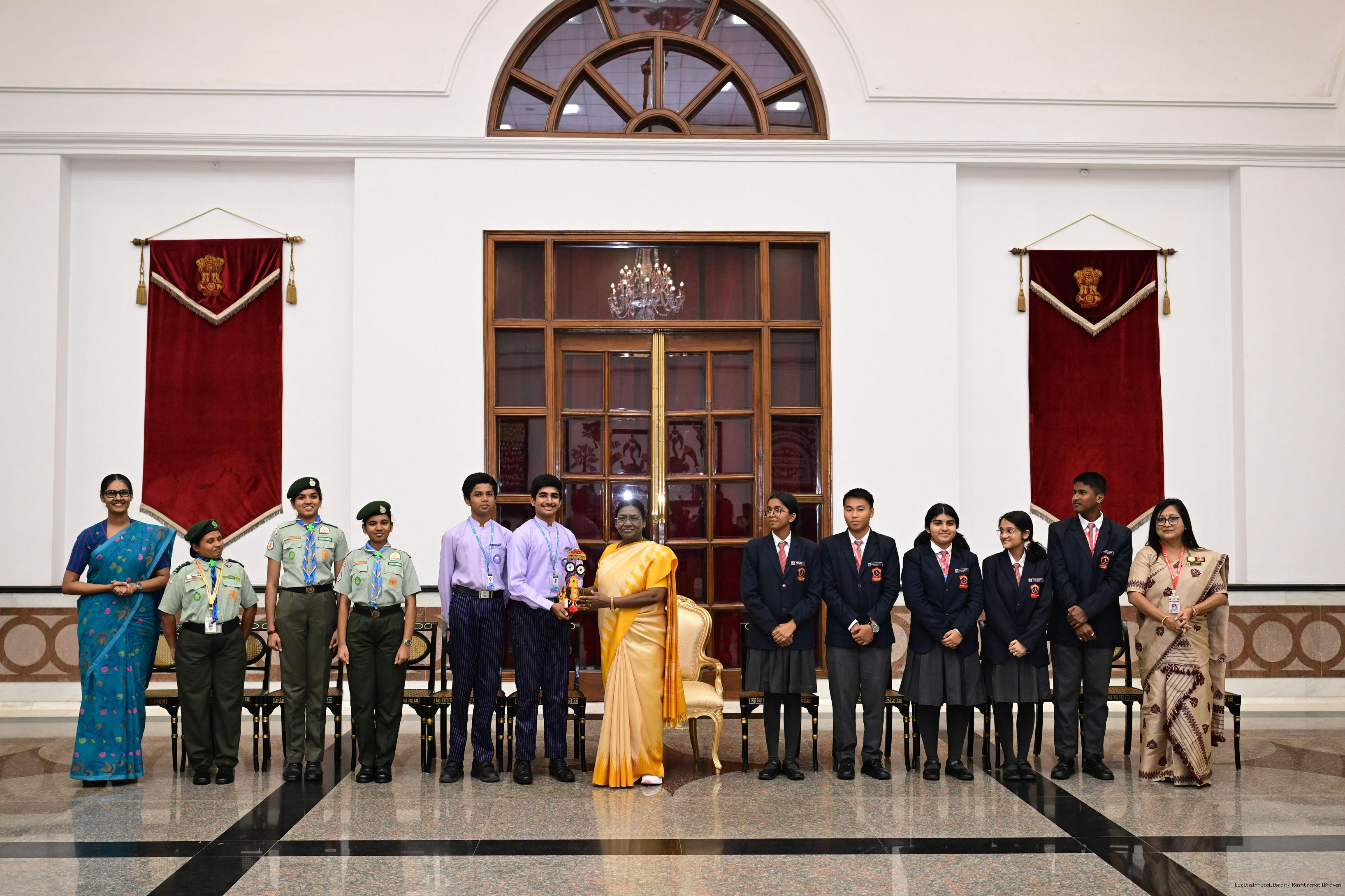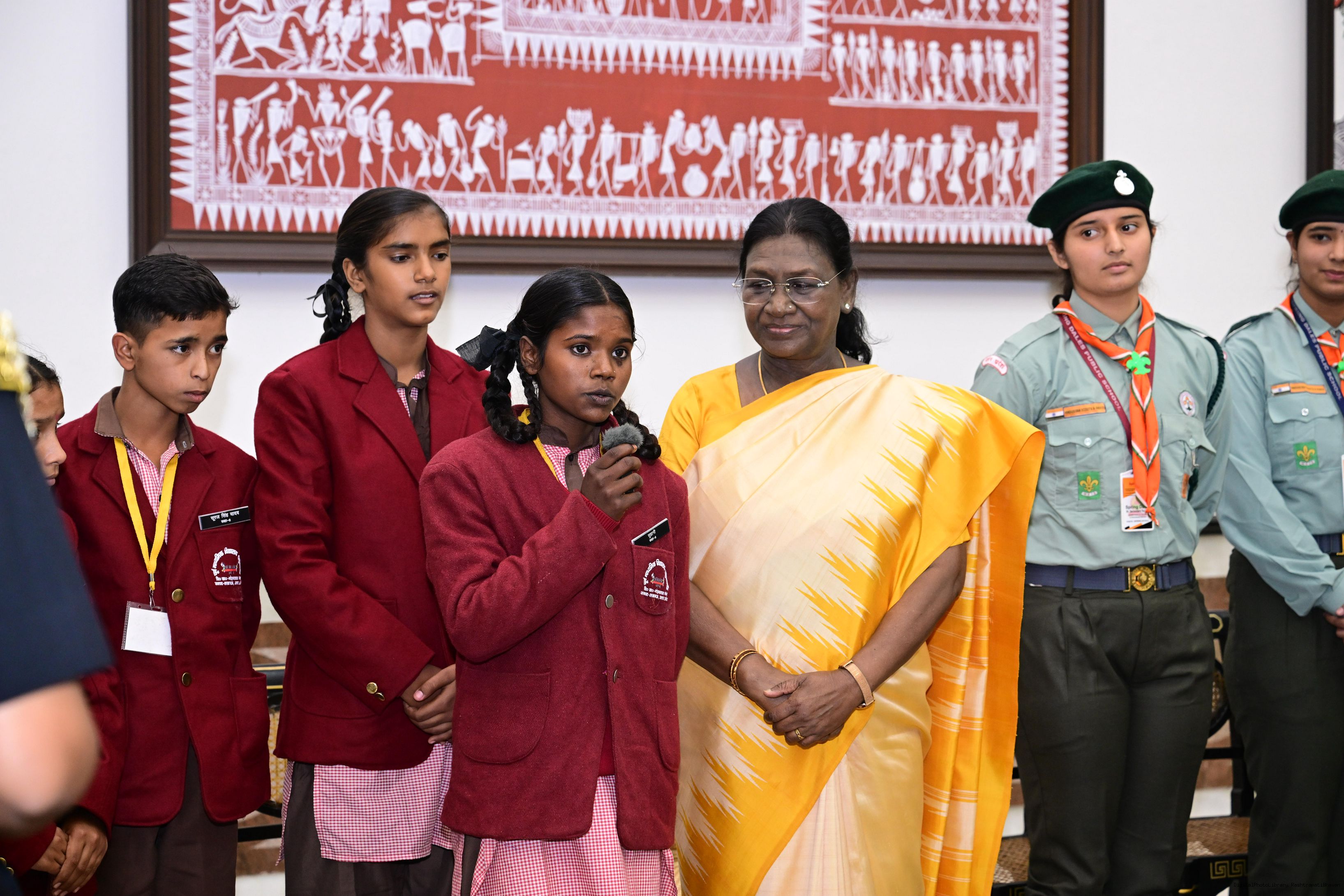 | Caption: | On the occasion of Children's Day, The President of India, Smt Droupadi Murmu interacted with children from various schools and organisations at Rashtrapati Bhavan Cultural Centre on November 14, 2025. |