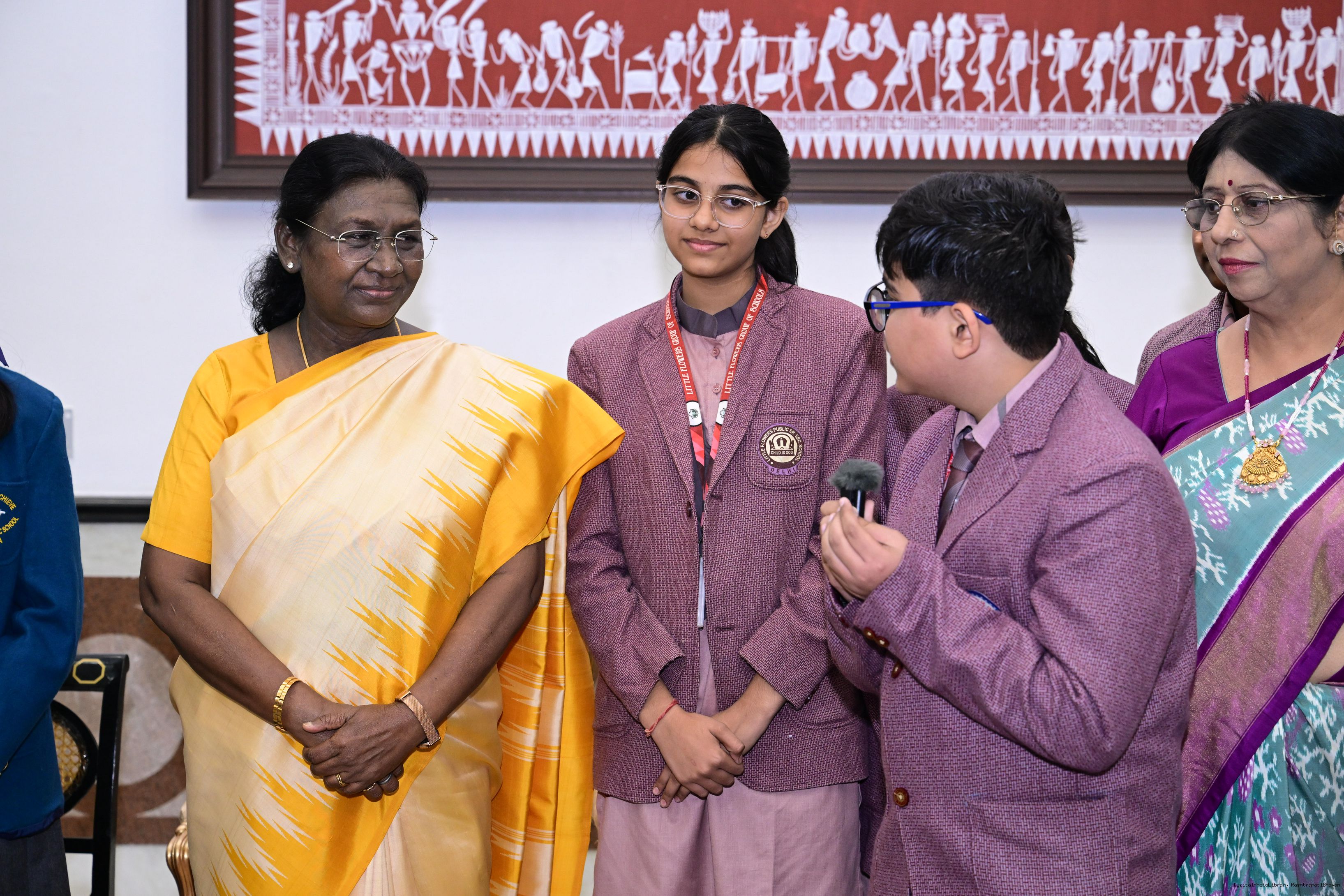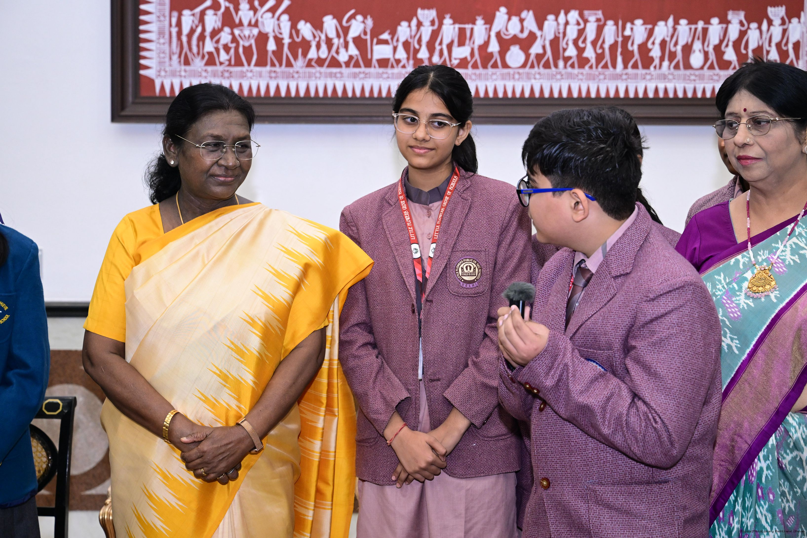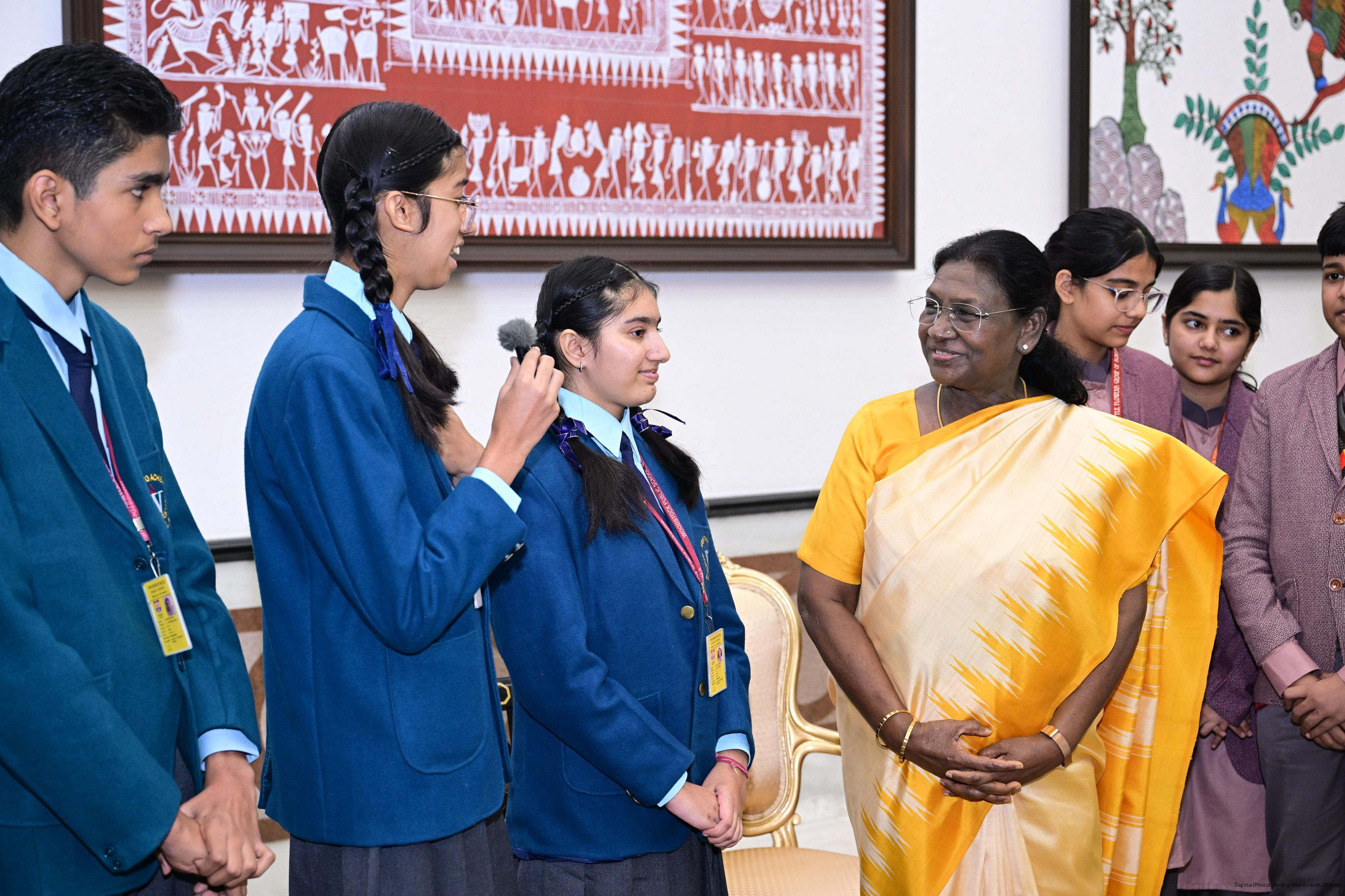 | Caption: | On the occasion of Children's Day, The President of India, Smt Droupadi Murmu interacted with children from various schools and organisations at Rashtrapati Bhavan Cultural Centre on November 14, 2025. |