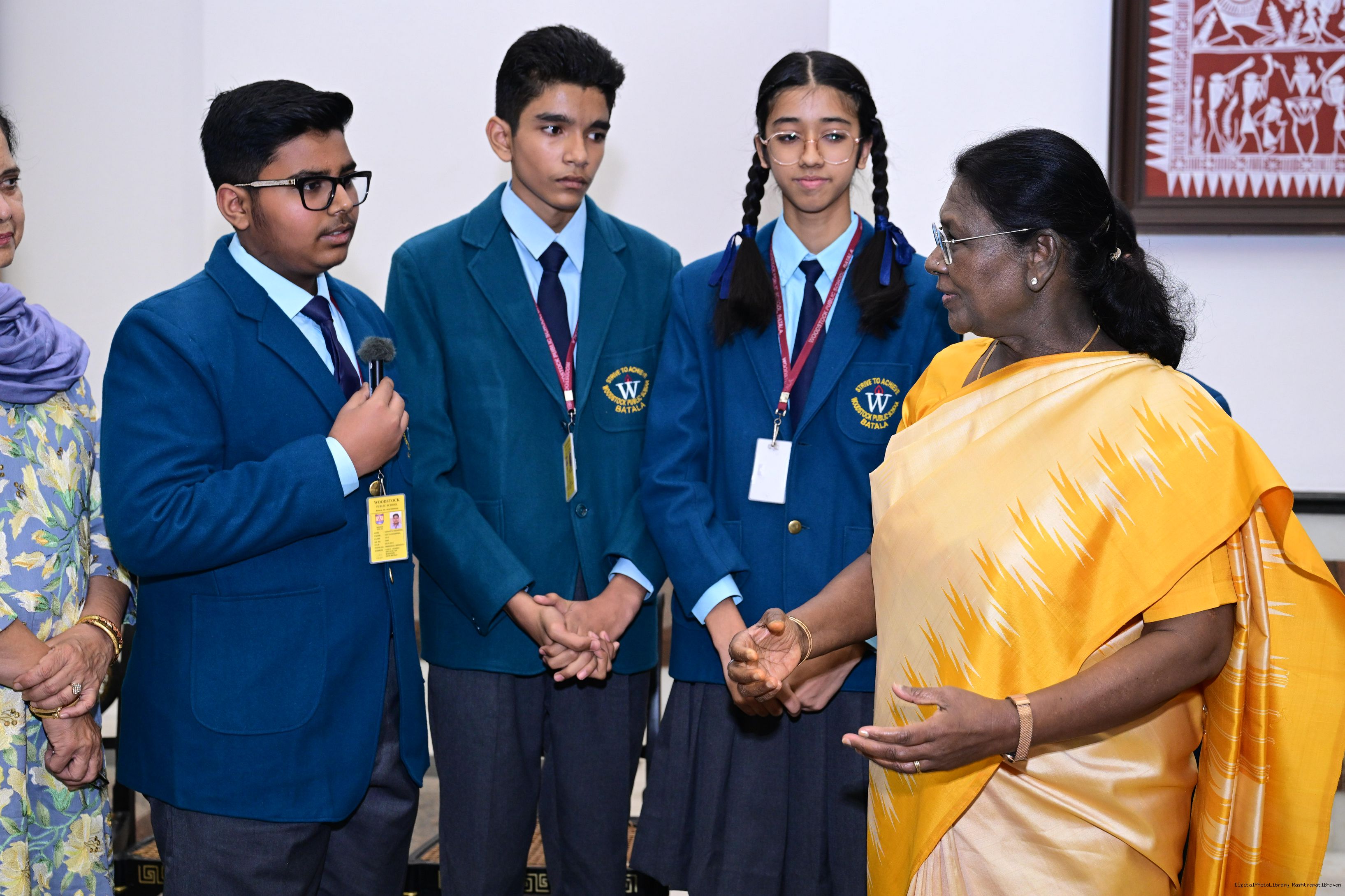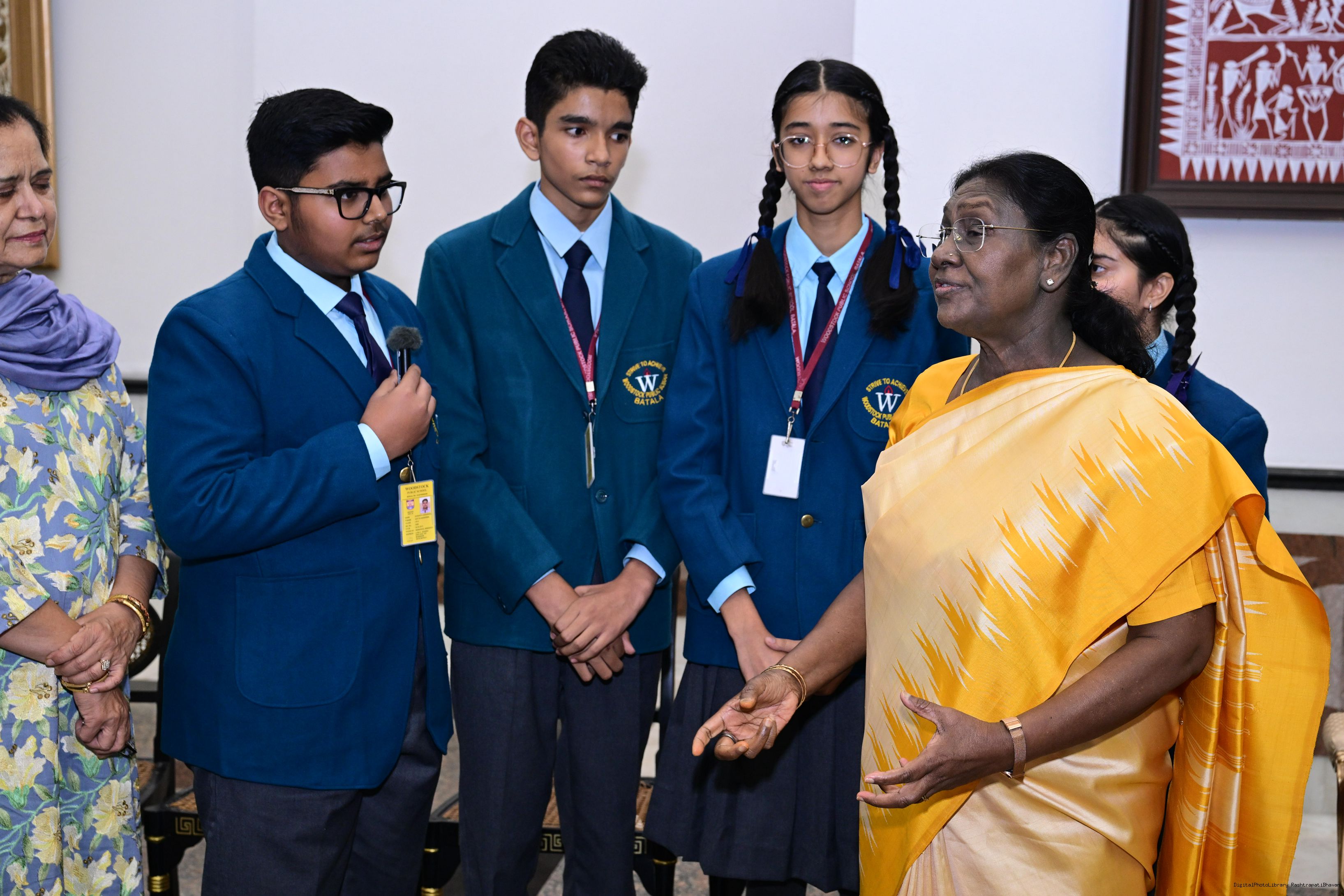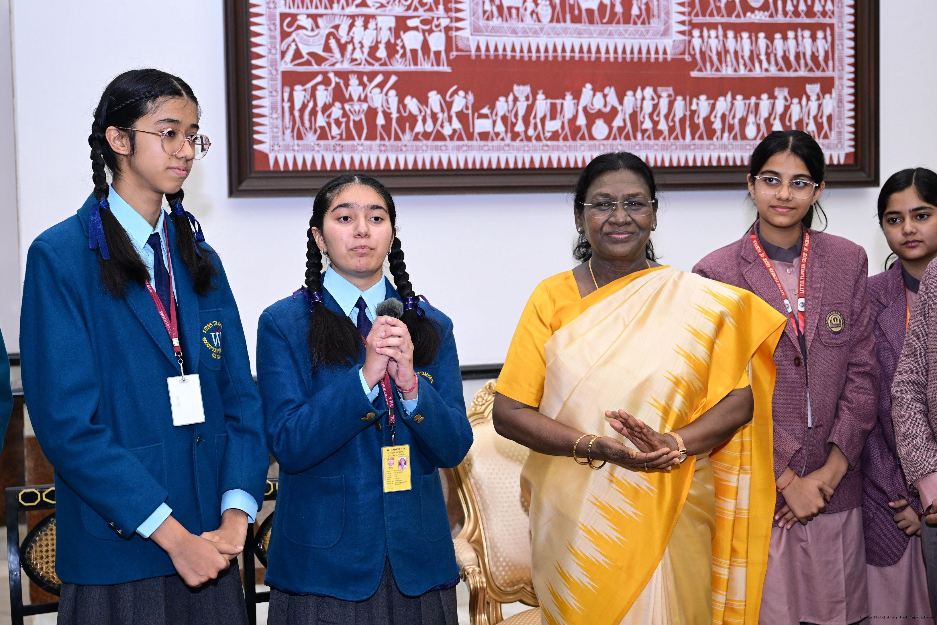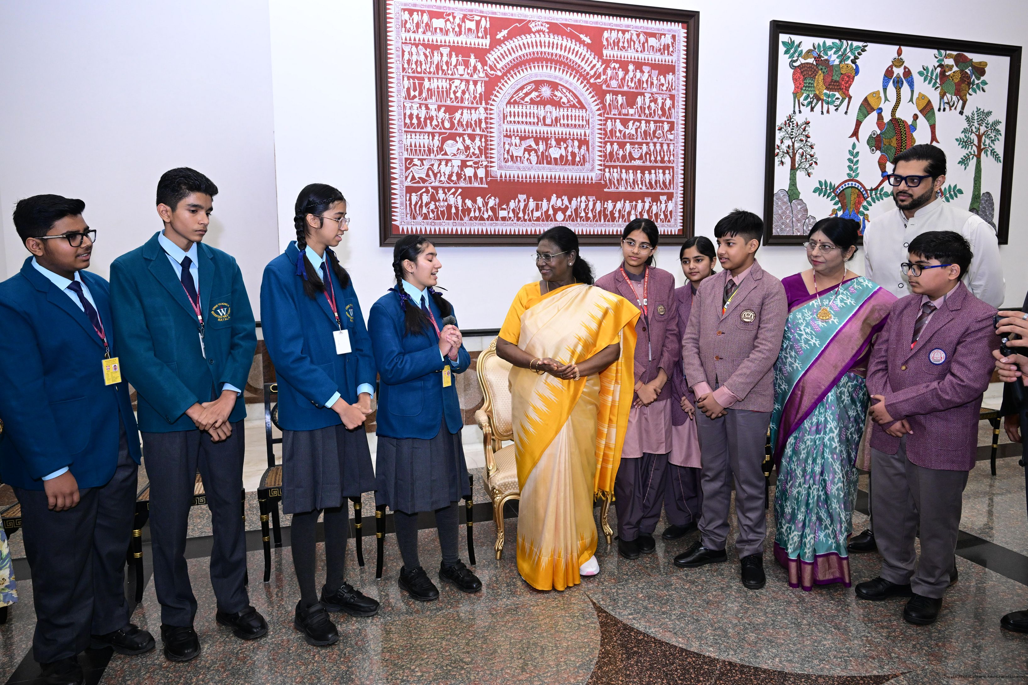 | Caption: | On the occasion of Children's Day, The President of India, Smt Droupadi Murmu interacted with children from various schools and organisations at Rashtrapati Bhavan Cultural Centre on November 14, 2025. |