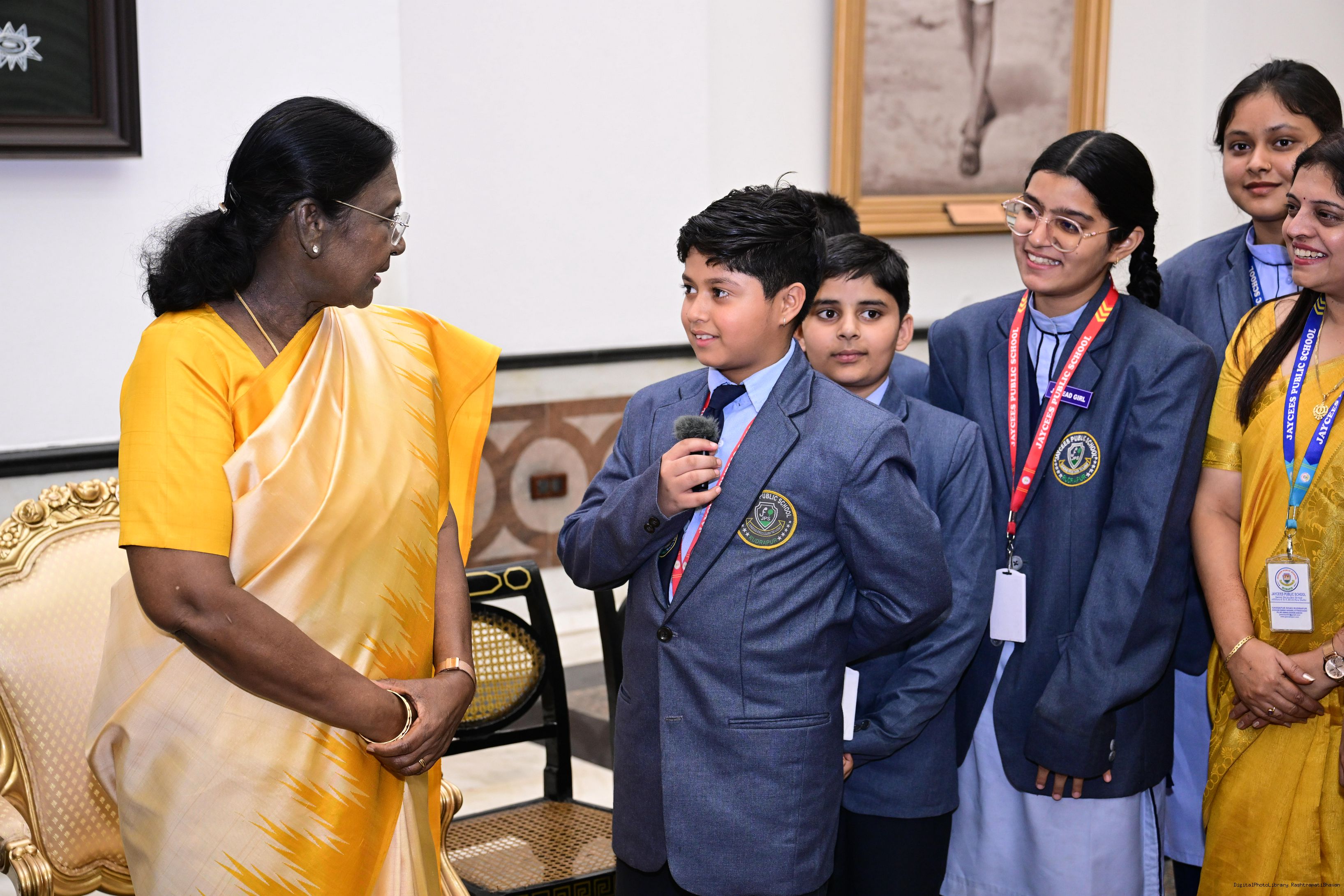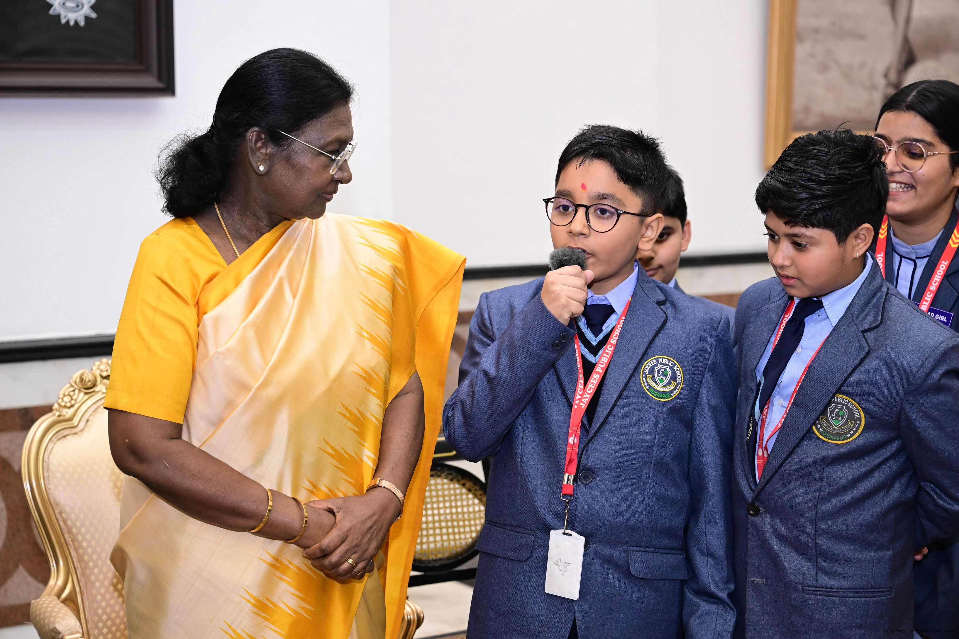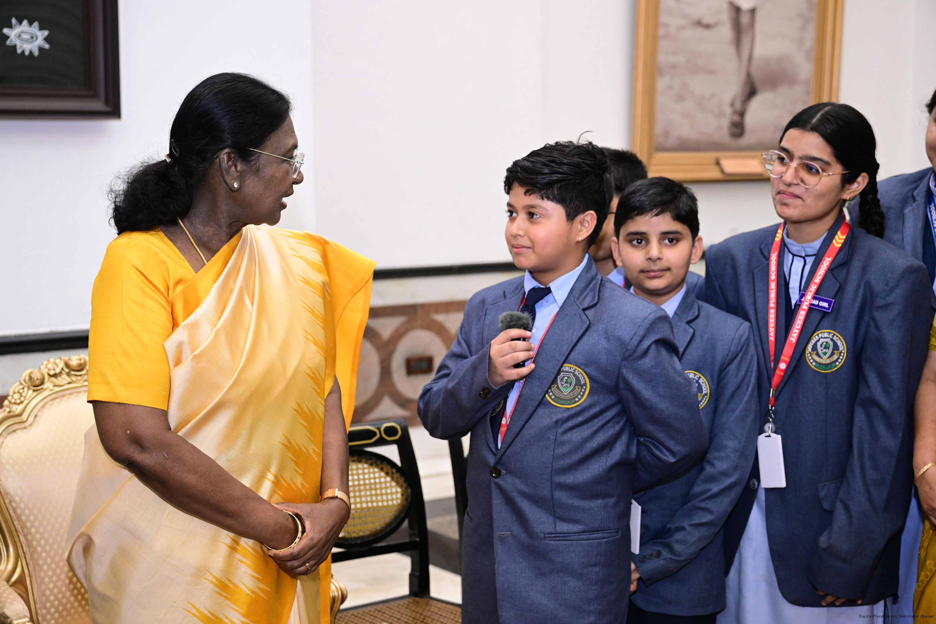 | Caption: | On the occasion of Children's Day, The President of India, Smt Droupadi Murmu interacted with children from various schools and organisations at Rashtrapati Bhavan Cultural Centre on November 14, 2025. |