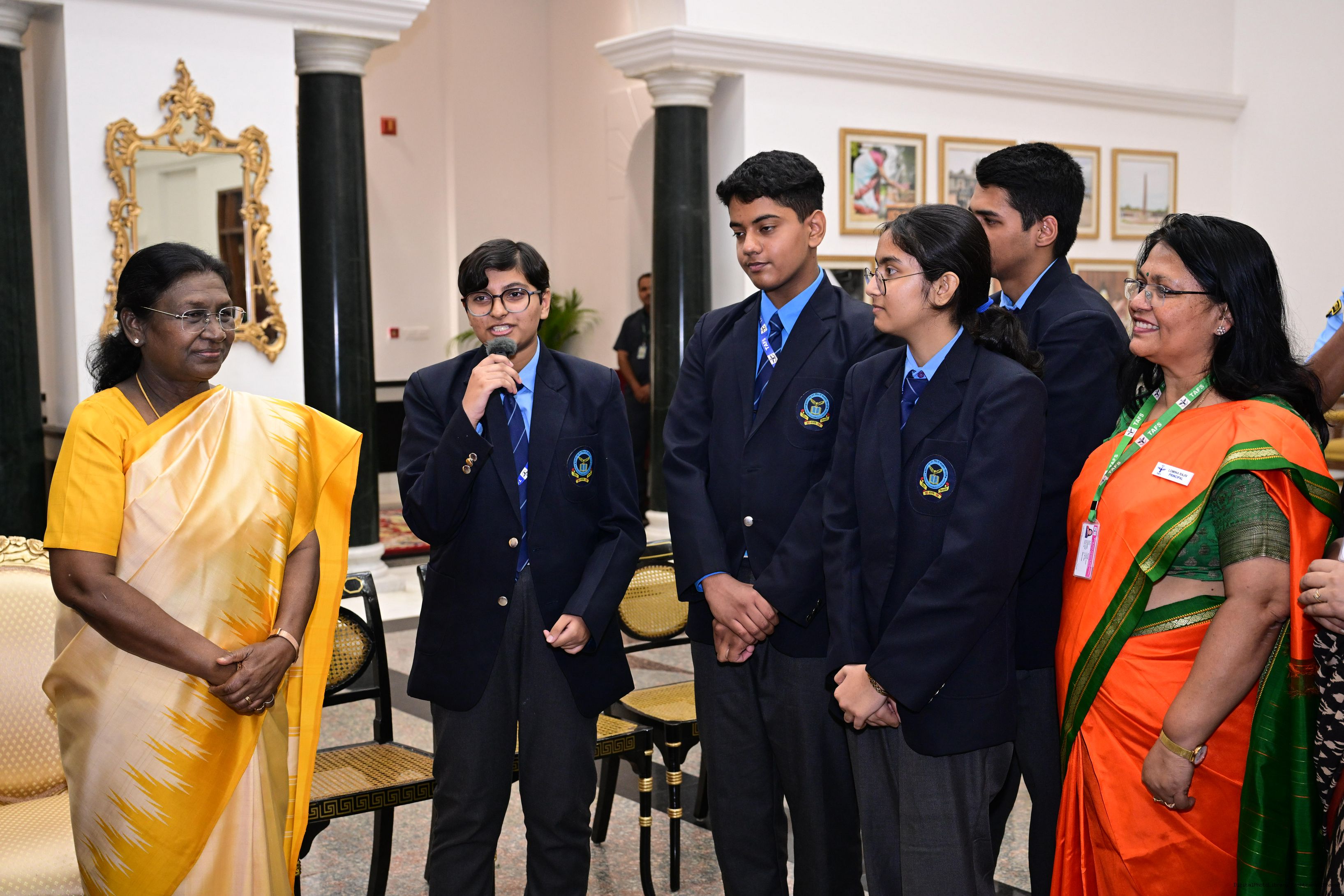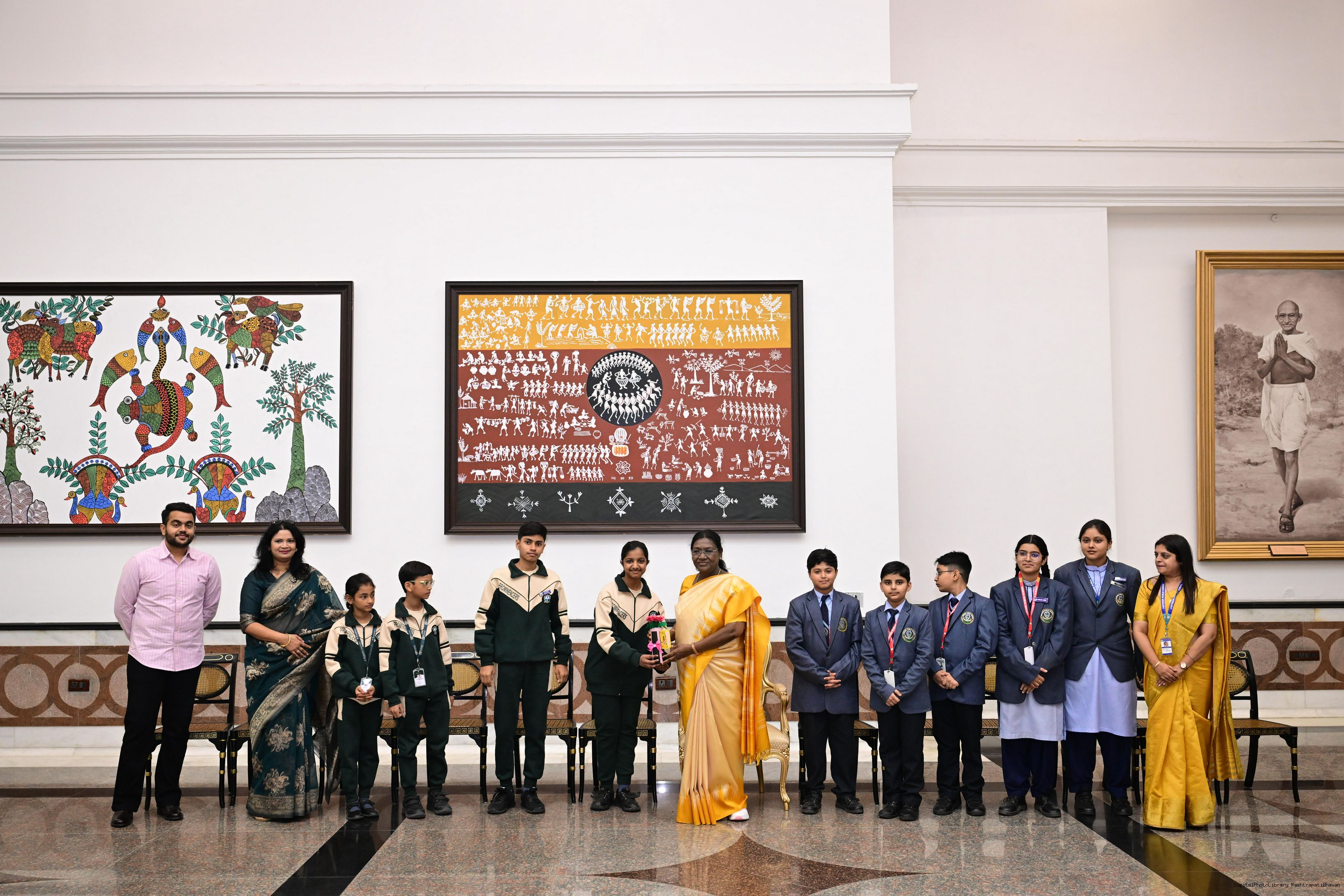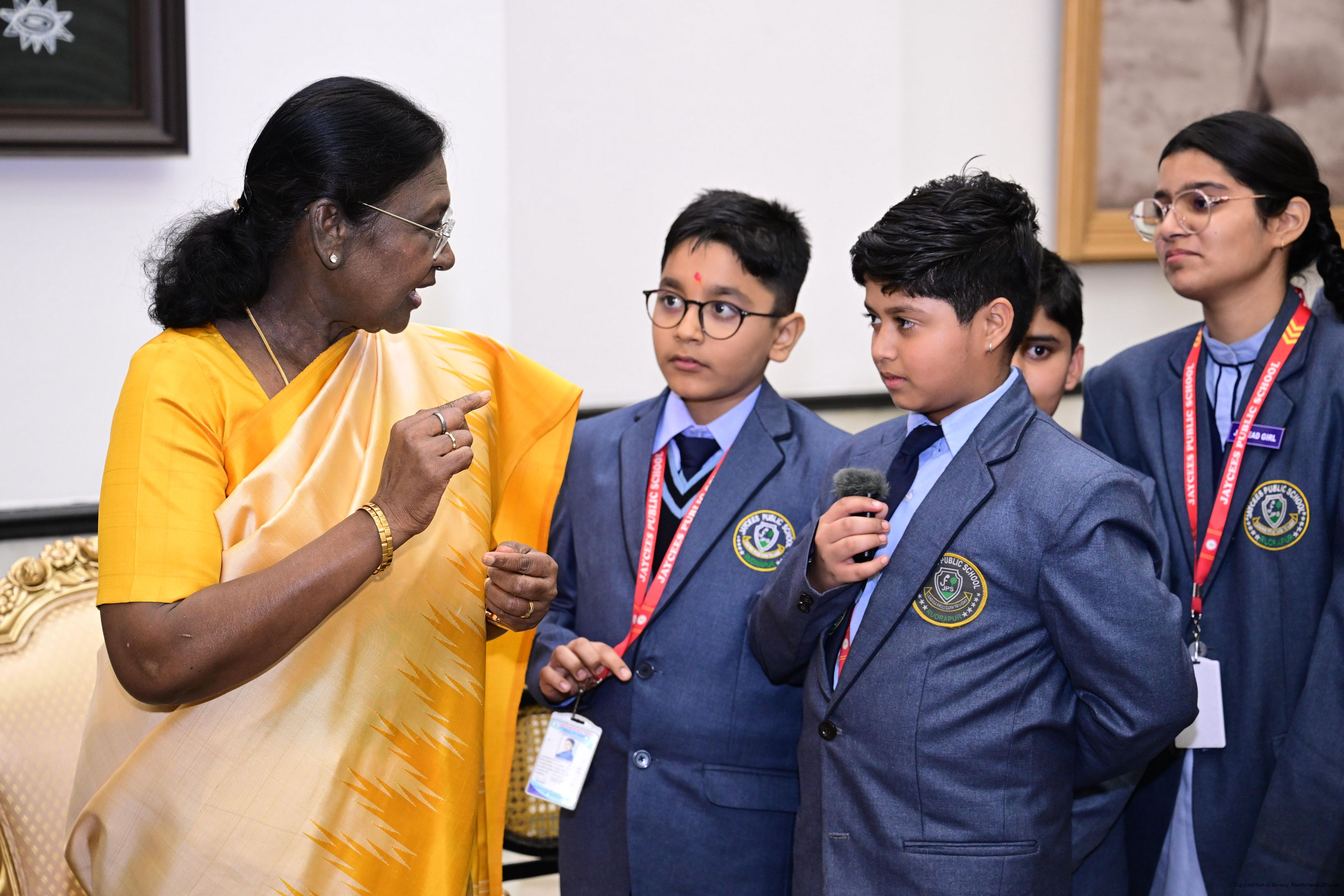 | Caption: | On the occasion of Children's Day, The President of India, Smt Droupadi Murmu interacted with children from various schools and organisations at Rashtrapati Bhavan Cultural Centre on November 14, 2025. |