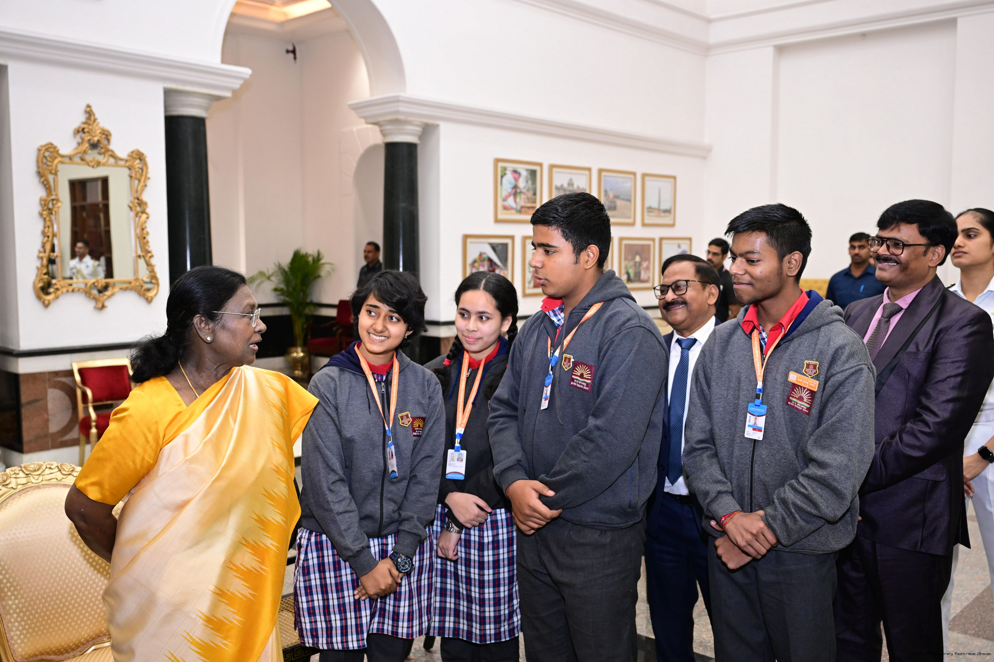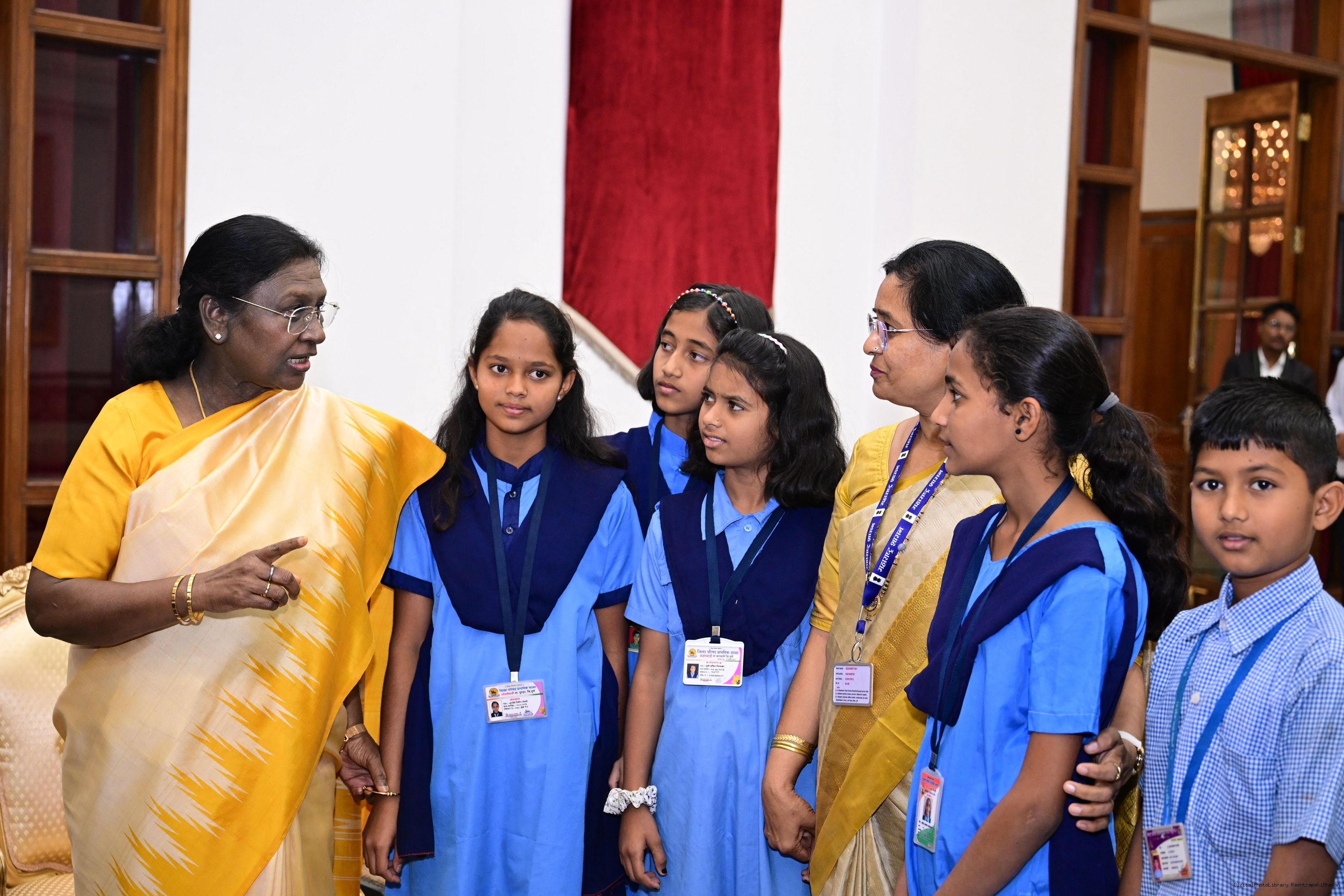 | Caption: | On the occasion of Children's Day, The President of India, Smt Droupadi Murmu interacted with children from various schools and organisations at Rashtrapati Bhavan Cultural Centre on November 14, 2025. |