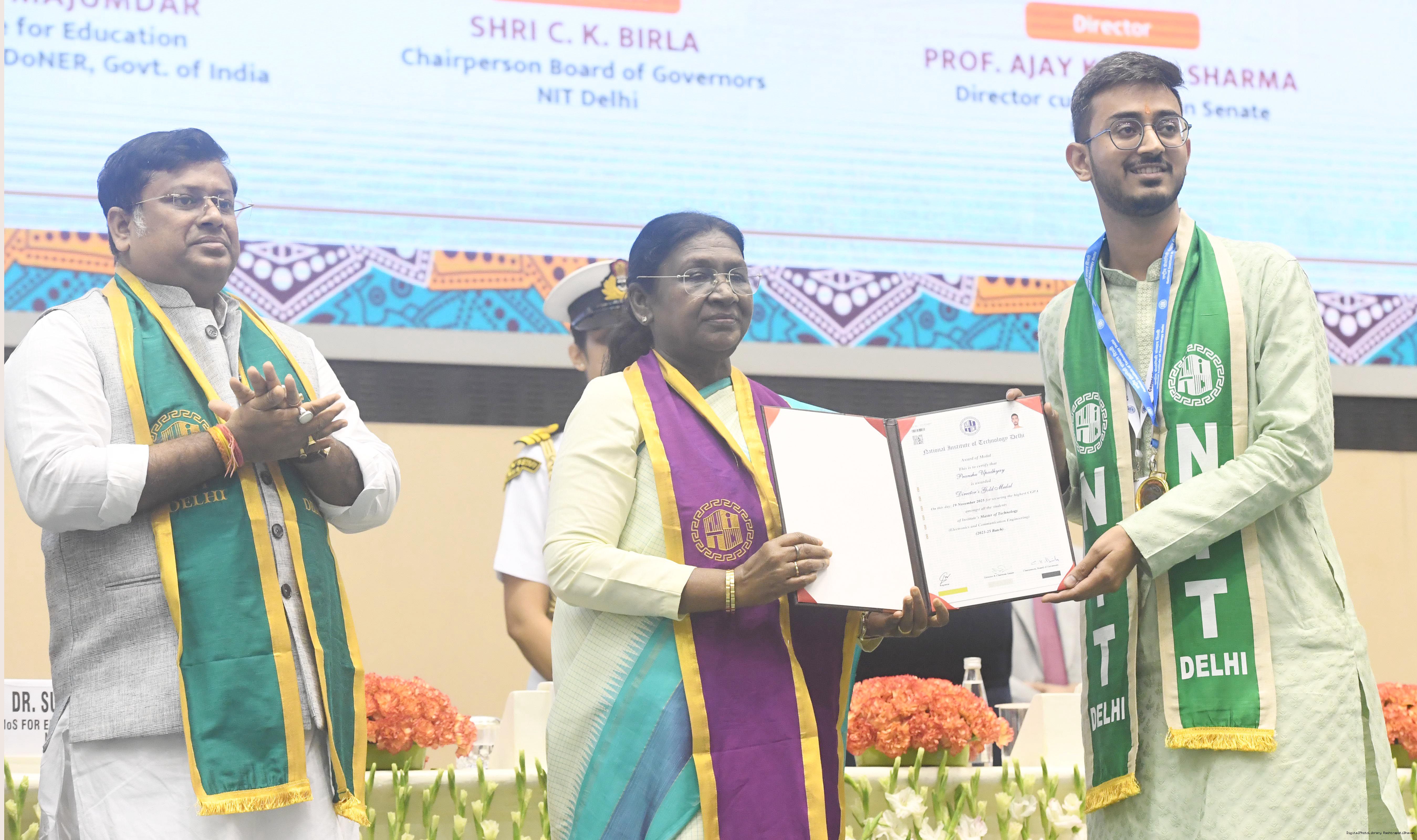 | Caption: | The President of India, Smt Droupadi Murmu, graced the fifth convocation ceremony of the National Institute of Technology Delhi at New Delhi on November 19, 2025. |