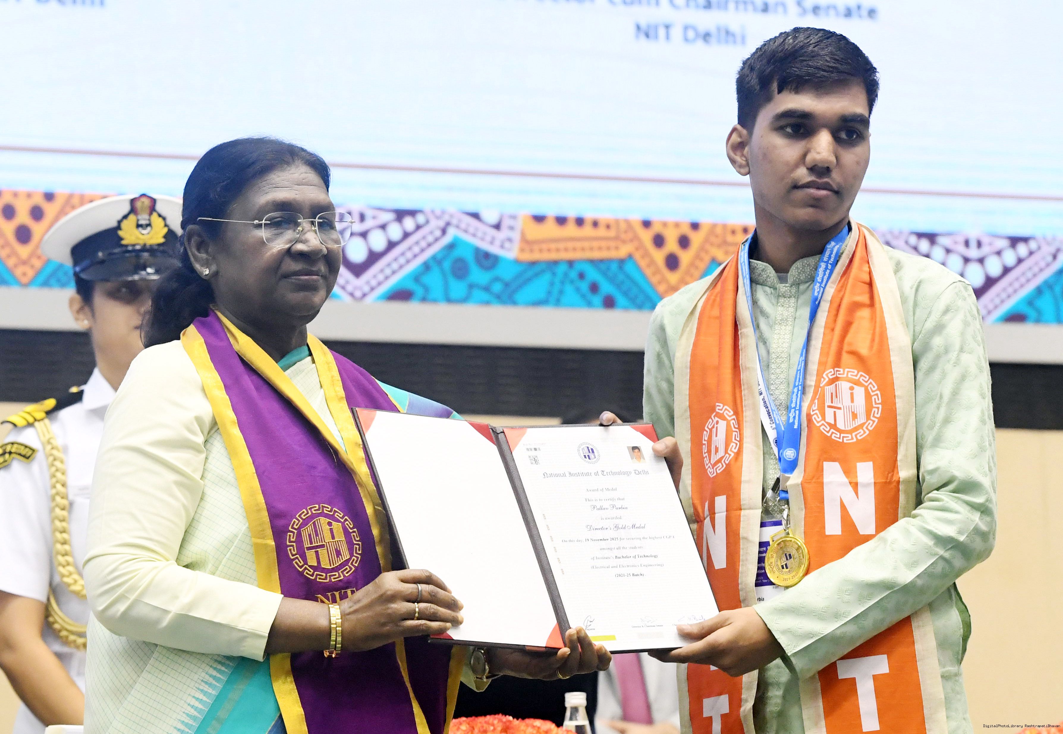 | Caption: | The President of India, Smt Droupadi Murmu, graced the fifth convocation ceremony of the National Institute of Technology Delhi at New Delhi on November 19, 2025. |