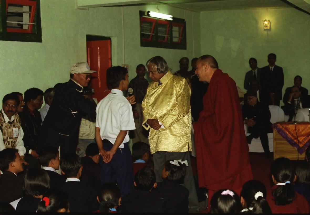 | Caption: | The President of India, Dr A P J Abdul Kalam meeting with the School Children and Teachers at Tawang in Arunachal Pradesh on Oct 14, 2002 |