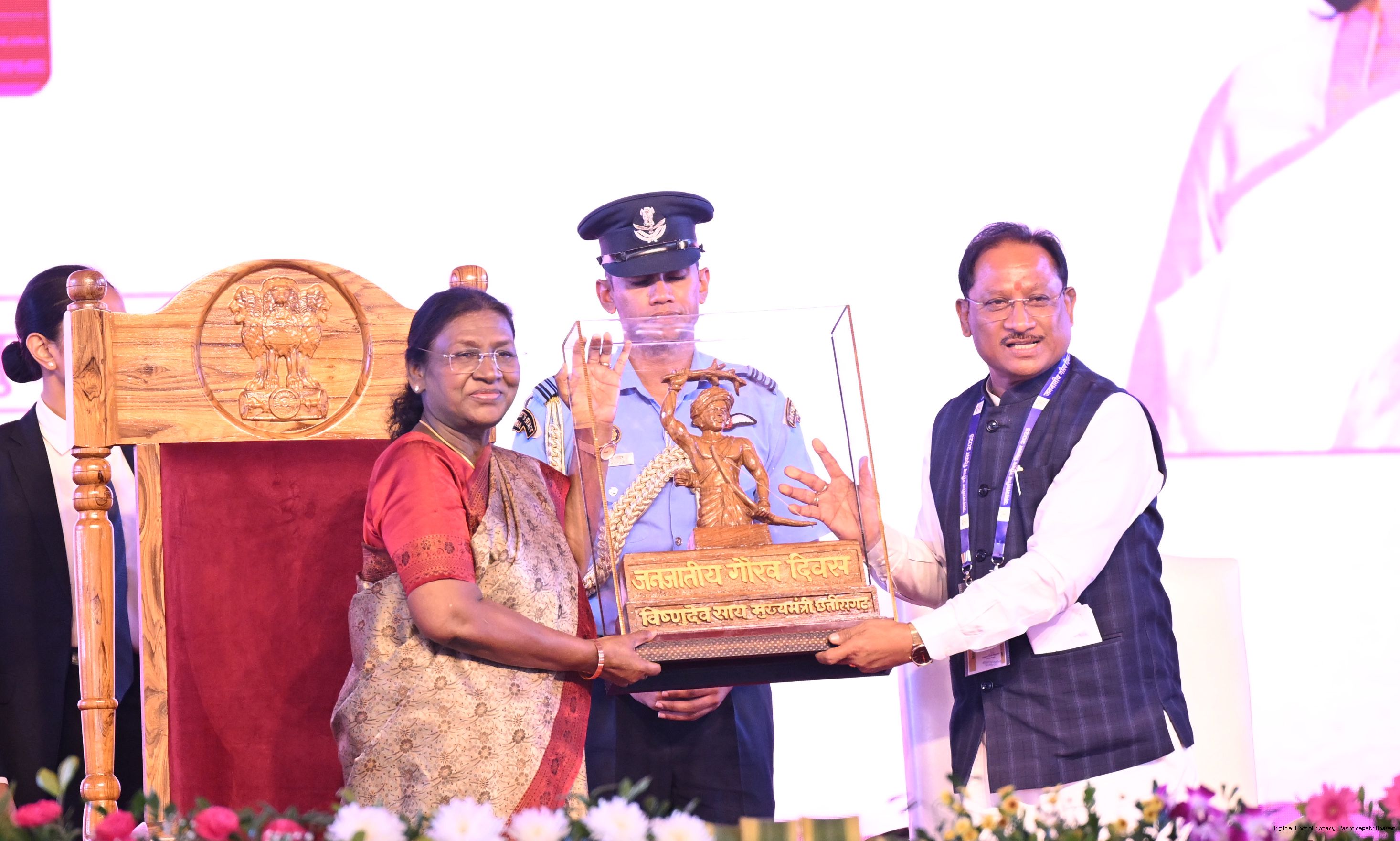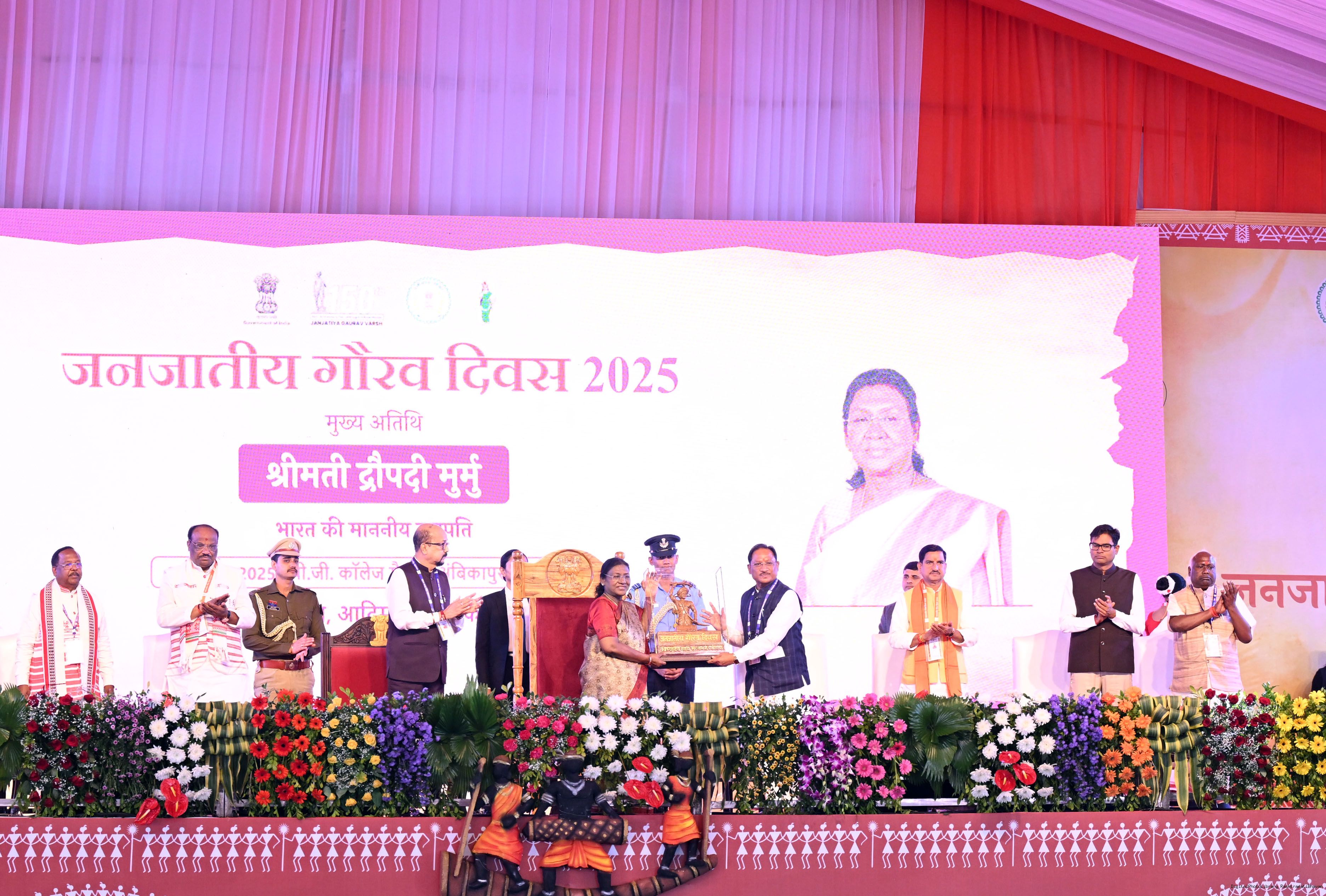 | Caption: | The President of India, Smt Droupadi Murmu, graced the Janjatiya Gaurav Diwas celebration, organised by the Government of Chhattisgarh at Ambikapur, Surguja, Chhattisgarh on November 20, 2025 |