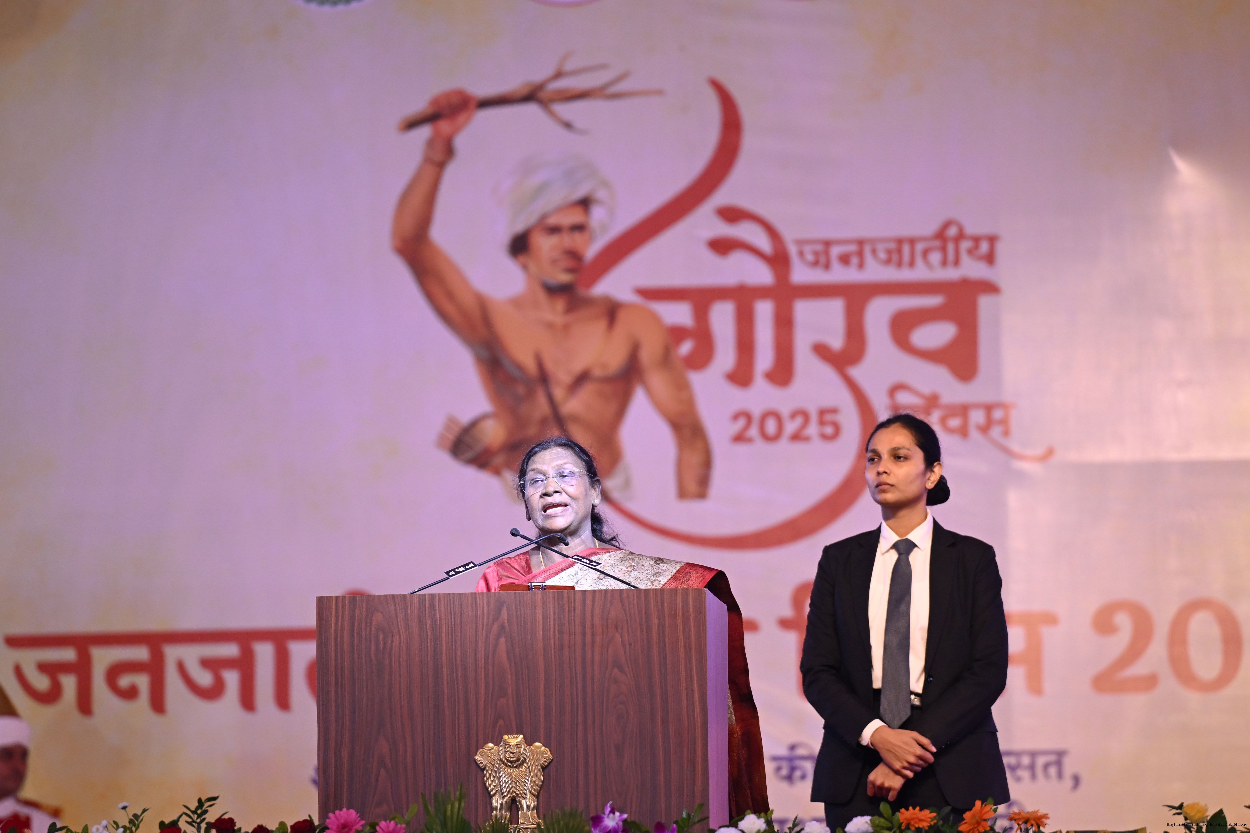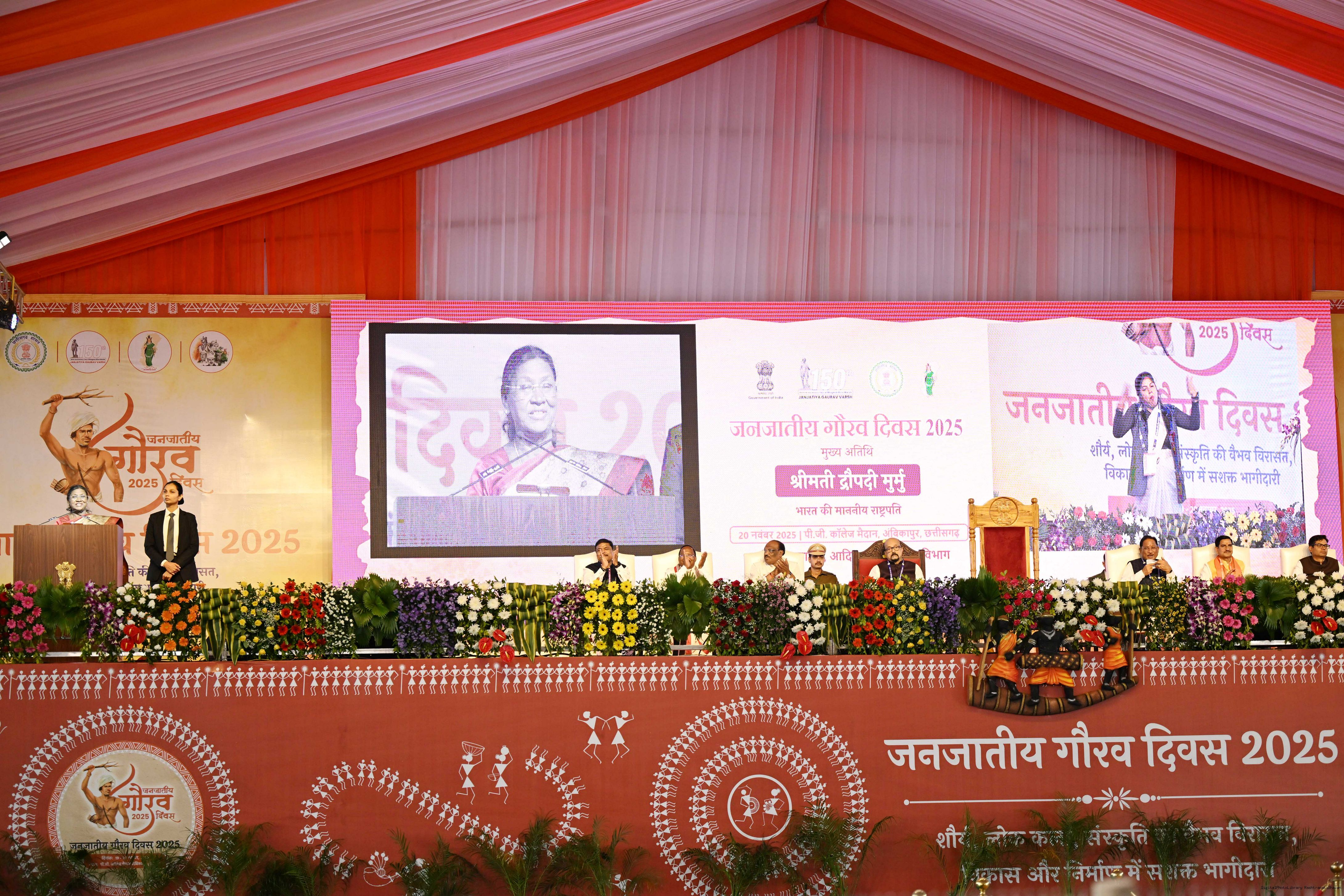 | Caption: | The President of India, Smt Droupadi Murmu, graced the Janjatiya Gaurav Diwas celebration, organised by the Government of Chhattisgarh at Ambikapur, Surguja, Chhattisgarh on November 20, 2025 |
