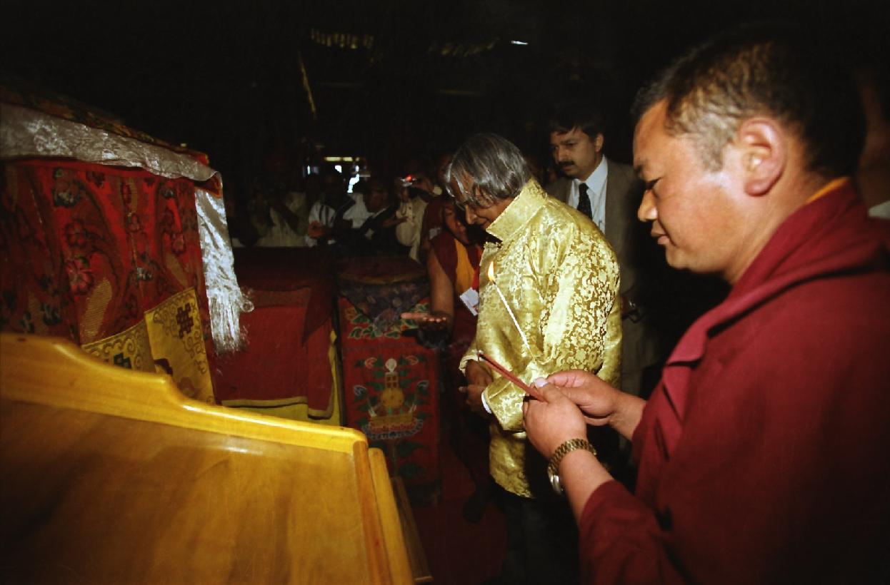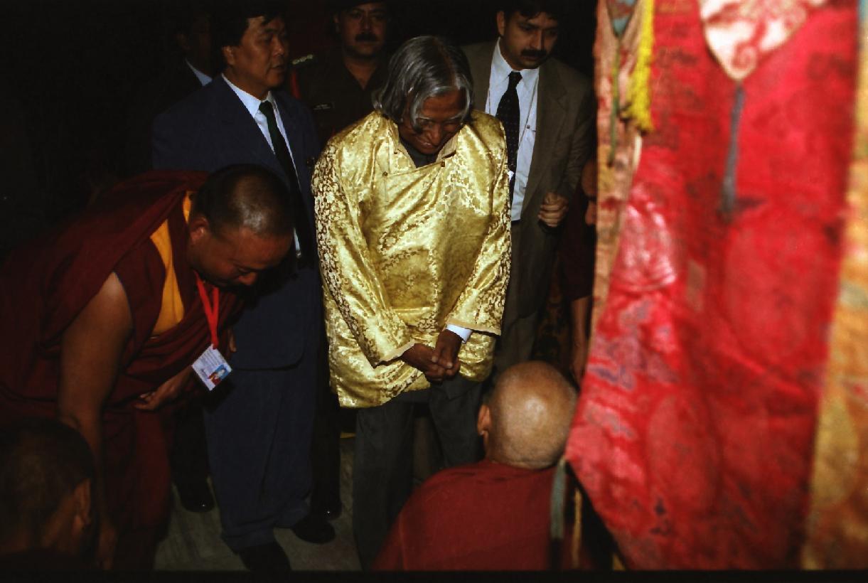 | Caption: | The President of India, Dr A P J Abdul Kalam visiting the Tawang Monastery at Tawang in Arunachal Pradesh on Oct 14, 2002 |