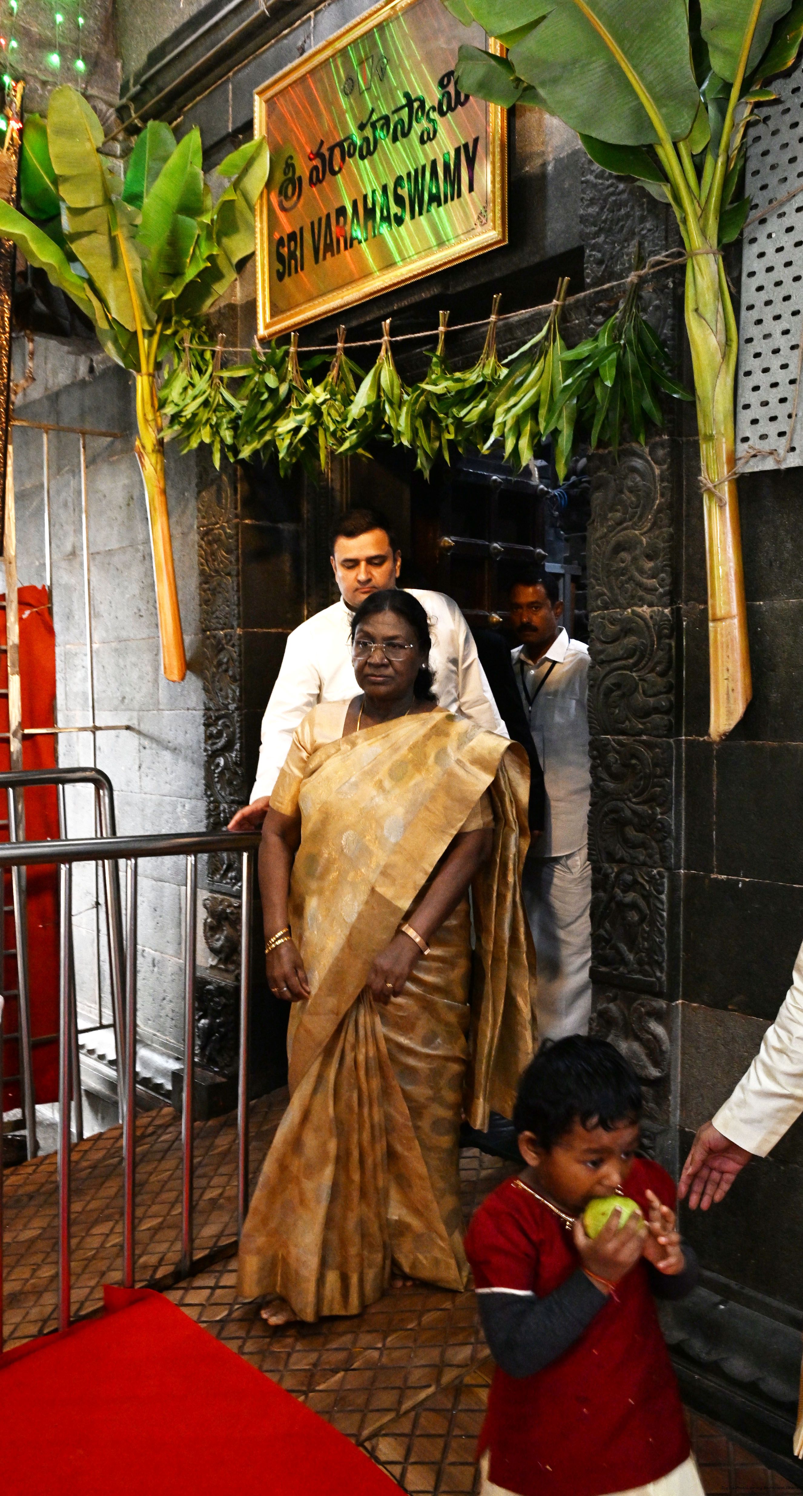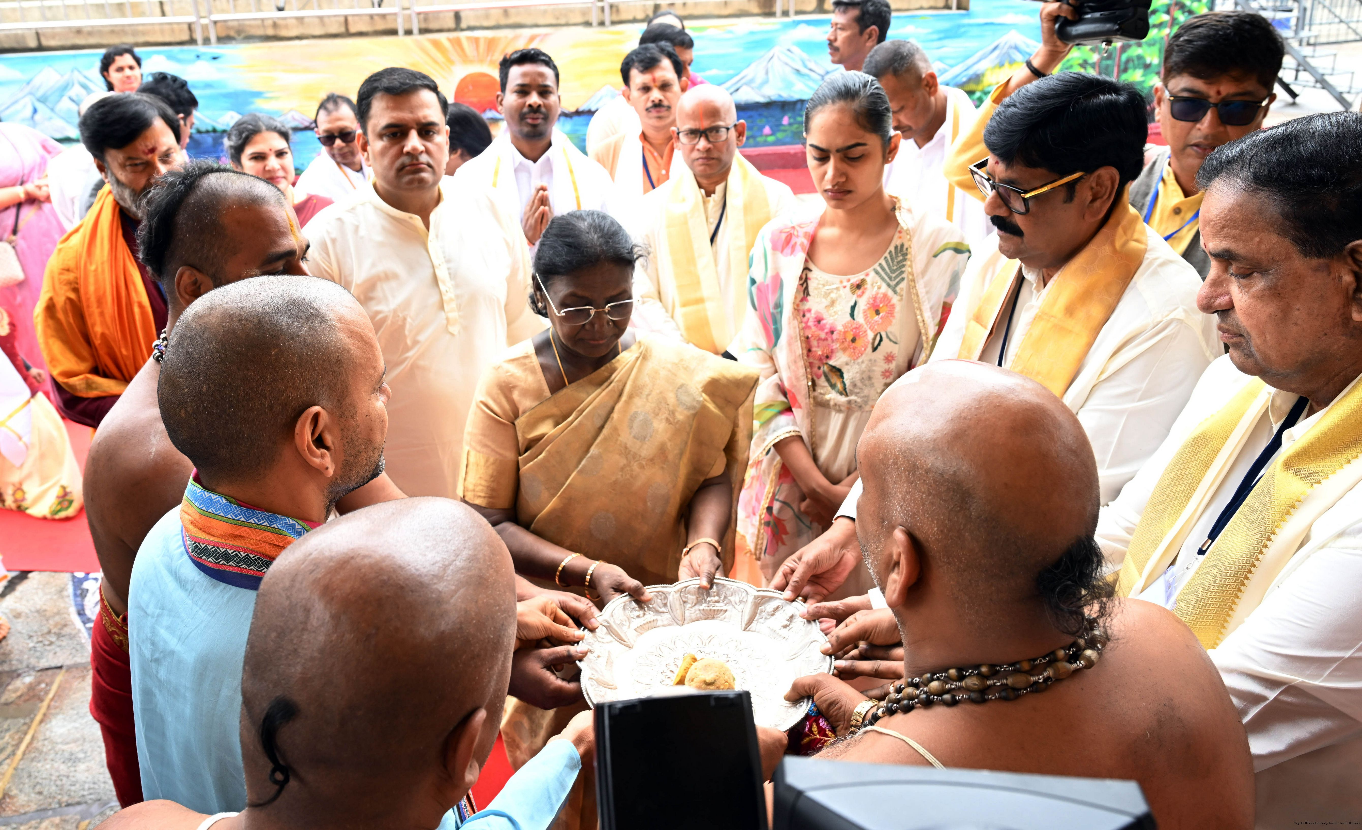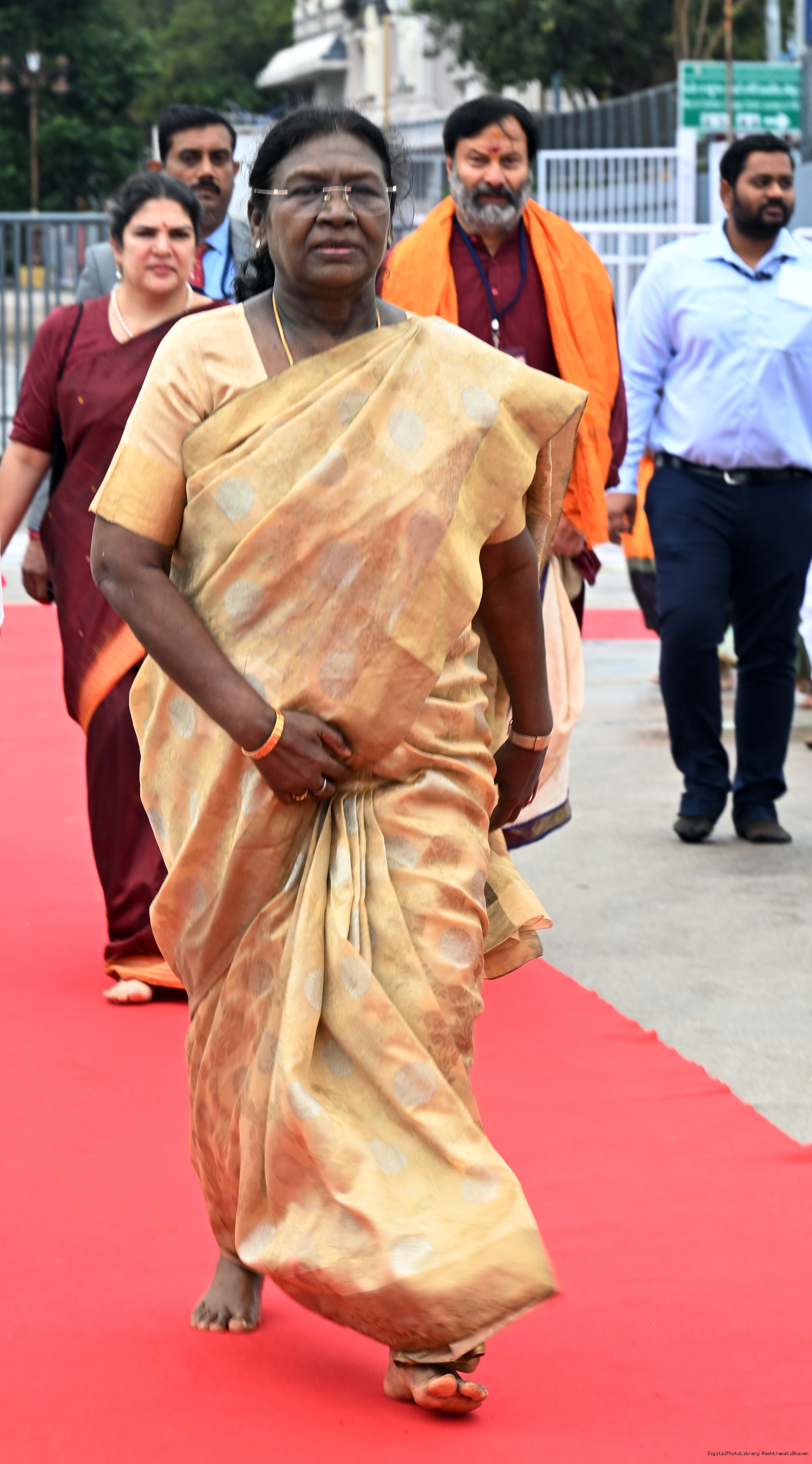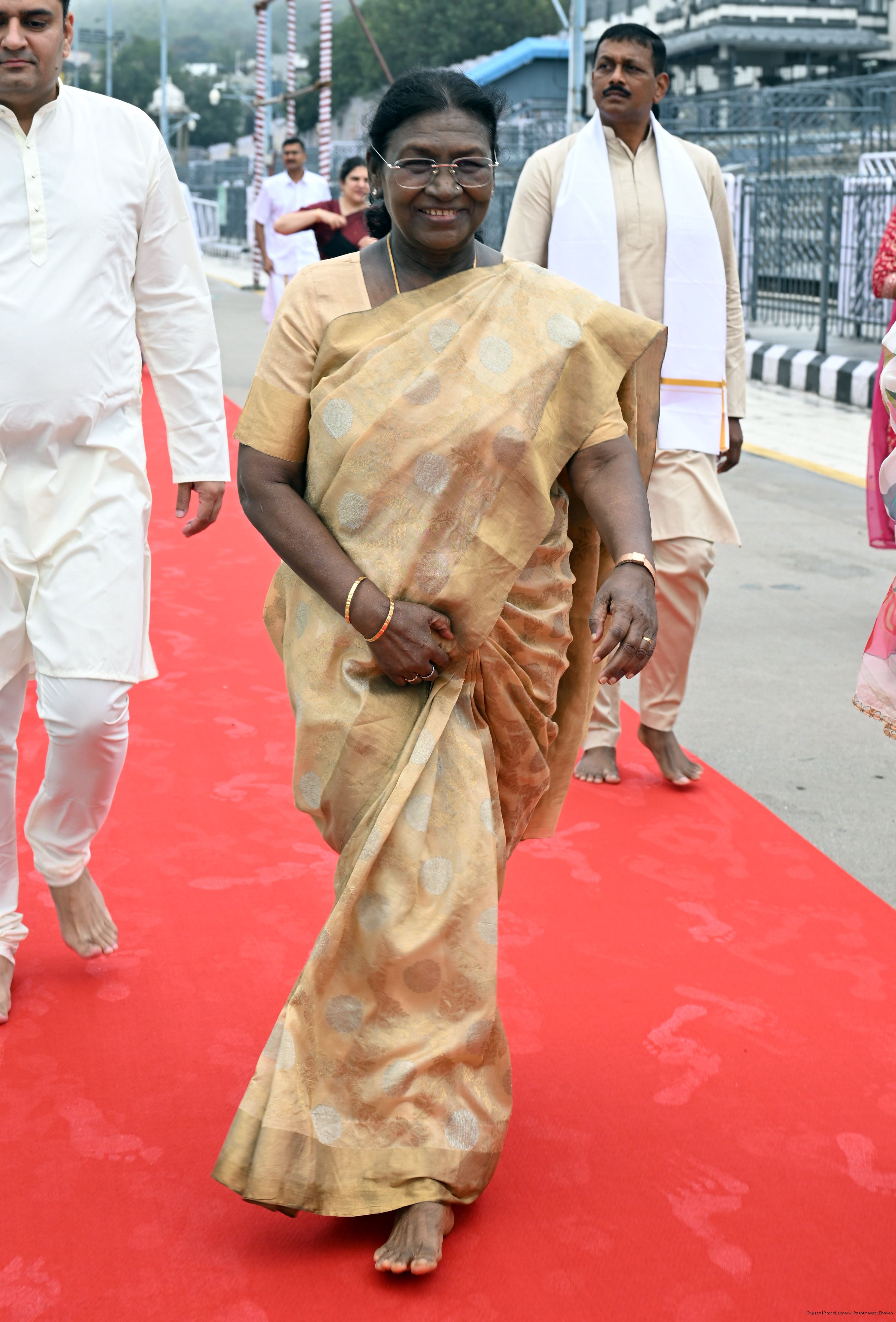 | Caption: | The President of India, Smt. Droupadi Murmu performed Darshan and Puja at Sri Venkateswara Swamy Temple at Tirumala, Andhra Pradesh on November 20, 2025. |
