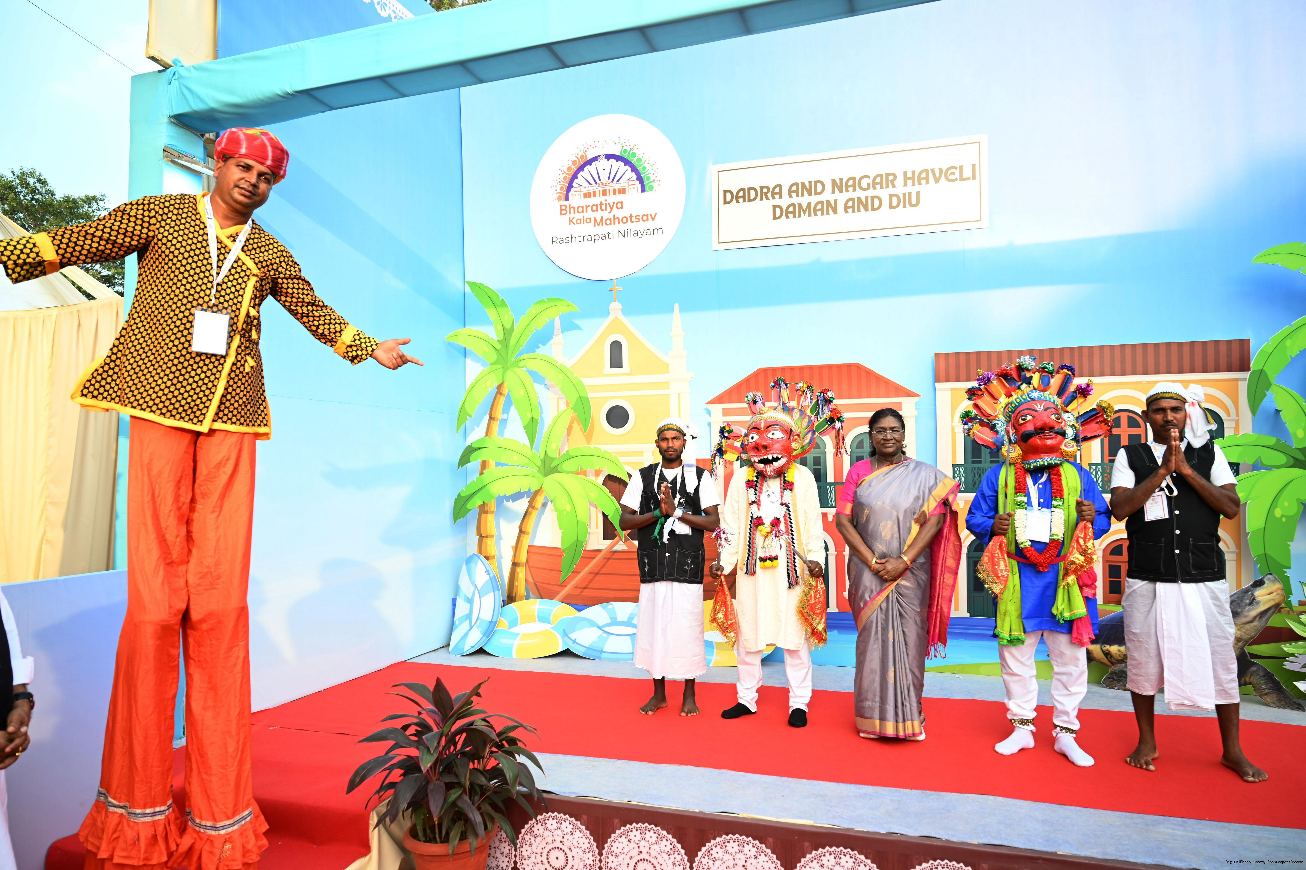 | Caption: | The President of India, Smt Droupadi Murmu, inaugurated the 2nd edition of Bharatiya Kala Mahotsav at Rashtrapati Nilayam, Secunderabad on November 21, 2025. |