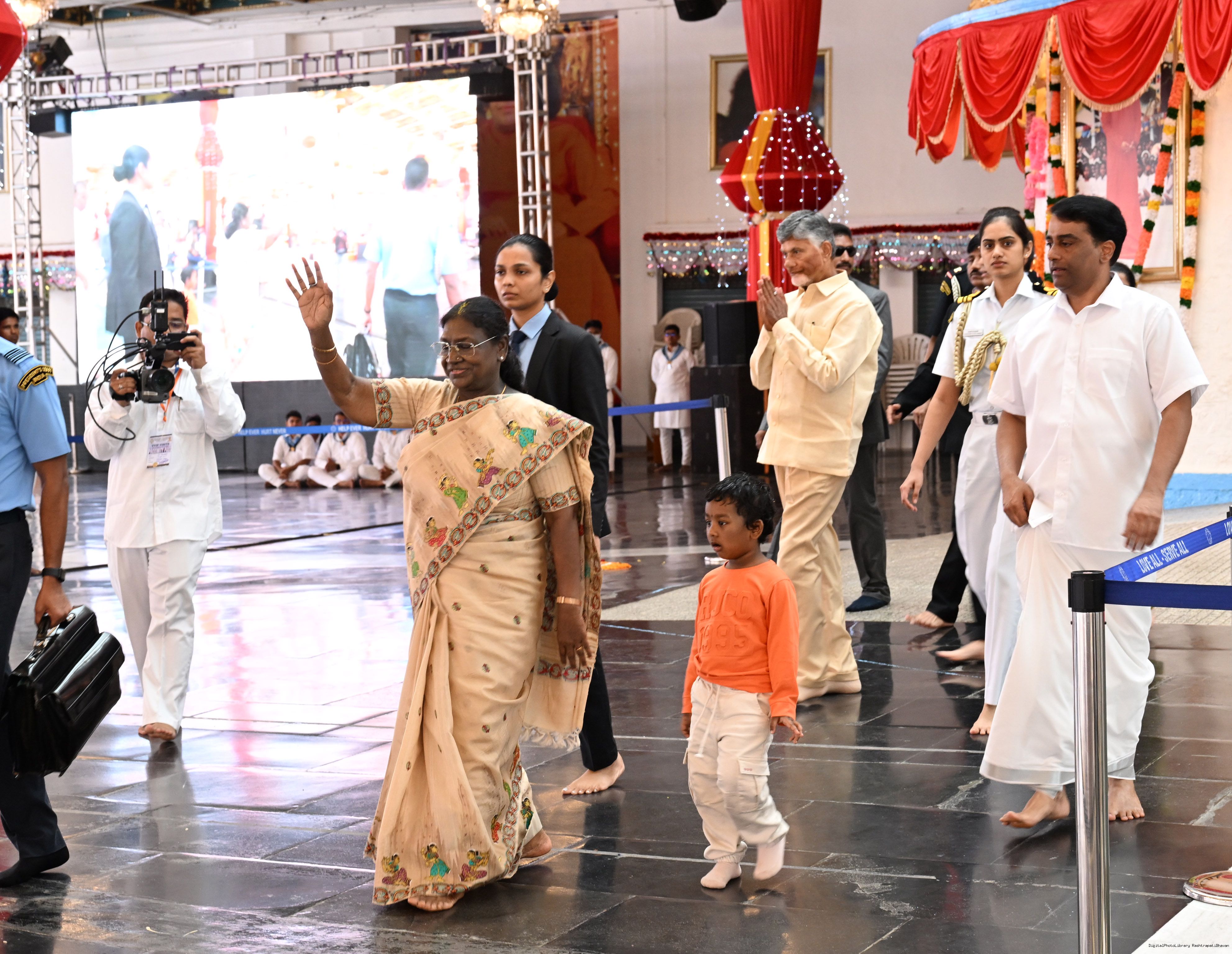 | Caption: | The President of India, Smt. Droupadi Murmu graced the special event to commemorate centenary celebration of Sri Sathya Sai Baba at Prasanthi Nilayam, Puttaparthi, Andhra Pradesh on November 21, 2025. |