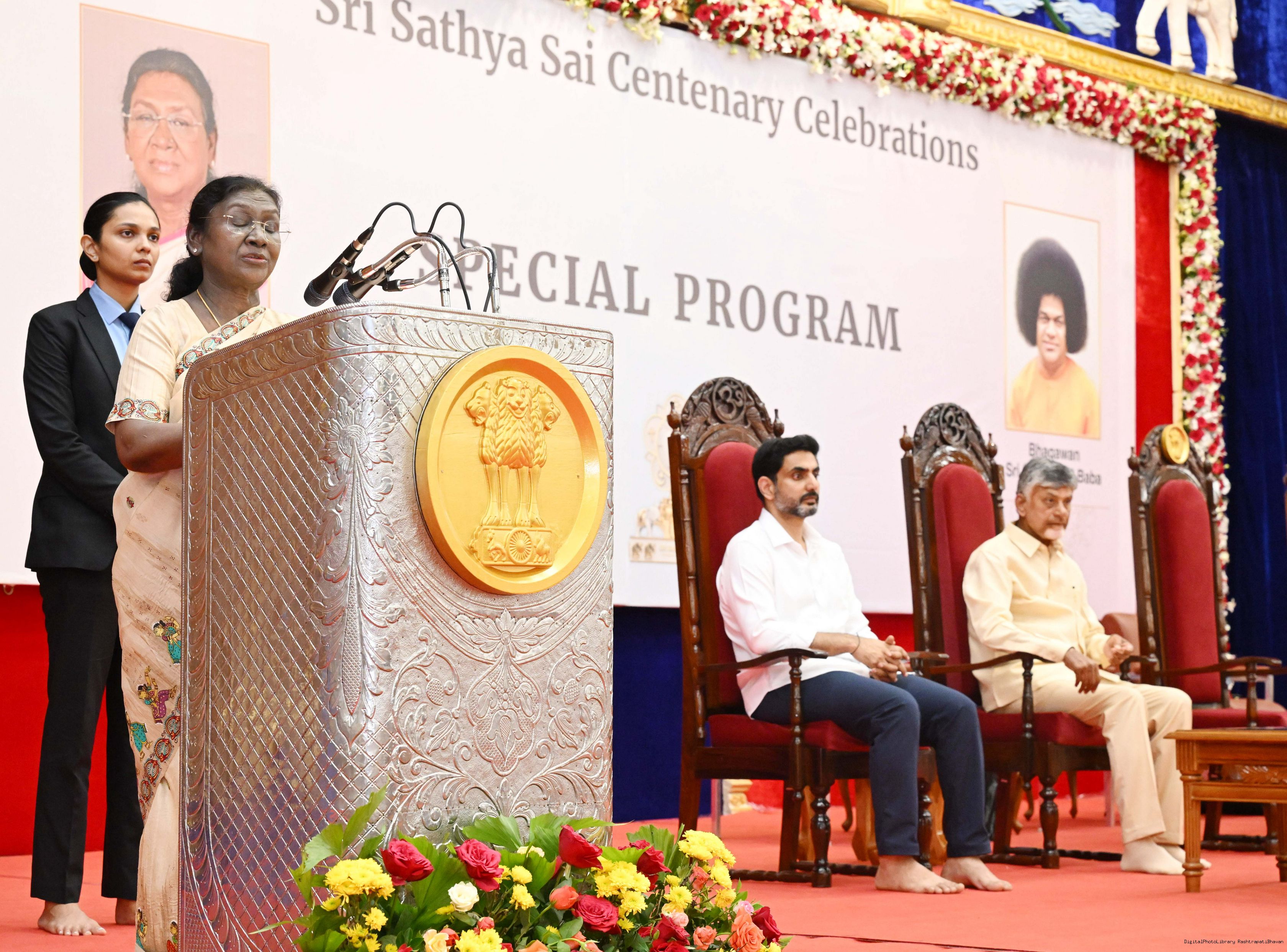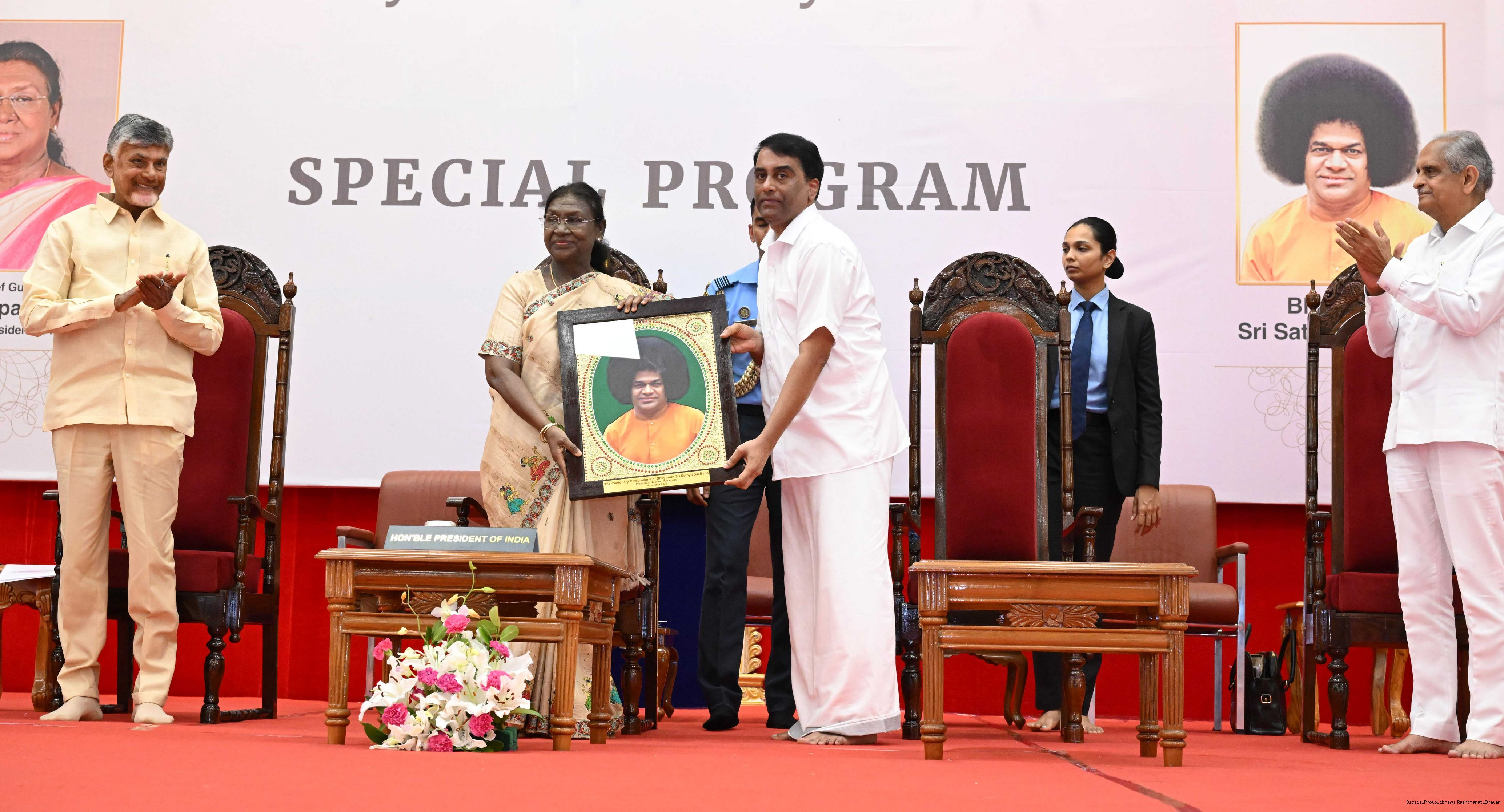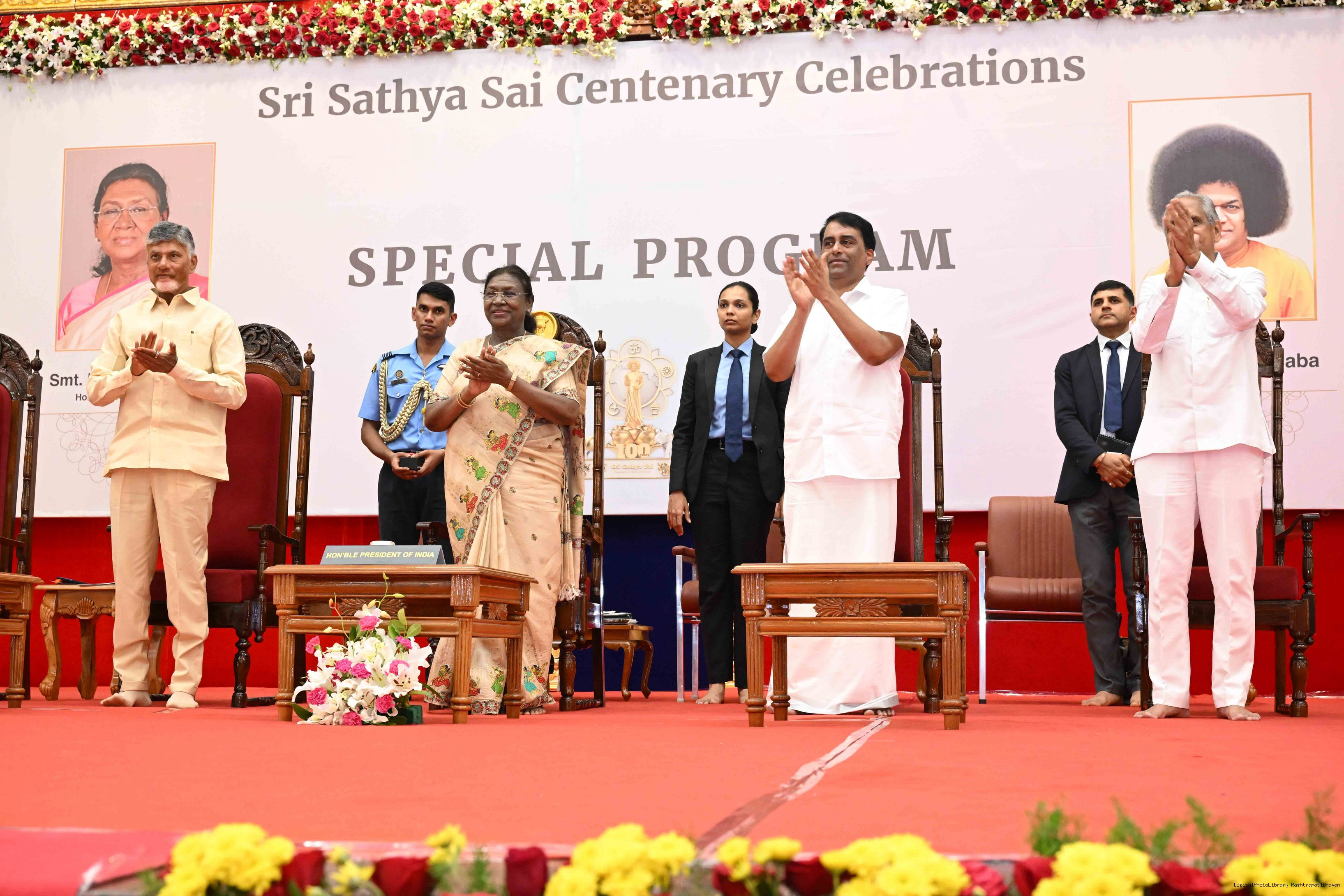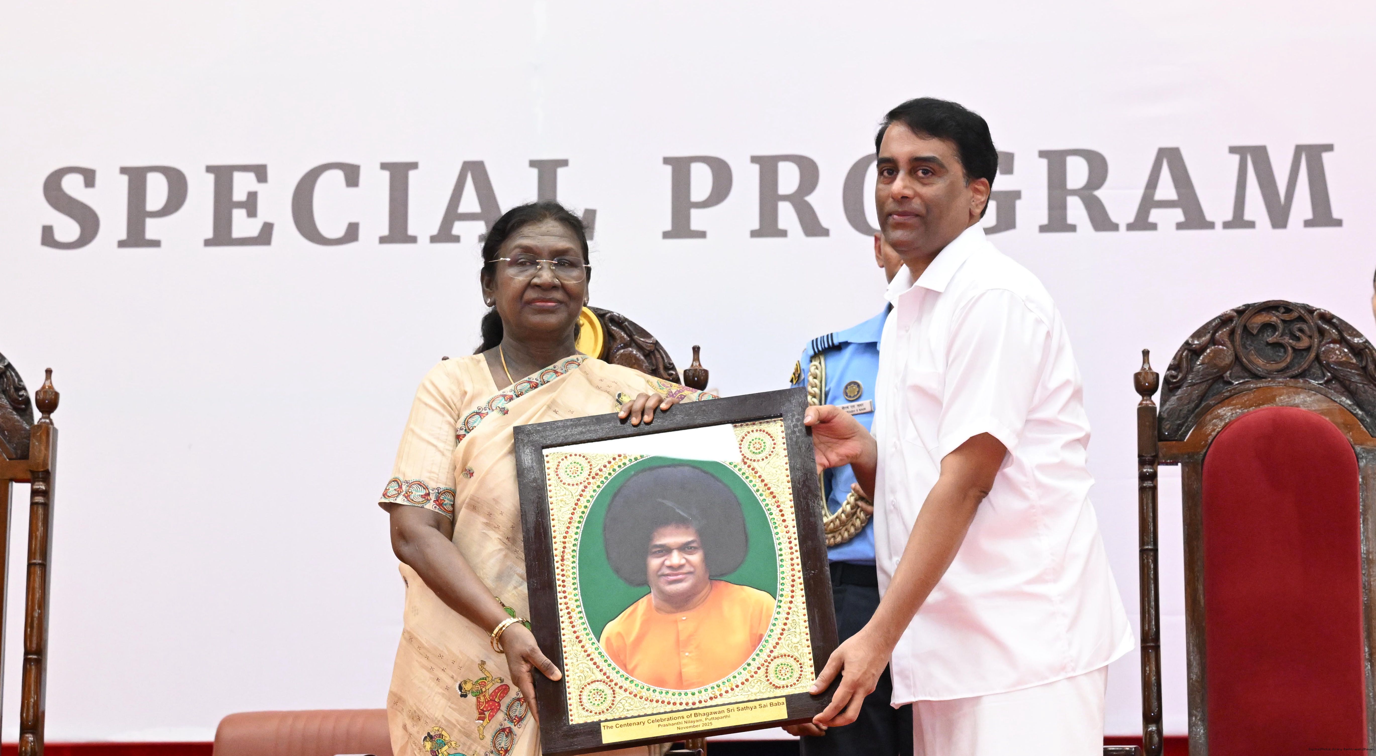 | Caption: | The President of India, Smt. Droupadi Murmu graced the special event to commemorate centenary celebration of Sri Sathya Sai Baba at Prasanthi Nilayam, Puttaparthi, Andhra Pradesh on November 21, 2025. |
