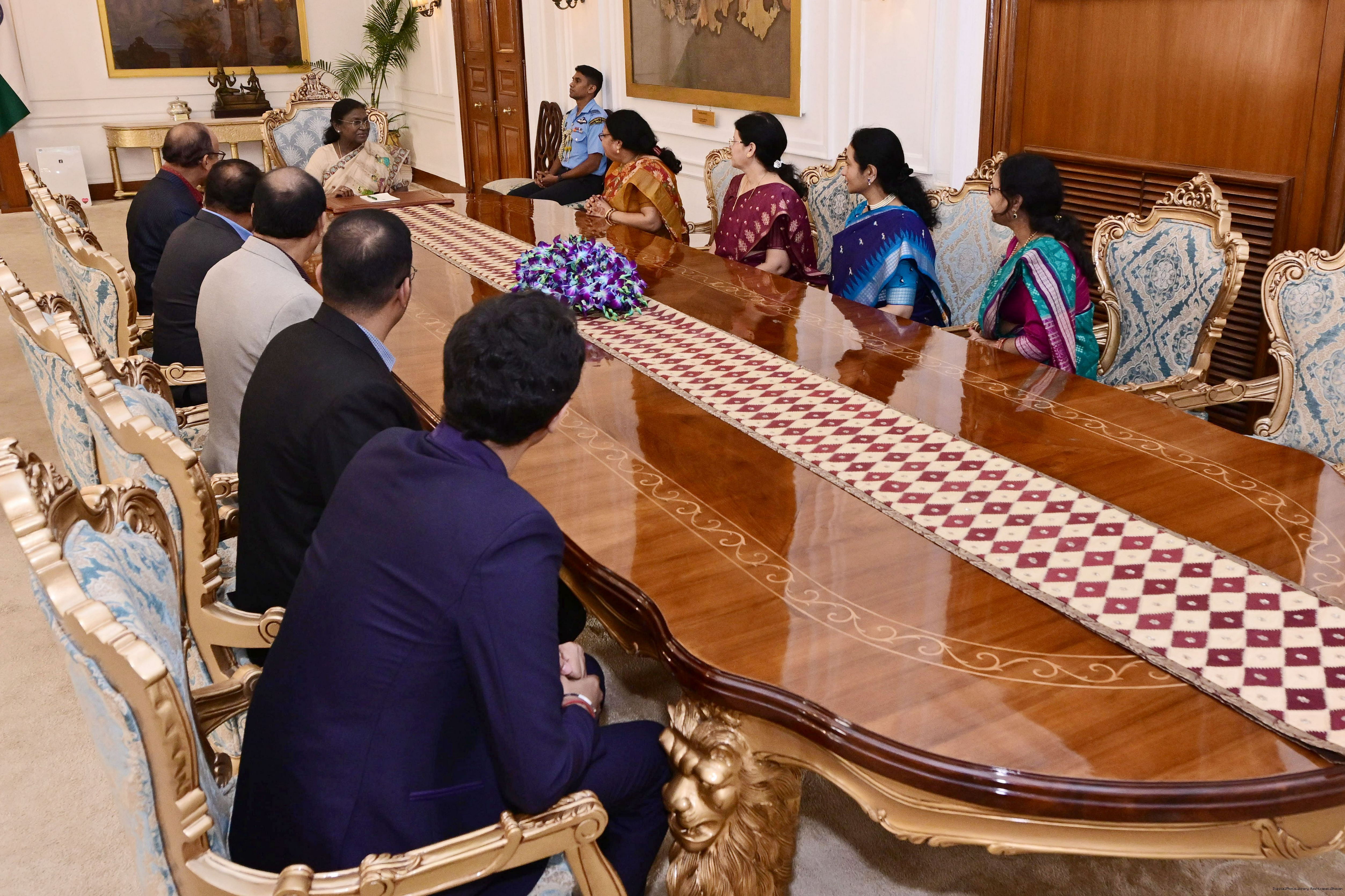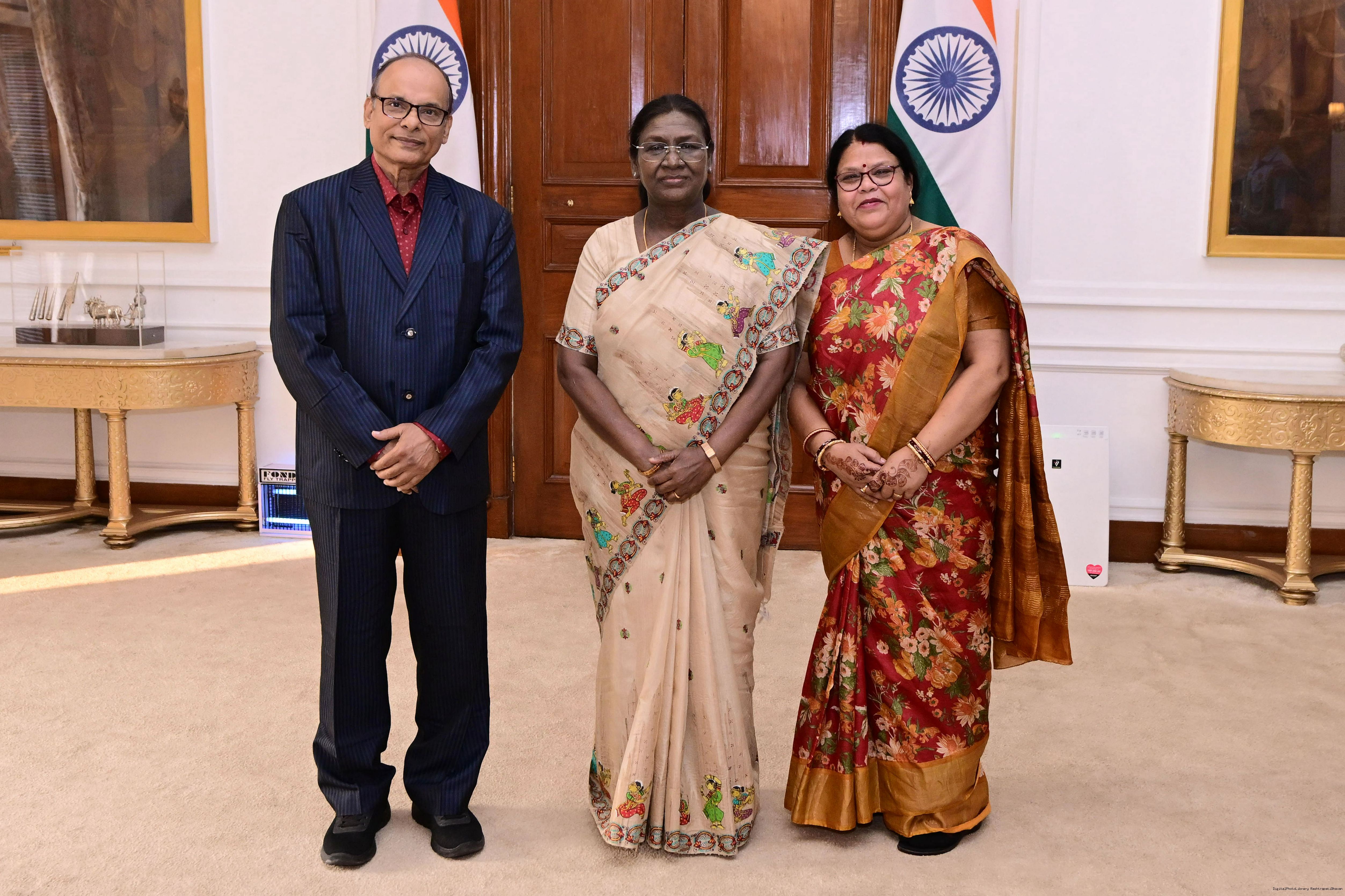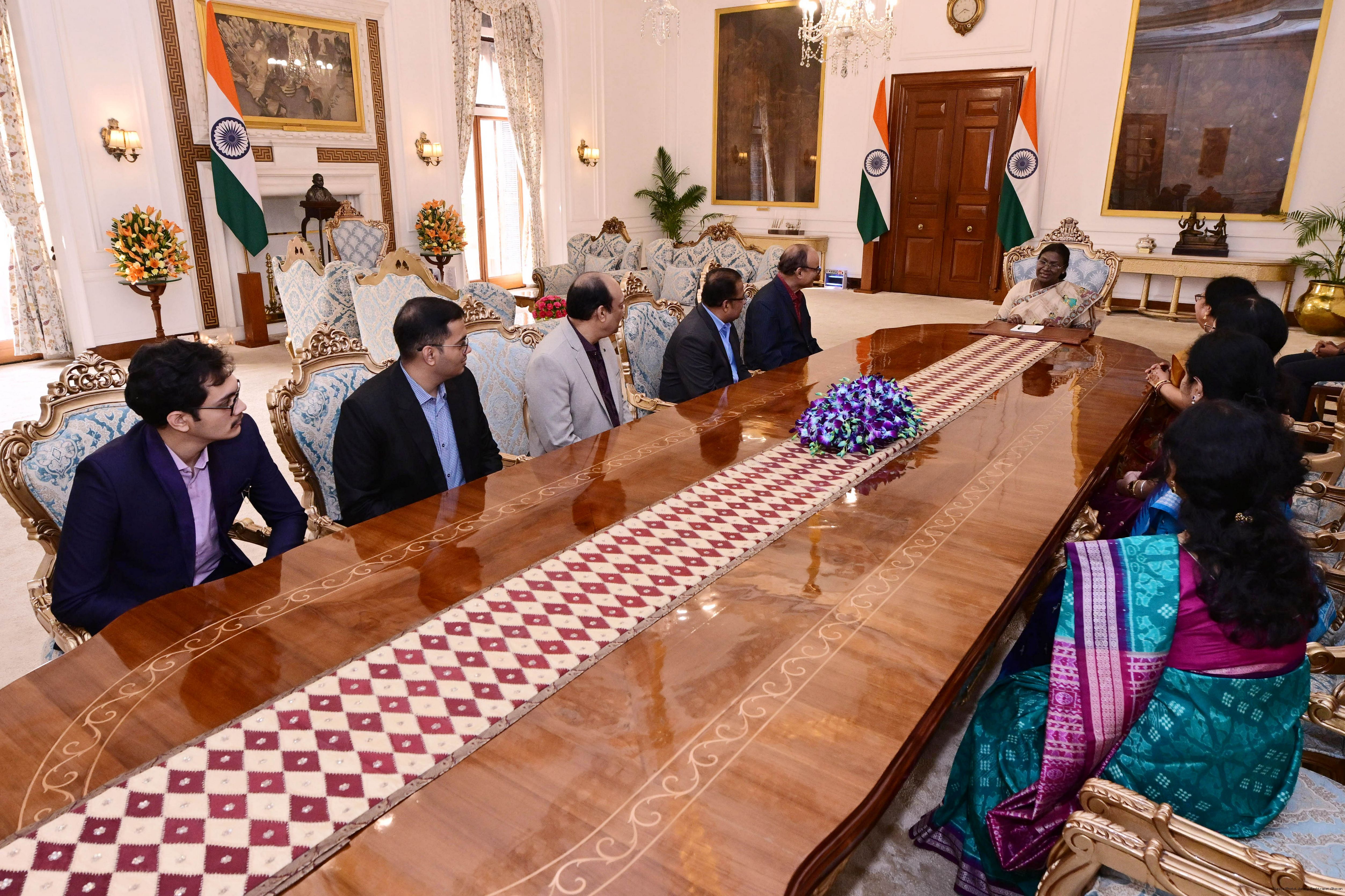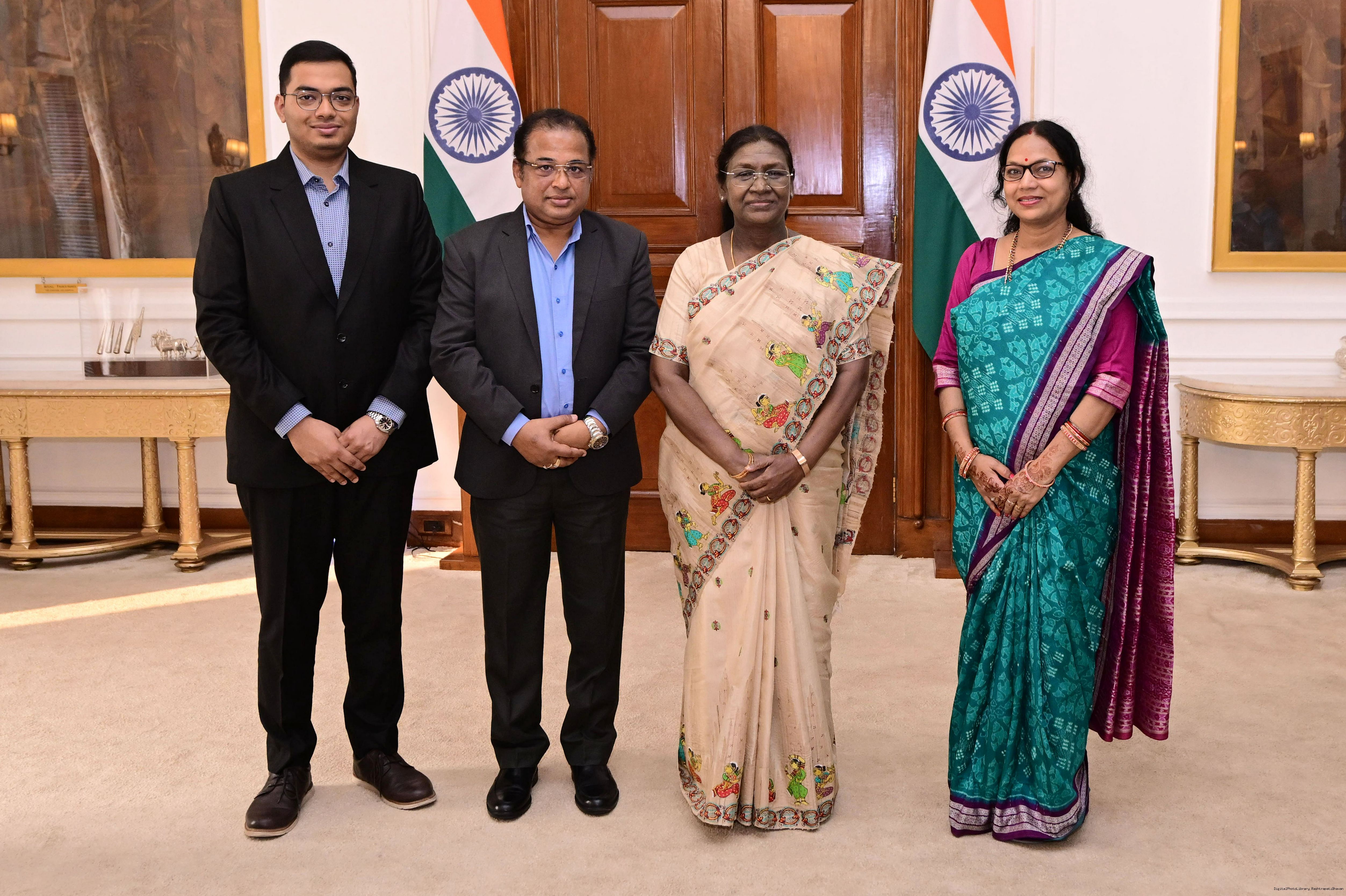 | Caption: | Dr. Pradip Ku. Mohapatra from Baripada, Mayurbhanj, Odisha along with others meeting with the President of India, Smt. Droupadi Murmu at Rashtrapati Bhavan on November 22, 2025. |