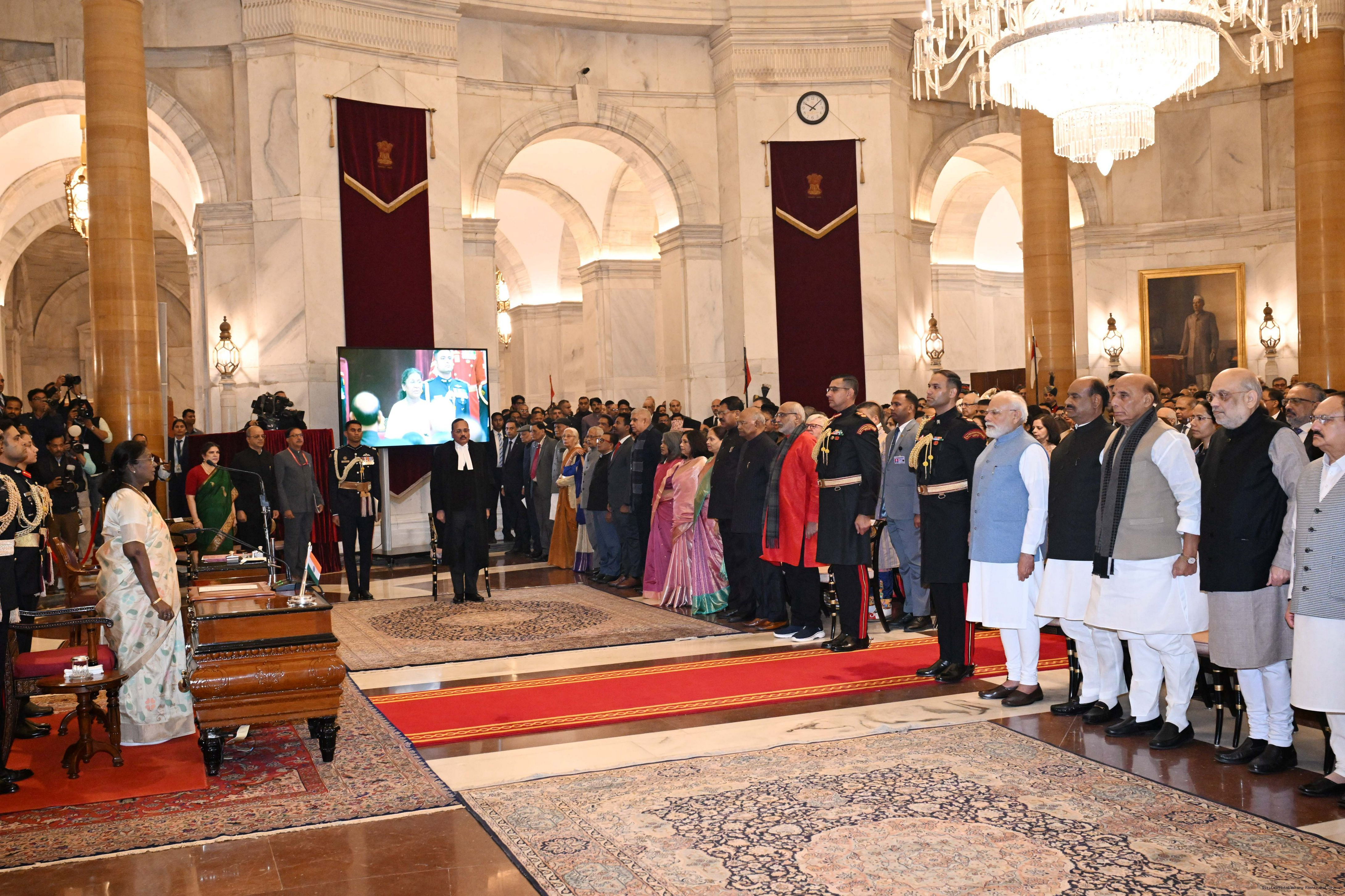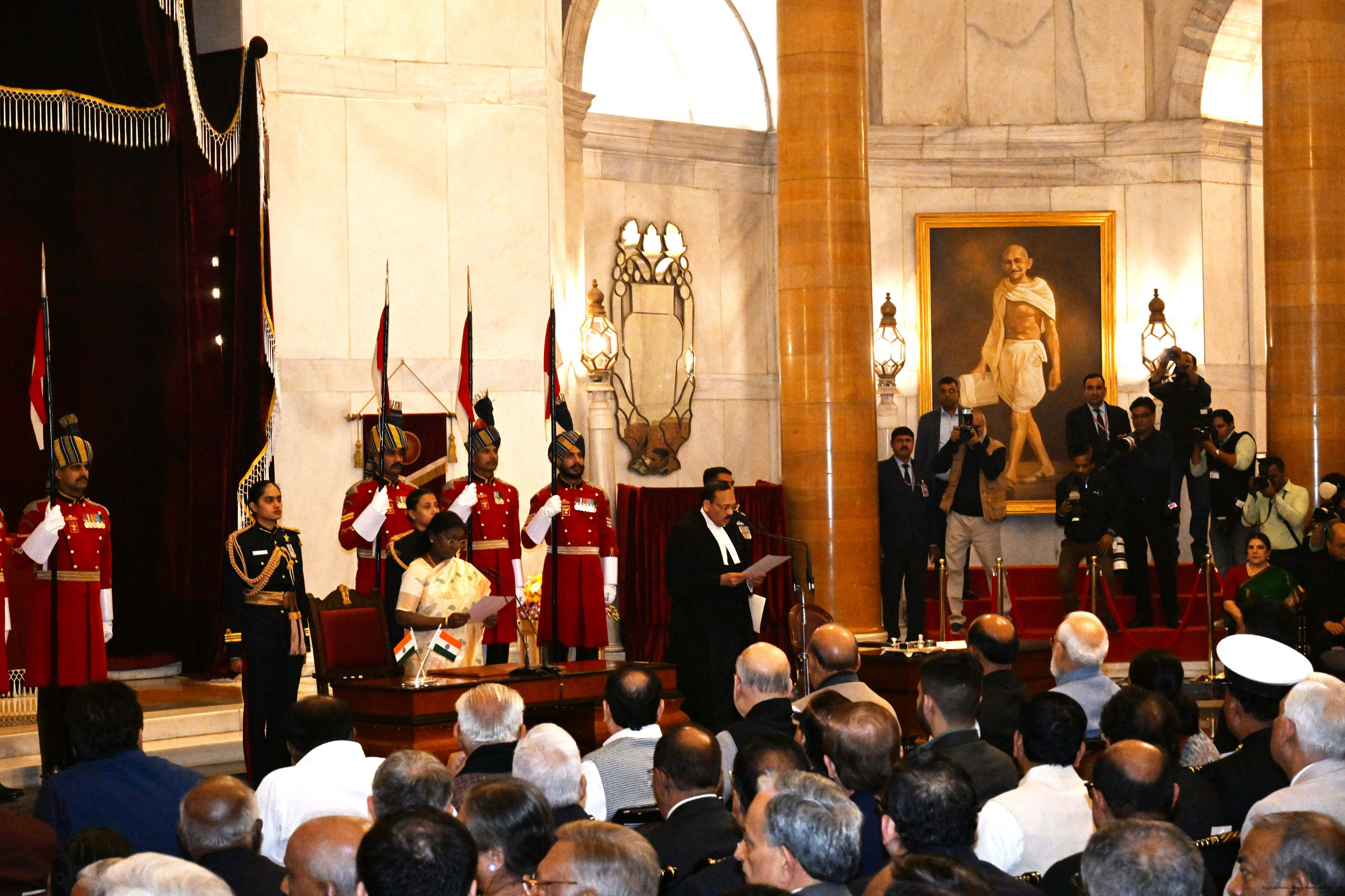| Caption: | The President of India, Smt. Droupadi Murmu administered the oath of office to Shri Justice Surya Kant as the Chief Justice of the Supreme Court of India, at a Swearing-in-Ceremony in Rashtrapati Bhavan, New Delhi on November 24, 2025. |