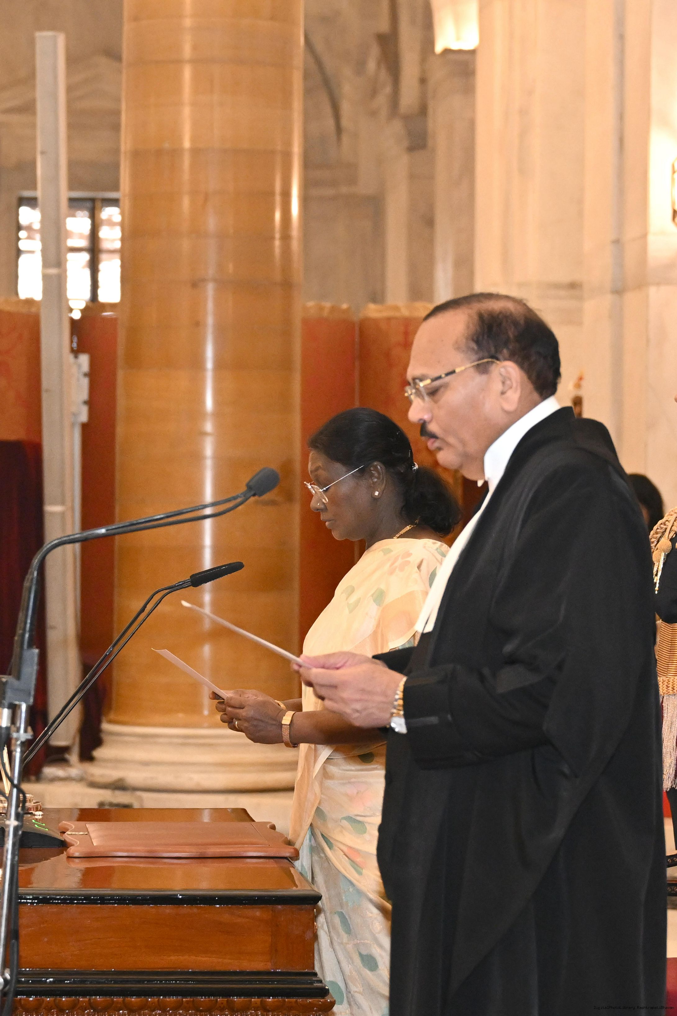 | Caption: | The President of India, Smt. Droupadi Murmu administered the oath of office to Shri Justice Surya Kant as the Chief Justice of the Supreme Court of India, at a Swearing-in-Ceremony in Rashtrapati Bhavan, New Delhi on November 24, 2025. |