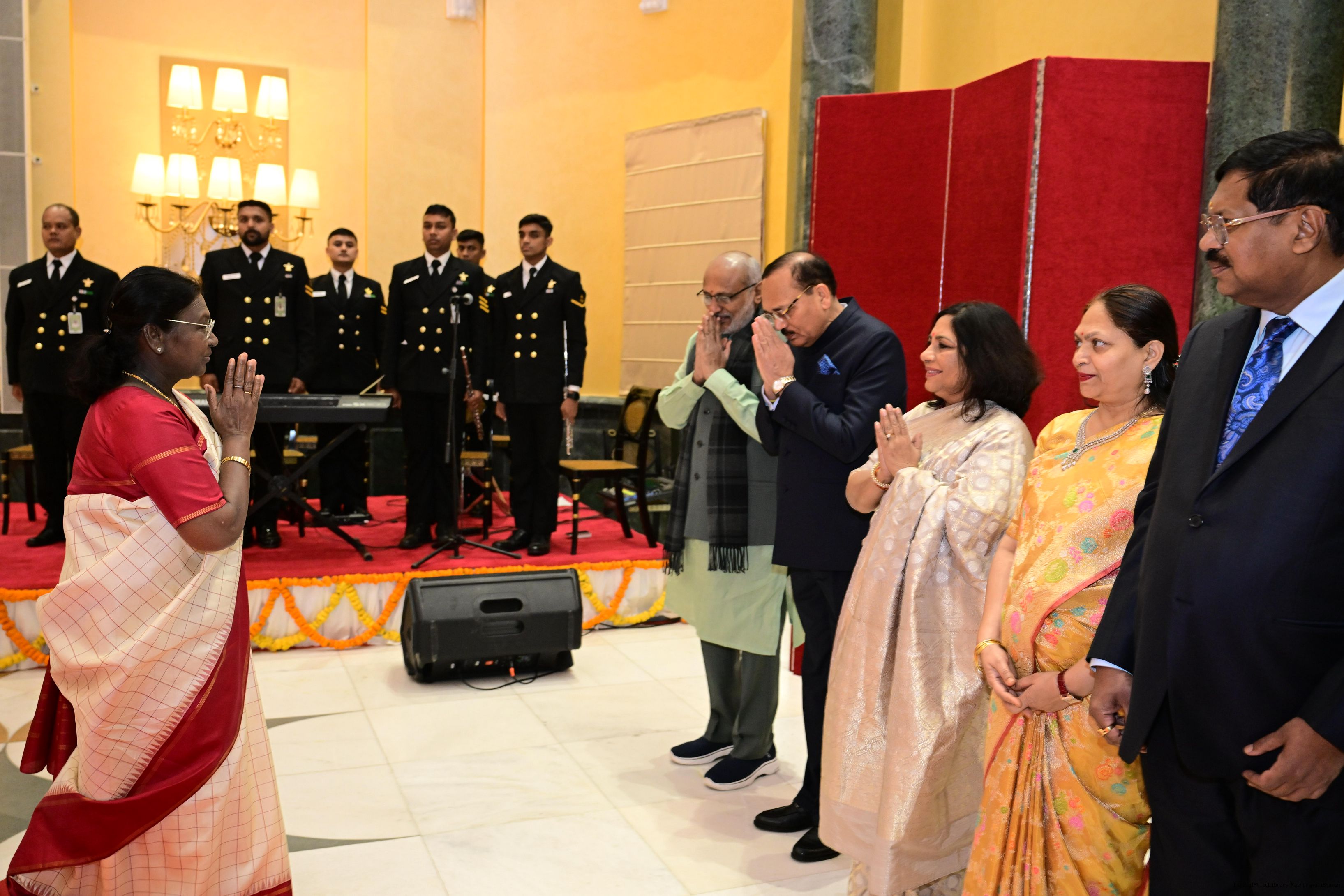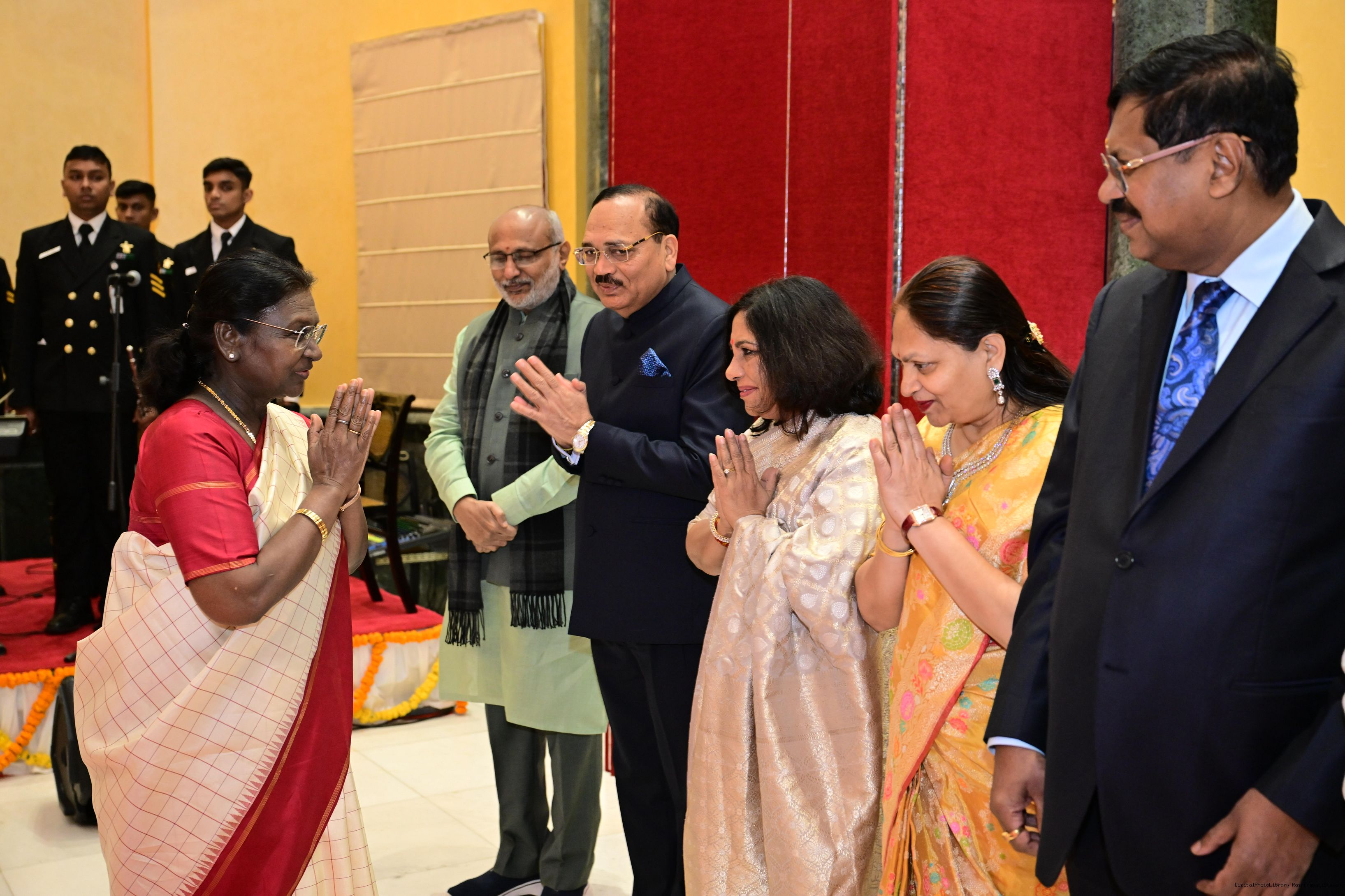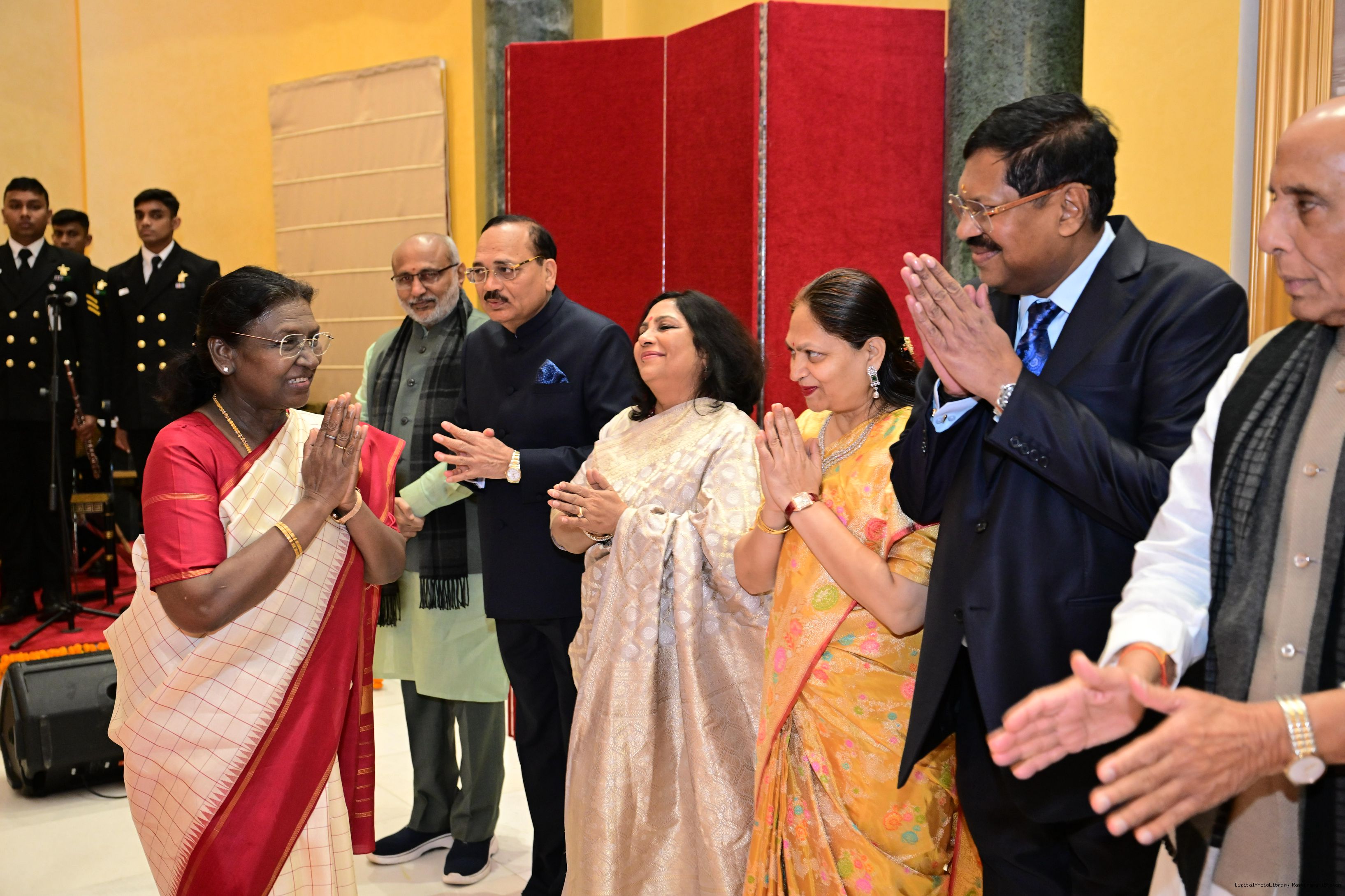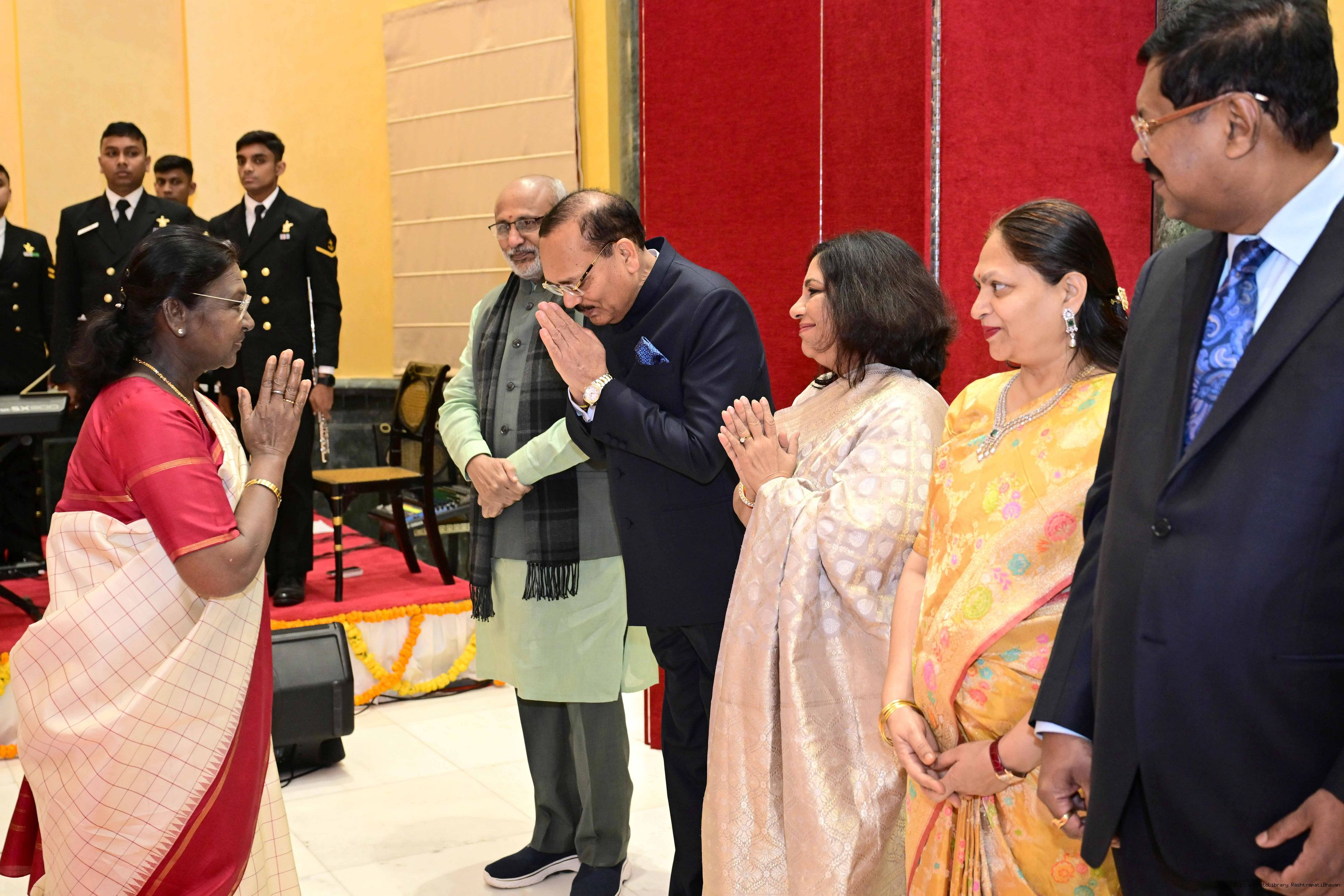 | Caption: | The President of India, Smt. Droupadi Murmu hosted a dinner at Rashtrapati Bhavan Cultural Centre to welcome the newly sworn-in Chief Justice of India, Shri Justice Surya Kant on November 24, 2025. |