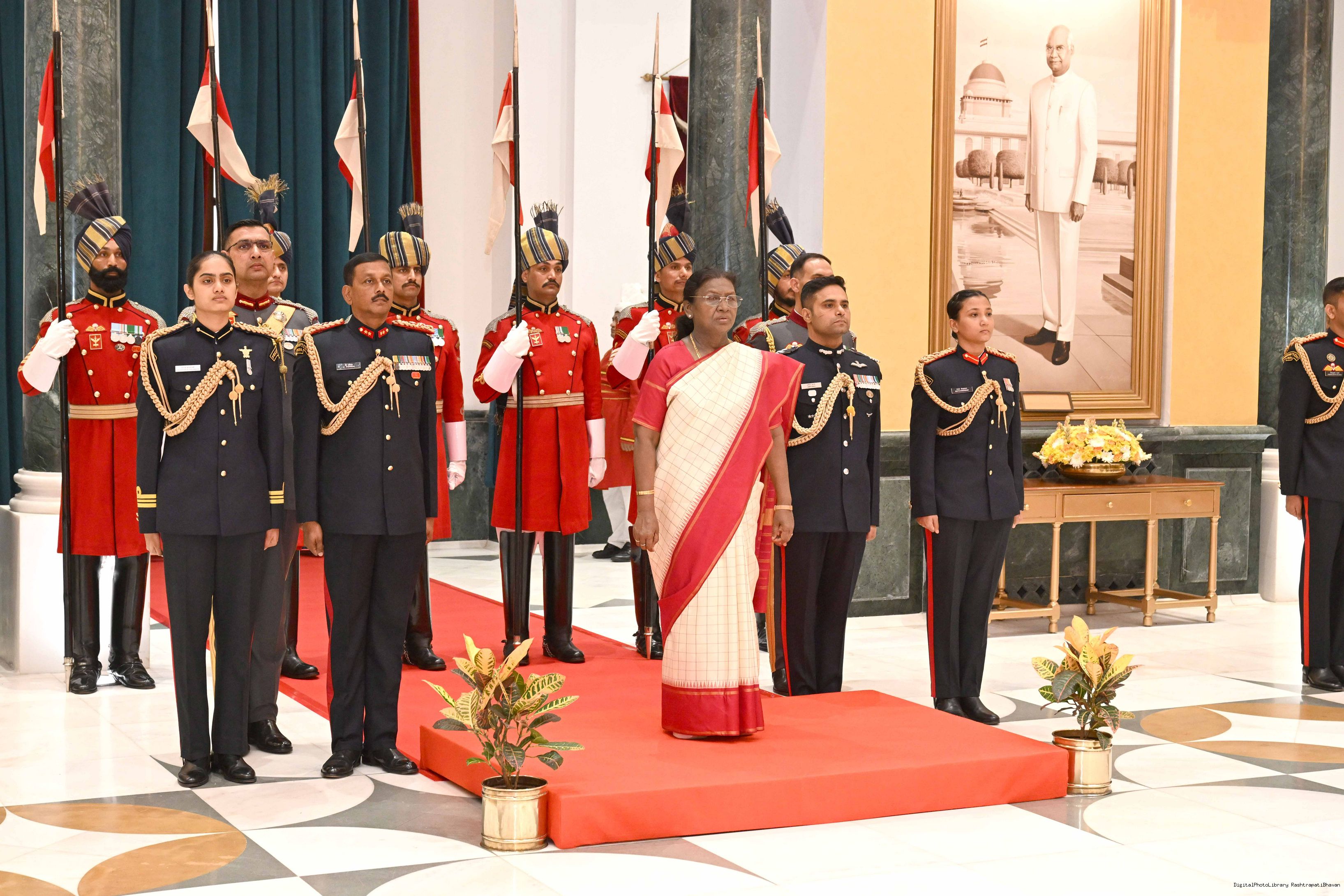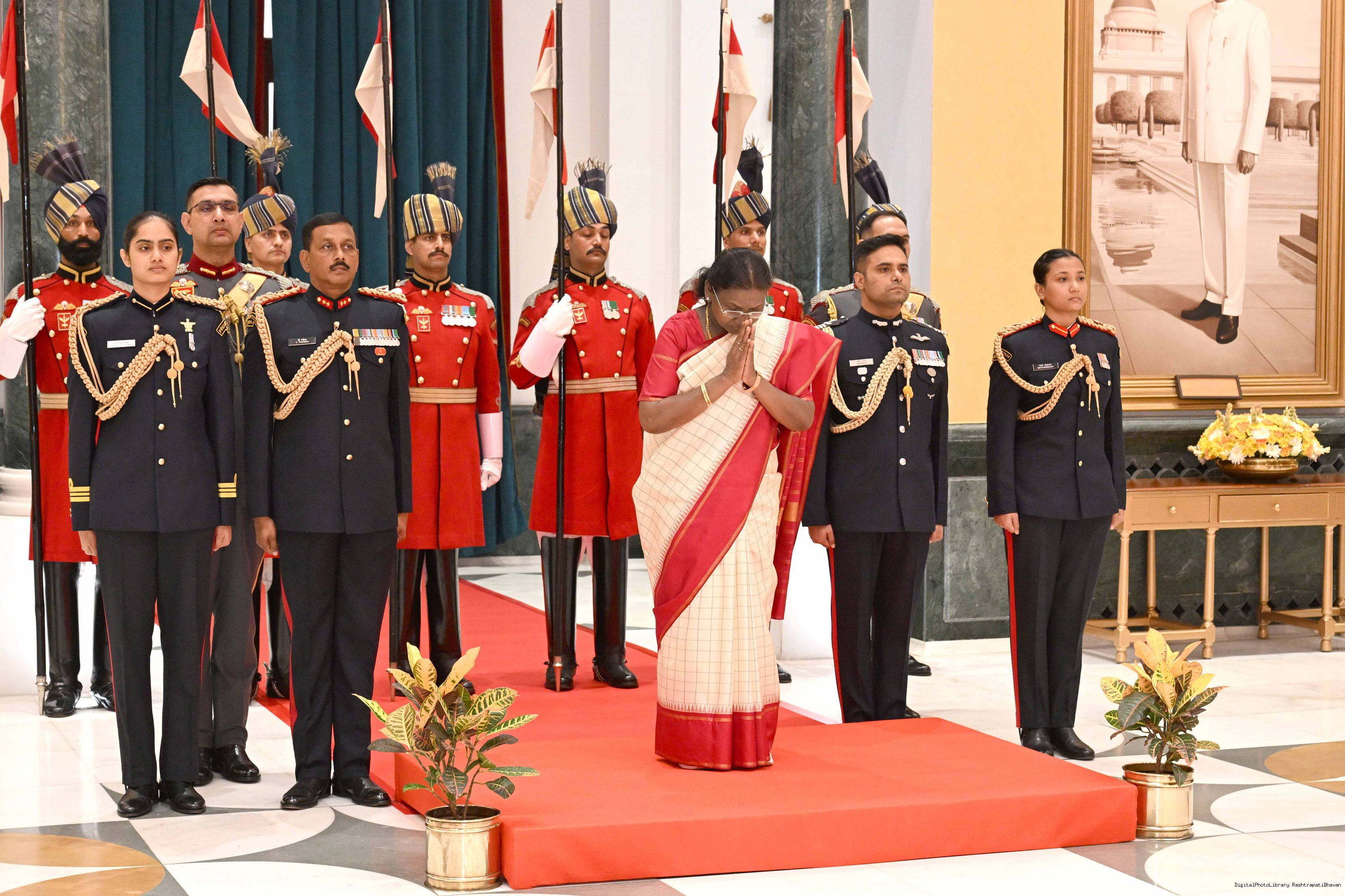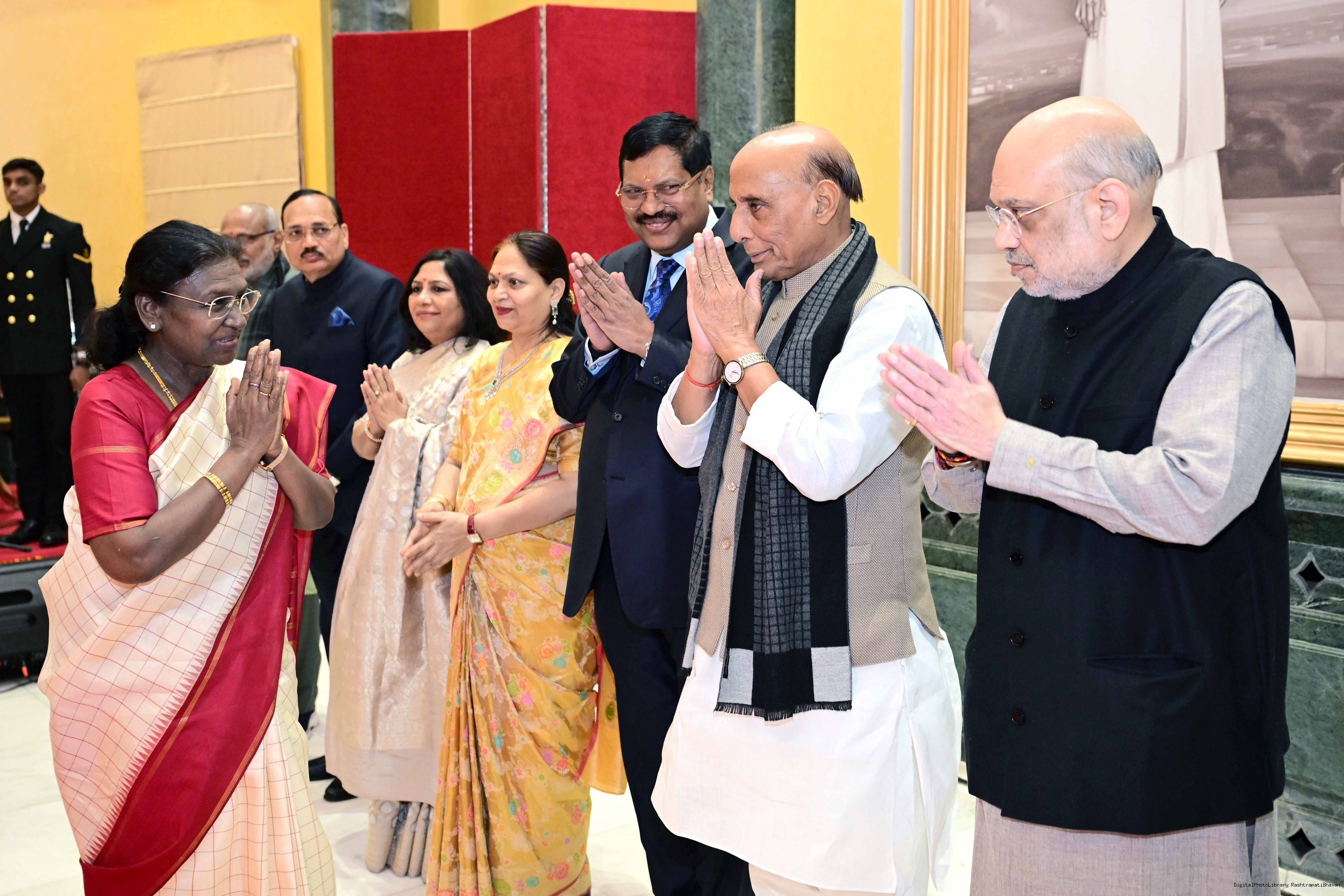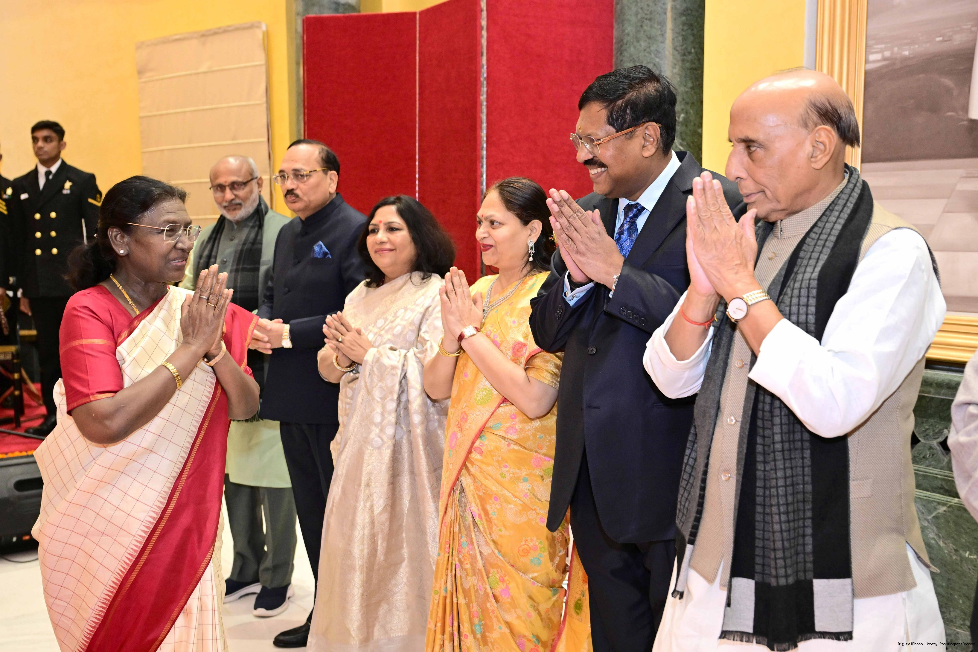 | Caption: | The President of India, Smt. Droupadi Murmu hosted a dinner at Rashtrapati Bhavan Cultural Centre to welcome the newly sworn-in Chief Justice of India, Shri Justice Surya Kant on November 24, 2025. |