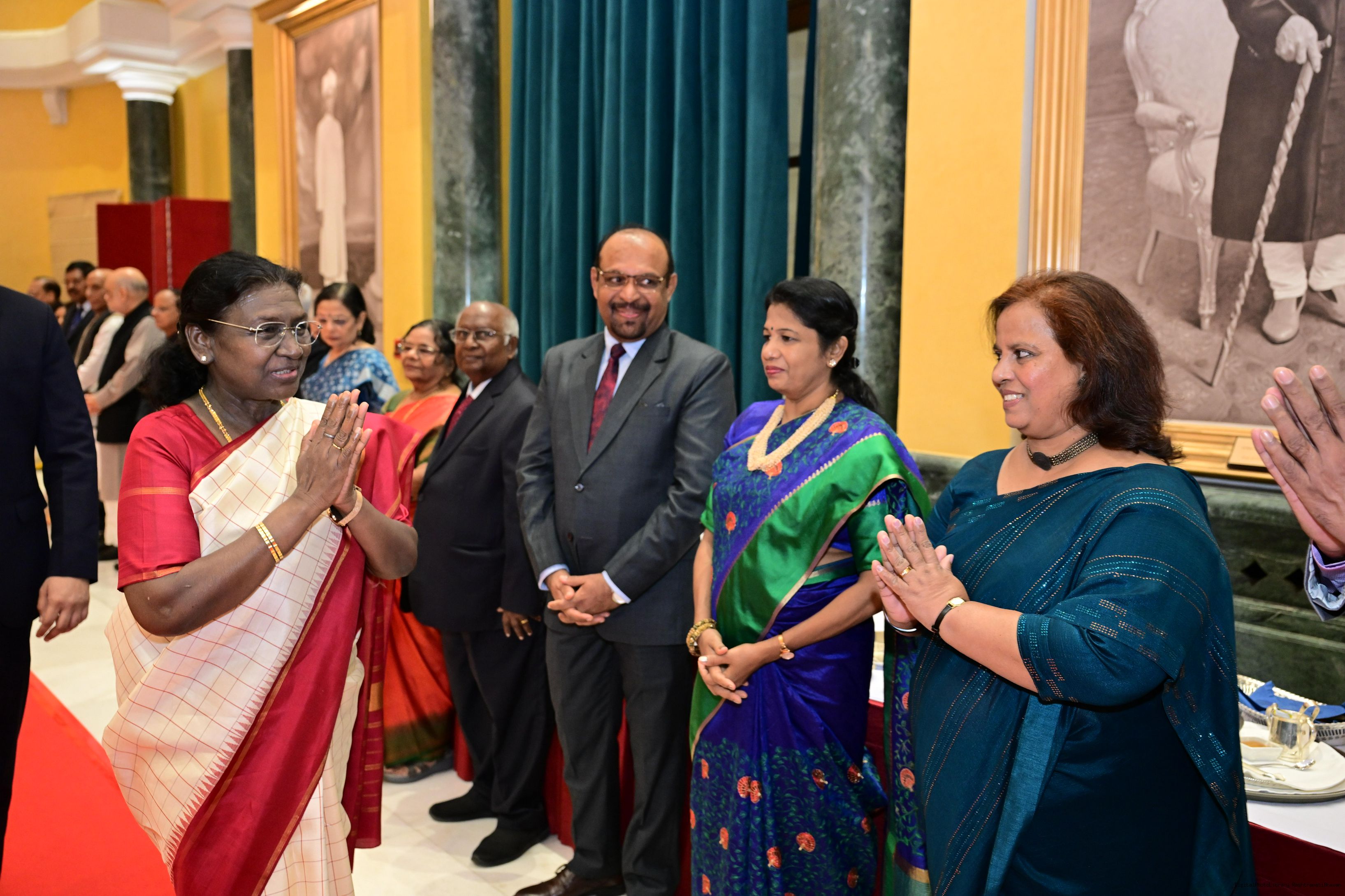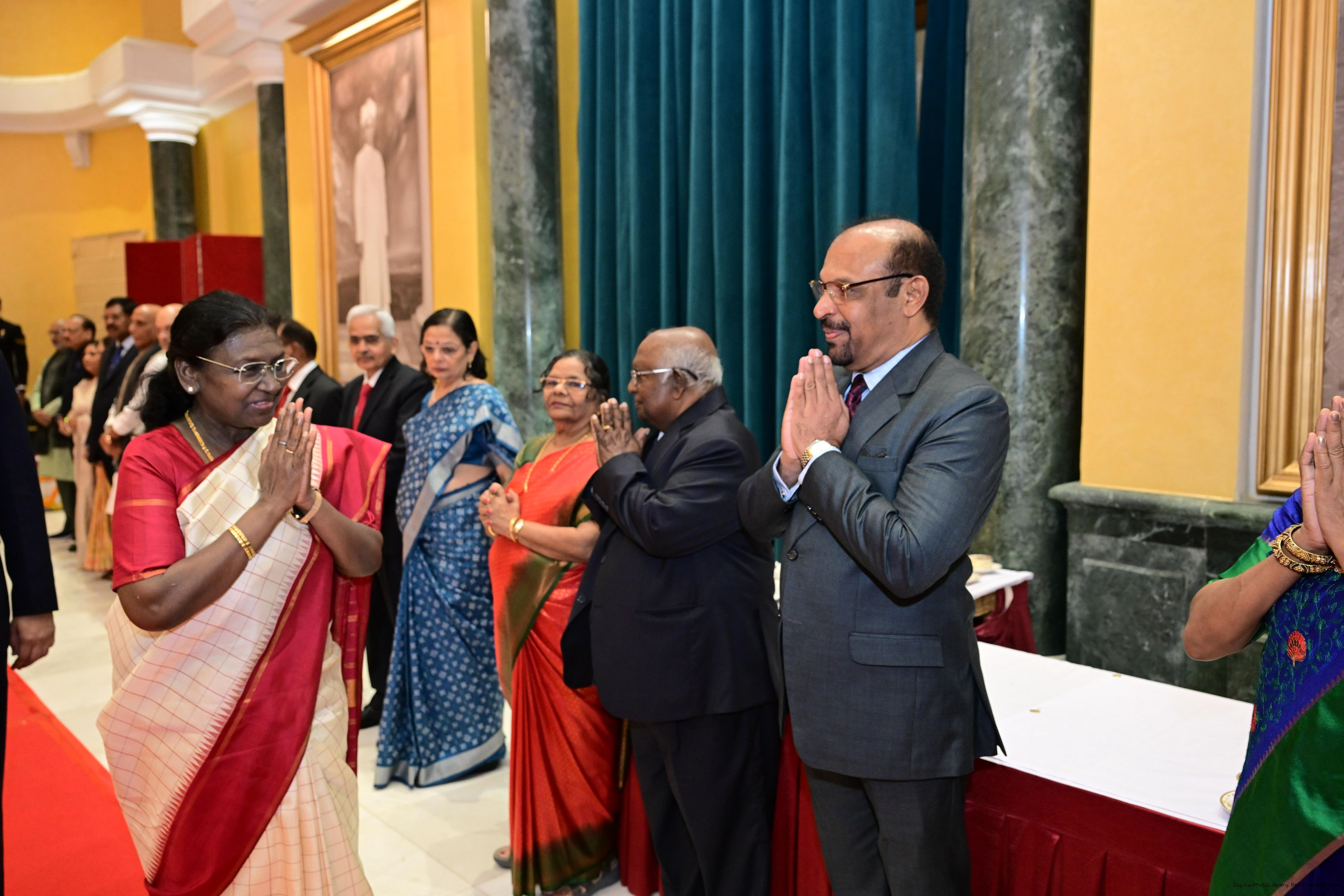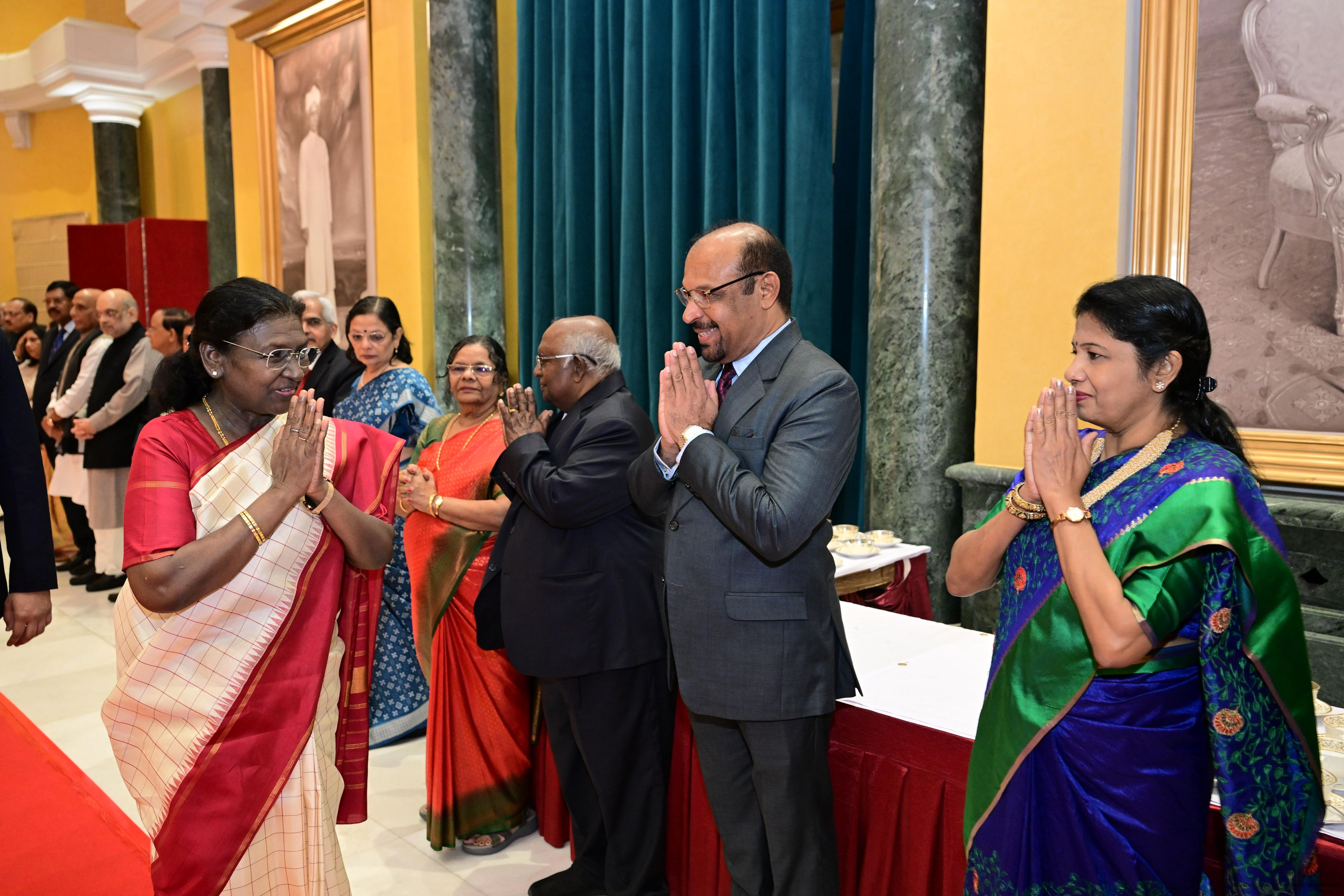 | Caption: | The President of India, Smt. Droupadi Murmu hosted a dinner at Rashtrapati Bhavan Cultural Centre to welcome the newly sworn-in Chief Justice of India, Shri Justice Surya Kant on November 24, 2025. |