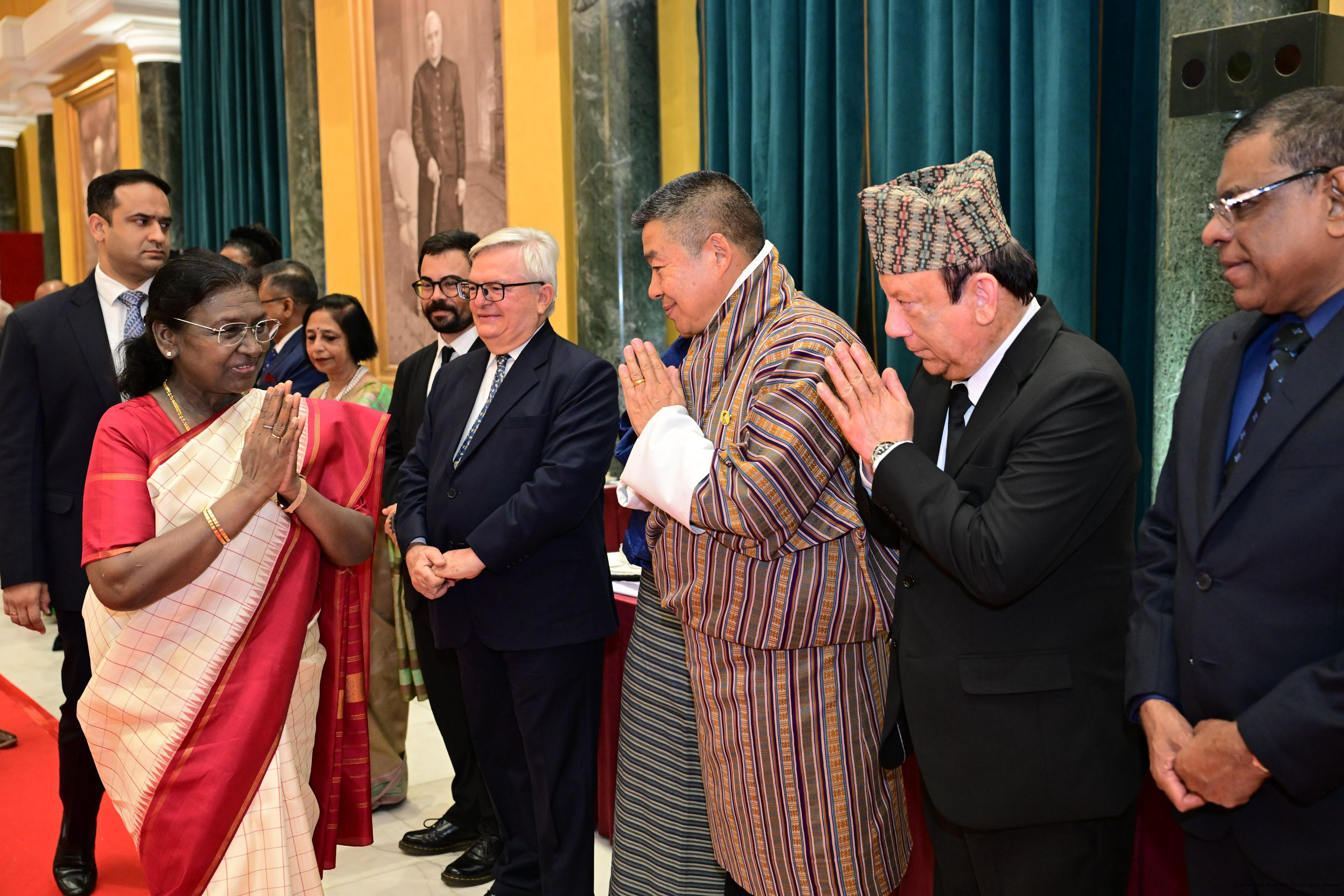 | Caption: | The President of India, Smt. Droupadi Murmu hosted a dinner at Rashtrapati Bhavan Cultural Centre to welcome the newly sworn-in Chief Justice of India, Shri Justice Surya Kant on November 24, 2025. |