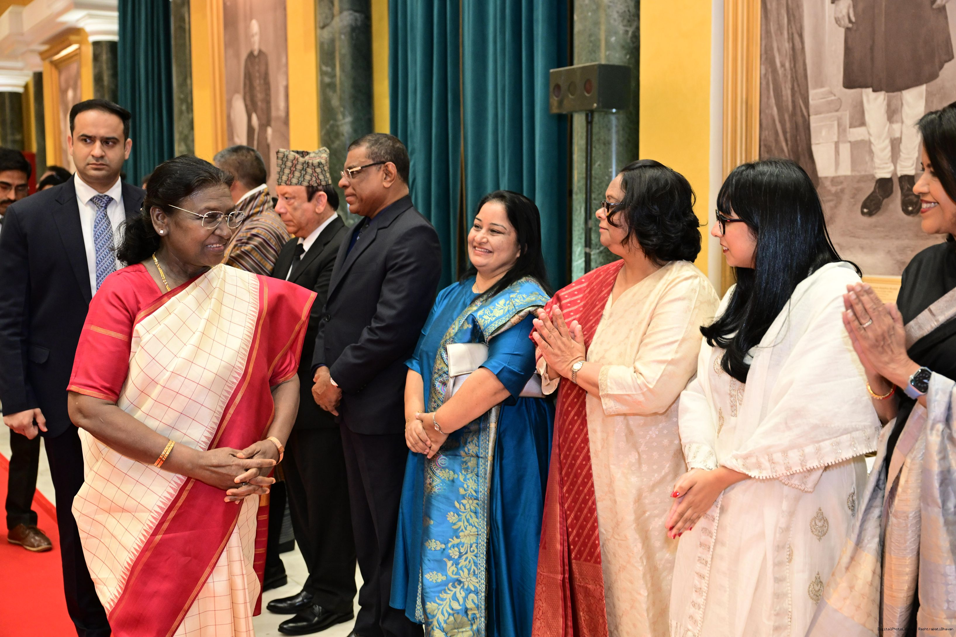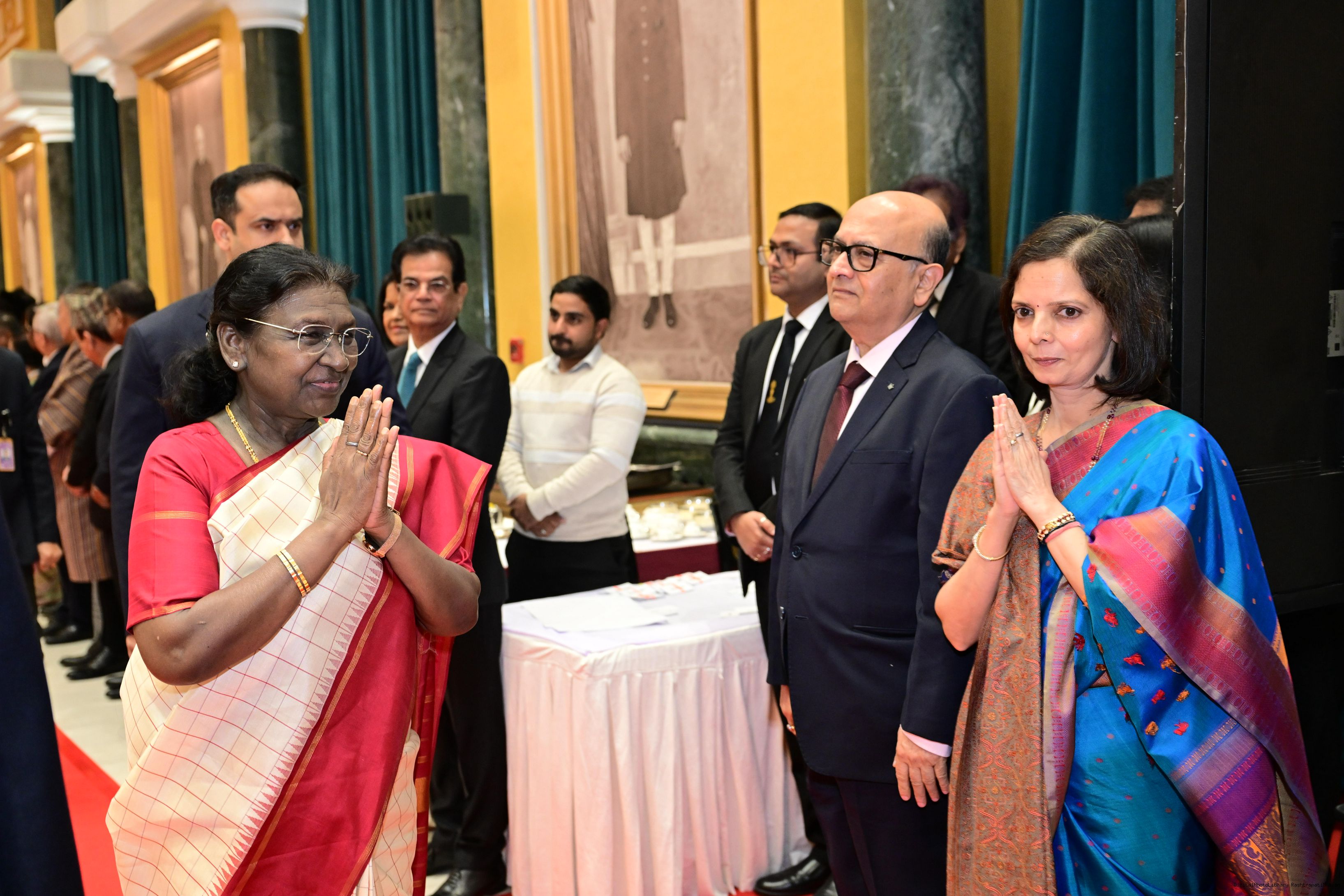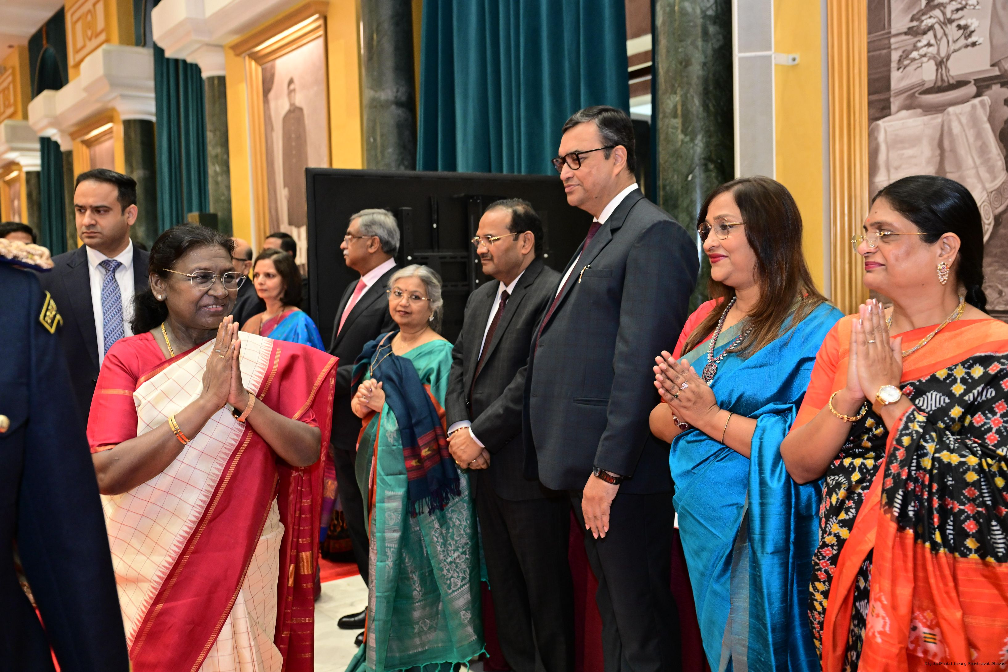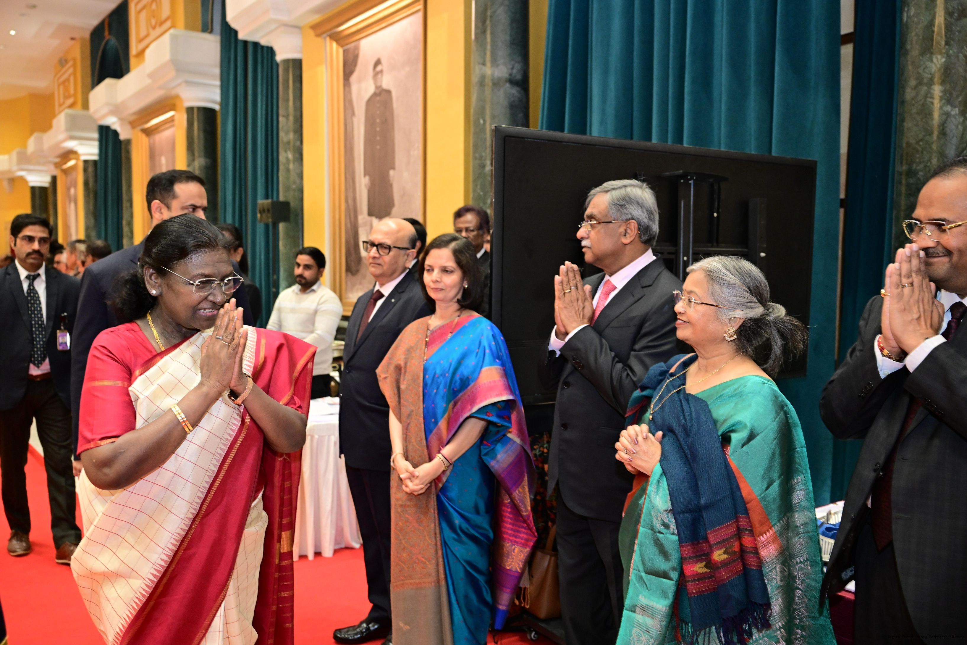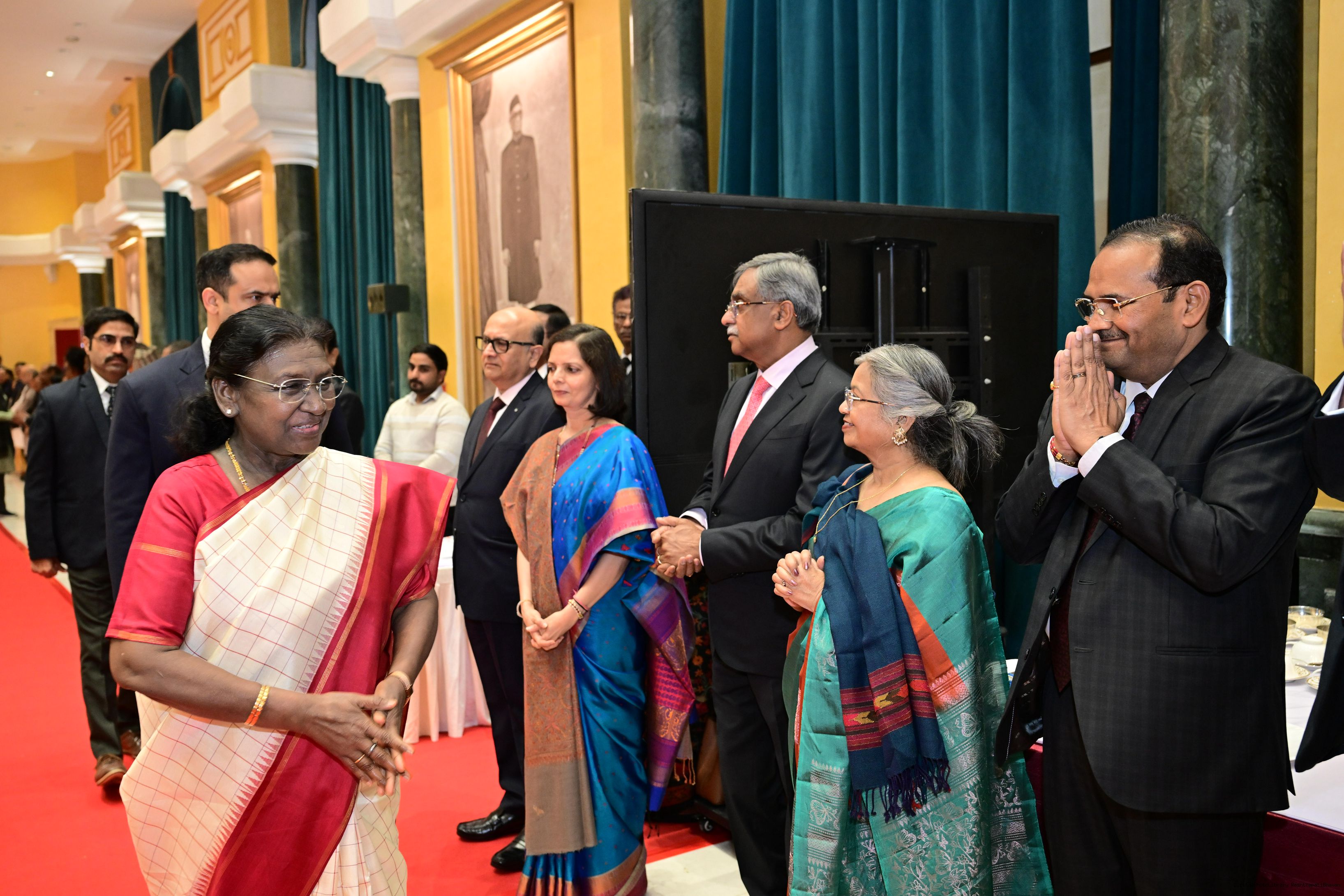 | Caption: | The President of India, Smt. Droupadi Murmu hosted a dinner at Rashtrapati Bhavan Cultural Centre to welcome the newly sworn-in Chief Justice of India, Shri Justice Surya Kant on November 24, 2025. |