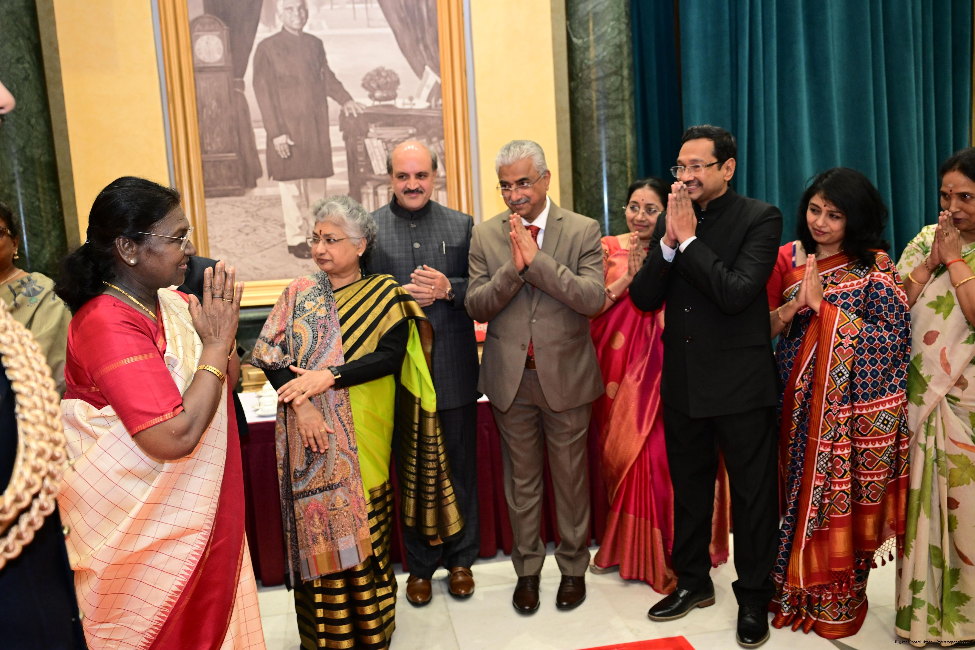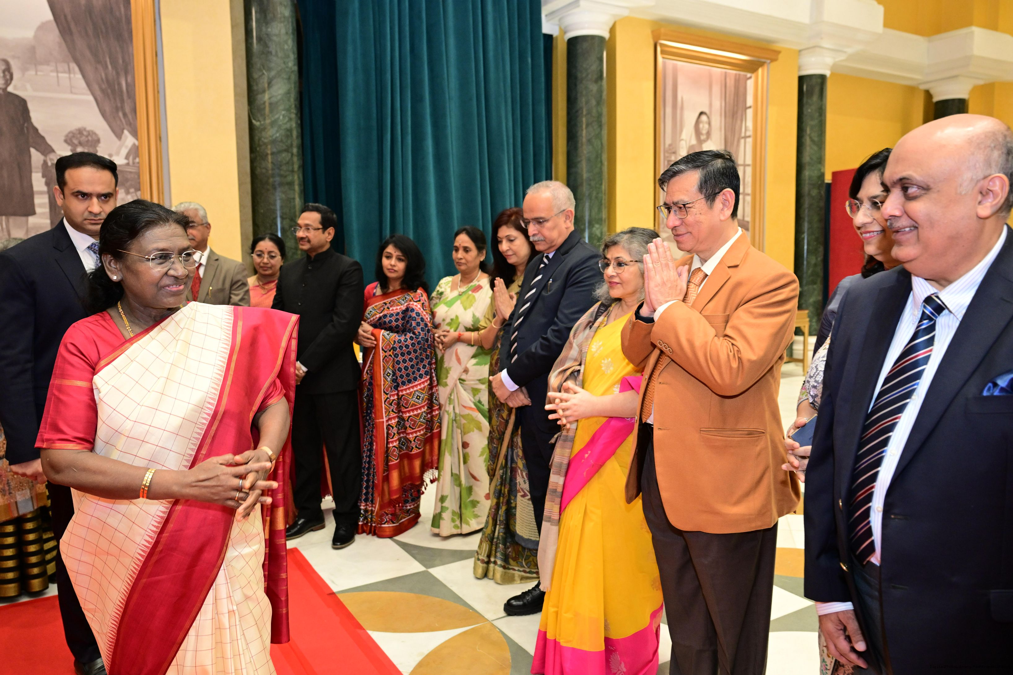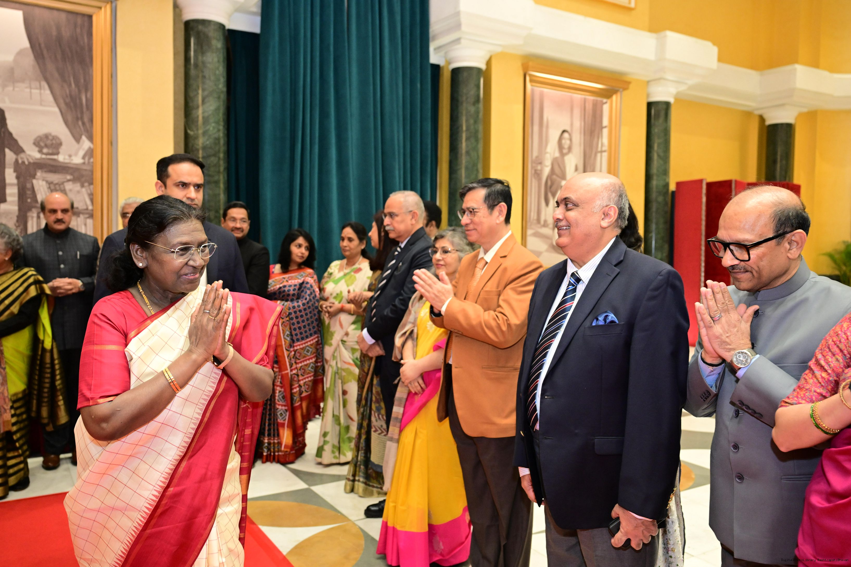 | Caption: | The President of India, Smt. Droupadi Murmu hosted a dinner at Rashtrapati Bhavan Cultural Centre to welcome the newly sworn-in Chief Justice of India, Shri Justice Surya Kant on November 24, 2025. |